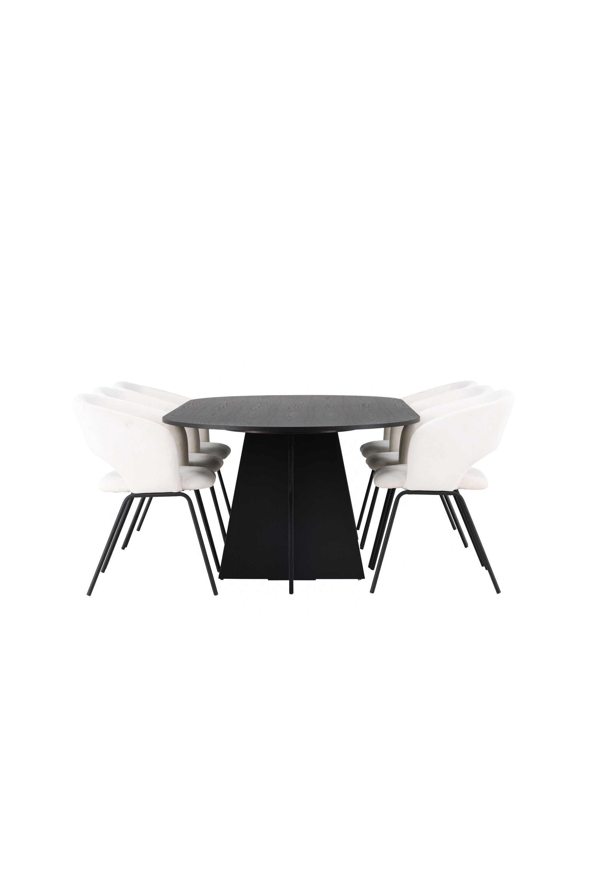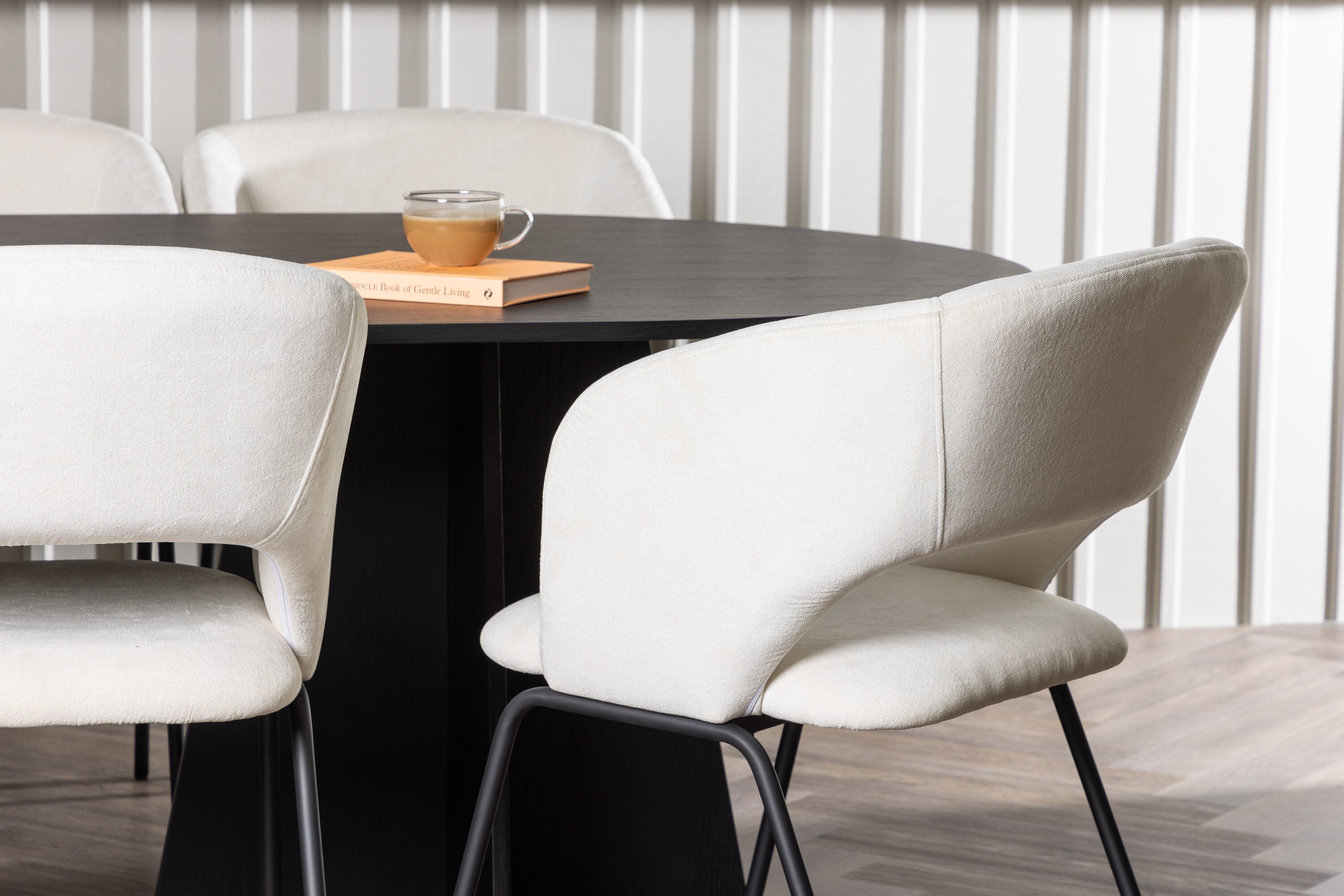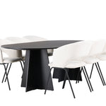 Bootcut Oválný jídelní stůl - černá / černá Fanéer + denní jídelní židle - matná černá / bílé prádlo _6