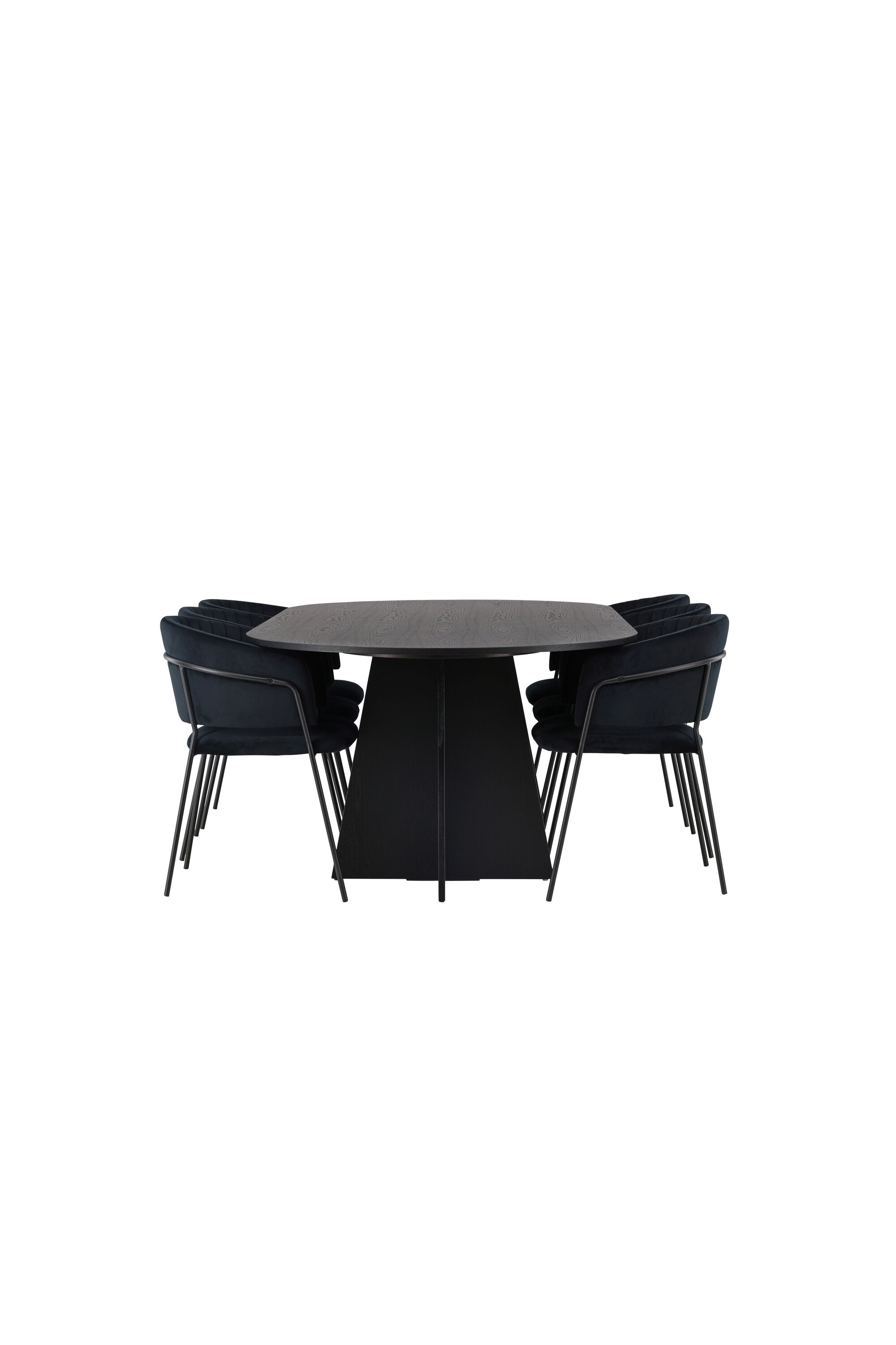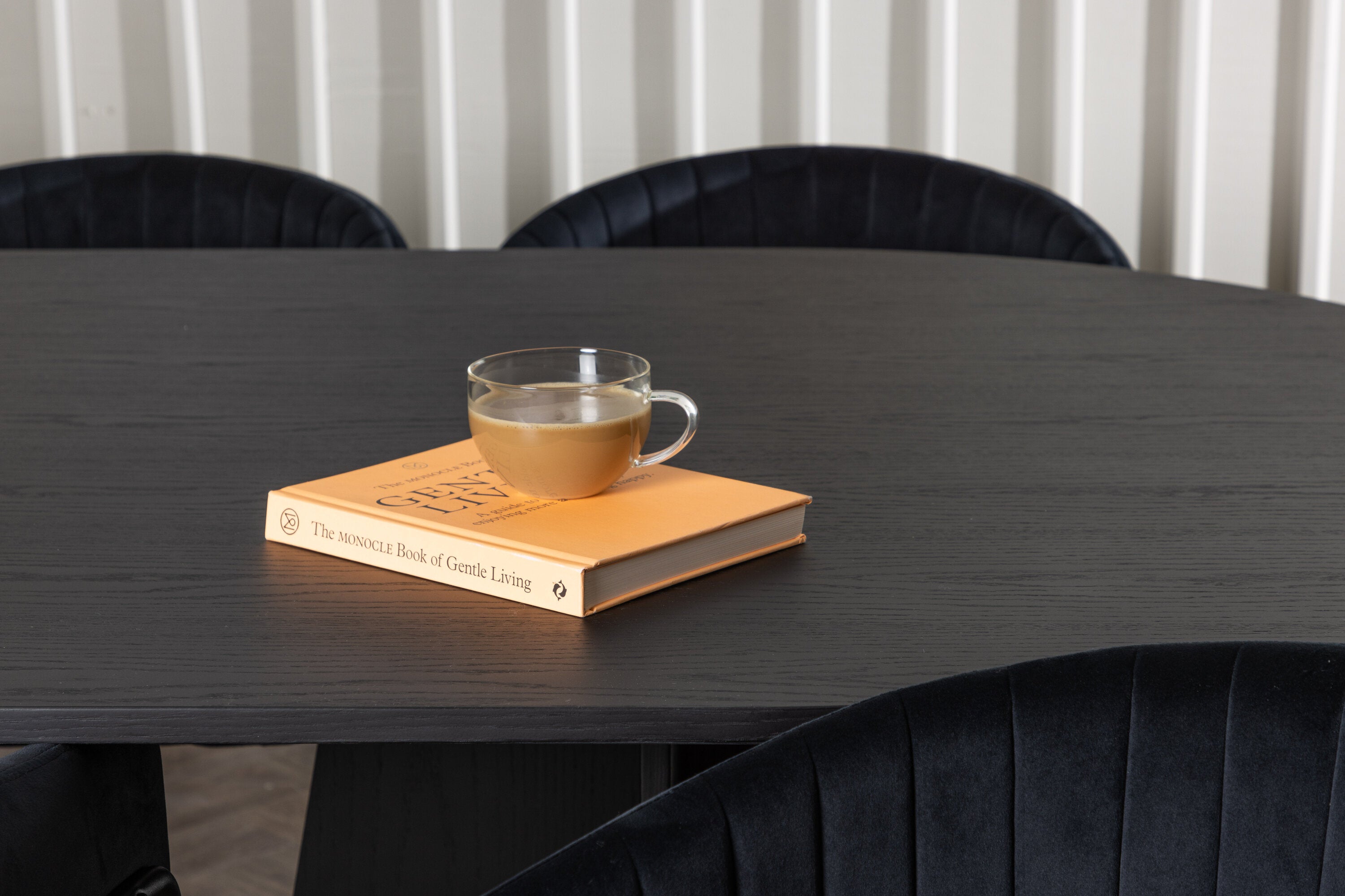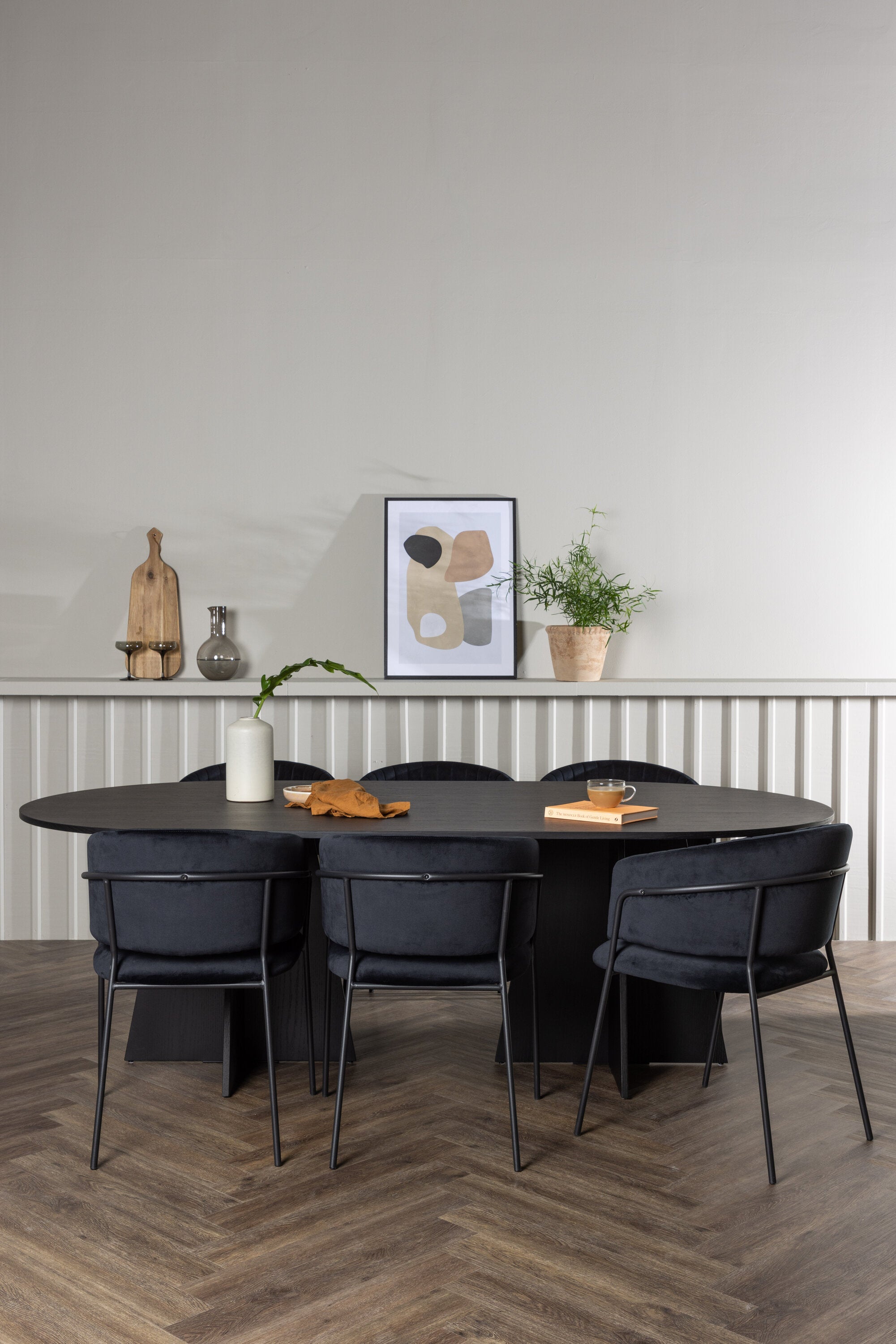 Bootcut oválný jídelní stůl - černá / černá Fanéer + jídelní židle Selma - černá / černý samet _6