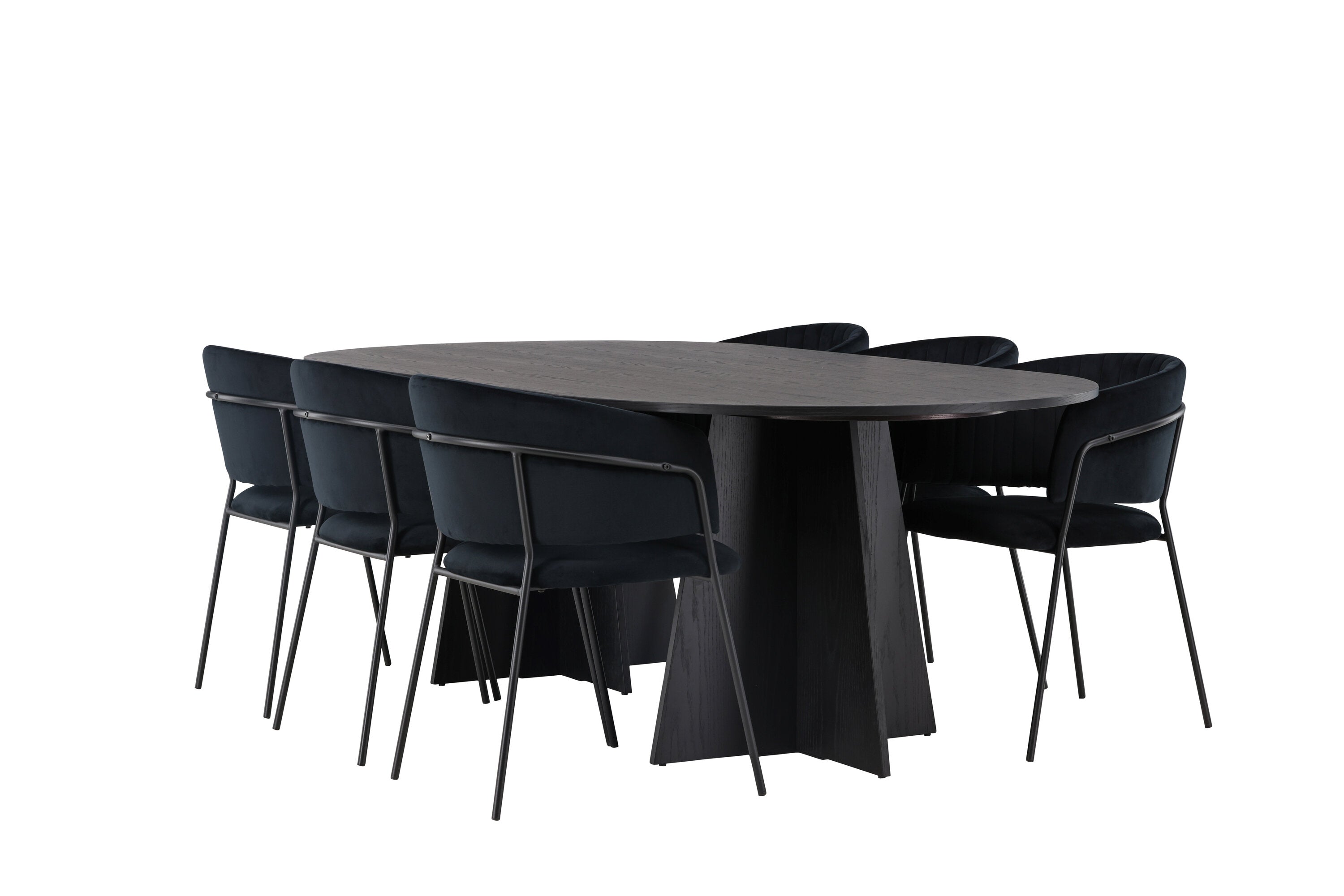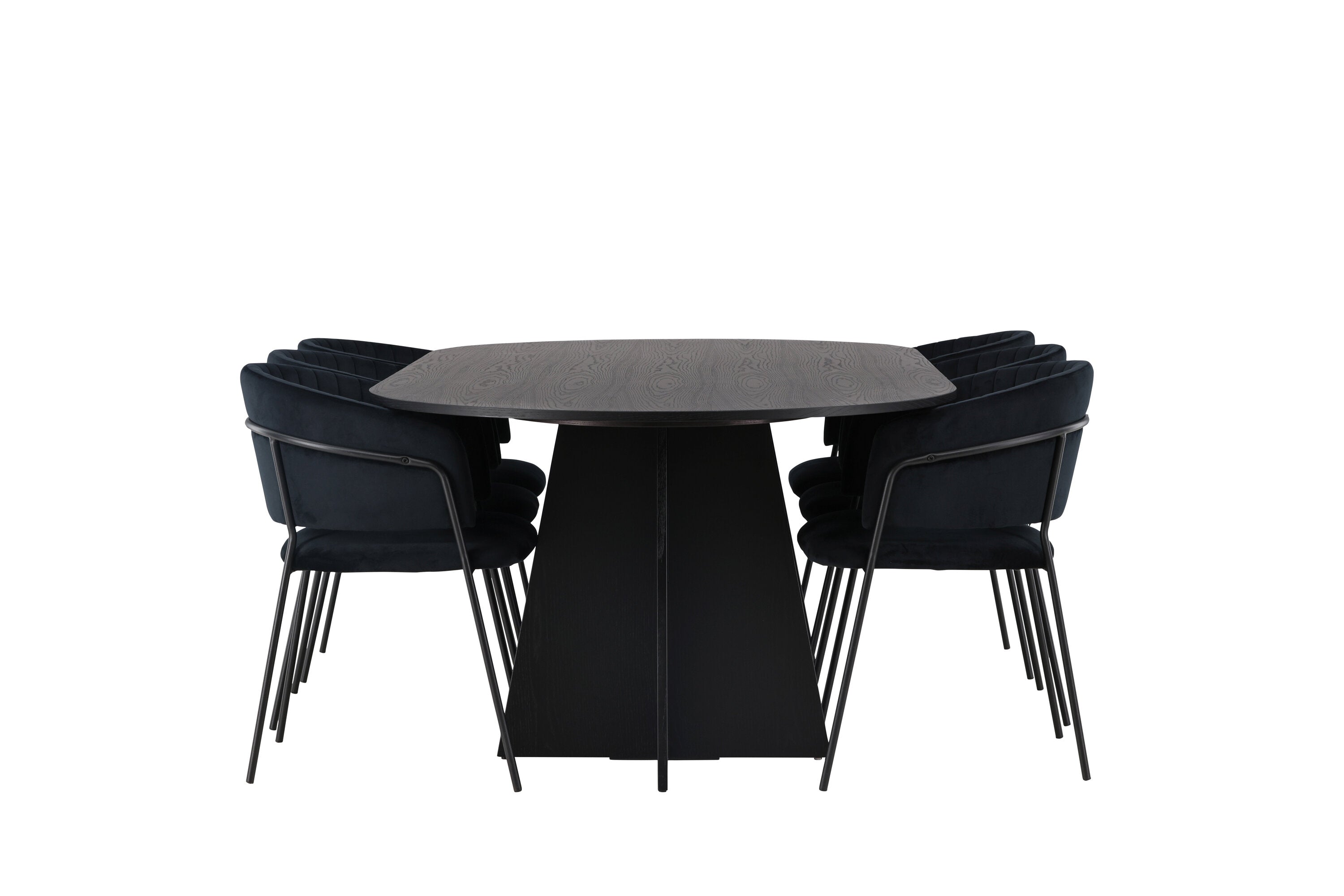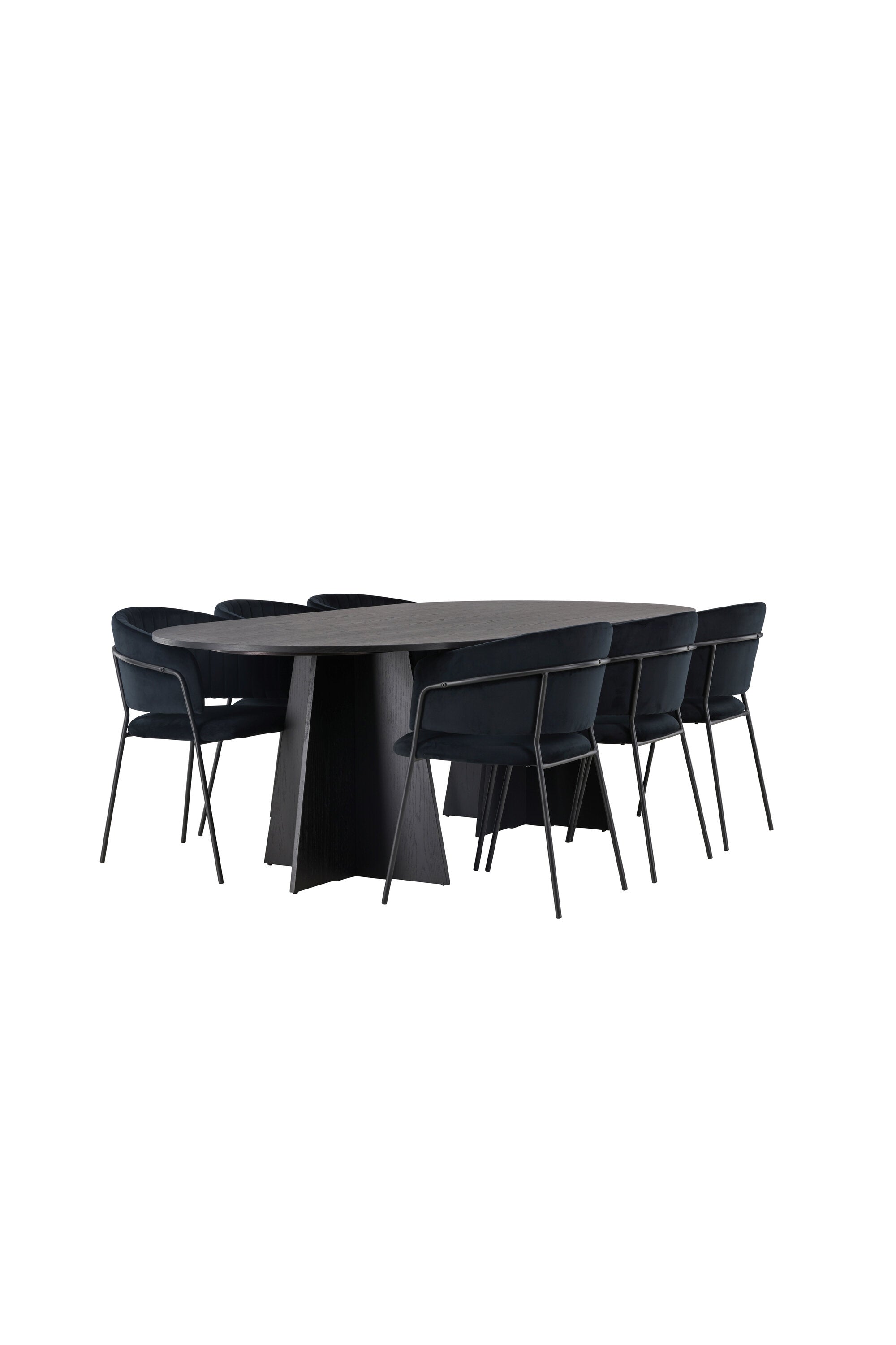 Bootcut oválný jídelní stůl - černá / černá Fanéer + jídelní židle Selma - černá / černý samet _6