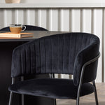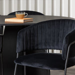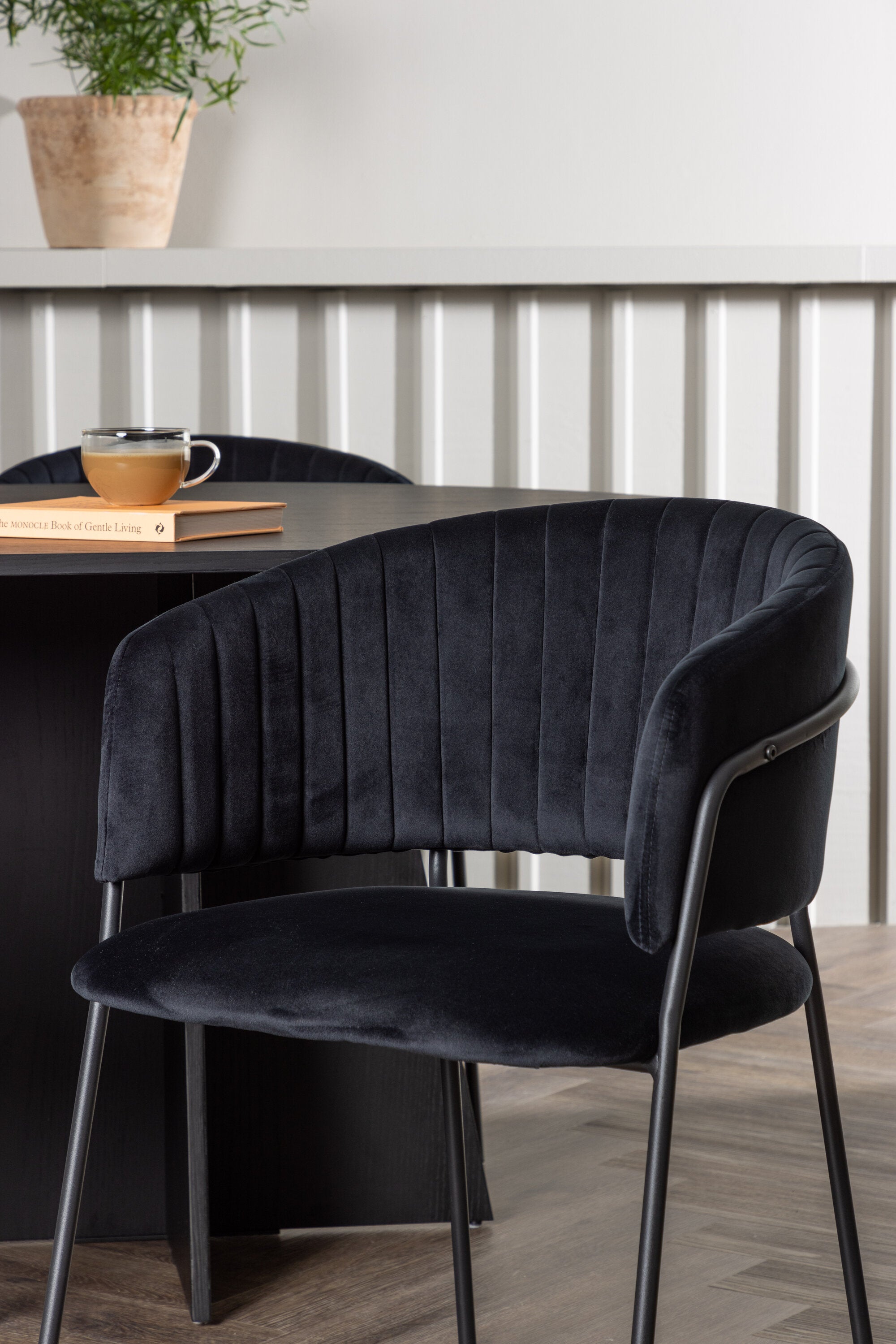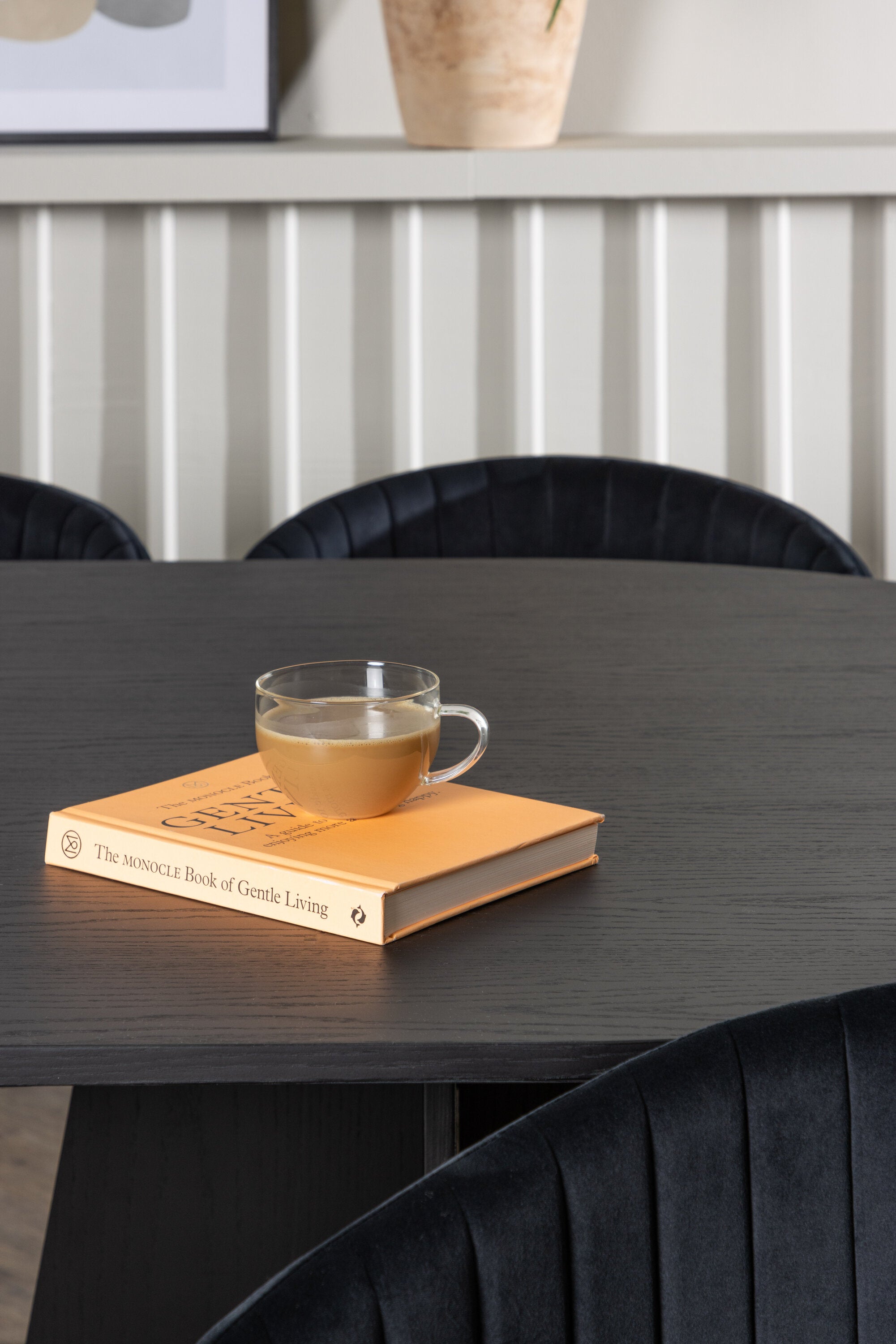 Abychom tento bytelný stůl doplnili, spárujeme jej s černými jídelními židlemi ze série Selma. Se svým celočalouněným designem a lehce zaobleným opěradlem a sedákem nabízí židle Selma výjimečný komfort a podporu. Sametová látka židle s ozdobným prošíváním dodává křeslu extra eleganci, zatímco tenké černé ocelové nohy dodávají celkovému dojmu moderní nádech.