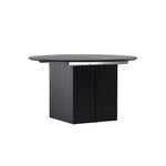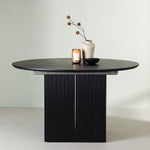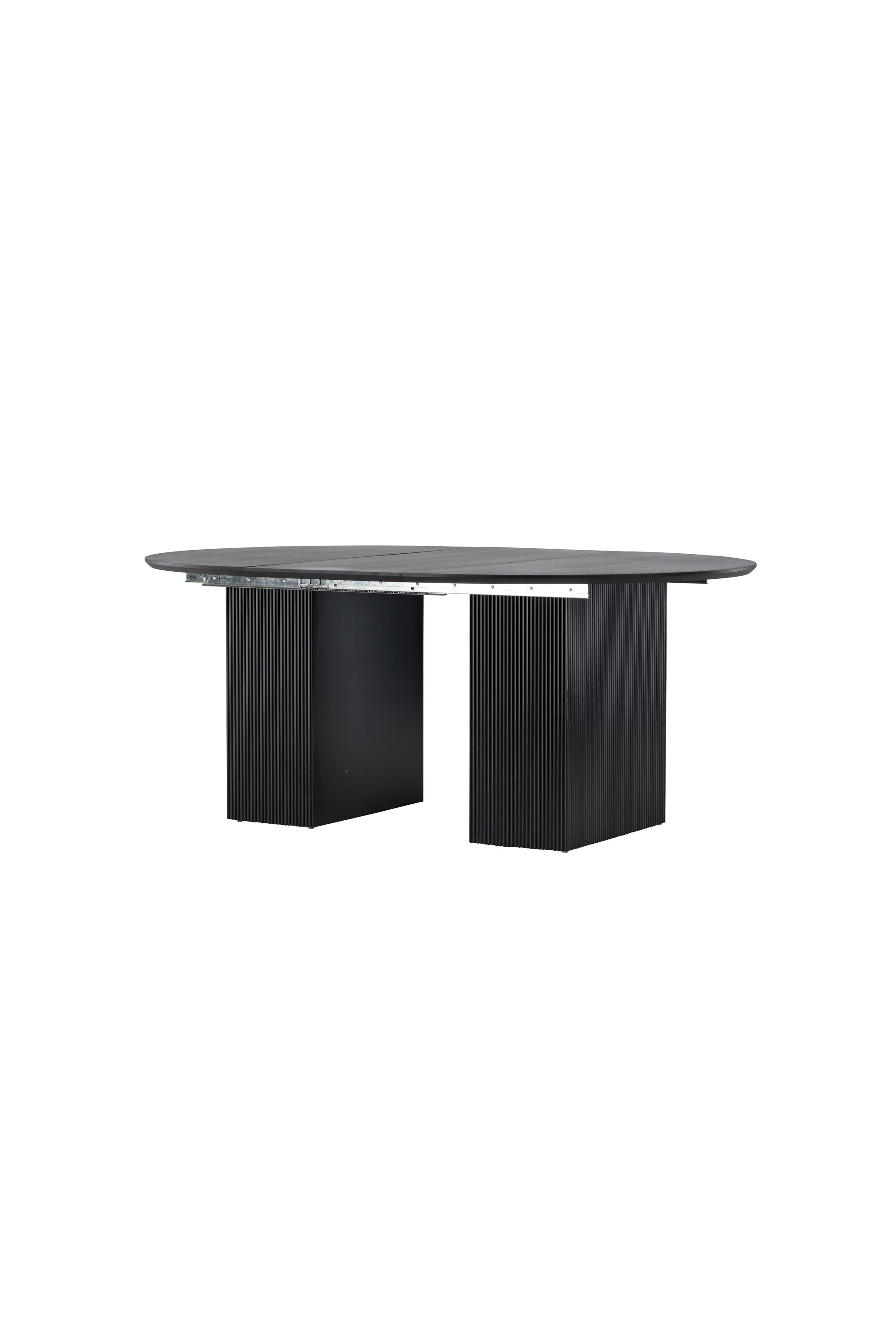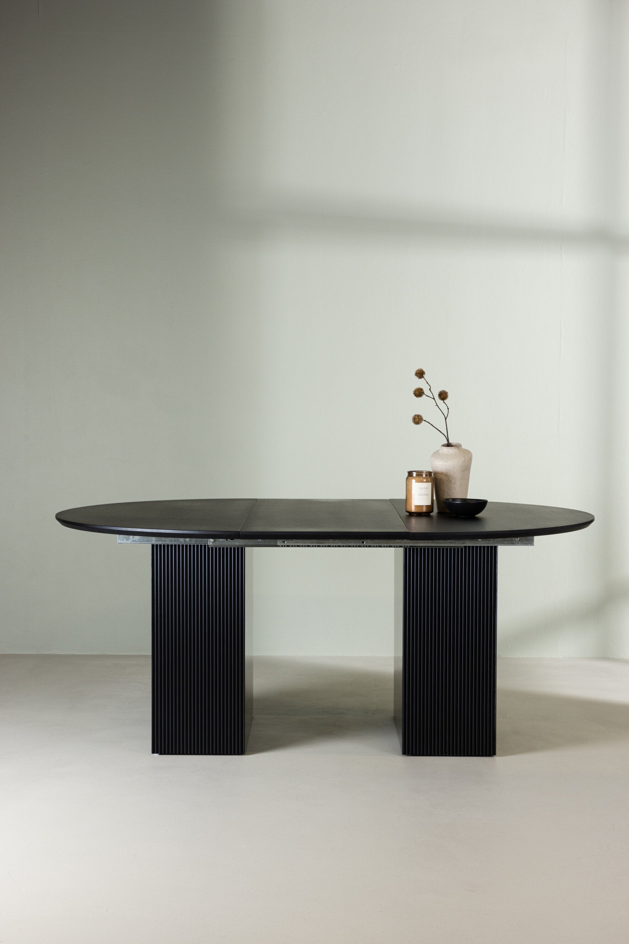 Stylový a elegantní jídelní stůl Matilda se přizpůsobí vašim potřebám! Tento rozkládací jídelní stůl má kulatou desku z černé MDF s dýhou a robustní rám se dvěma nohami ve tvaru kvádru. Jakmile k vám přijde více hostů, stůl se rychle promění v delší jídelní stůl oválného tvaru. Nedělejte kompromisy mezi praktičností a stylovým designem. Průměr stolu: 130 cm.