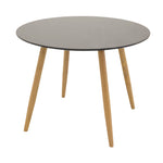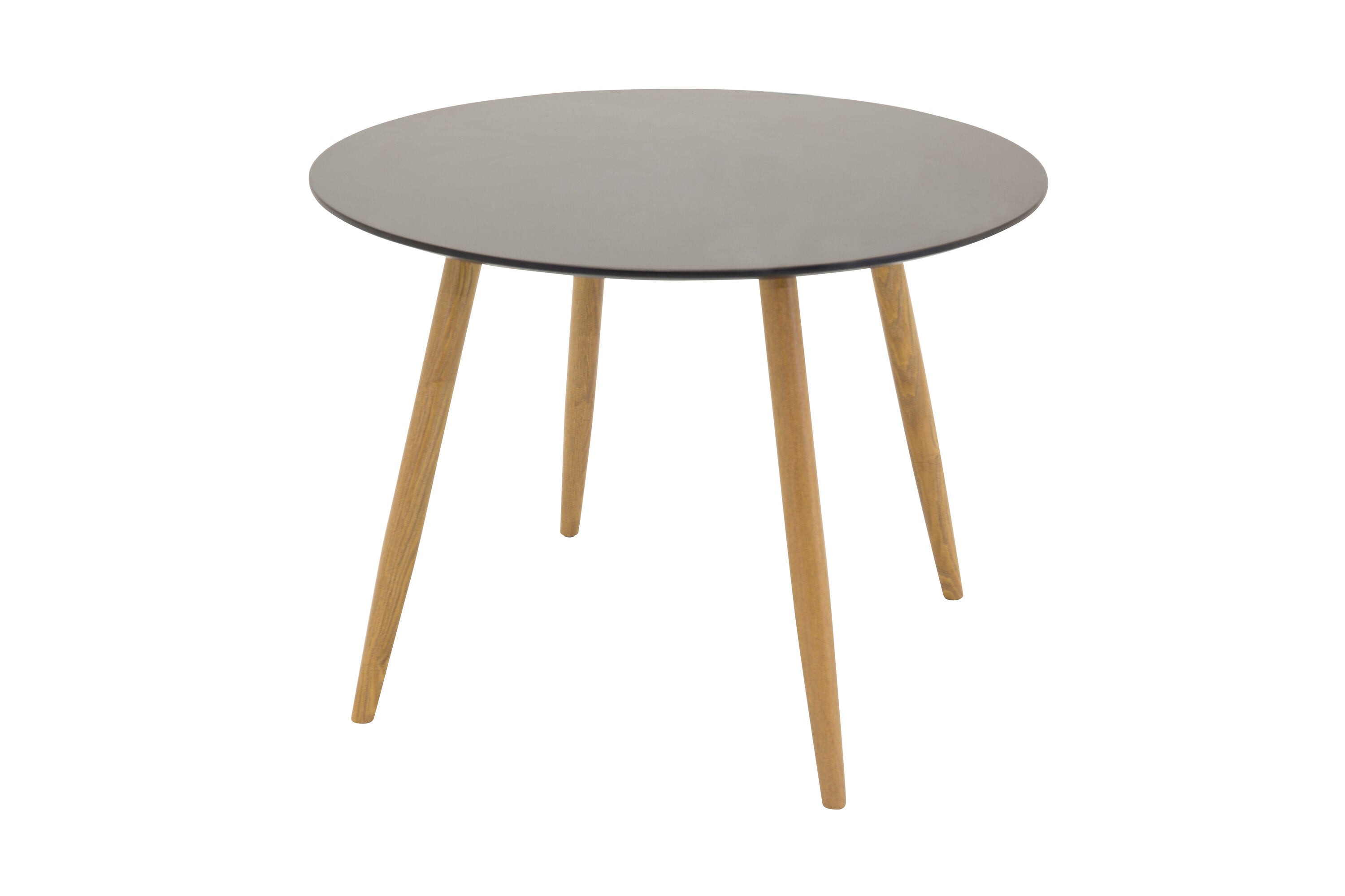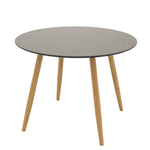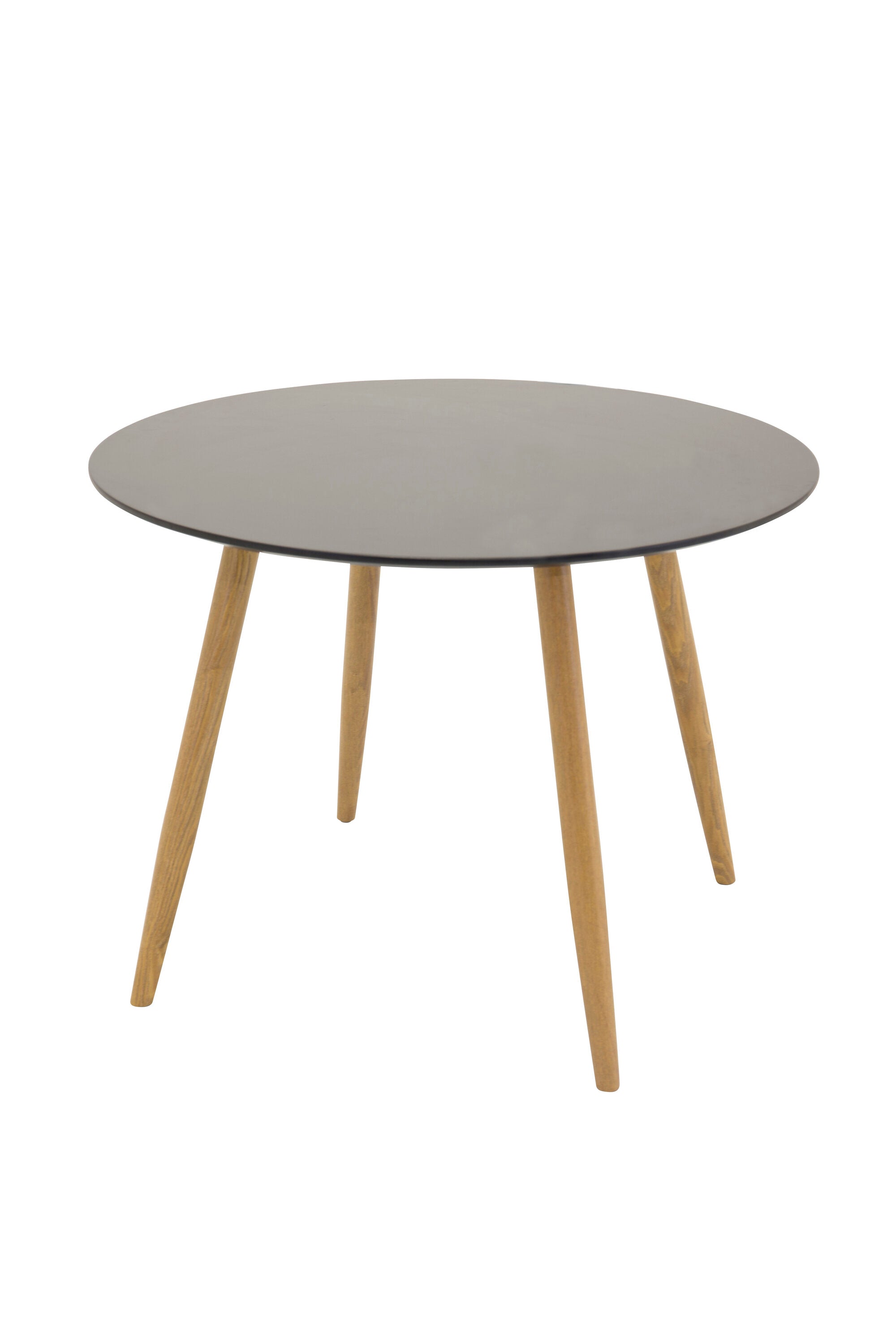 Kulatý jídelní stůl z řady Plaza s deskou z MDF a kovovými nohami.