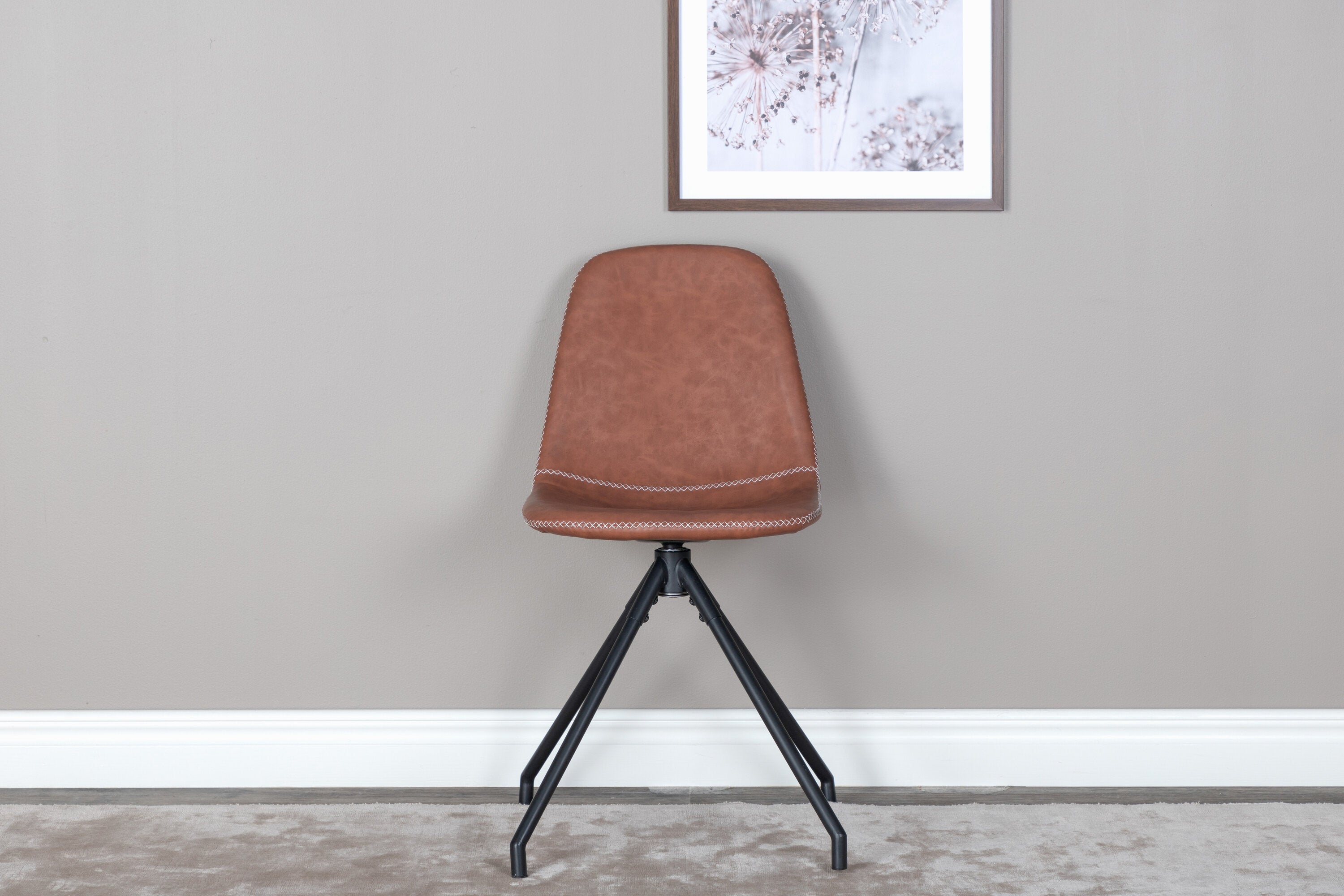 Polar je jídelní židle s celočalouněnou konstrukcí a praktickou otočnou funkcí. Rám a nohy z černého práškově lakovaného kovu, mírně zaoblené opěradlo a sedák z čalouněné hnědé umělé kůže s bílým ozdobným prošitím. Je stejně pohodlný jako elegantní!