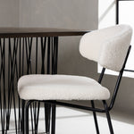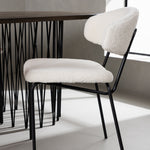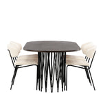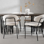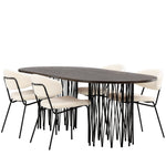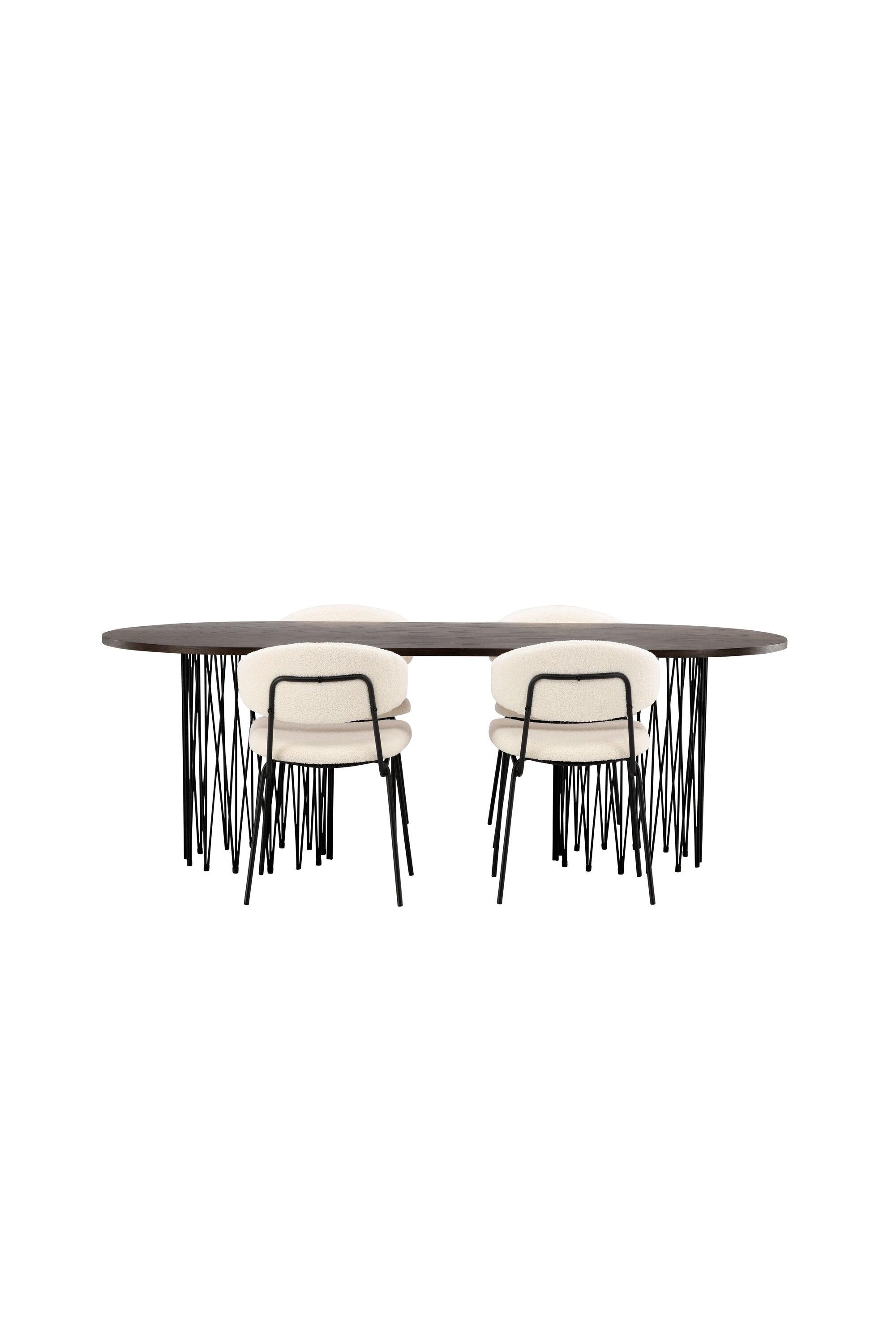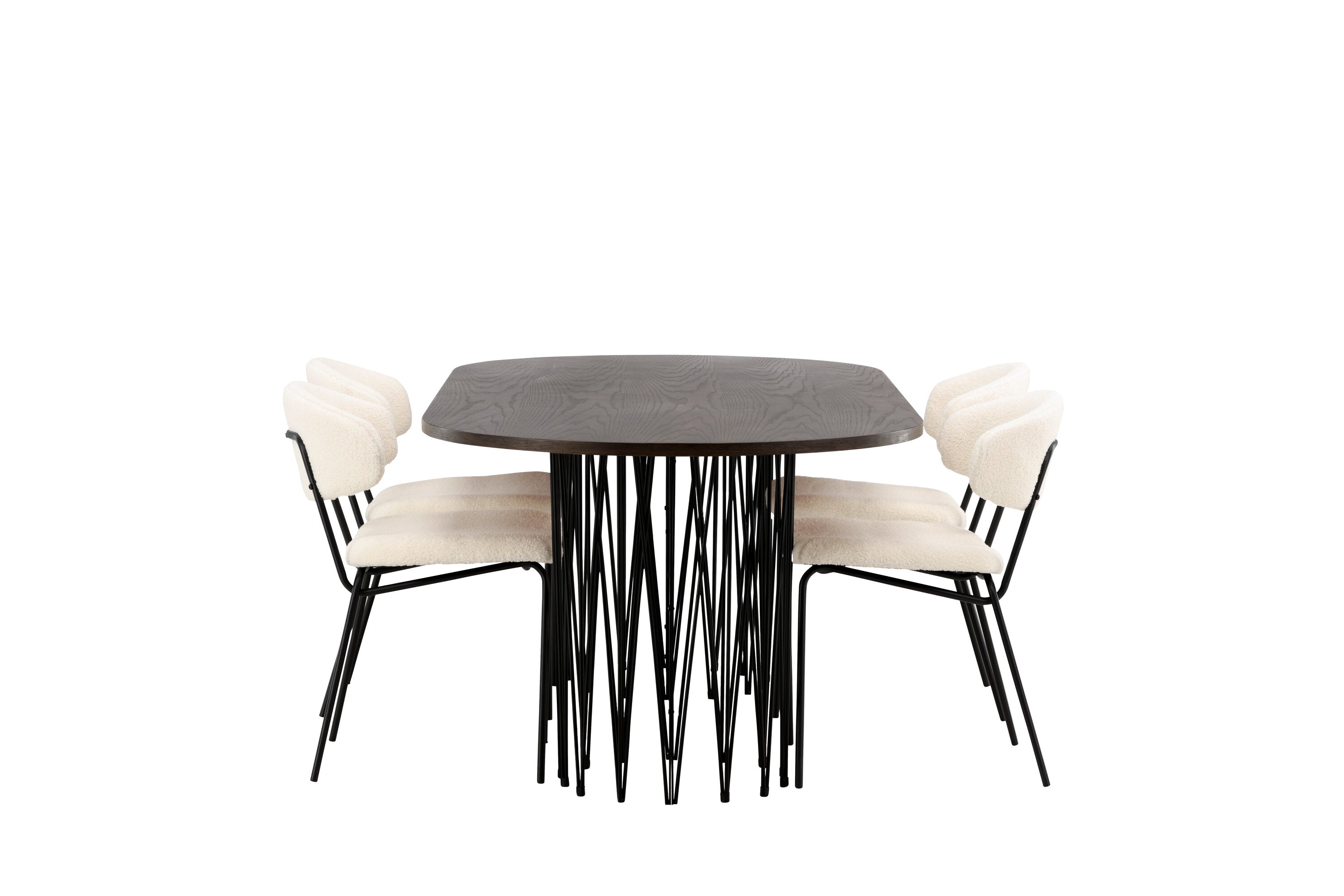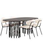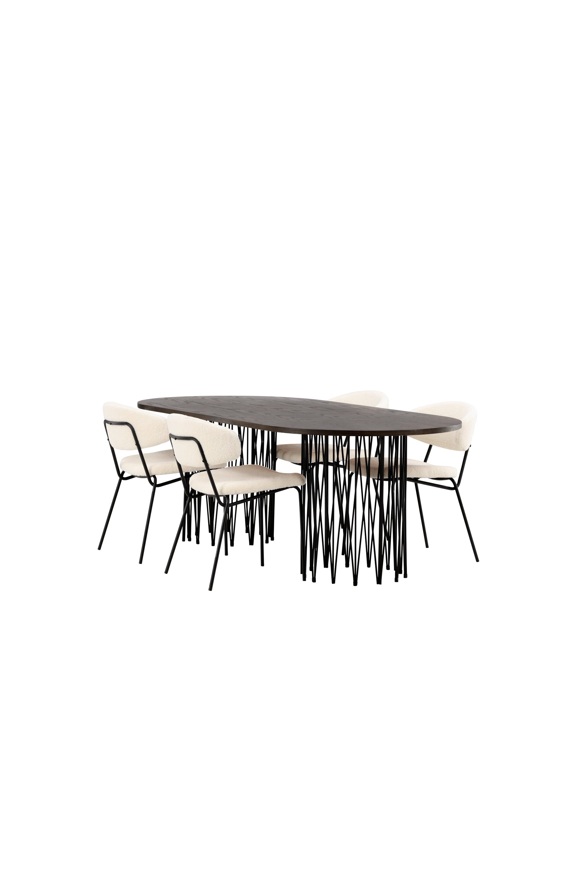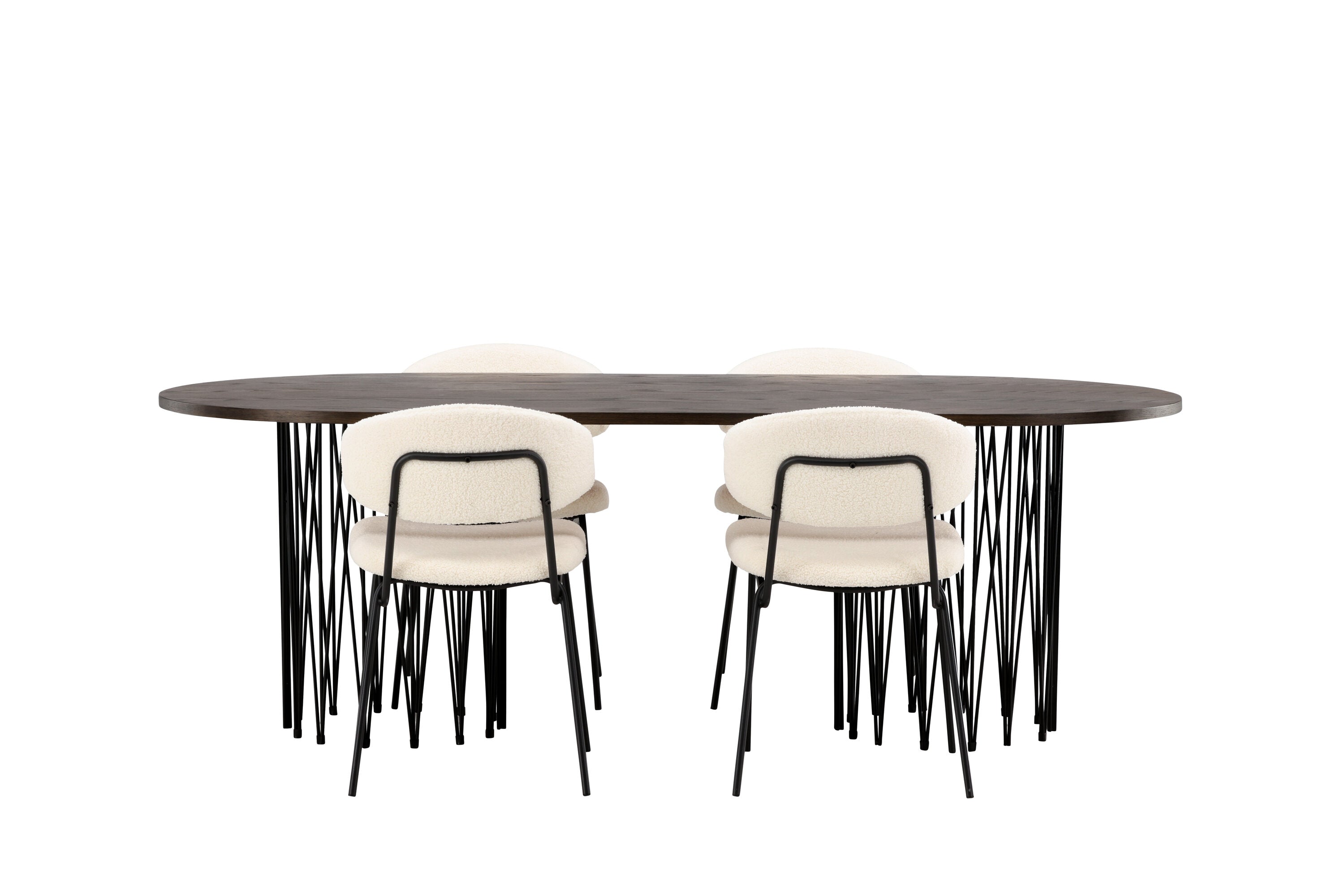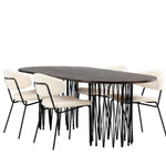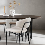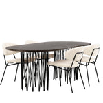 Kamenný oválný jídelní stůl - černá / mocca dýha + jídelní židle Chico - černá / bílá Boucle _4