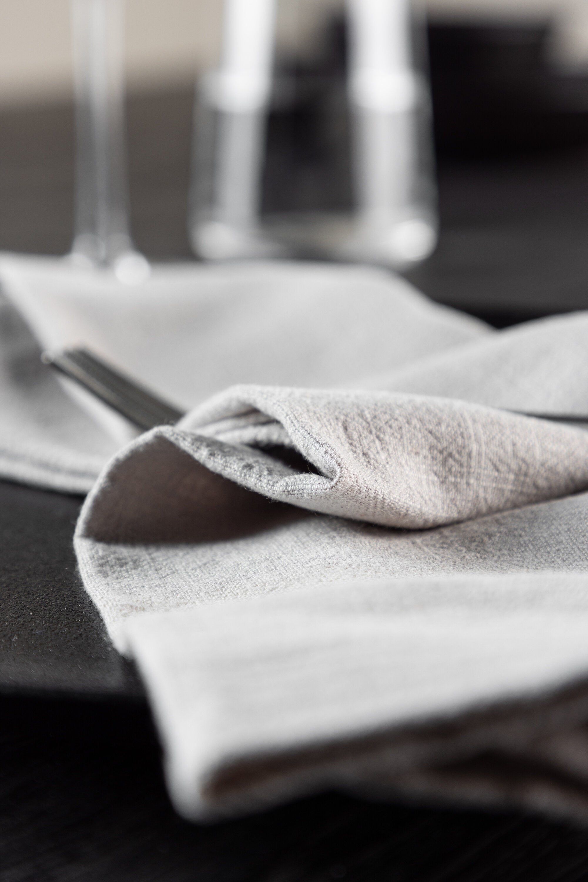 Ubrousek Bloria ve světle šedém odstínu. Díky svým velkorysým rozměrům 40x40 cm a prodeji v praktickém balení po 2 kusech je Bloria tou nejlepší volbou pro vytvoření jednotného a sofistikovaného prostírání.
