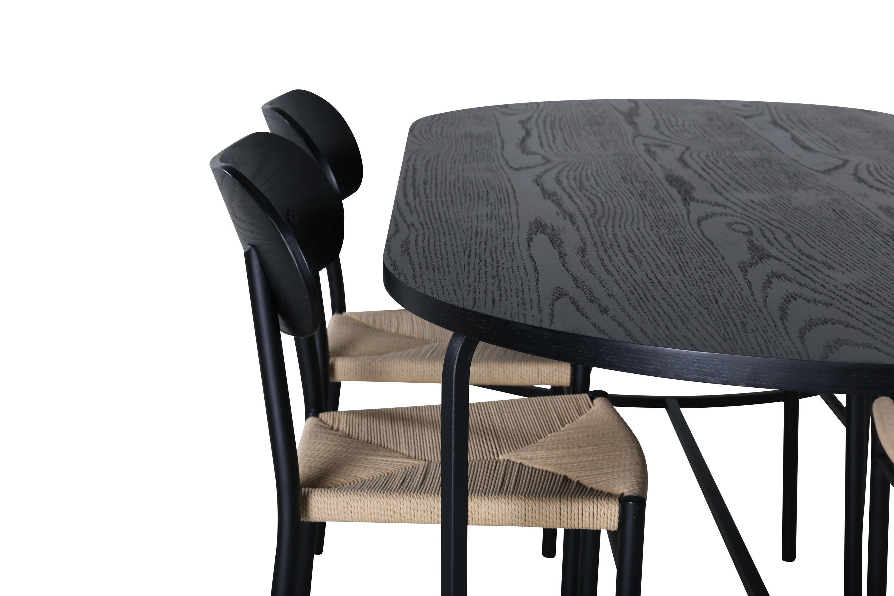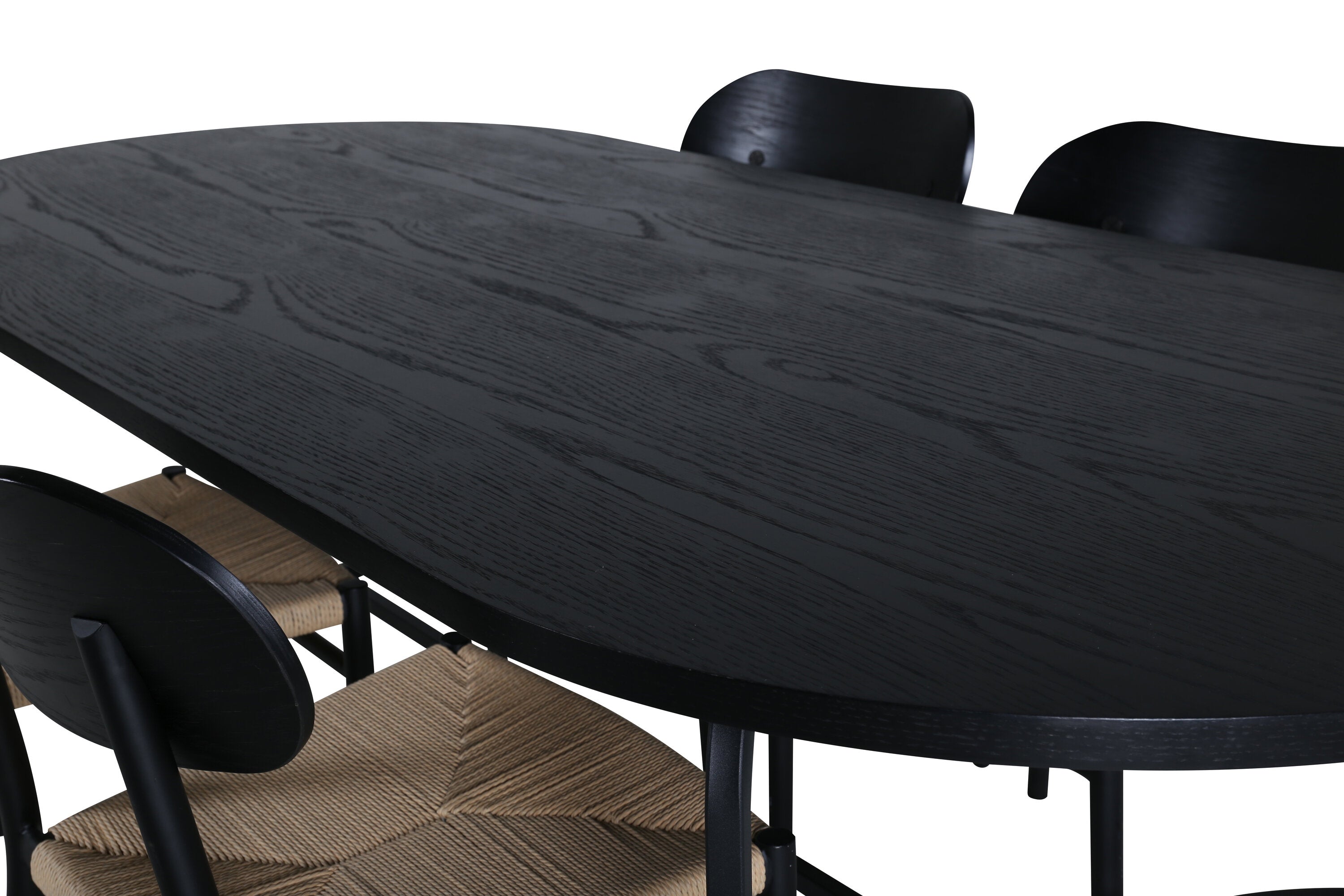 Skate oválný jídelní stůl - černá / černá dýha + jídelní židle Polly - černá / přírodní _4