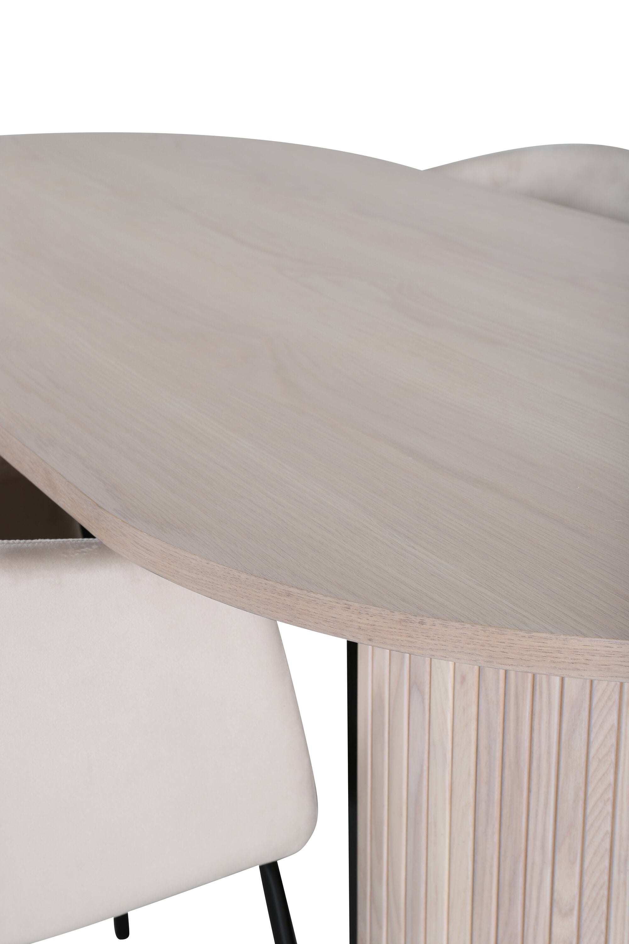 Oválný jídelní stůl Bianca , White Wash Černá dýha + židle Berit , Black Beige Velvet_4