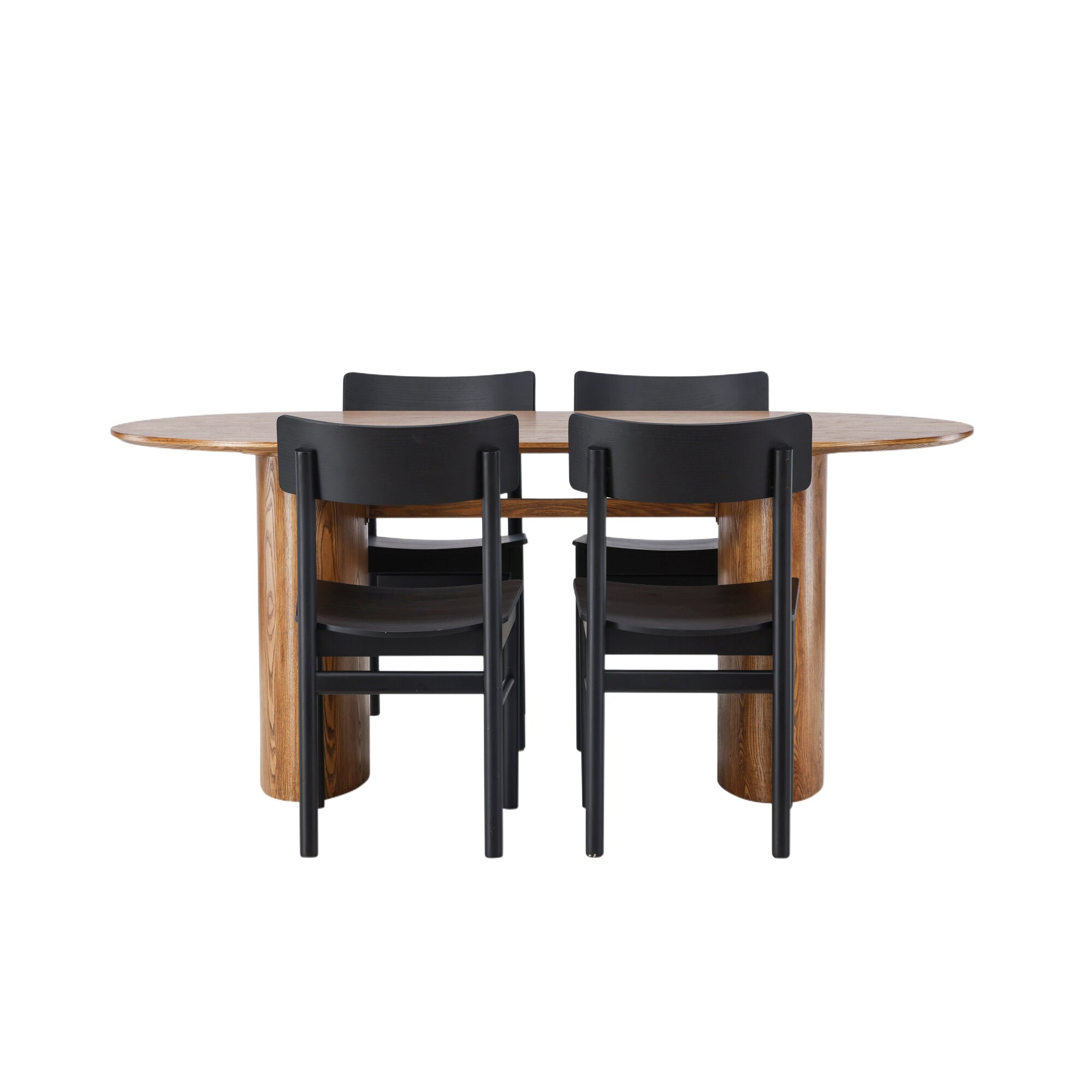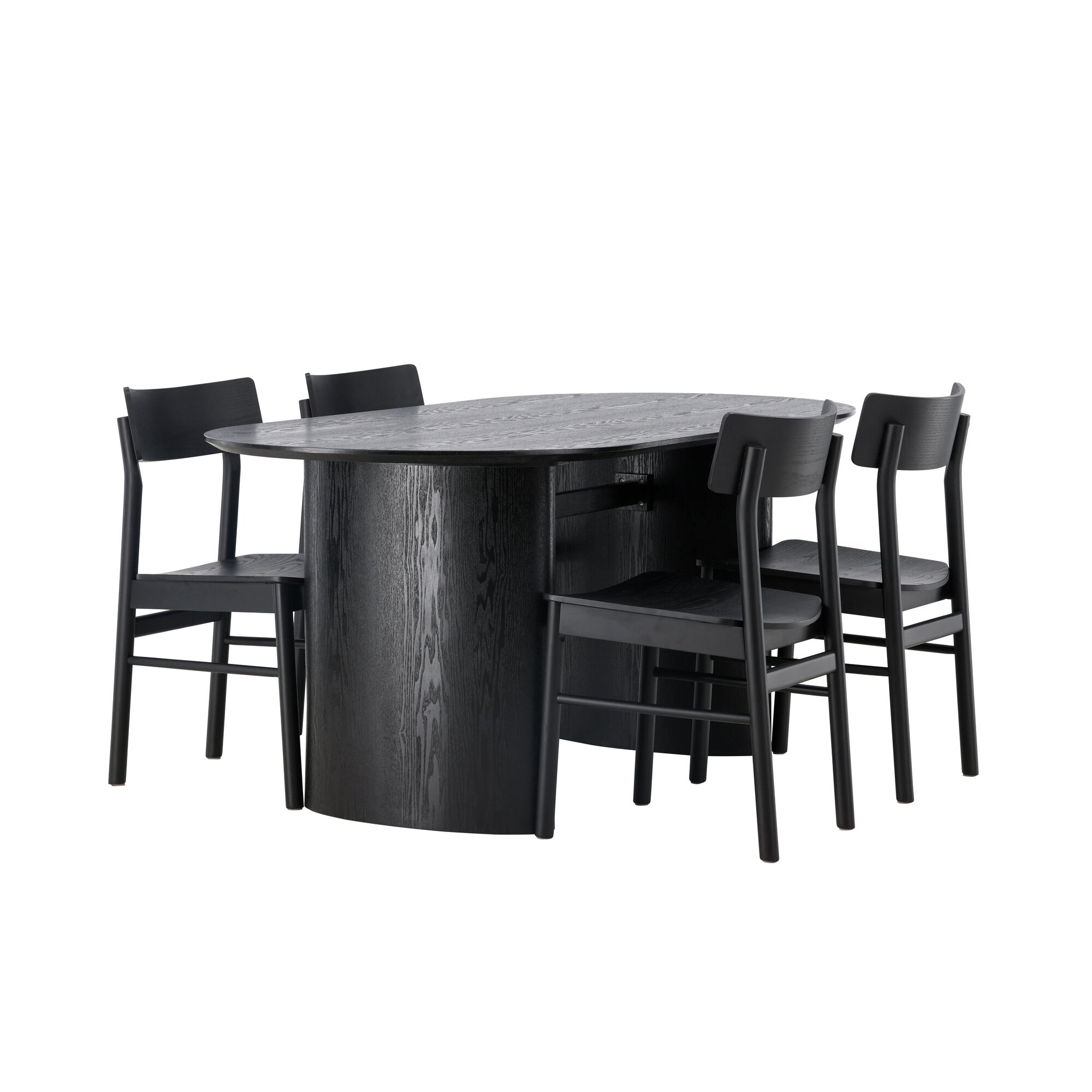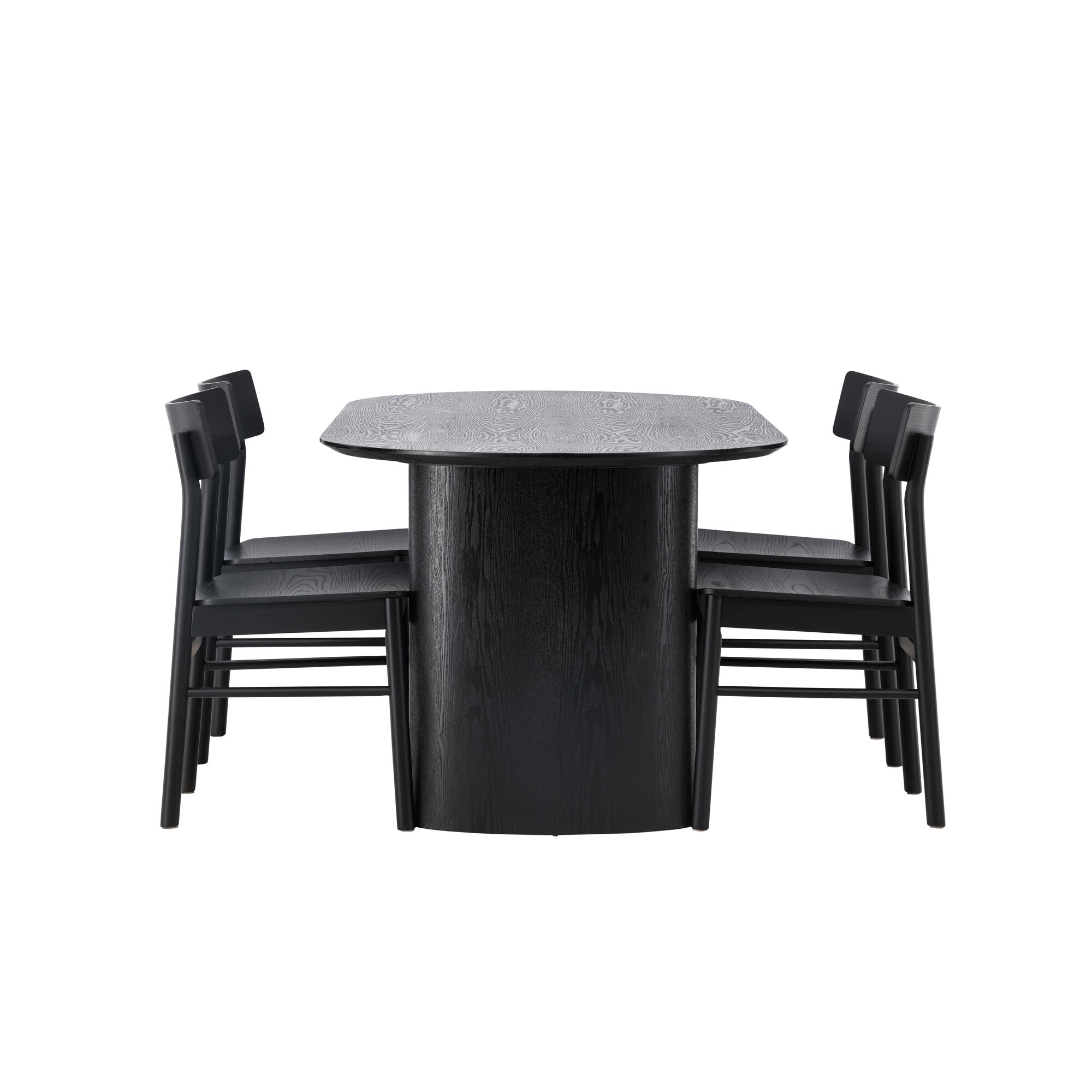 Bootcut Oválný jídelní stůl - Černá / Černá Fanéer + Jídelní židle Tempe - Matná černá / Kov _4
