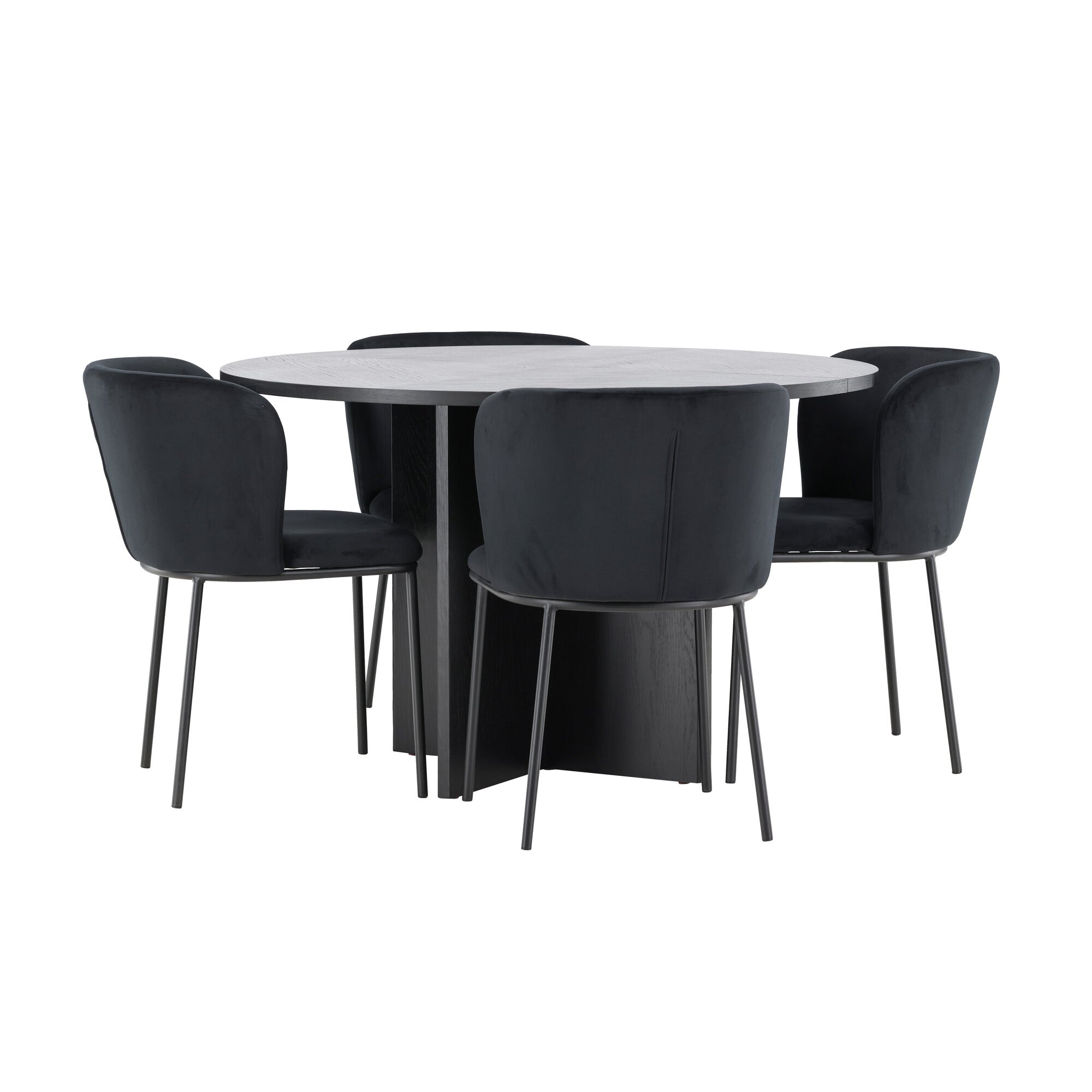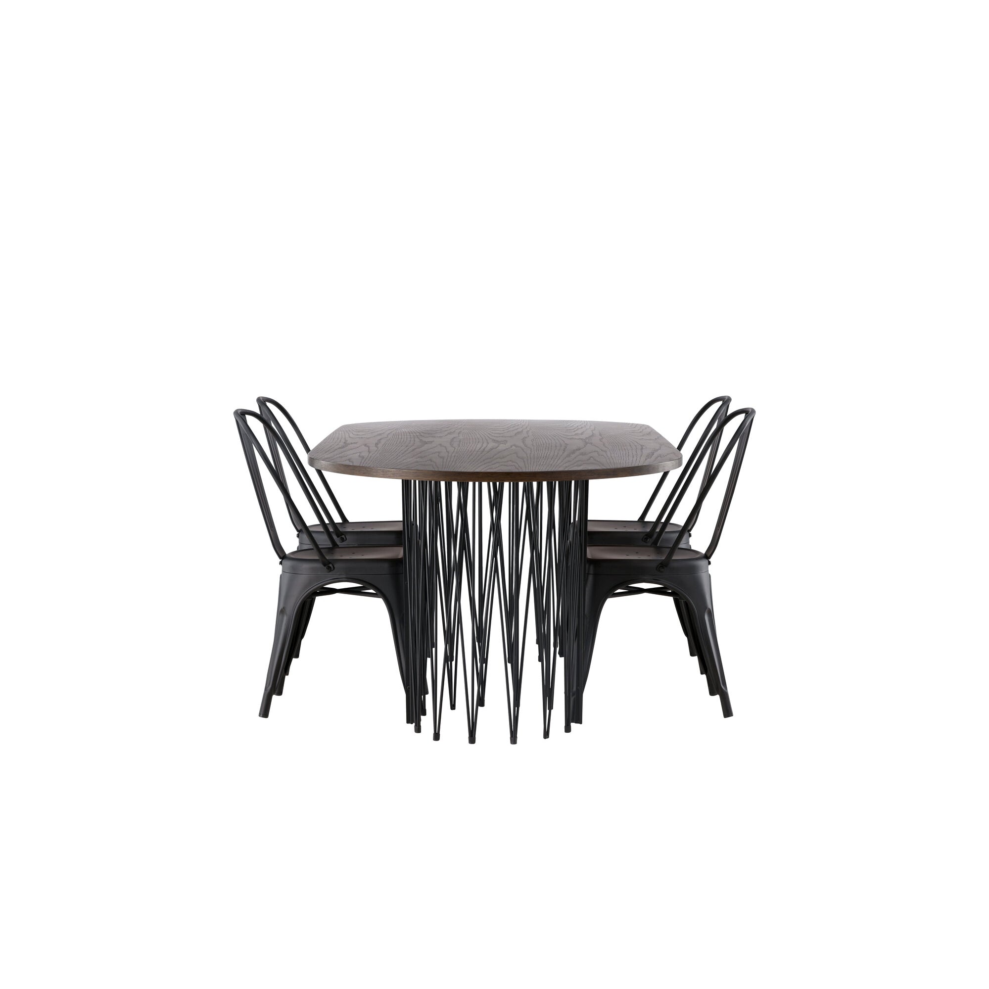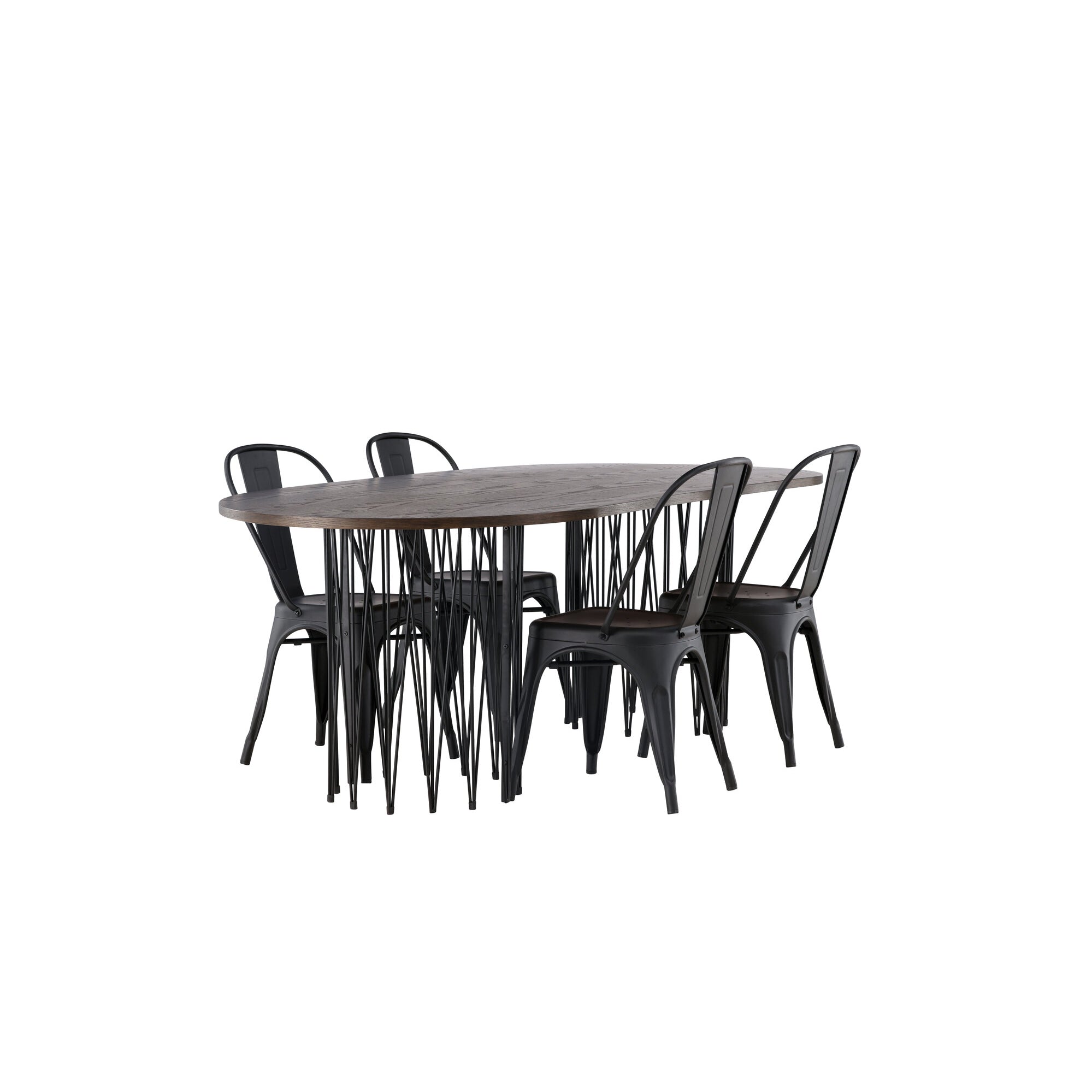 Bootcut Oválný jídelní stůl - Černá / Černá Fanéer + Jídelní židle Tempe - Matná černá / Kov _4