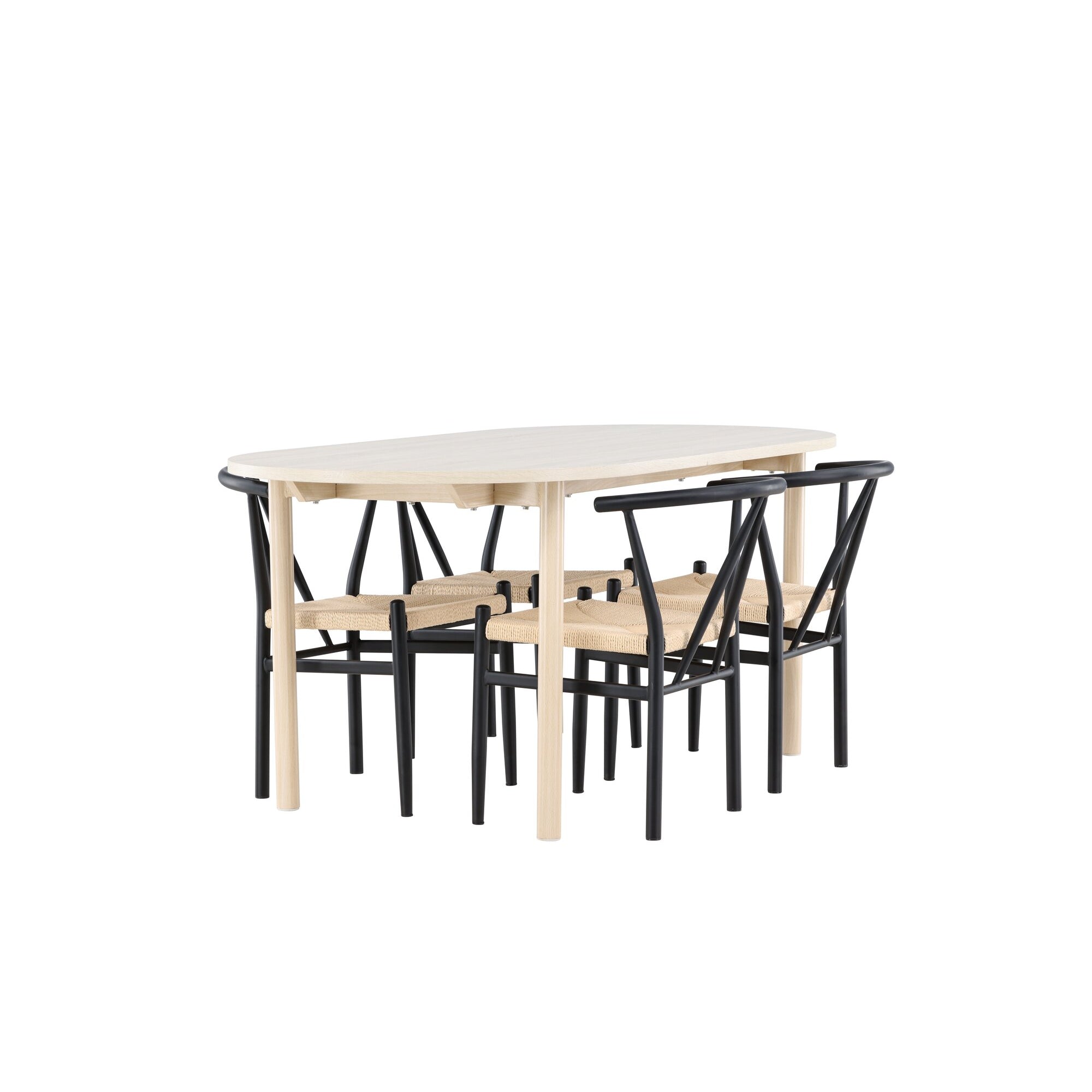 Stůl Strada - Whitewash se 4 židlemi Edina - Black