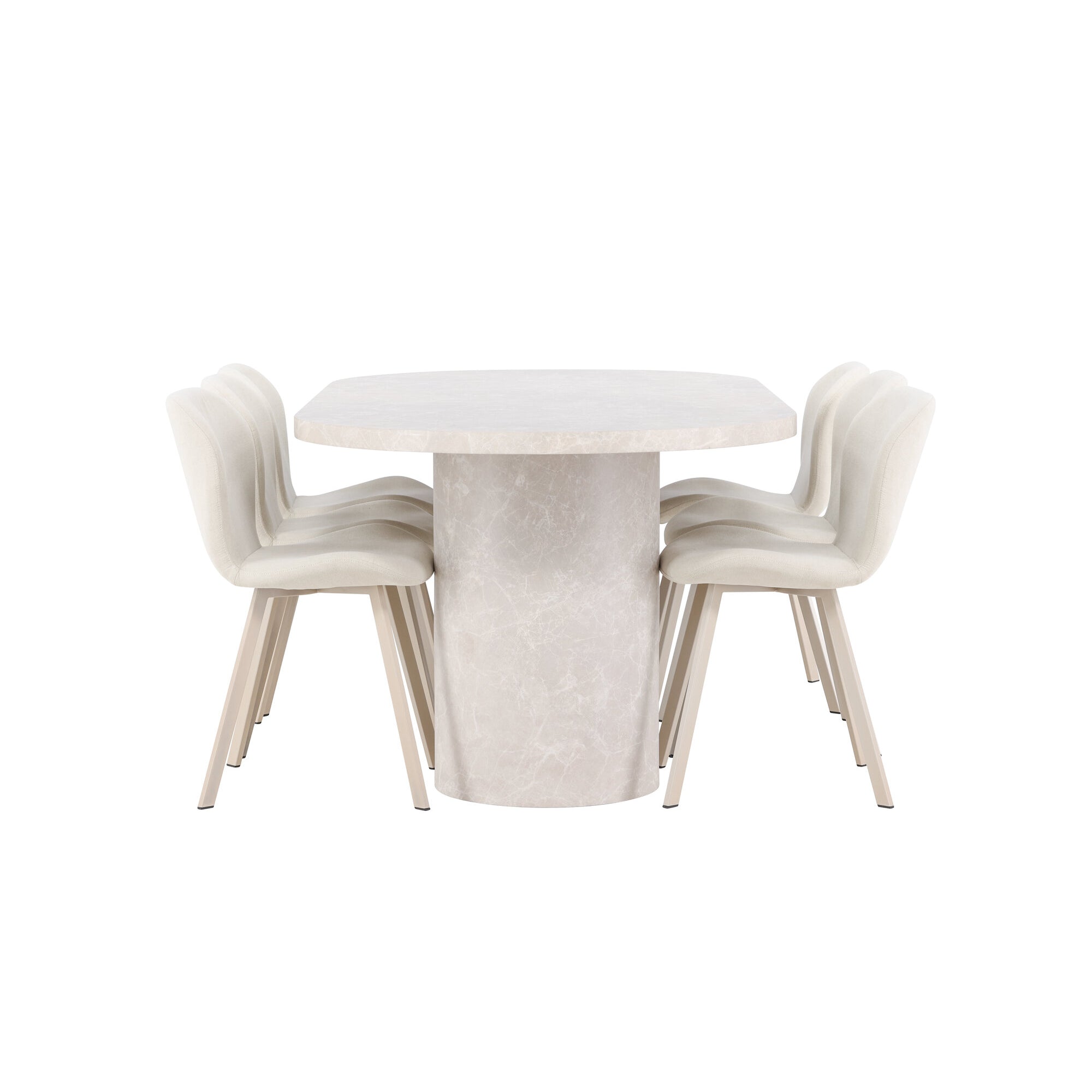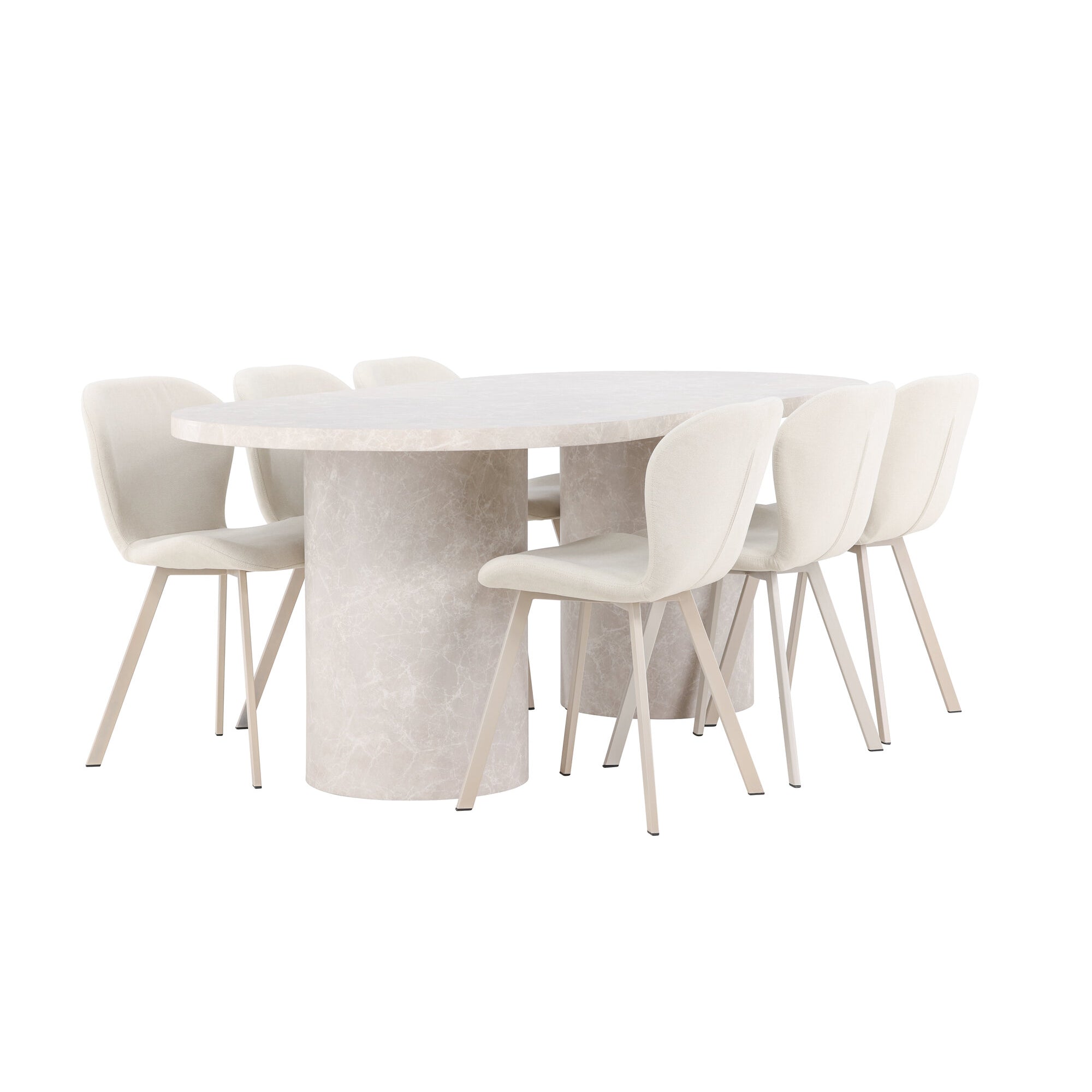 Stůl Narvik - béžový se 6 židlemi Lilja - béžový