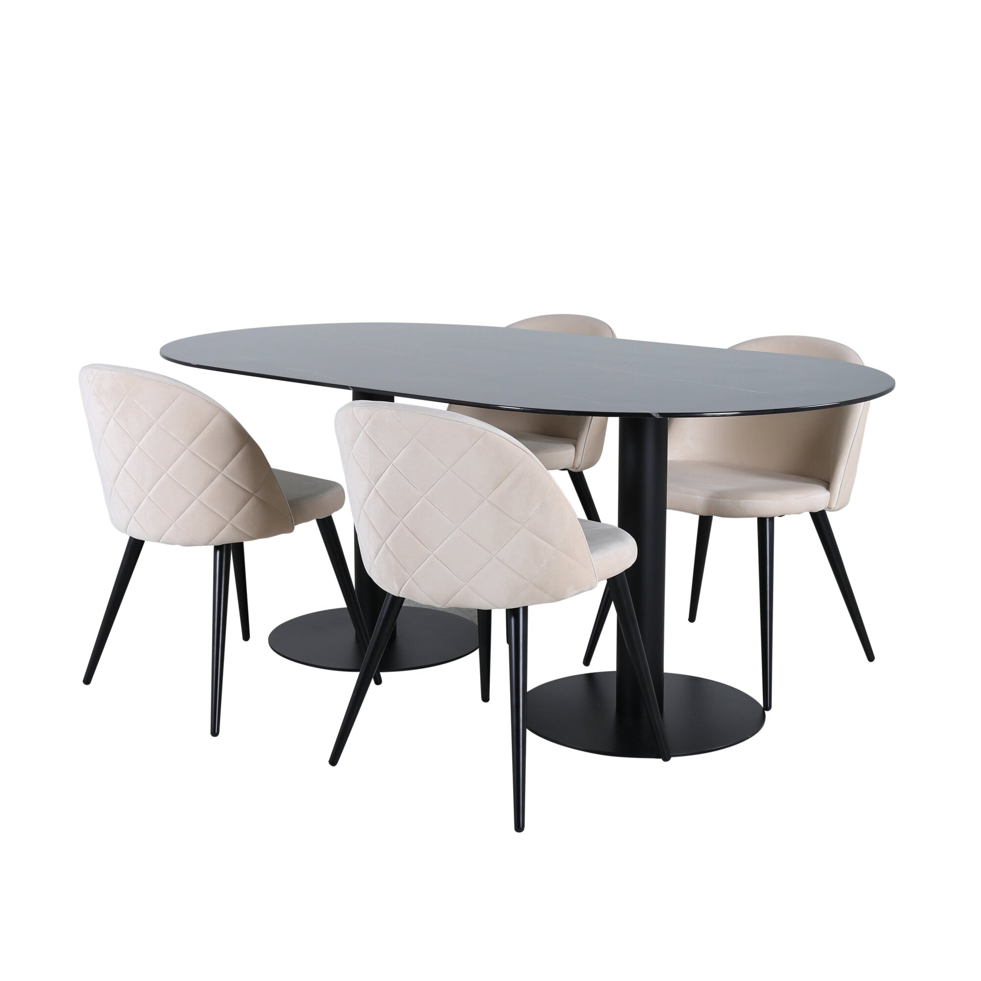 Skate oválný jídelní stůl - černá / černá dýha + židle Berit - černá / béžová Velvet_4