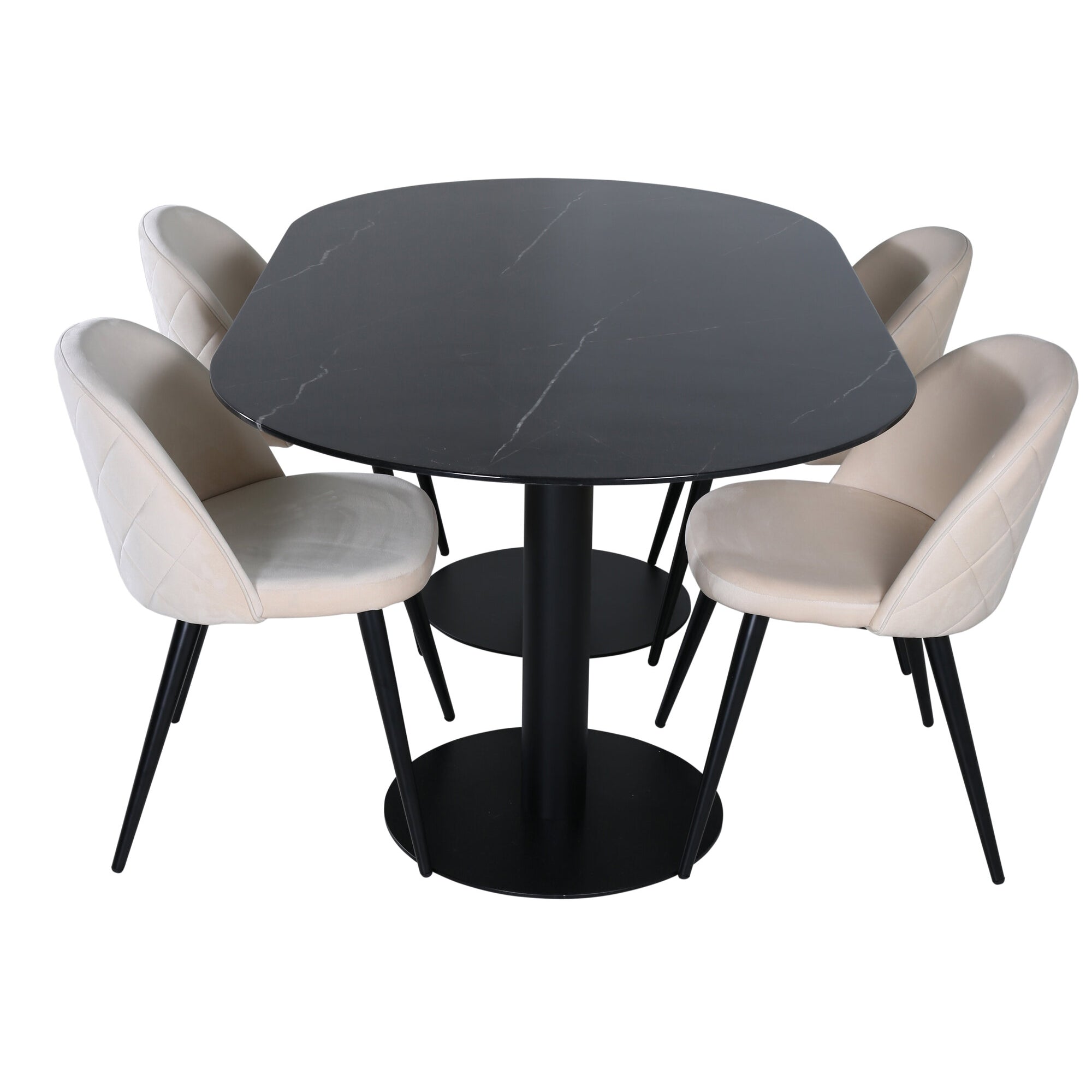 Pillan oválný jídelní stůl - černá / černá sklo, mramor + židle se sametovými stehy - černá / béžová Velvet_4
