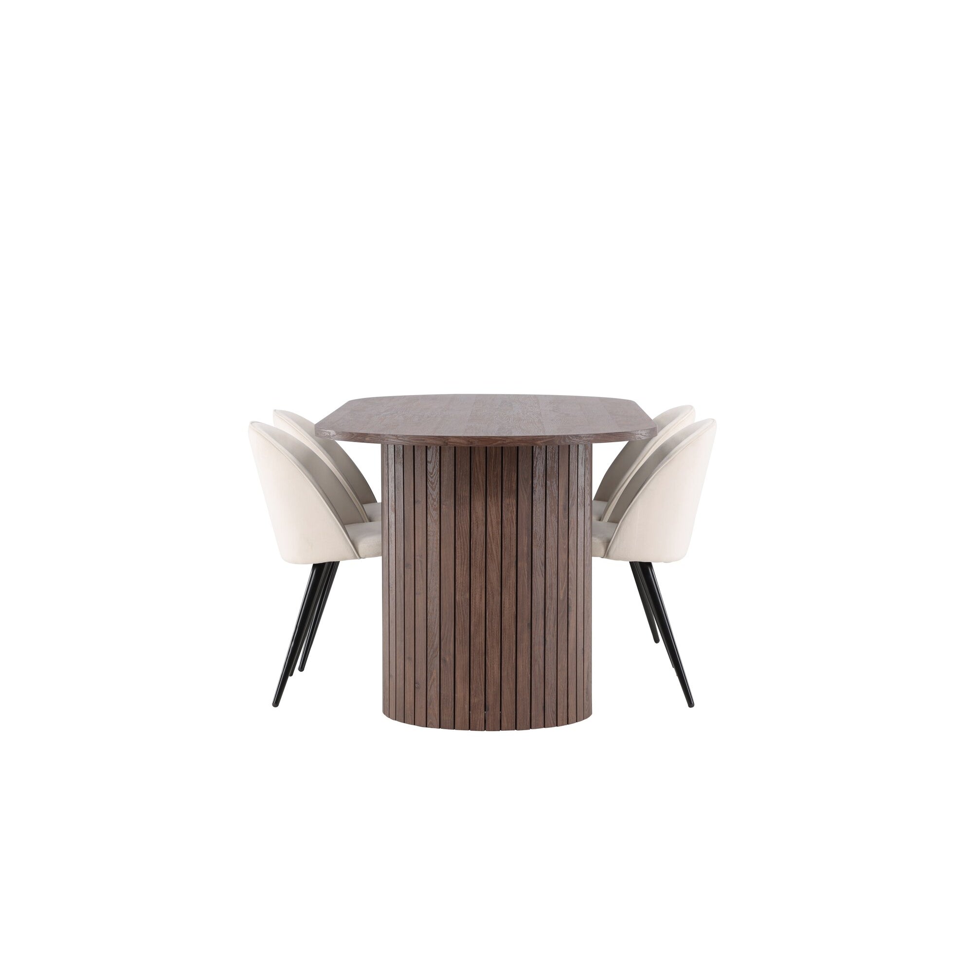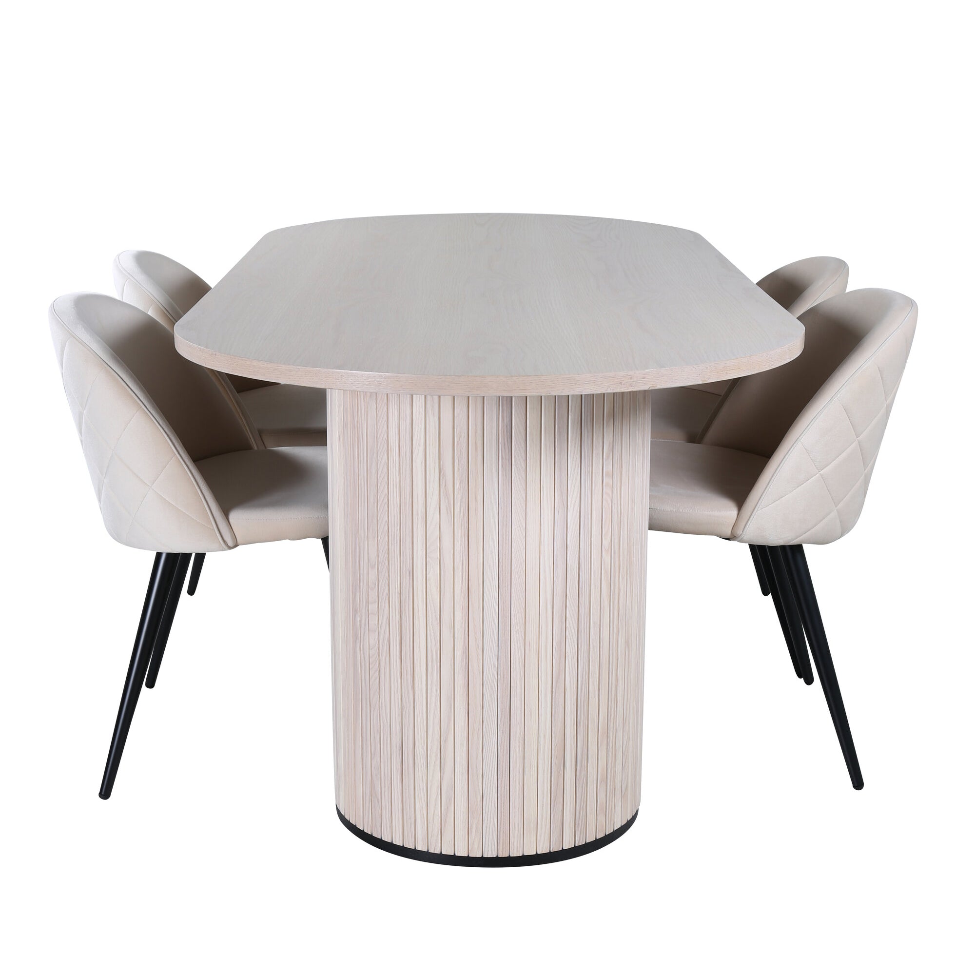 Oválný jídelní stůl Bianca, židle White Wash Černá Dýha+Sametové stehy, Černá Béžová Velvet_4