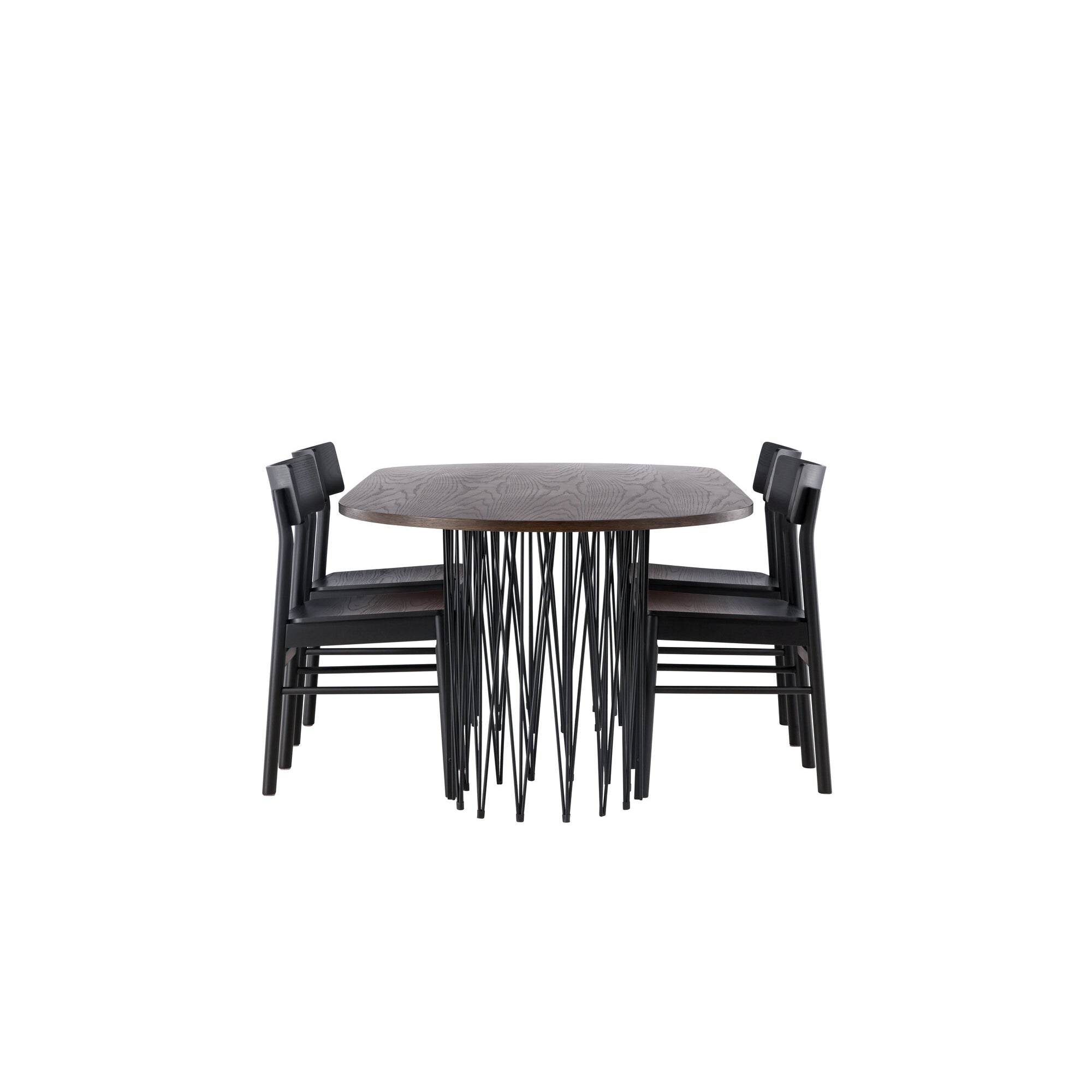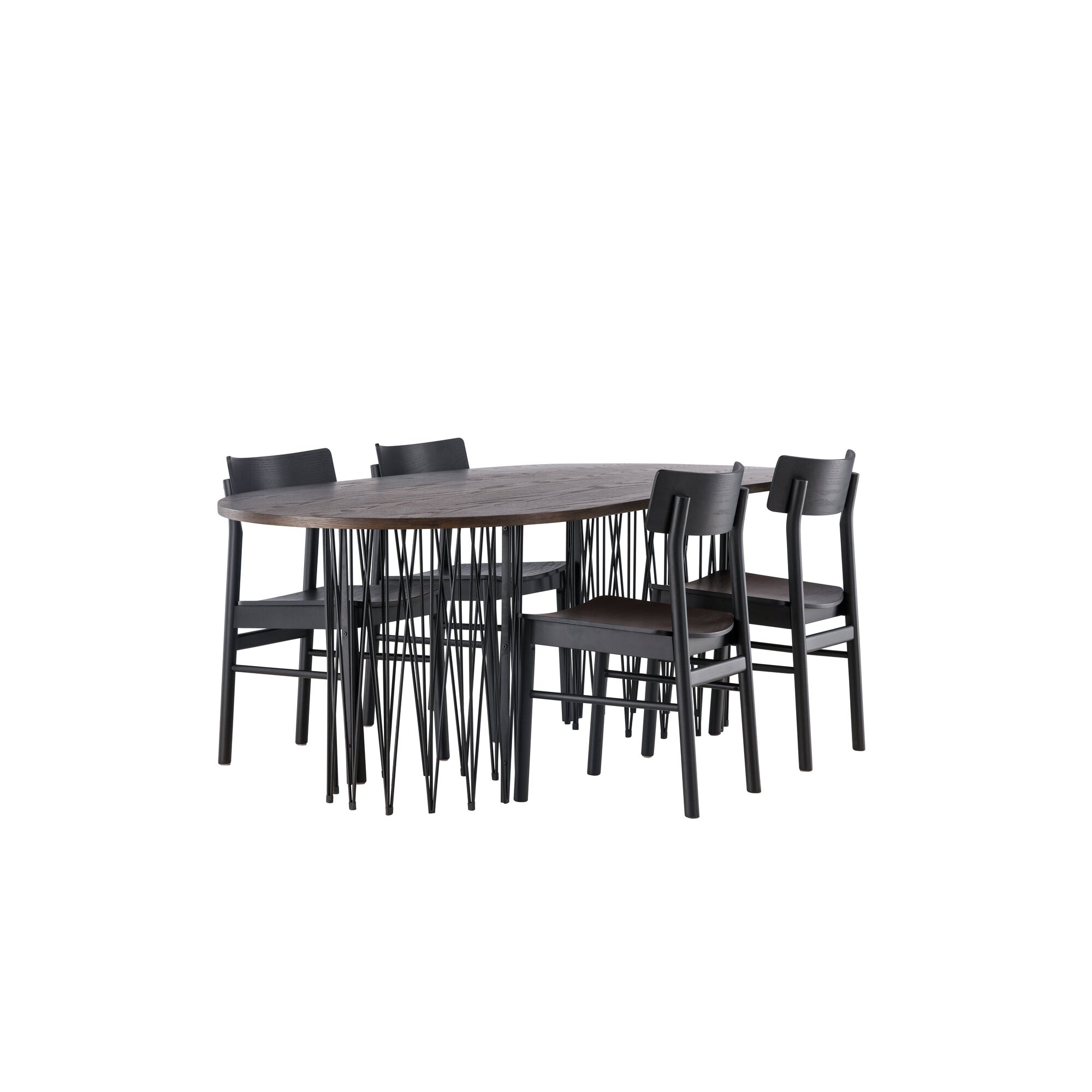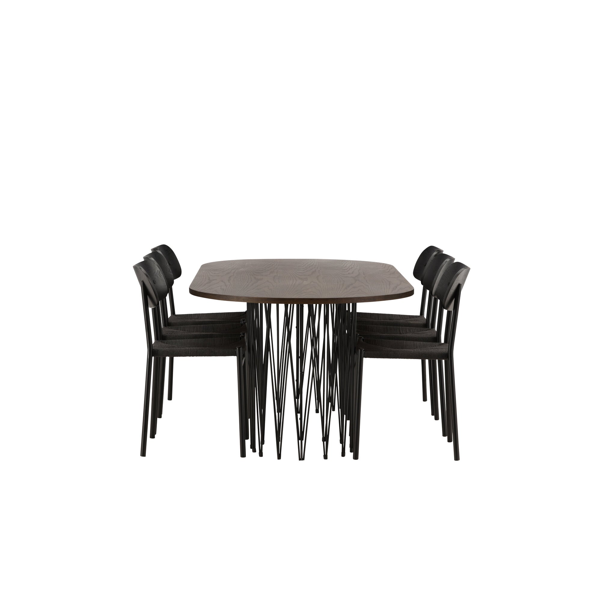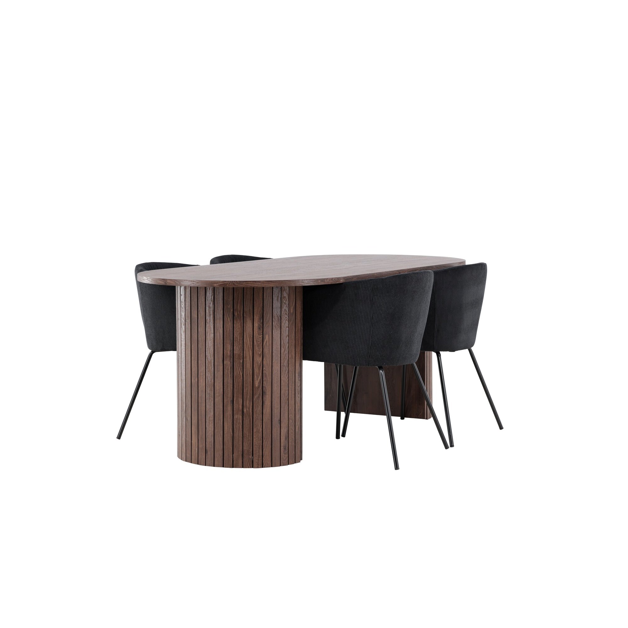 Bootcut Oválný jídelní stůl - černá / černá Fanéer + jídelní židle Rosie - černá / tmavě šedá látka _6