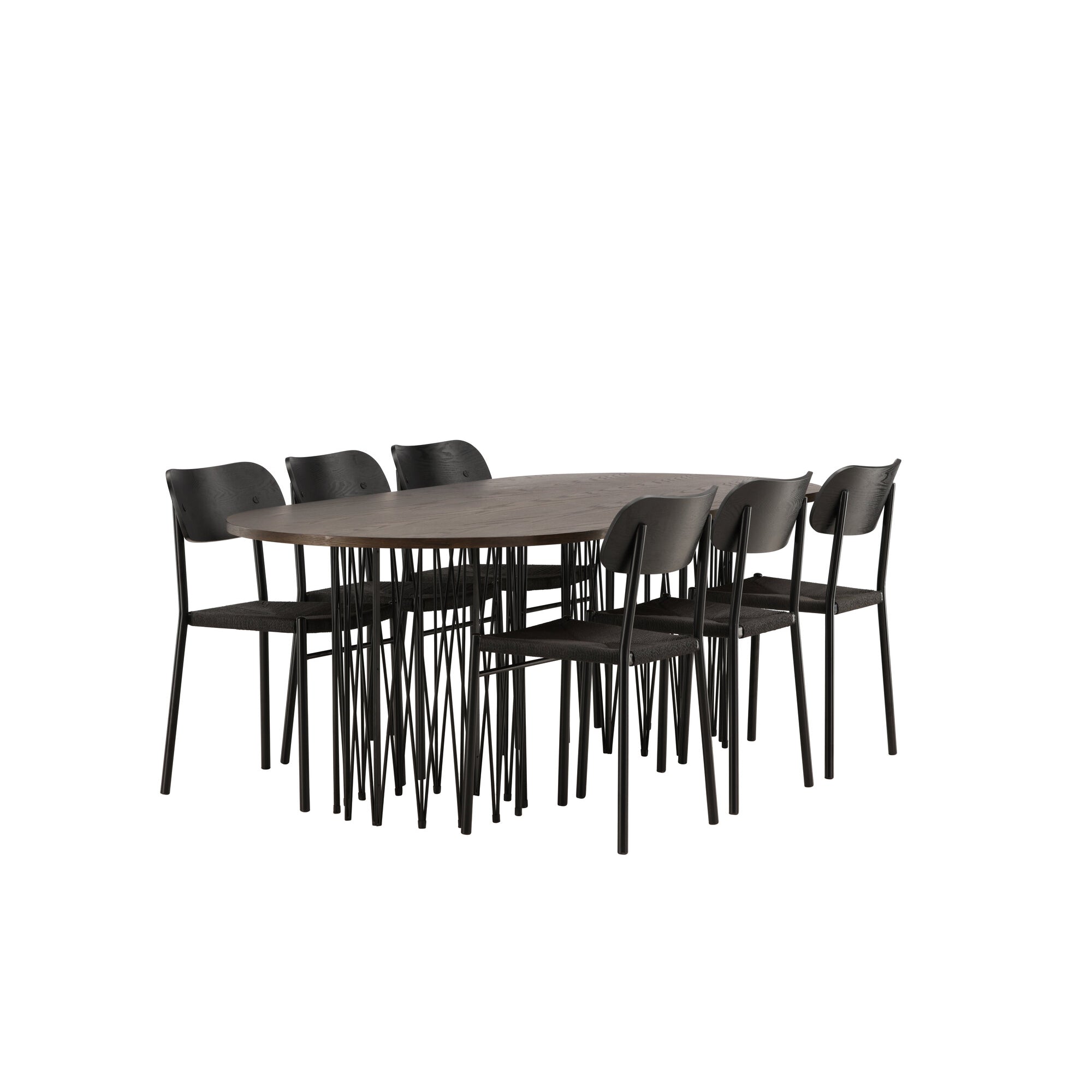 Bootcut Oválný jídelní stůl - Černá / Černá Fanéer + Jídelní židle Yesterday - Černá / Černá Boucle _6