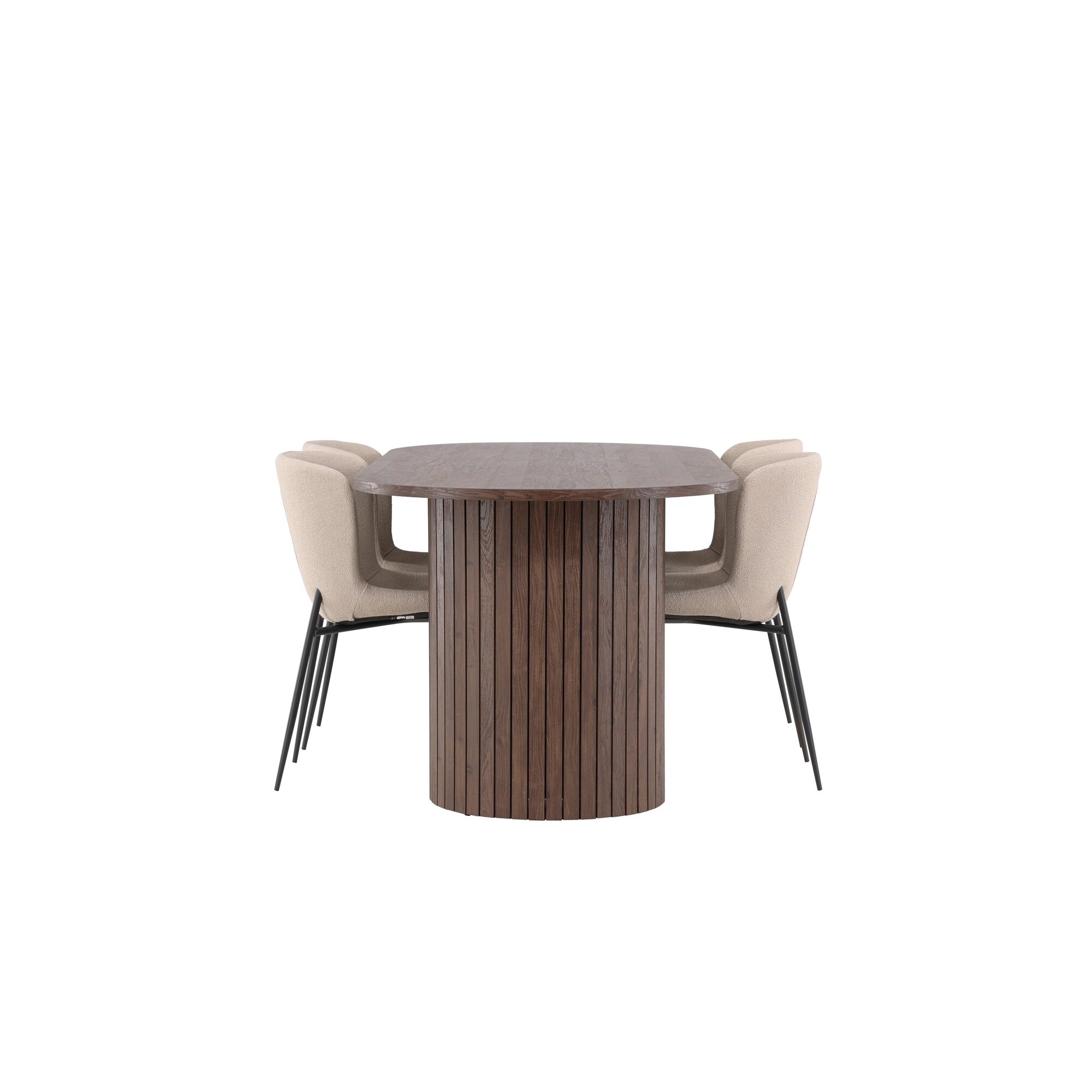 Bianca oválný jídelní stůl, ořechová černá dýha+židle Berit, černá béžová látka (polyesterové prádlo)_4