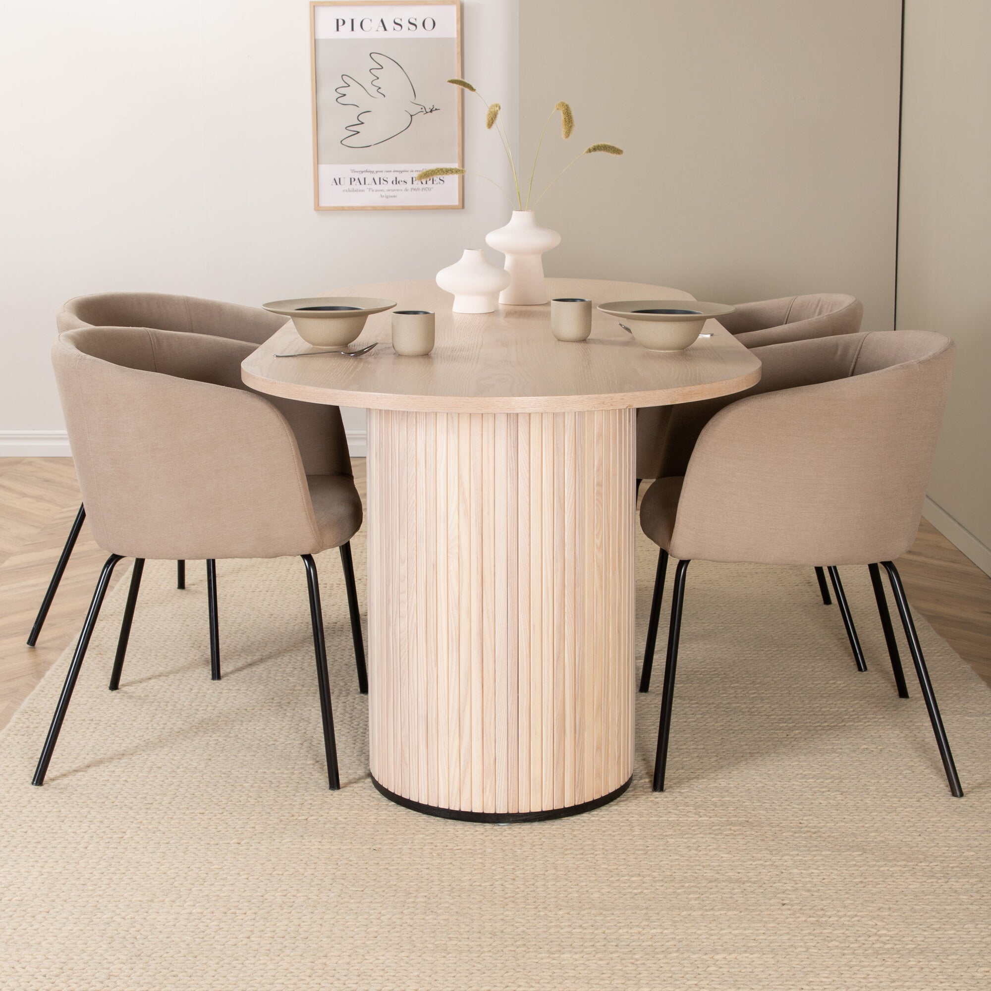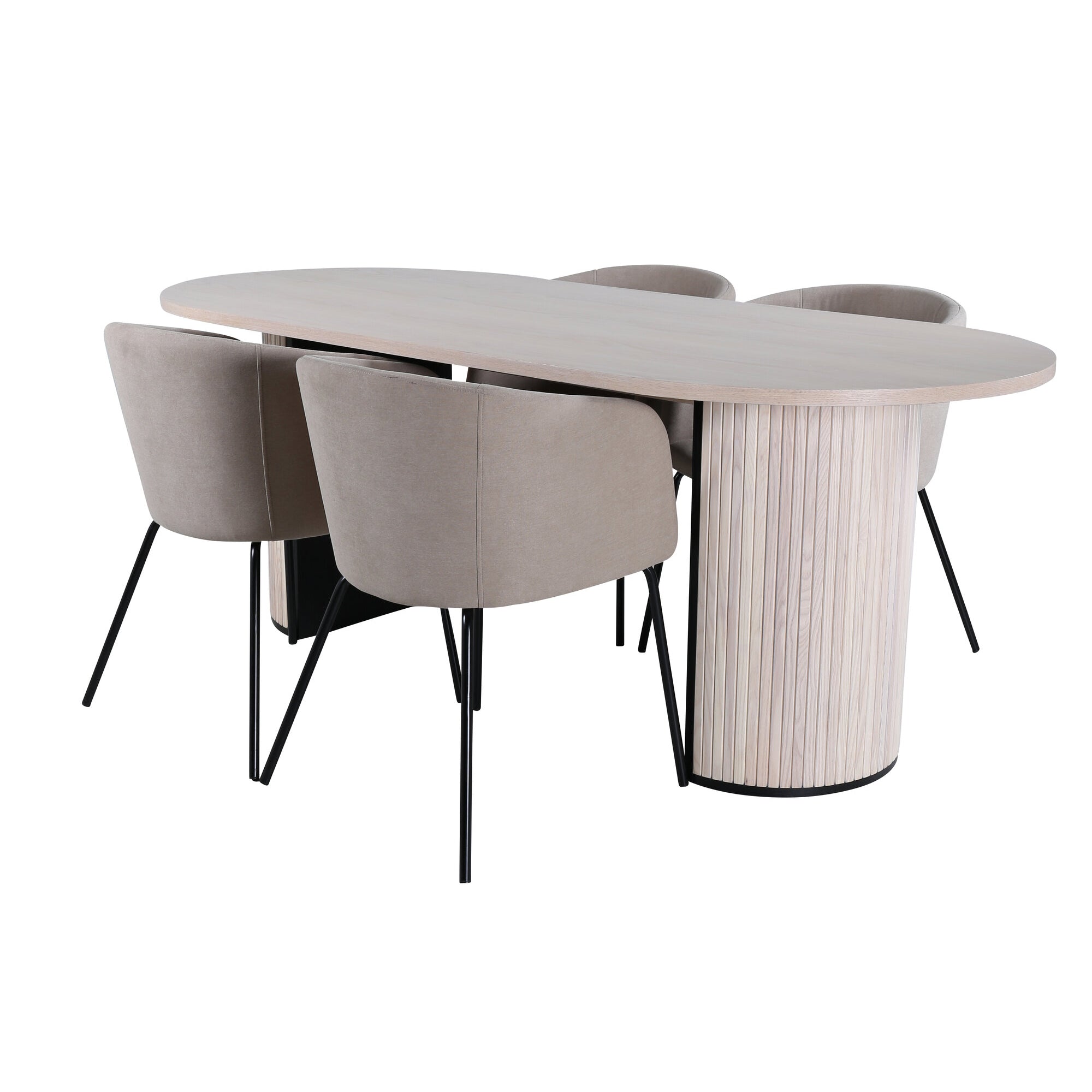 Oválný jídelní stůl Bianca , White Wash Černá dýha + židle Berit , Black Beige Velvet_4