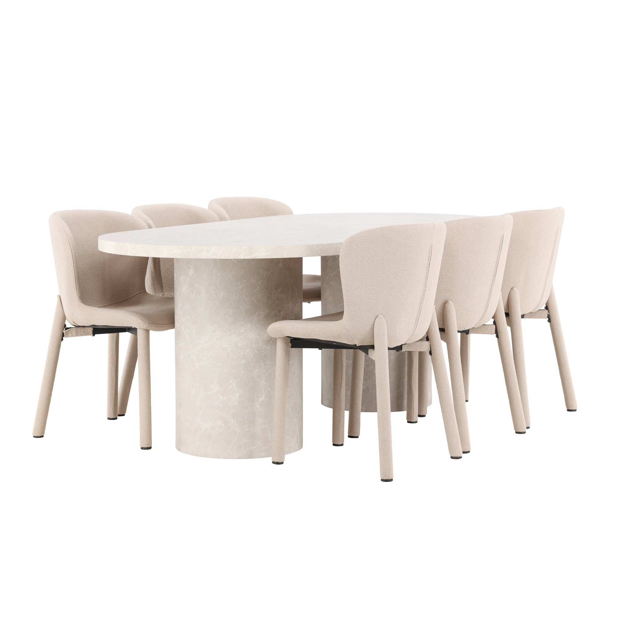 Bootcut Oválný jídelní stůl - Černá / Černá Fanéer + Jídelní židle Modesto - Béžová / Béžová Boucle _6