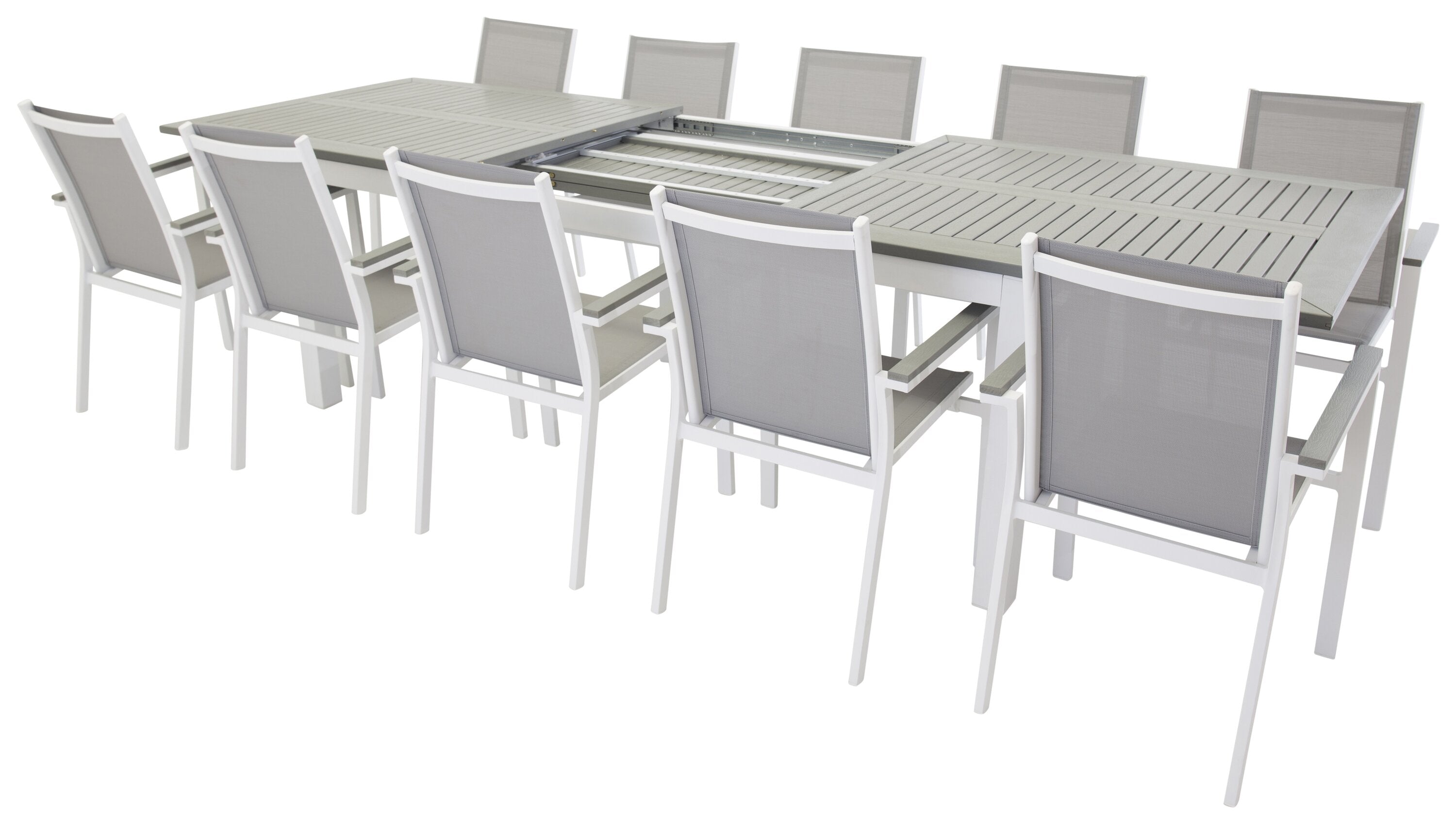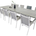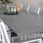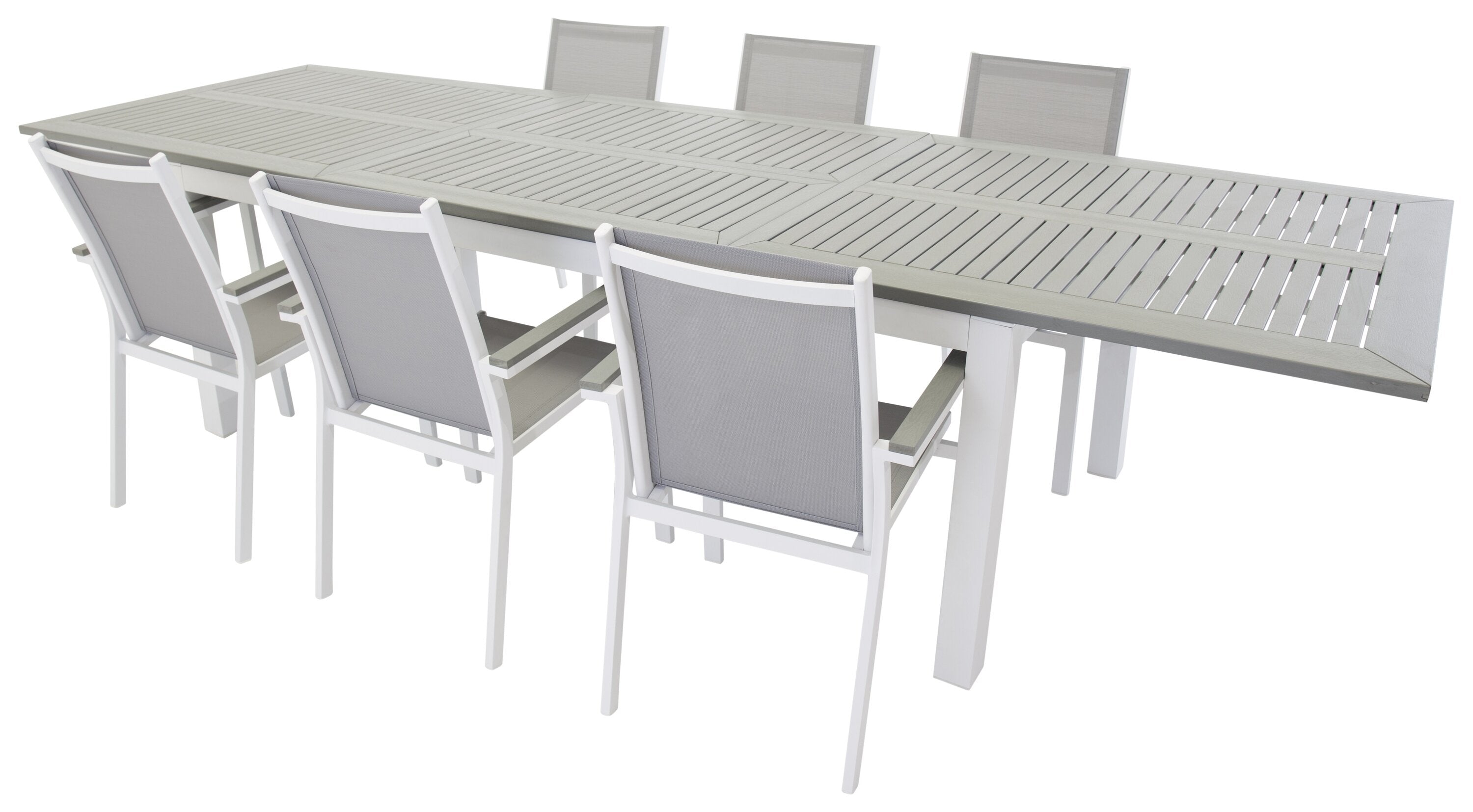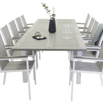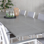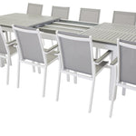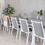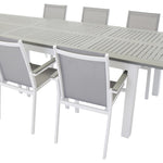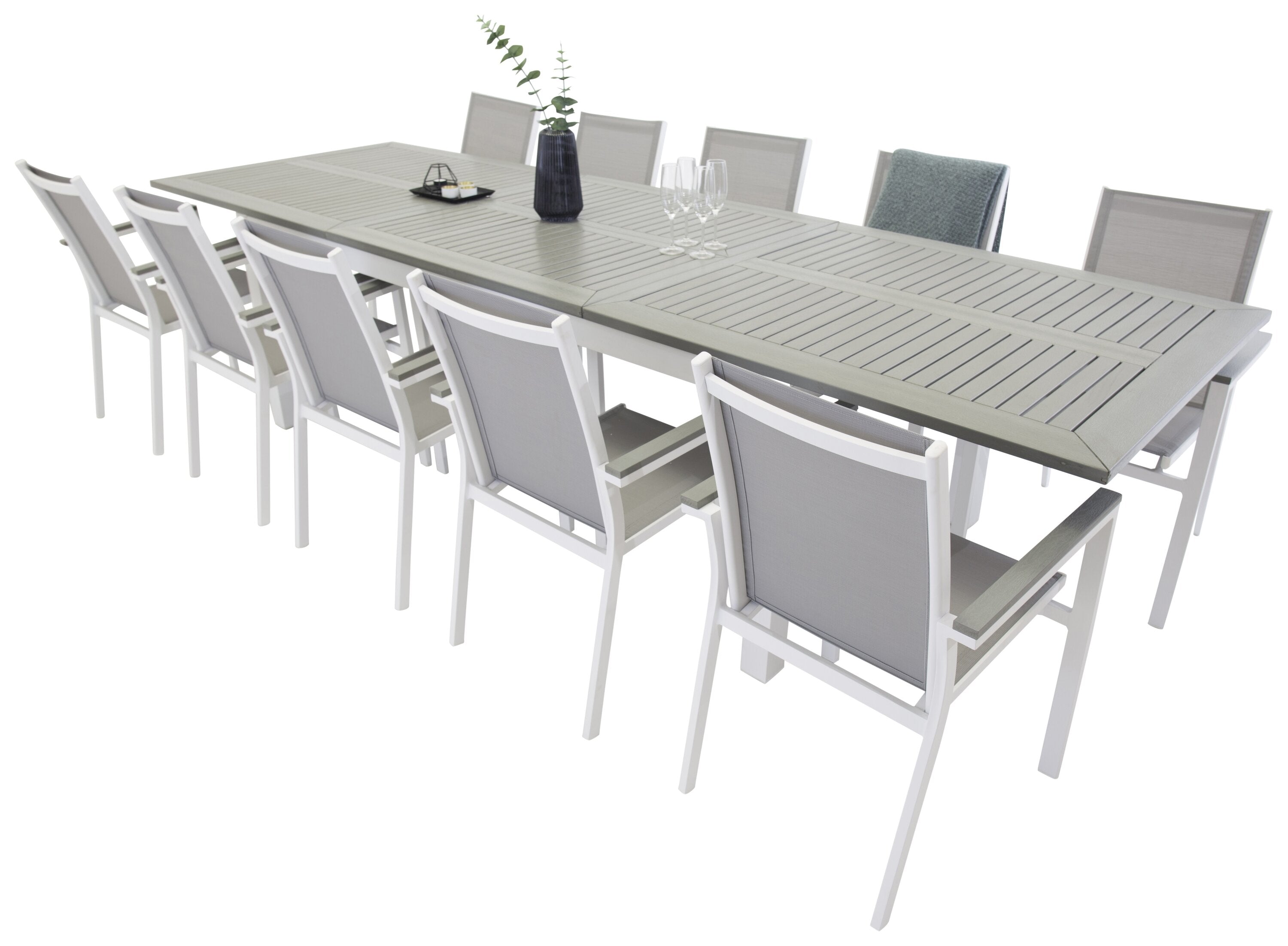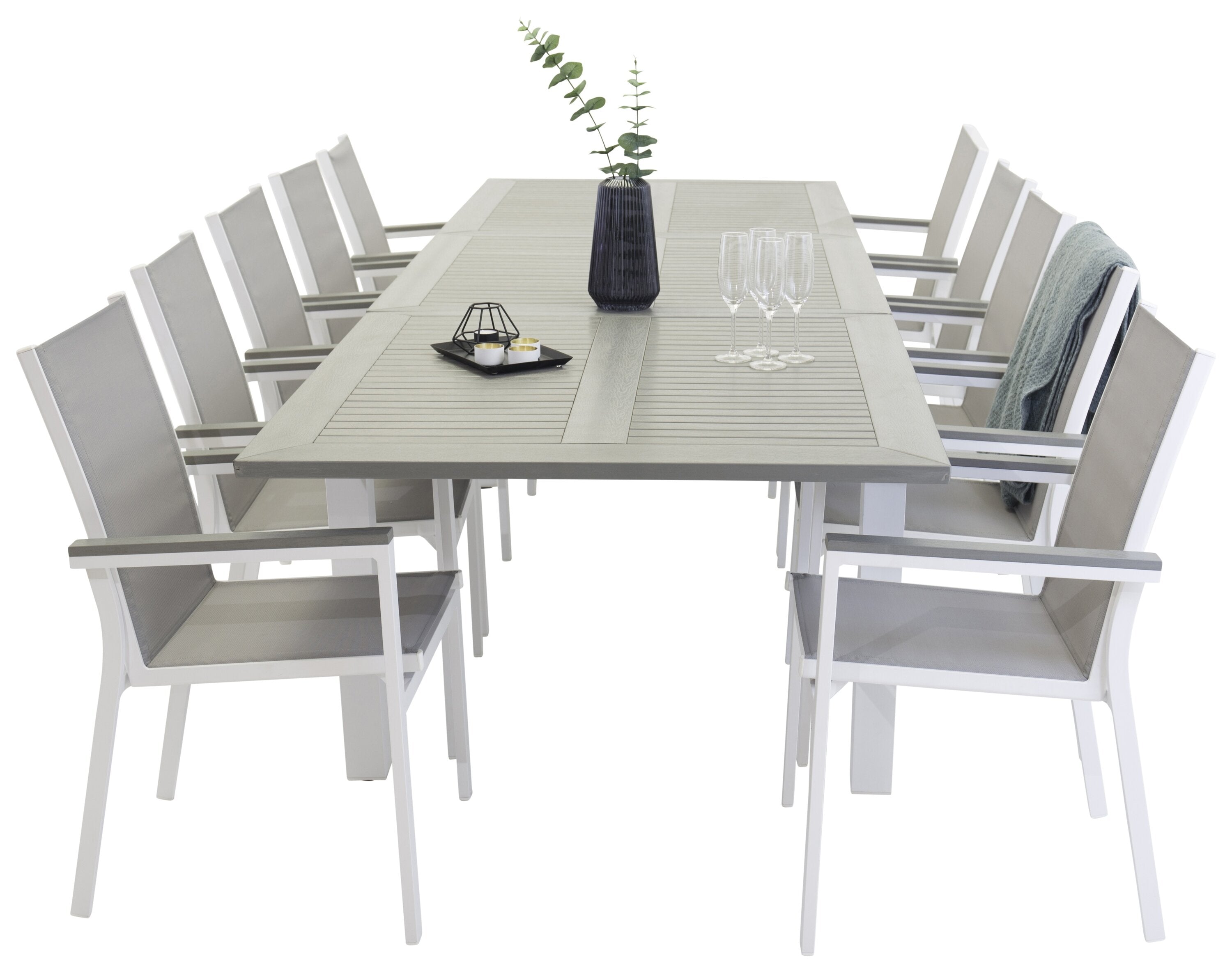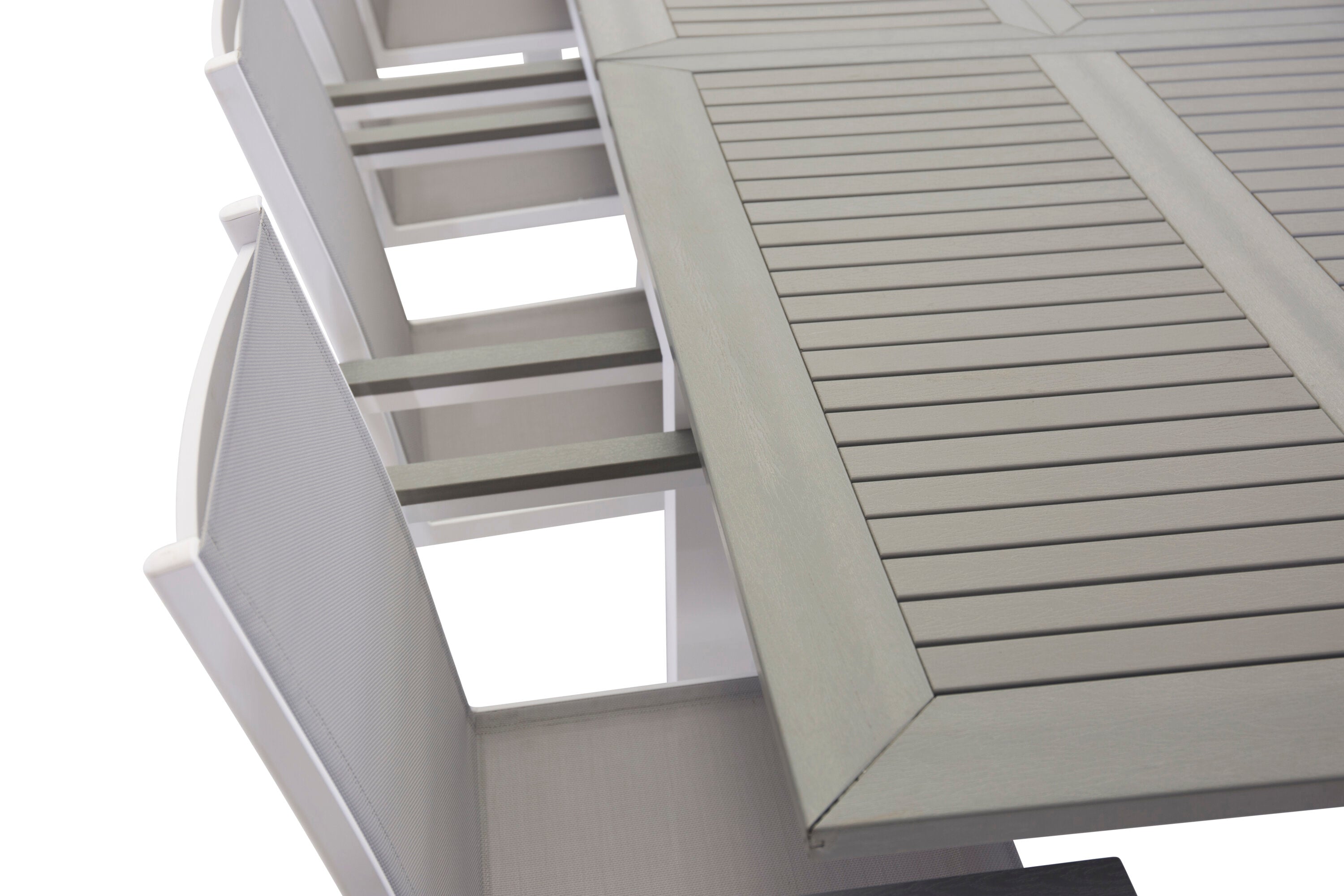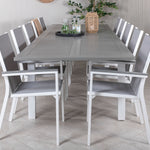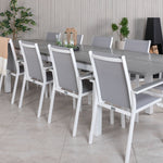 Albany Bord - Vit Alu/grå aintwood - 224/324*100+Parma Karmstol (stapelbar) - vi