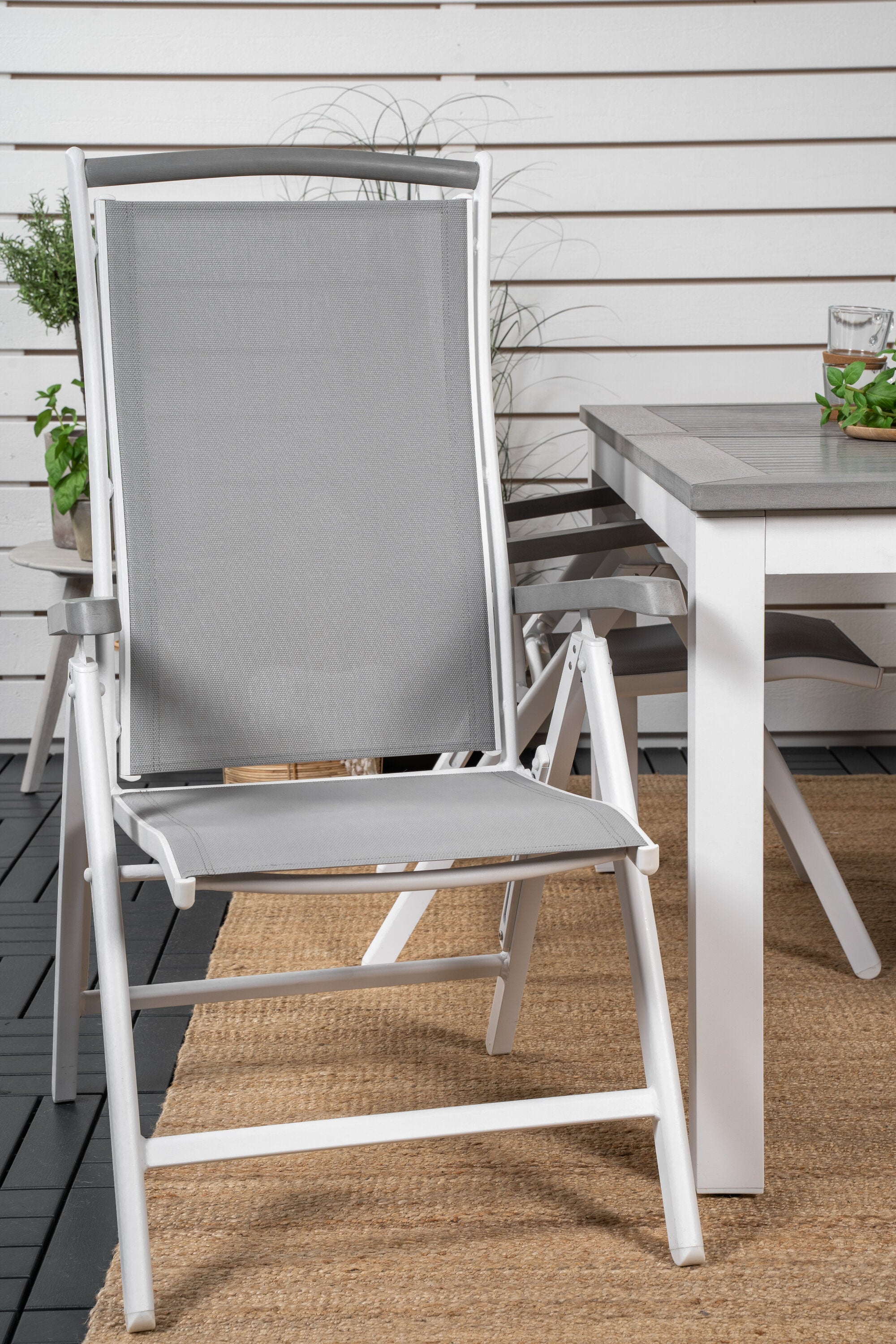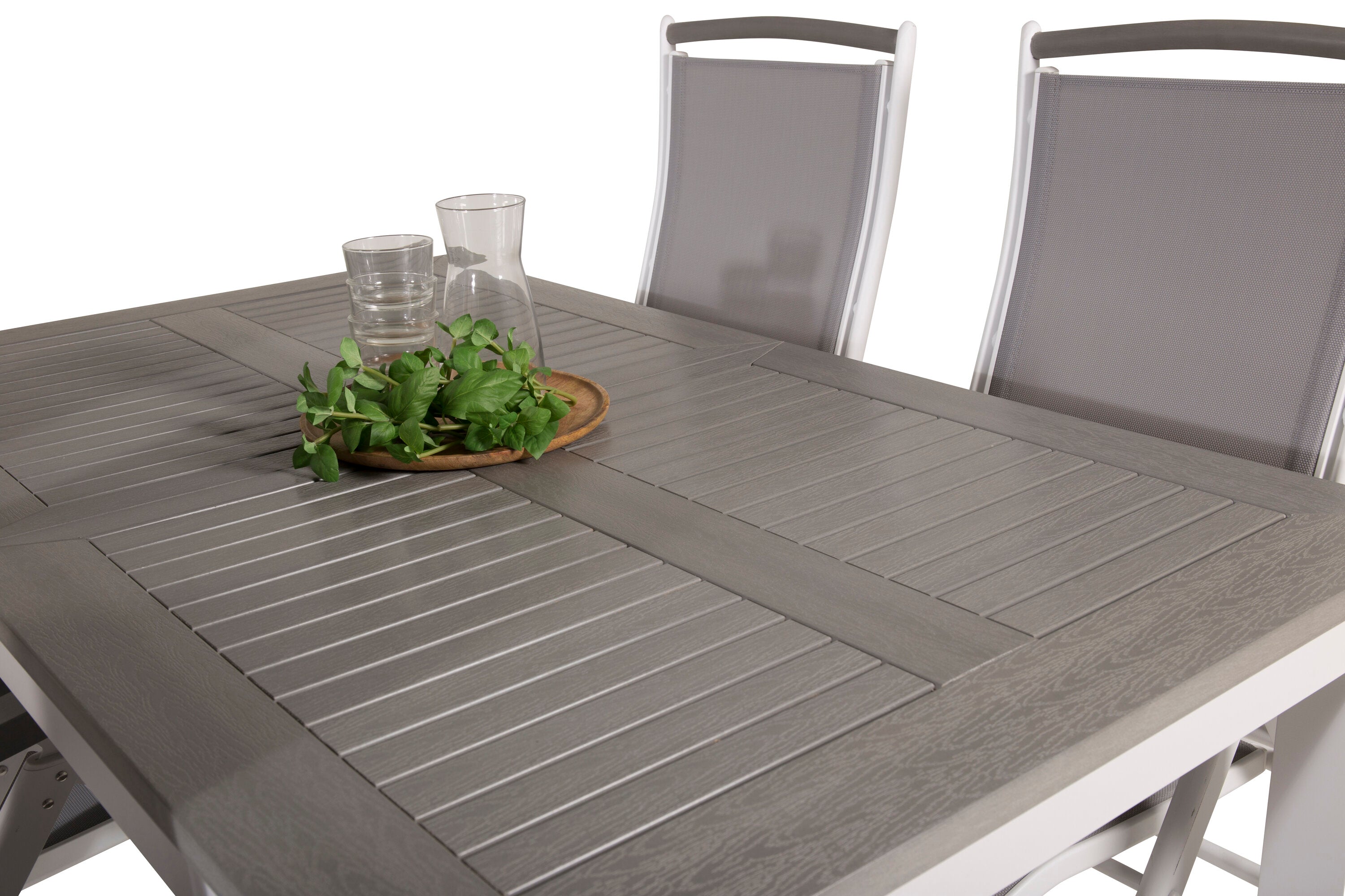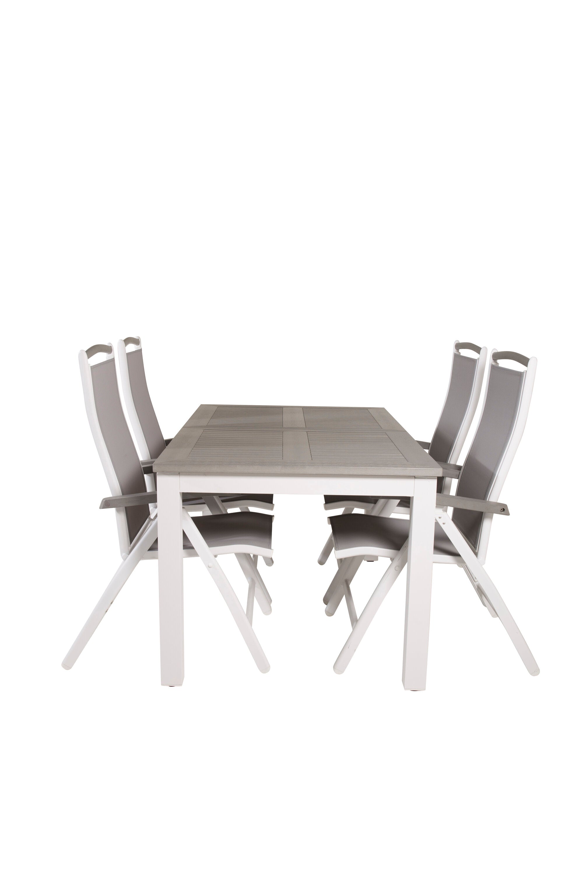 Albany jídelní stůl 160/240*100 - Bílá Alu / Šedá Aintwood+Albany Židle 5:pos - Bílá Alu / Šedá textilie / Aintwood_4