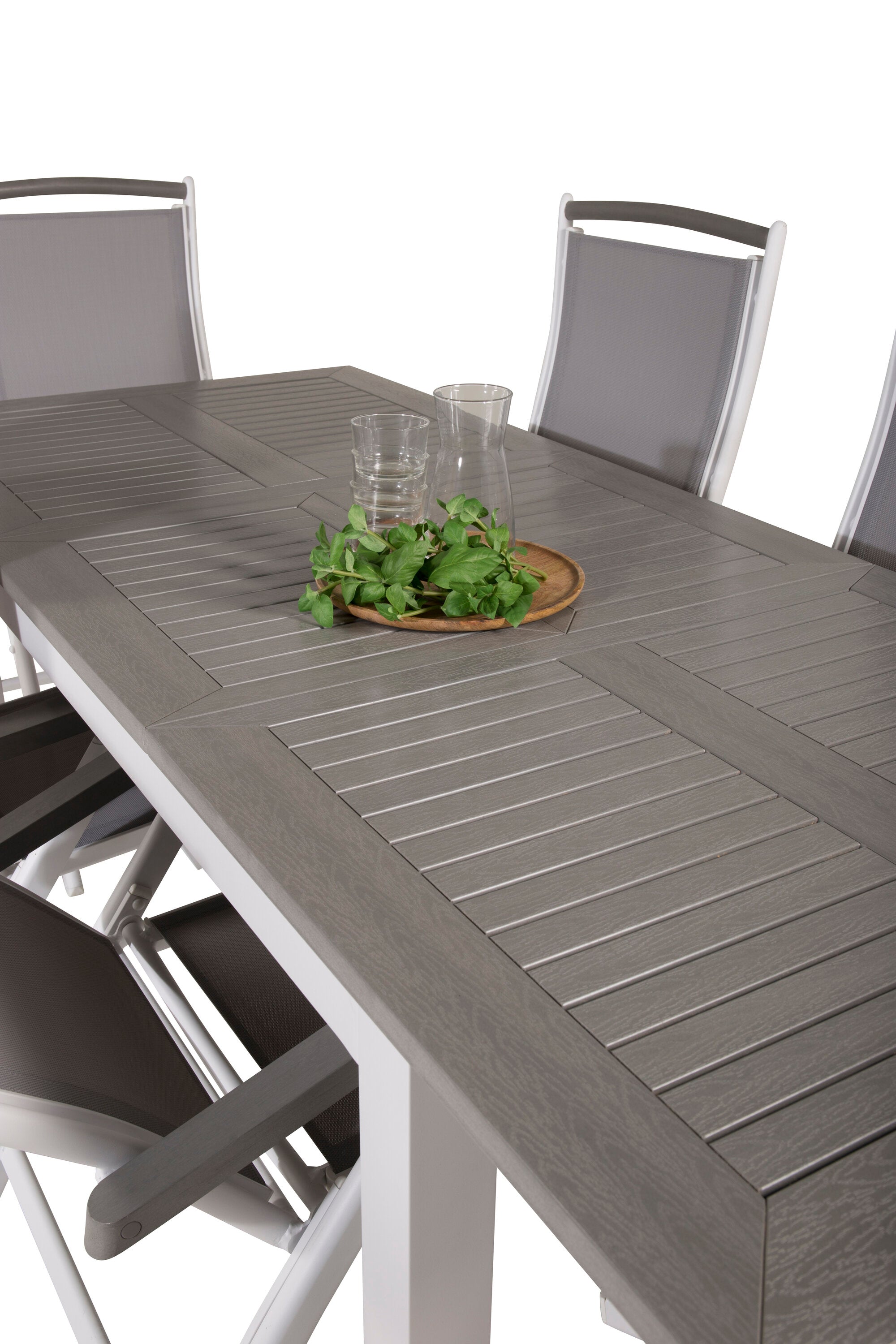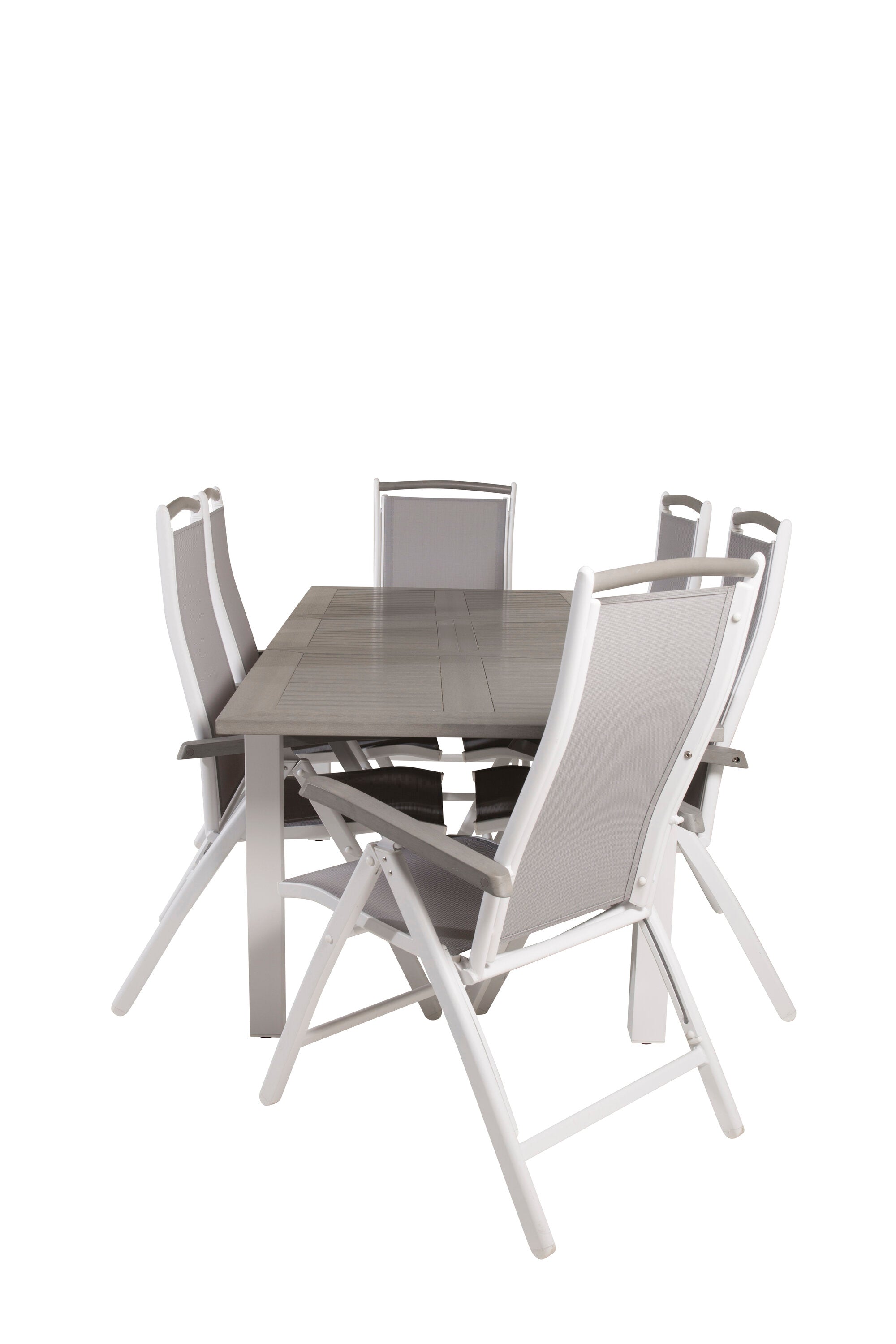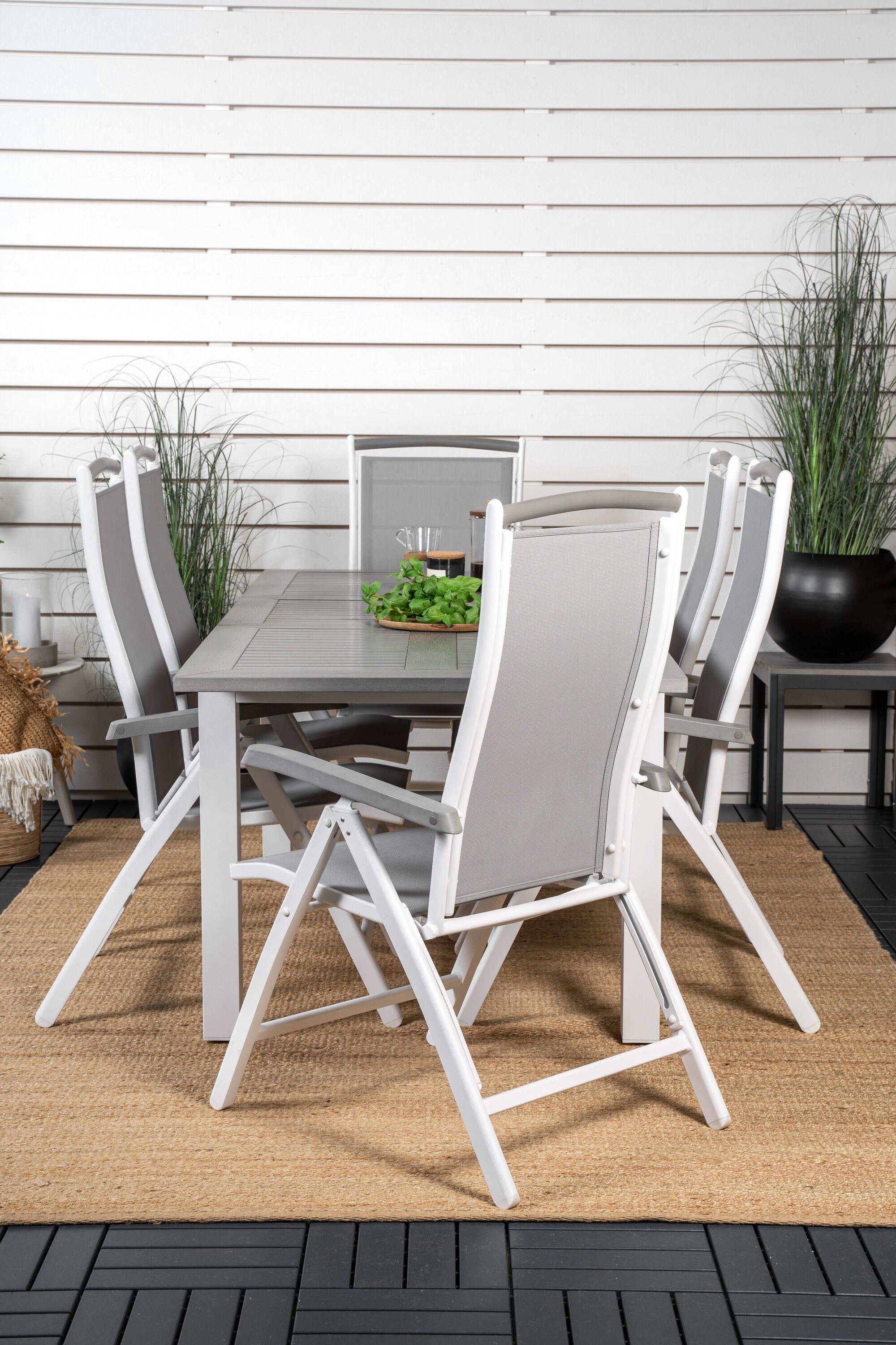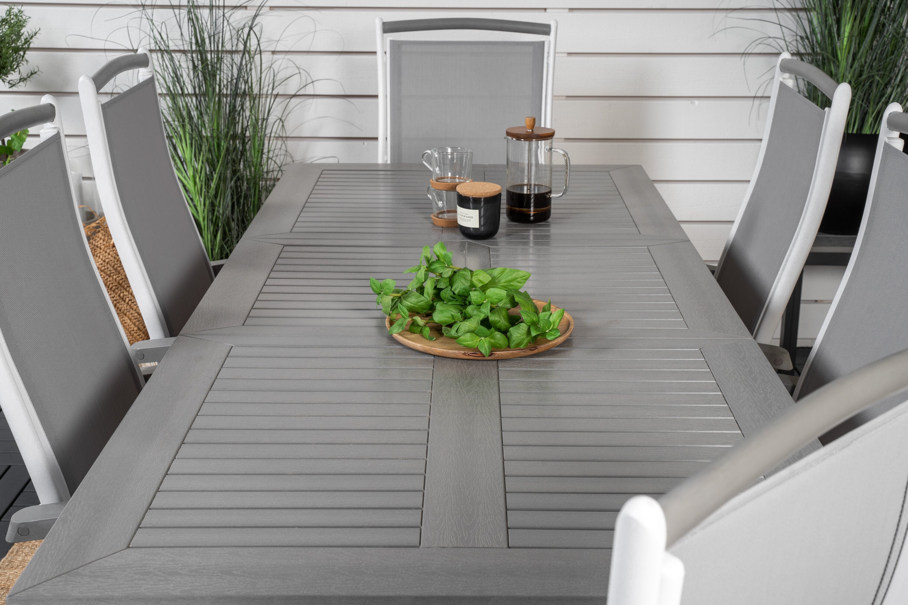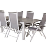 Albany Jídelní stůl 160/240*100 - Bílá Alu / Šedá Aintwood+Albany Židle 5:pos - Bílá Alu / Šedá textilie / Aintwood_6