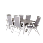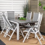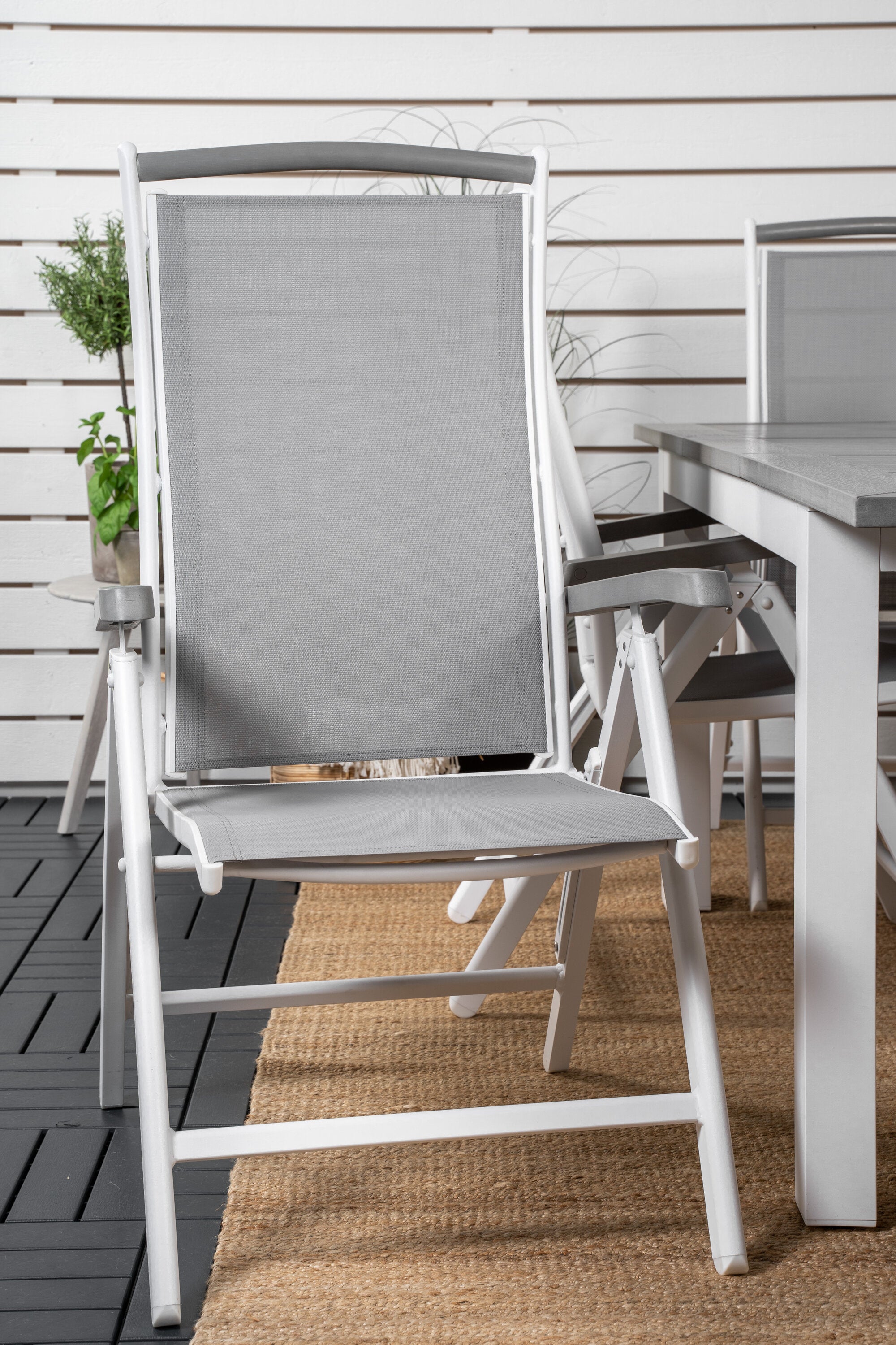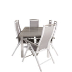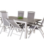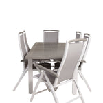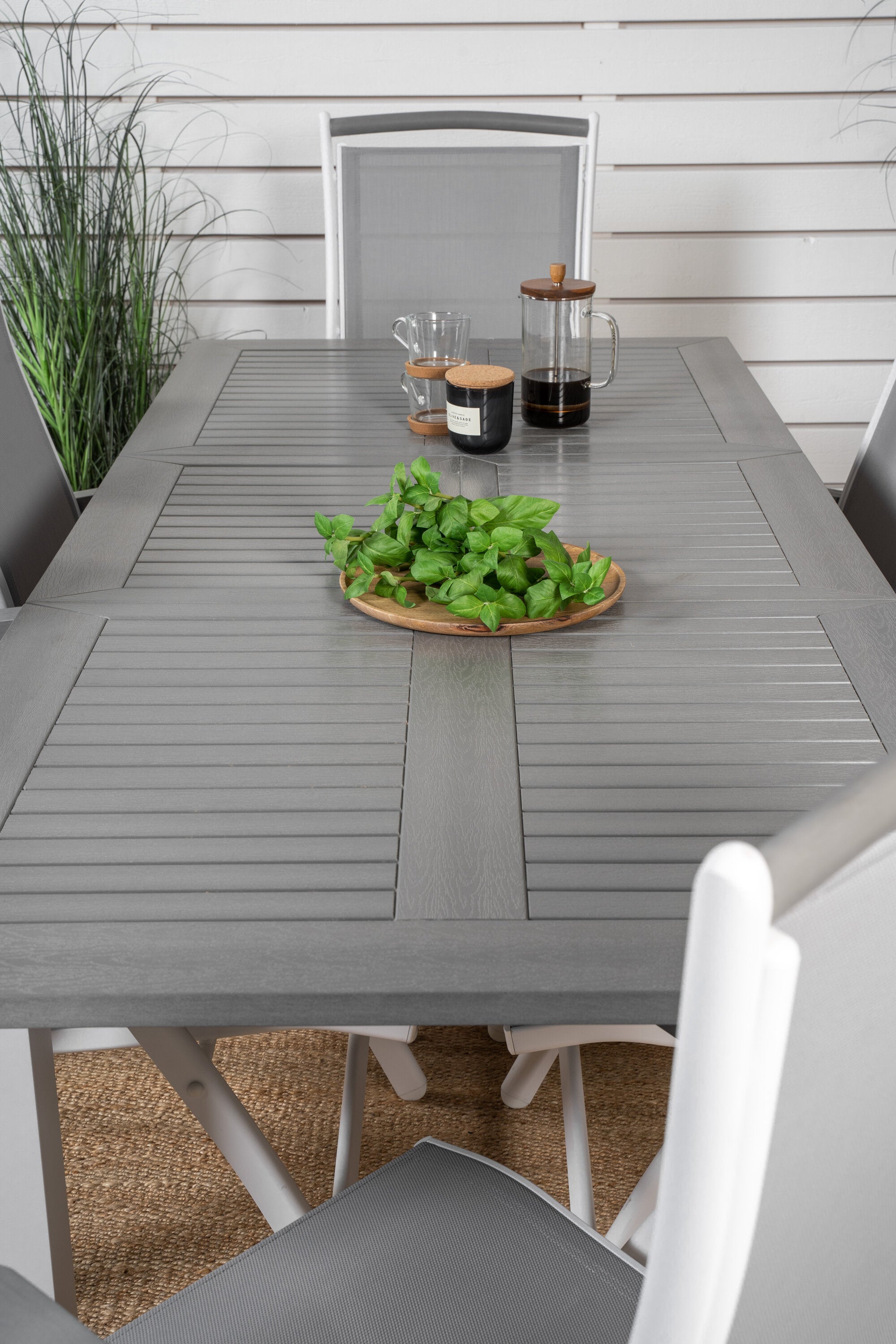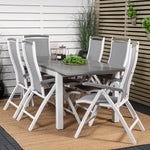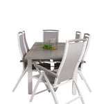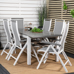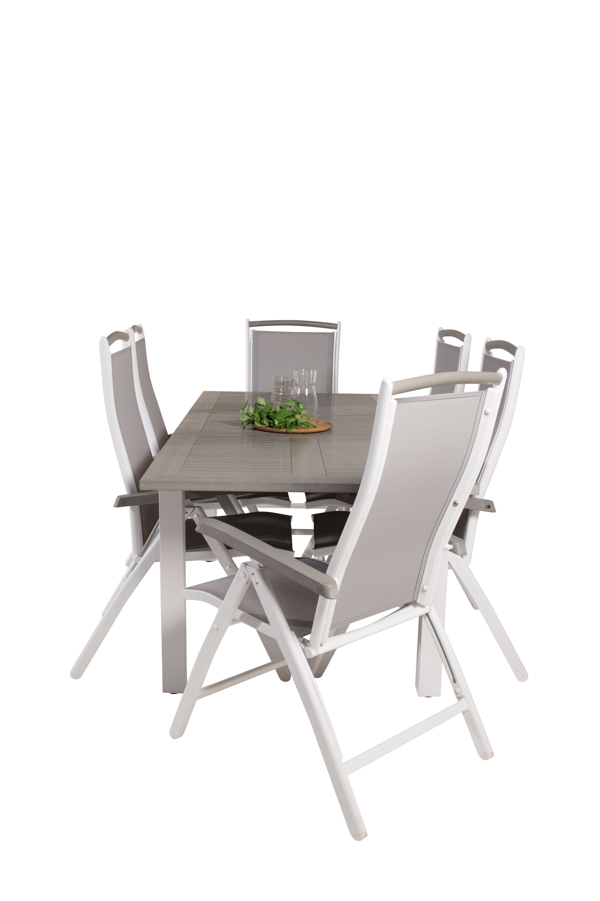 Albany Jídelní stůl 160/240*100 - Bílá Alu / Šedá Aintwood+Albany Židle 5:pos - Bílá Alu / Šedá textilie / Aintwood_6