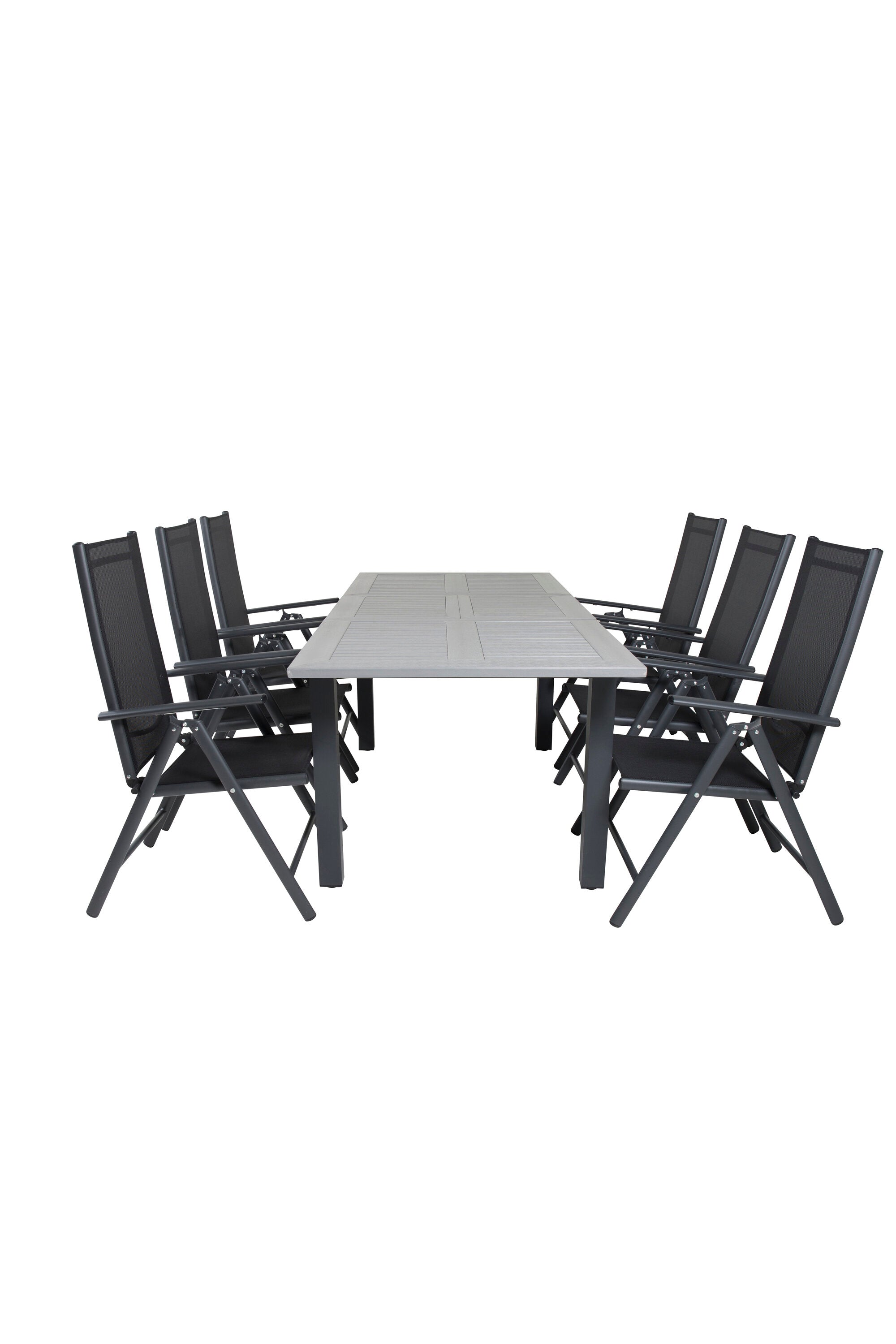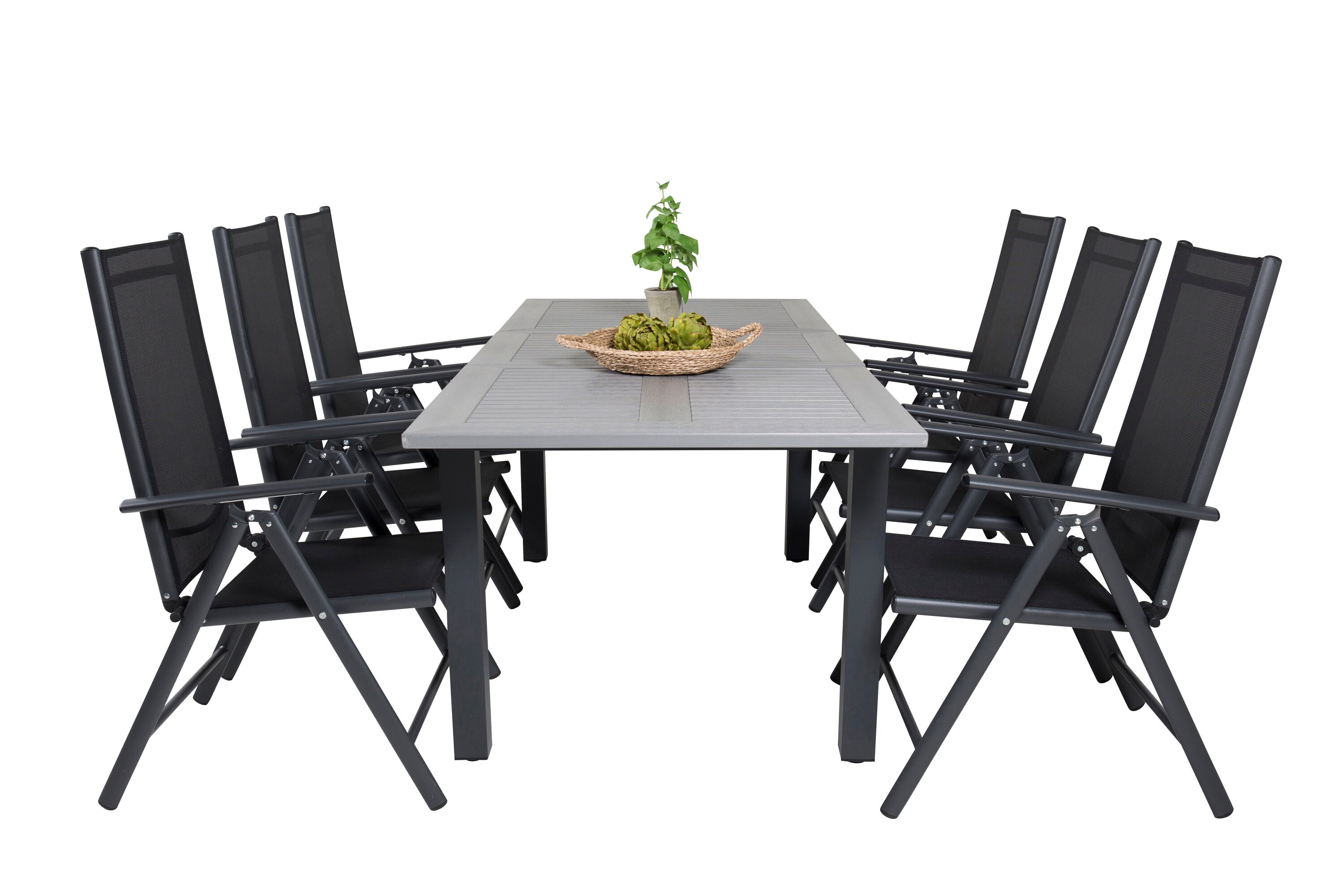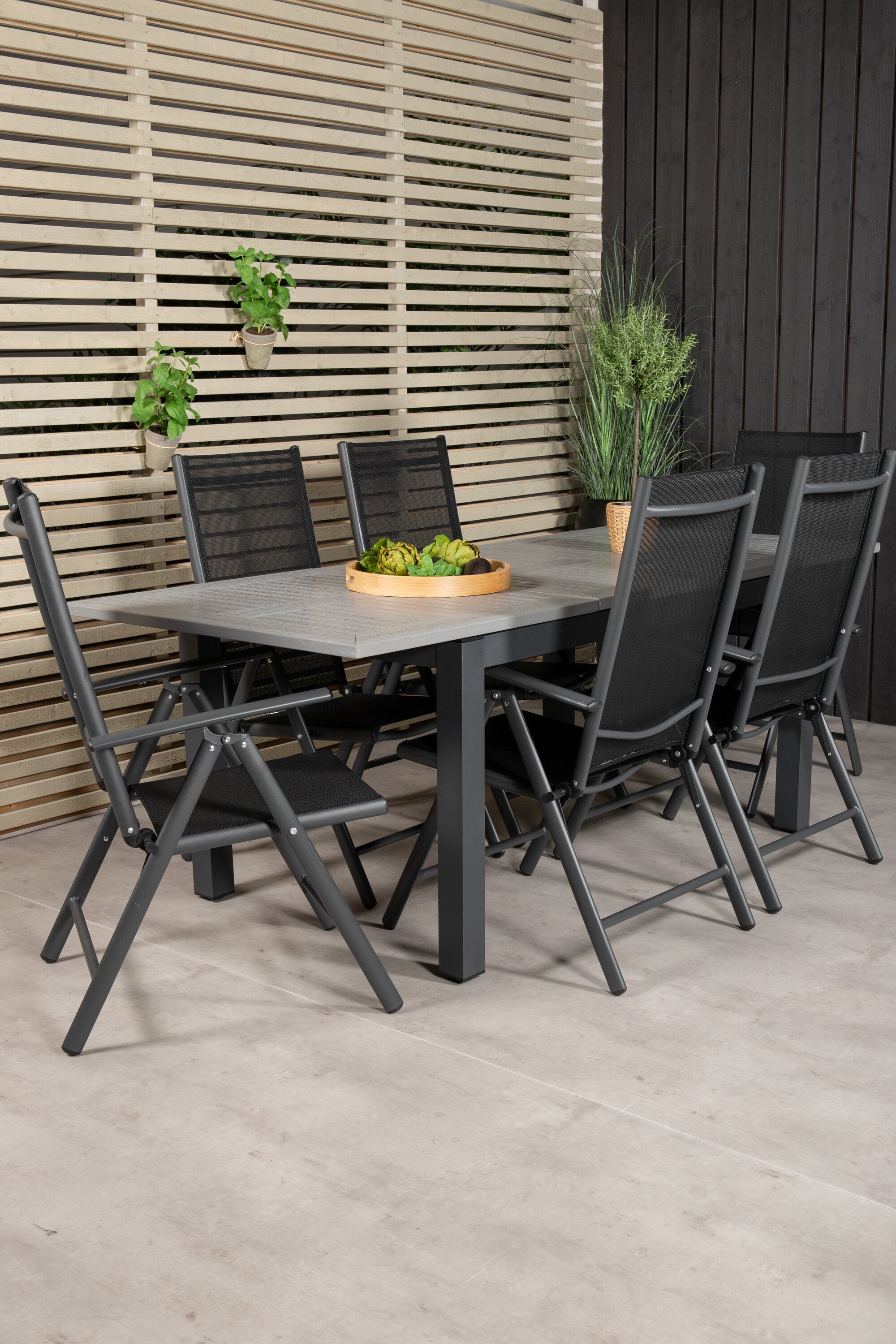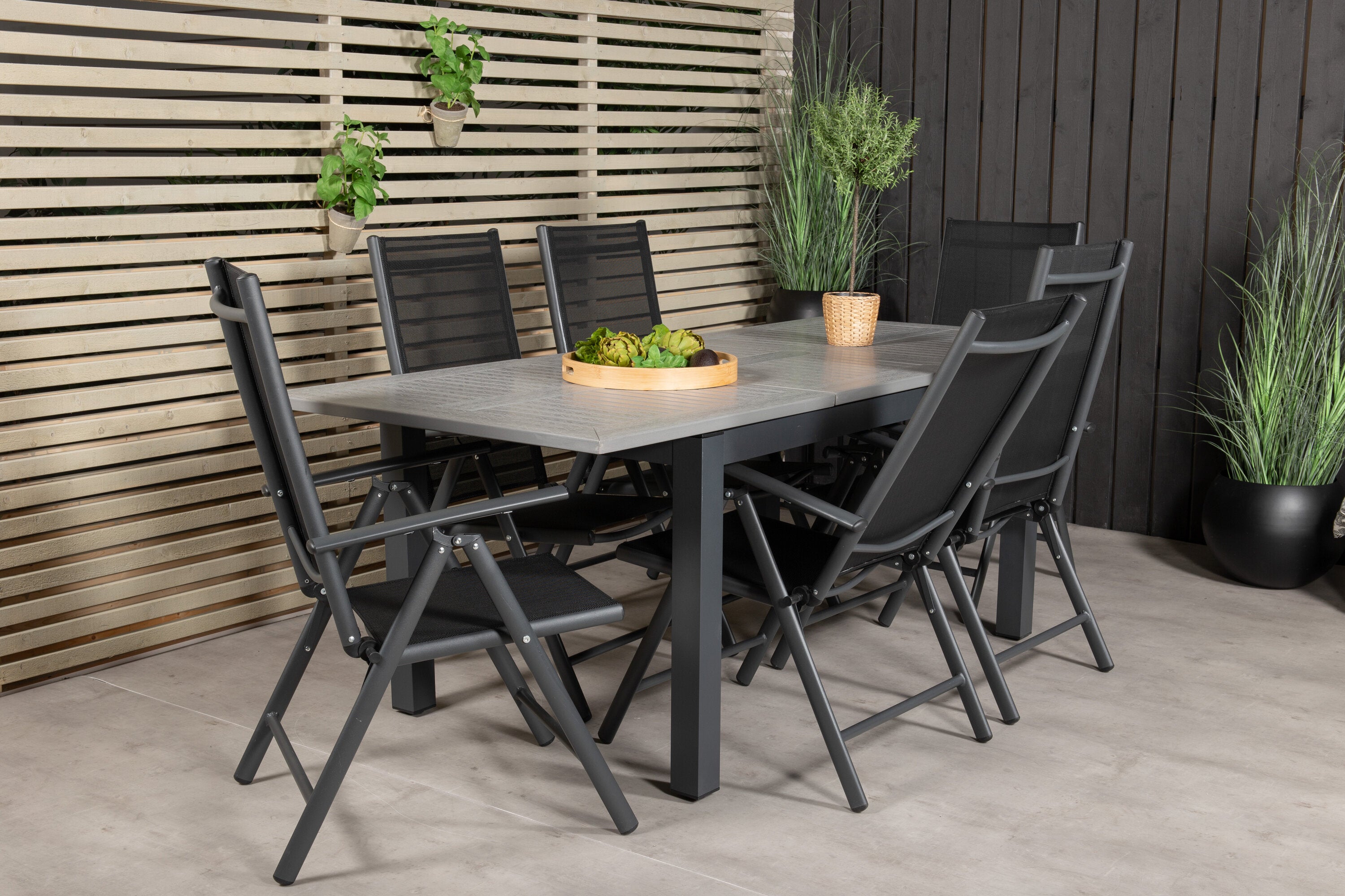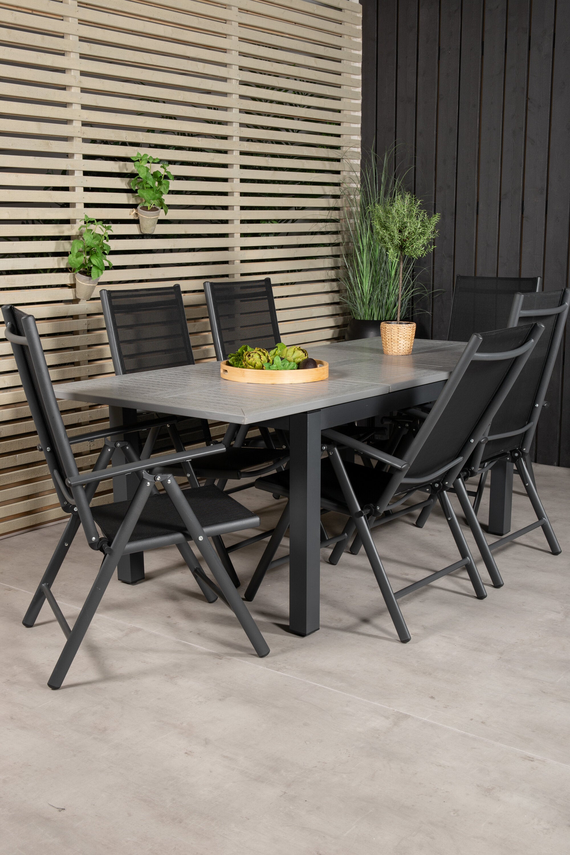 Albany stůl - 152/210 - Černá/šedá - Break 5:pos židle - Černá/Černá 6