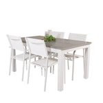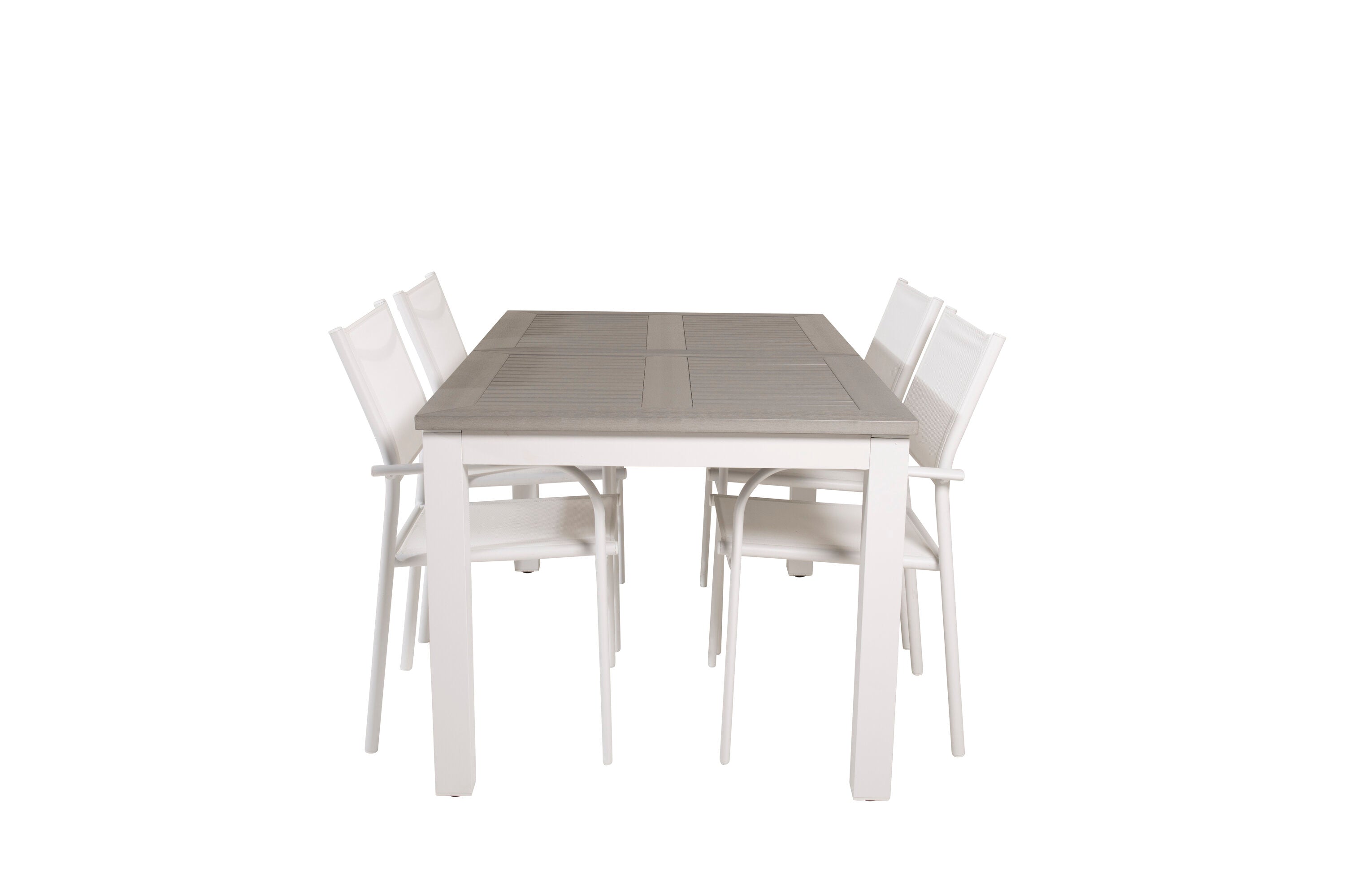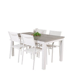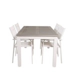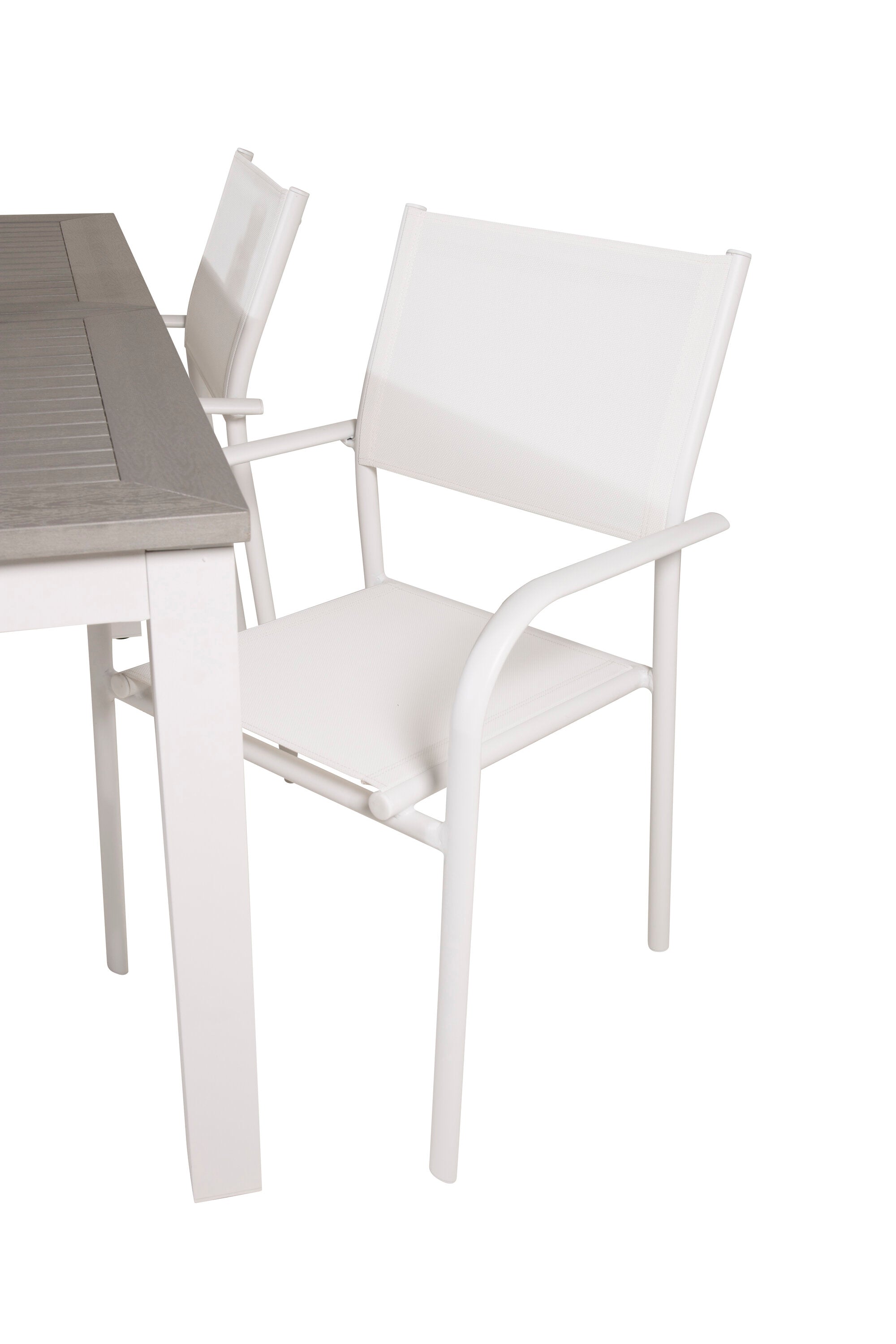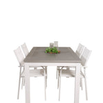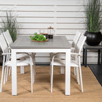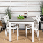 Albany stůl - 160/240 - bílá/šedá - křeslo Santorini (stohovatelné) - bílá Alu / bílá textilie 4