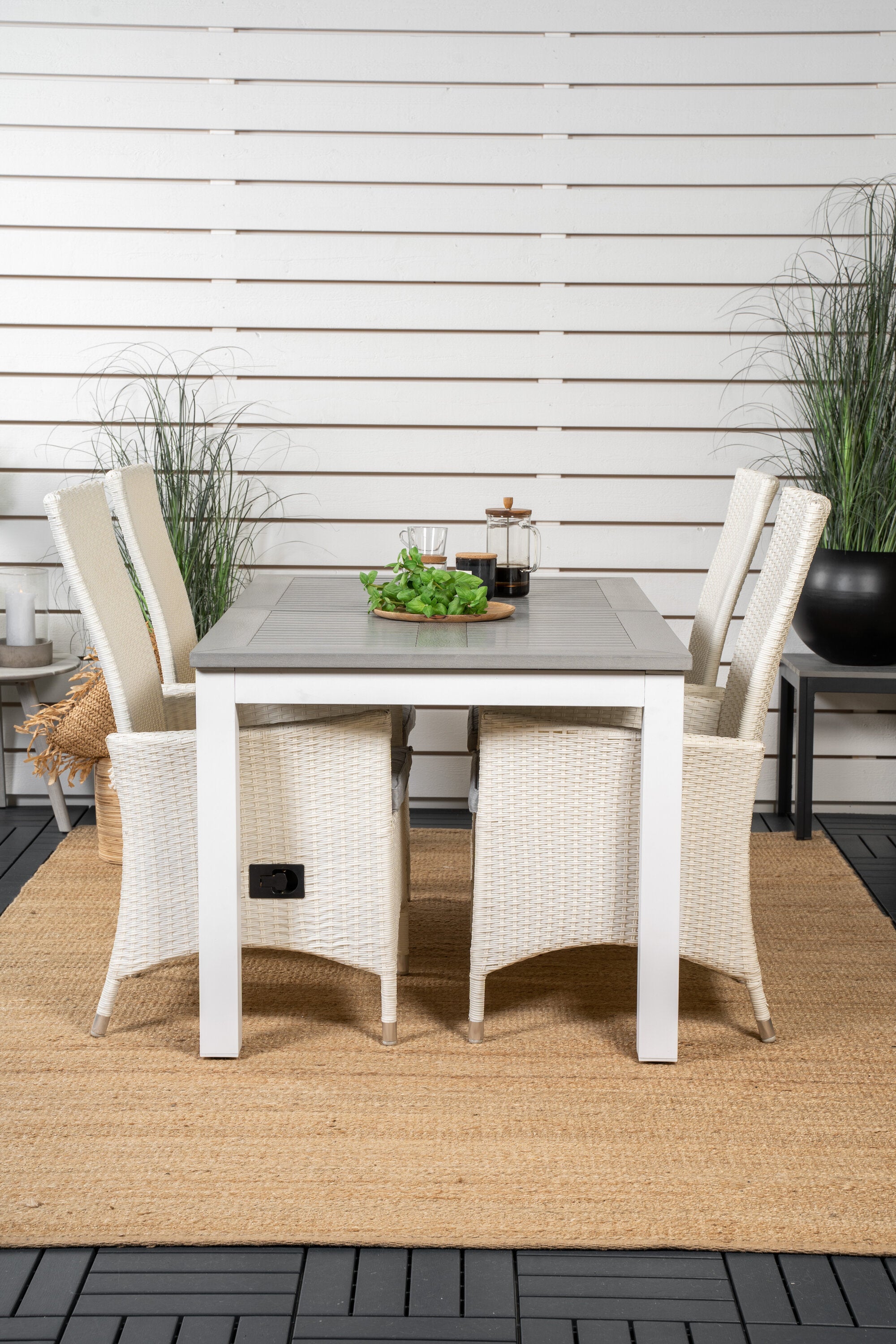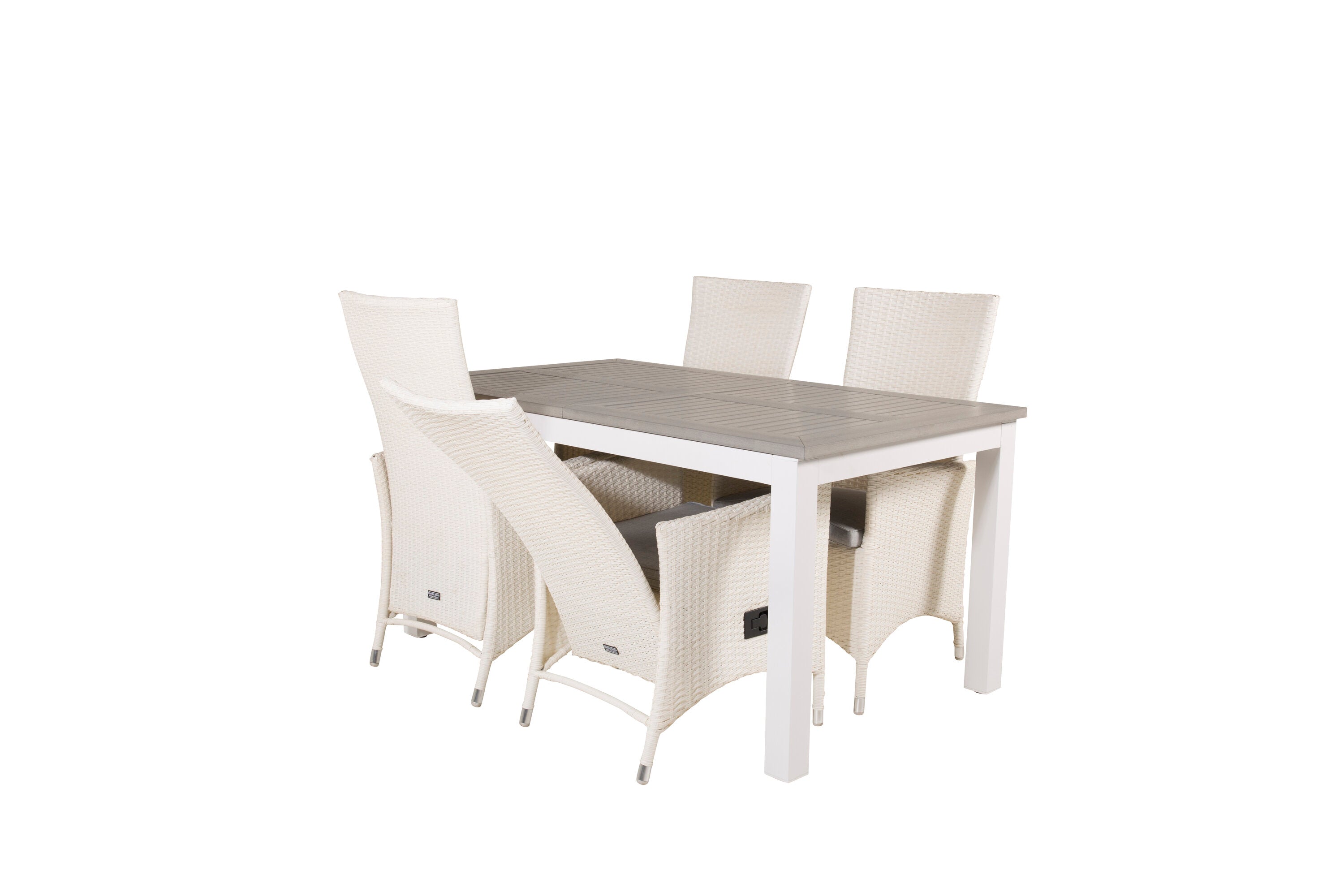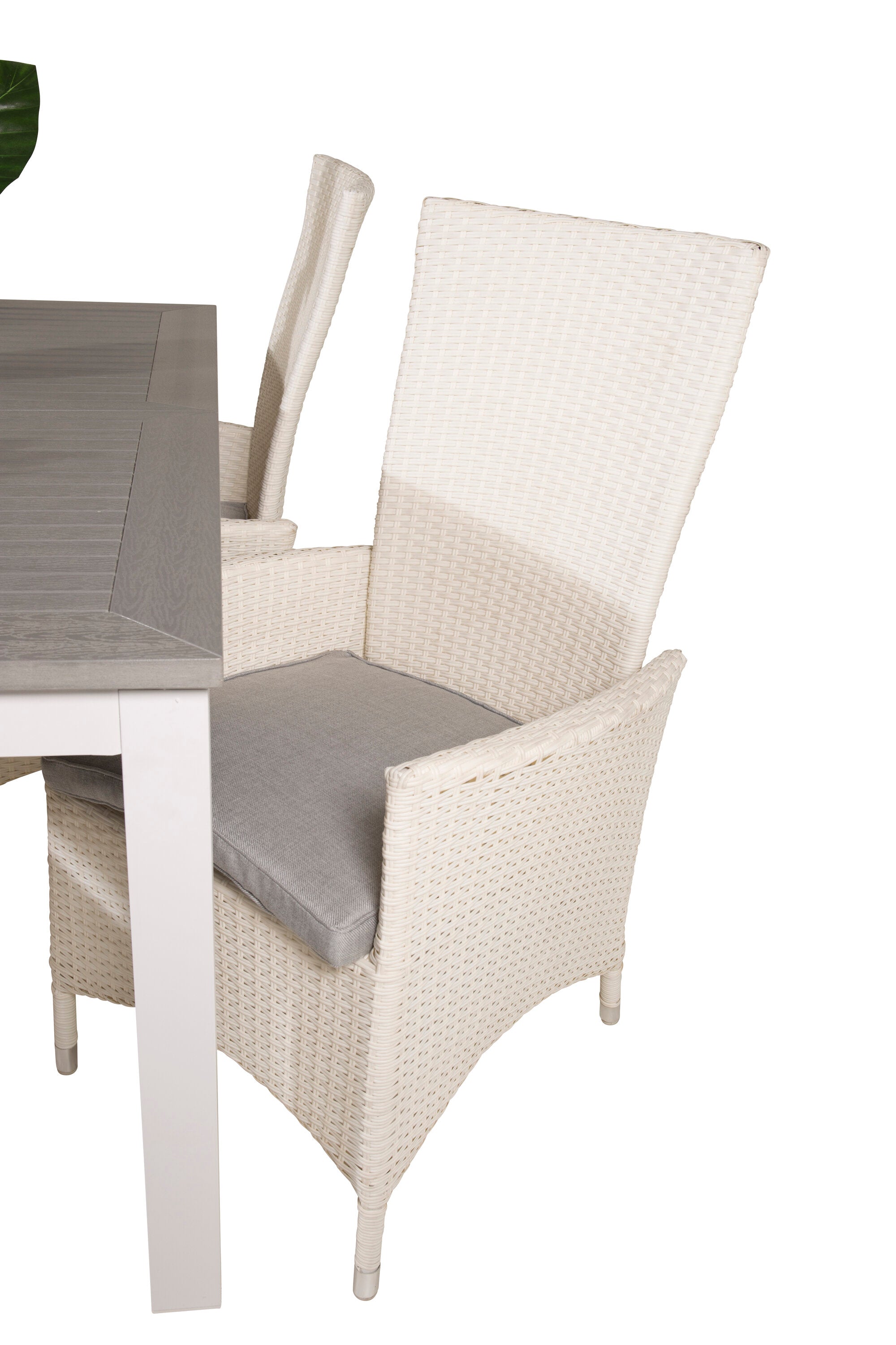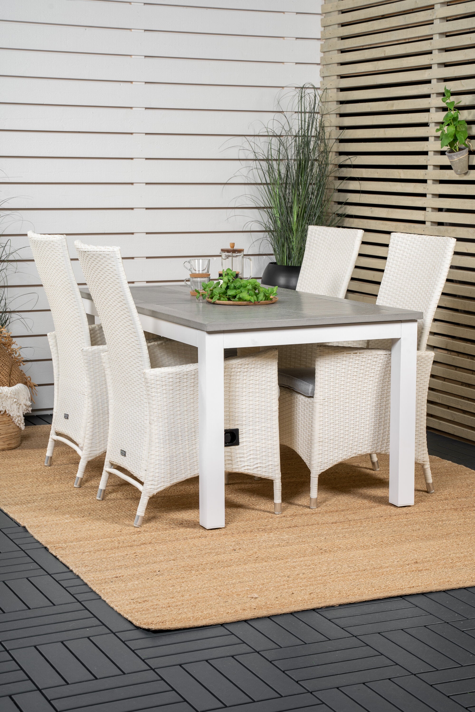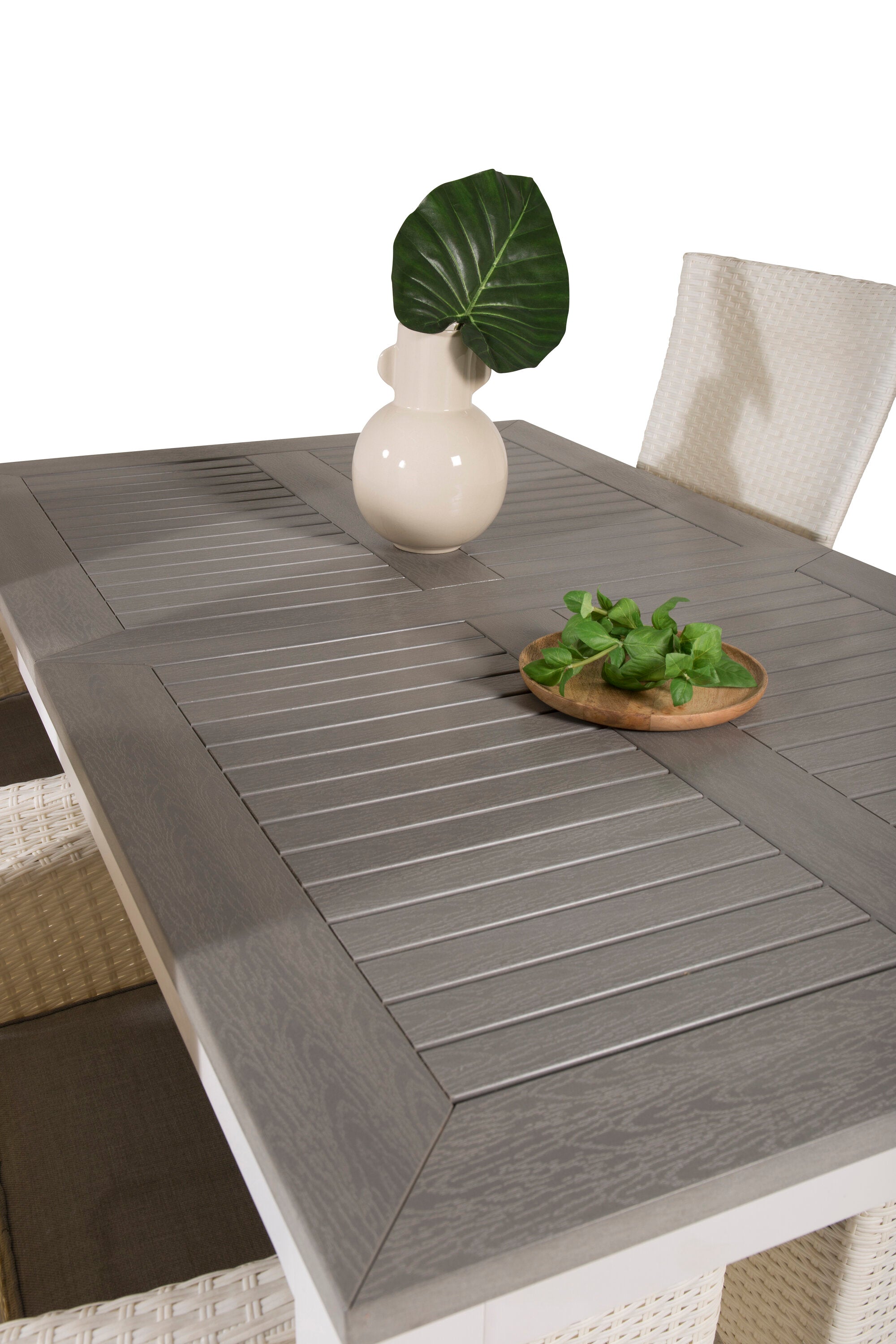Moderní a útulné! Jídelní stůl Albany spolu s jídelními židlemi Padova vám poskytne skupinu jídel, která touží po horkém letním večeru. Židle jsou robustní a dobře rostlé - zde můžete dlouho sedět a užívat si společnost dobrých přátel!