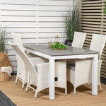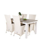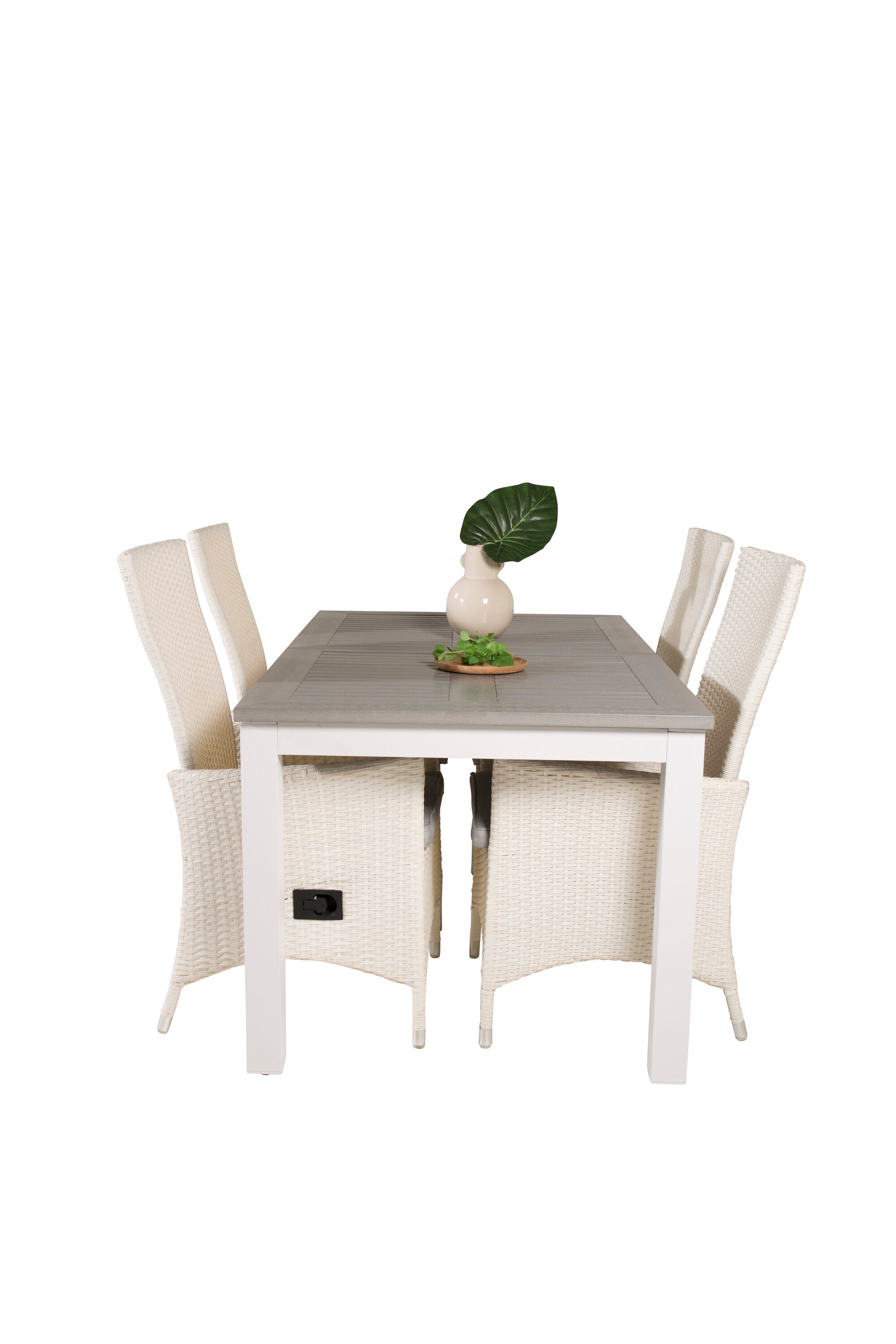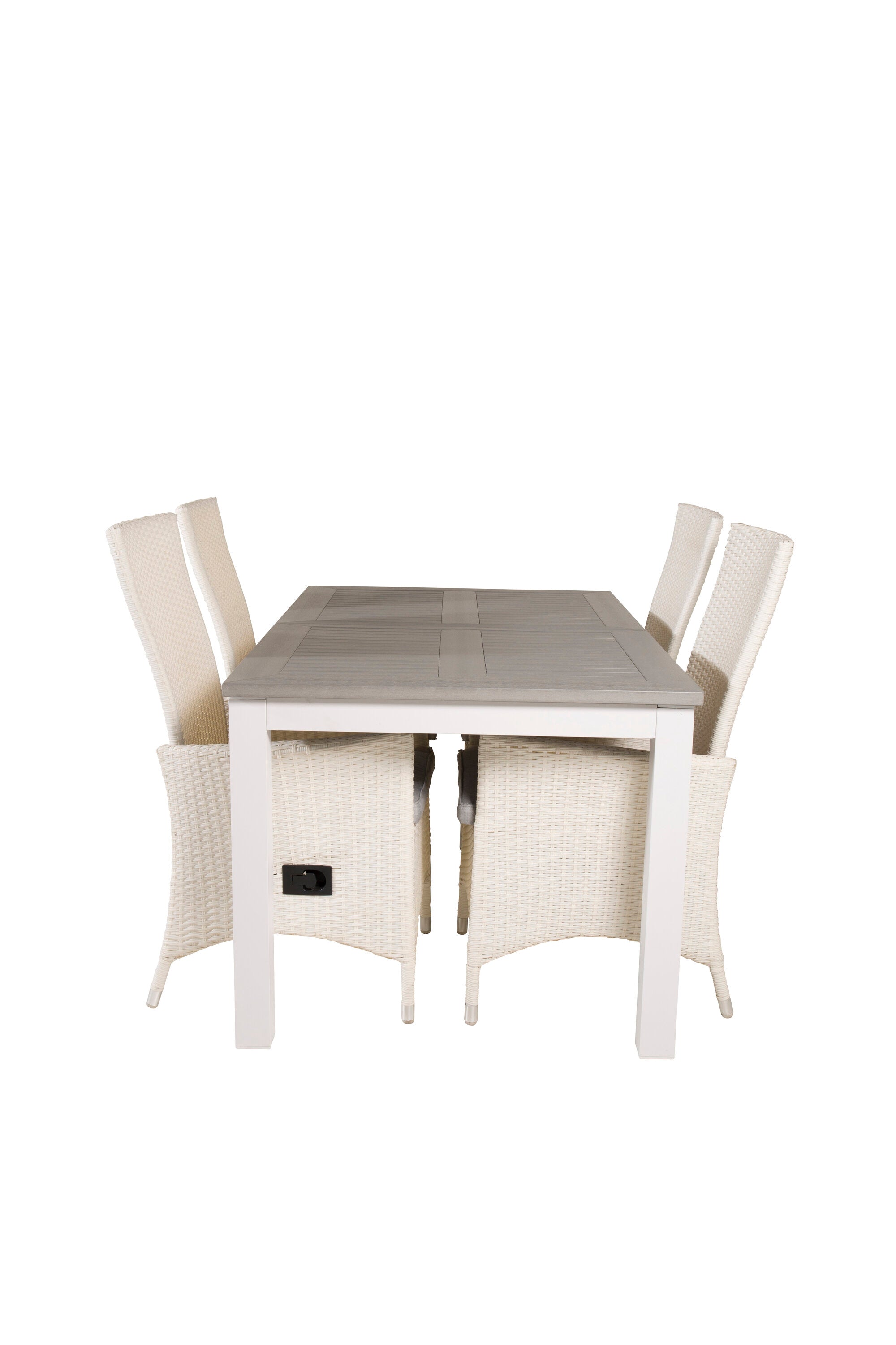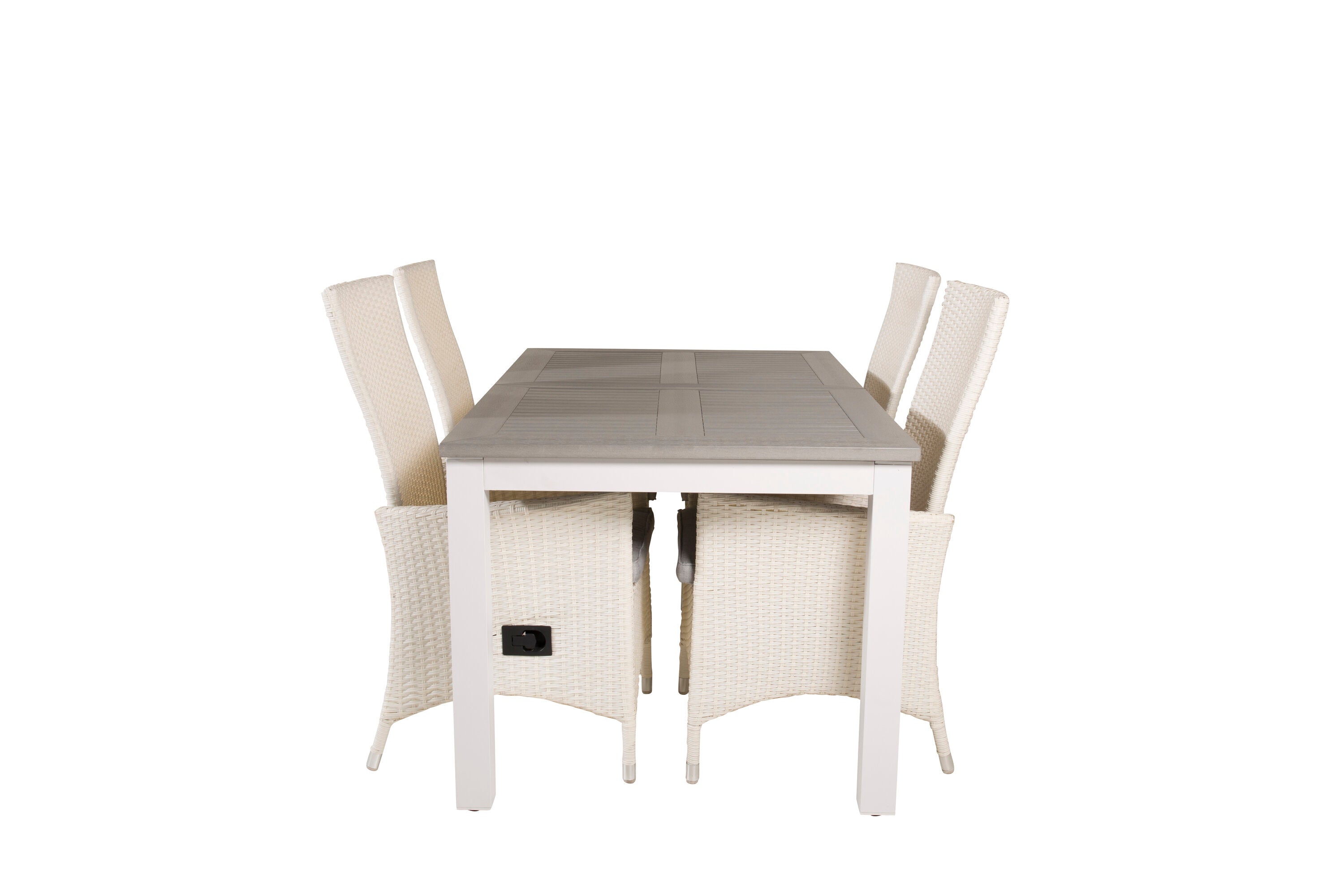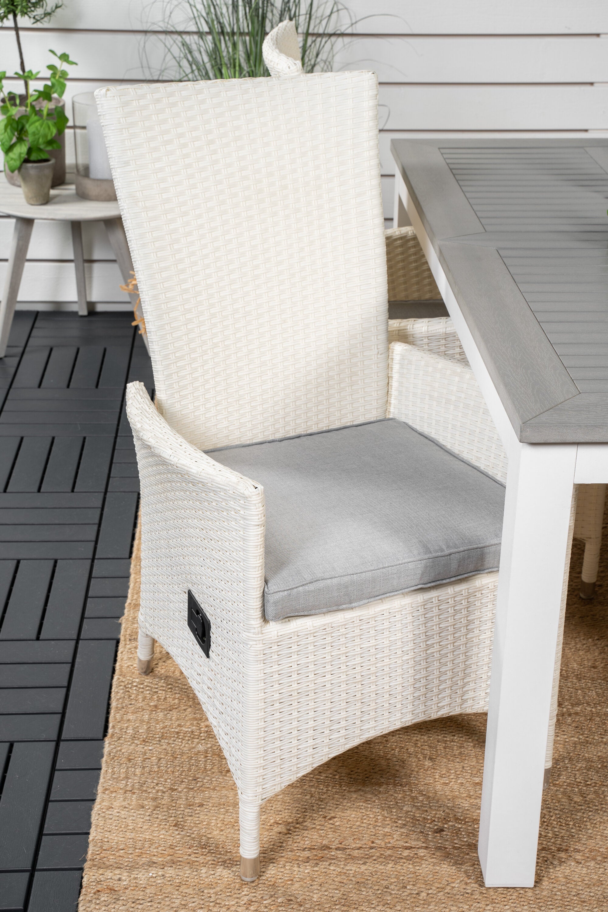 Moderní a útulné! Jídelní stůl Albany spolu s jídelními židlemi Padova vám poskytne skupinu jídel, která touží po horkém letním večeru. Židle jsou robustní a dobře rostlé - zde můžete dlouho sedět a užívat si společnost dobrých přátel!