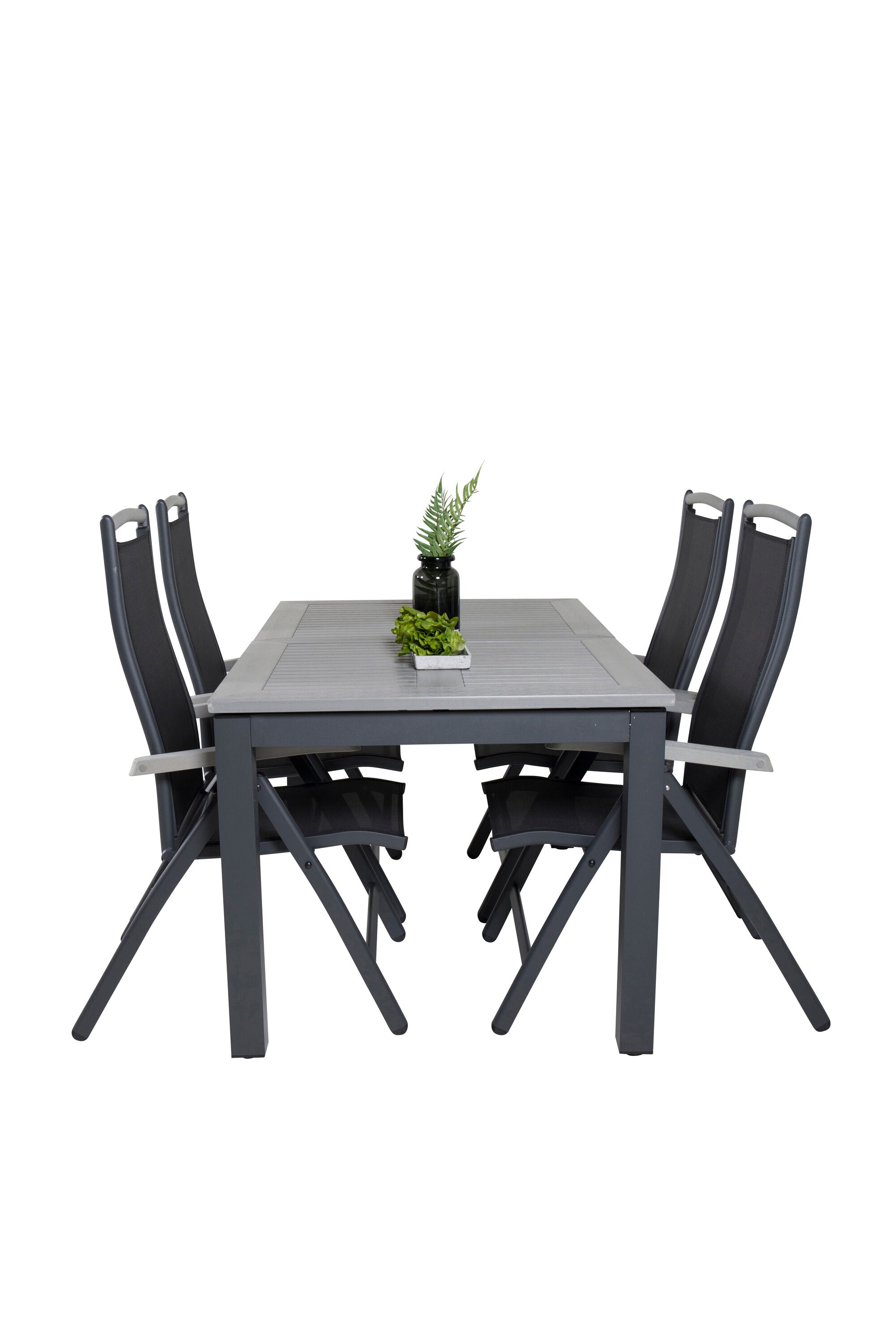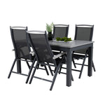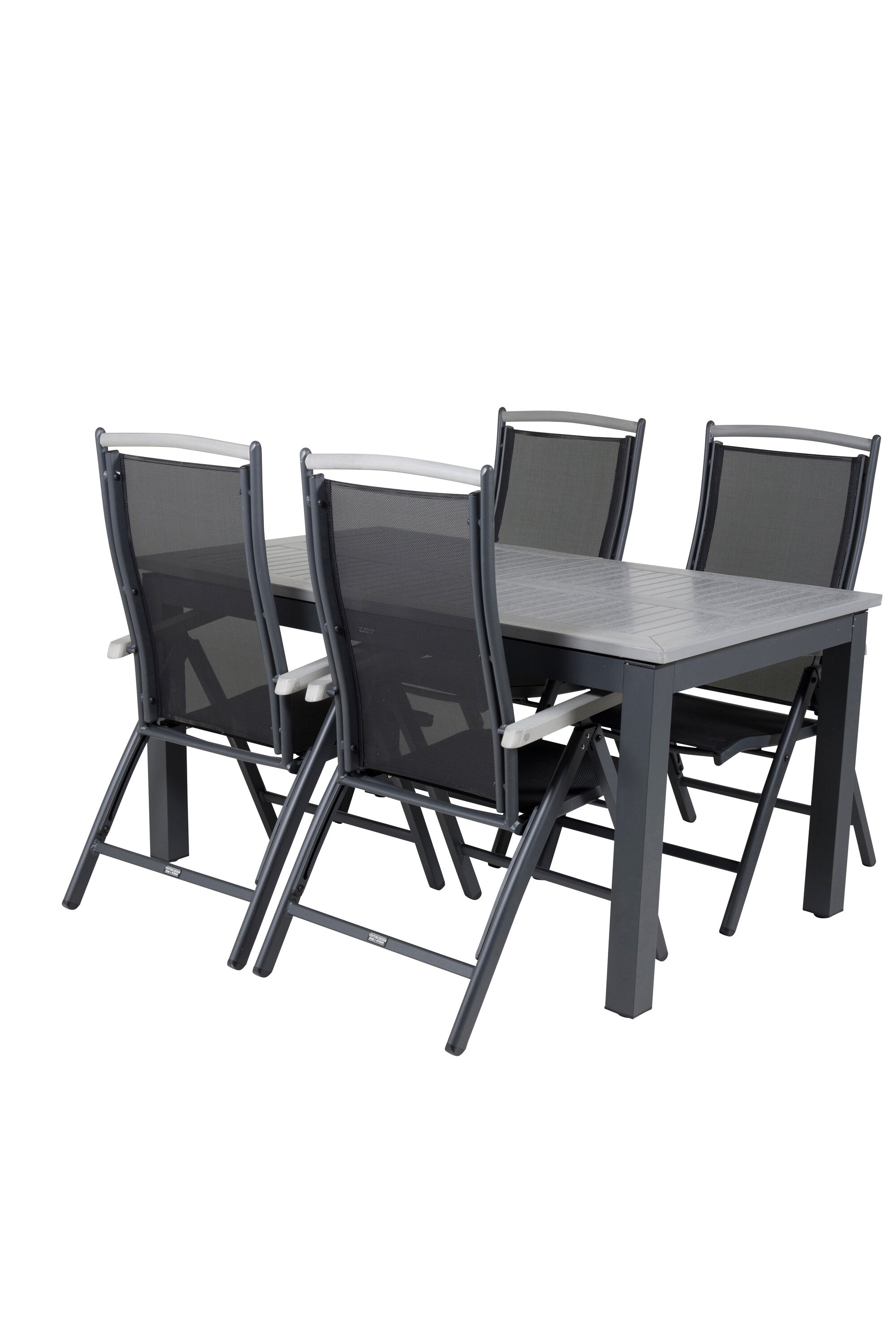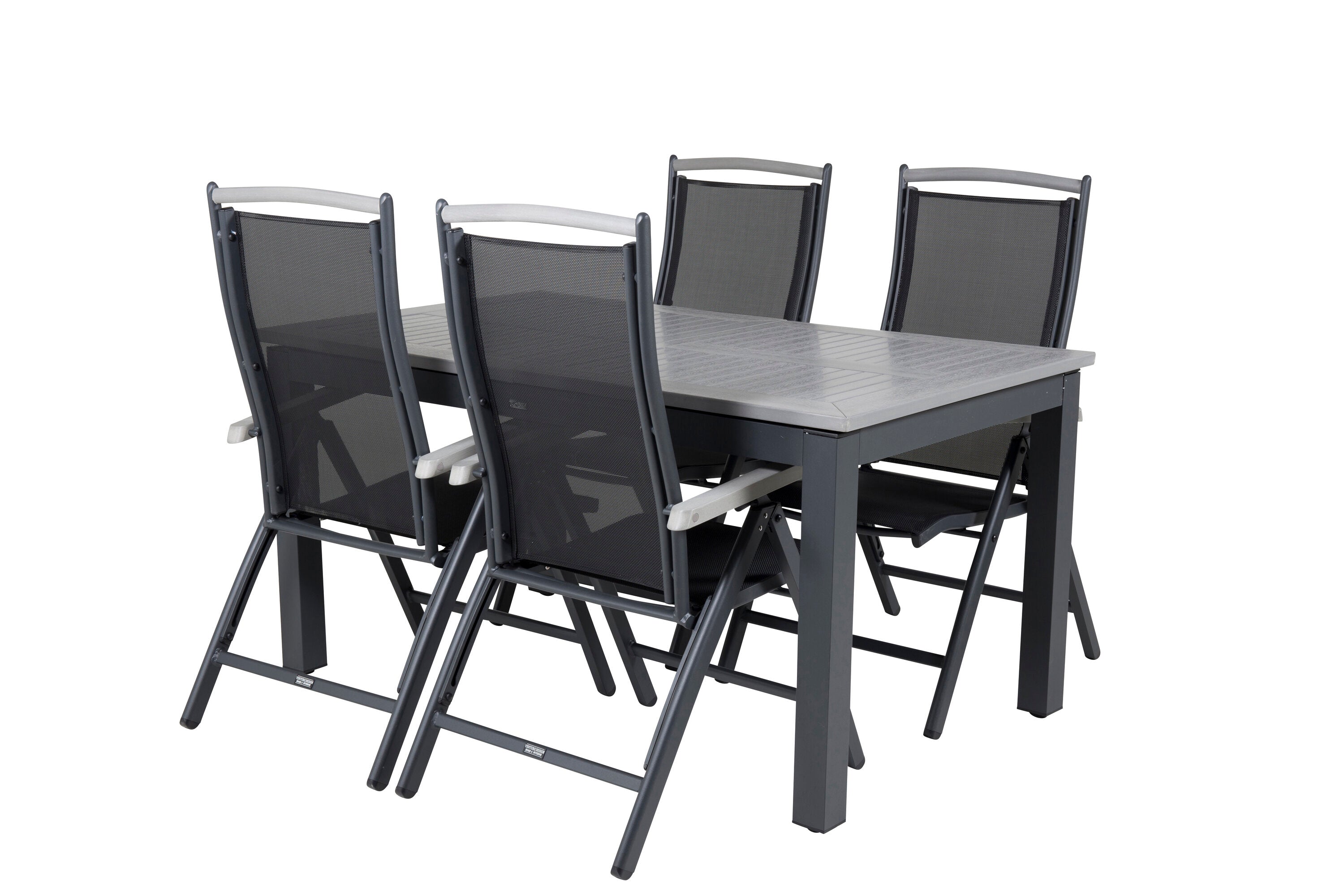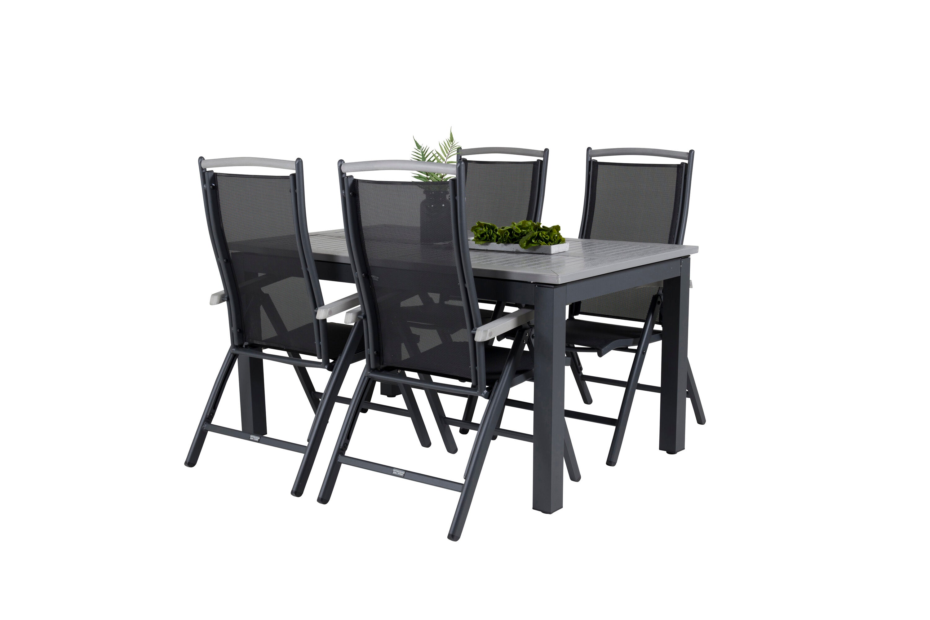 Albany stůl - 160/240 - černá/šedá - Albany 5:pos židle - černá/černá 4