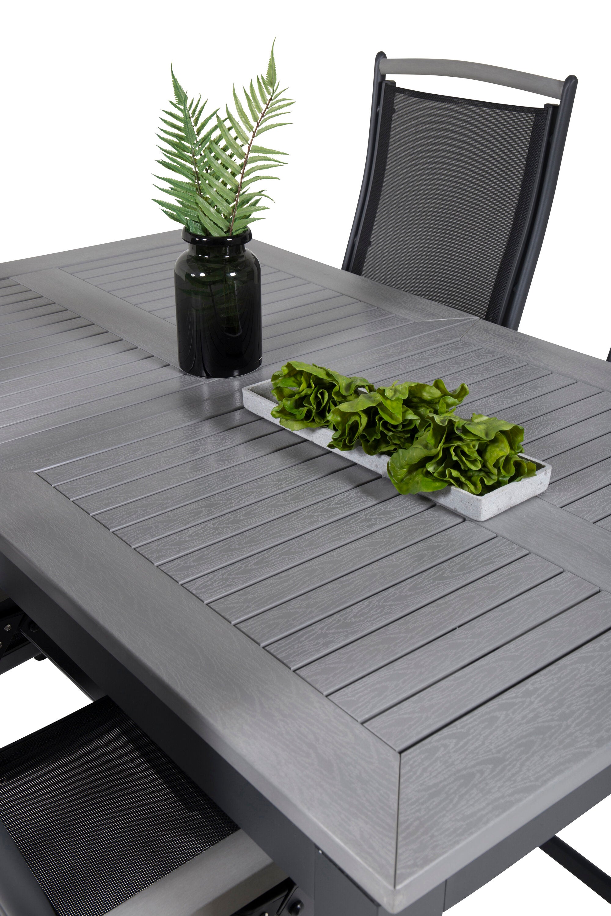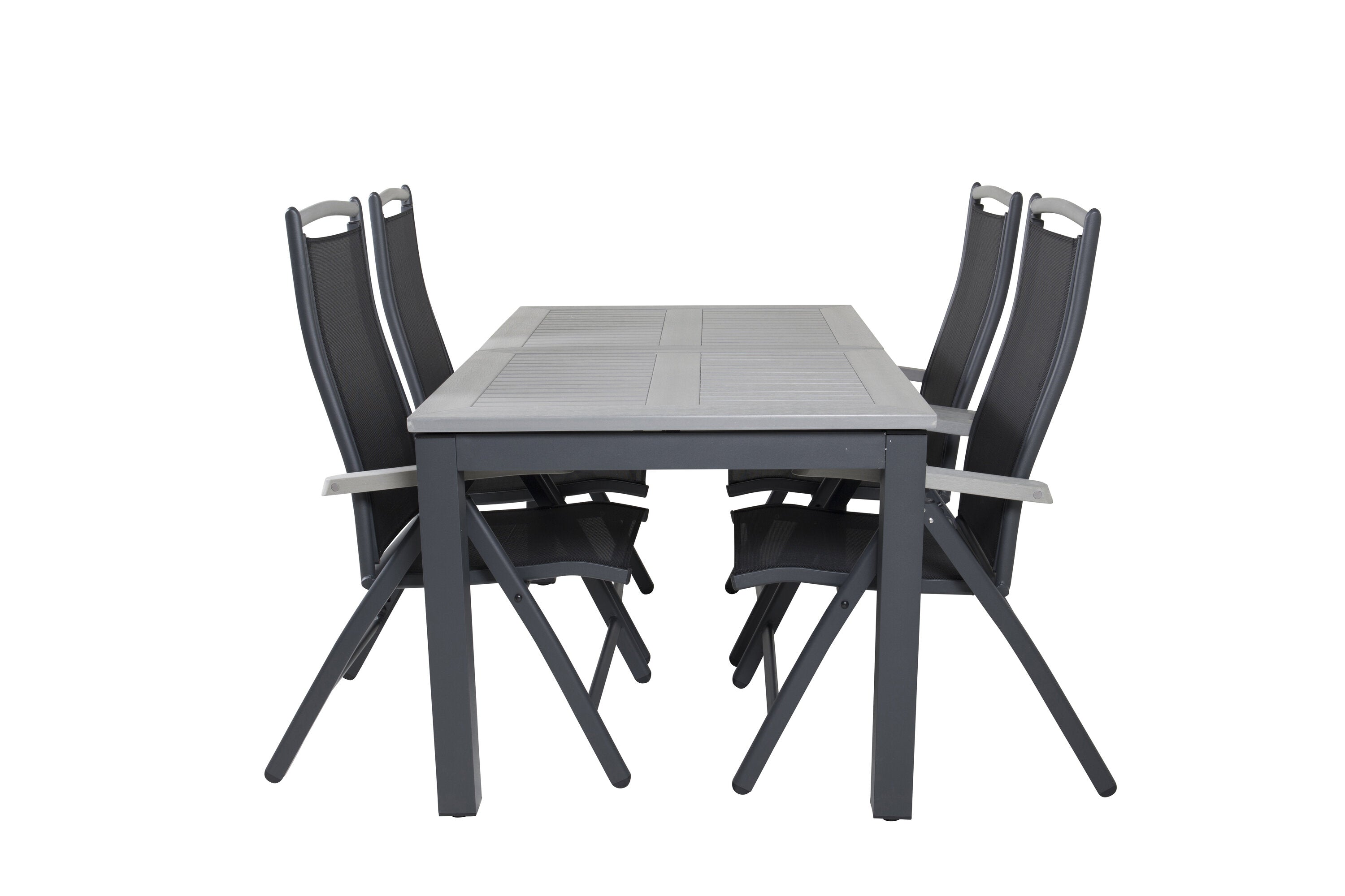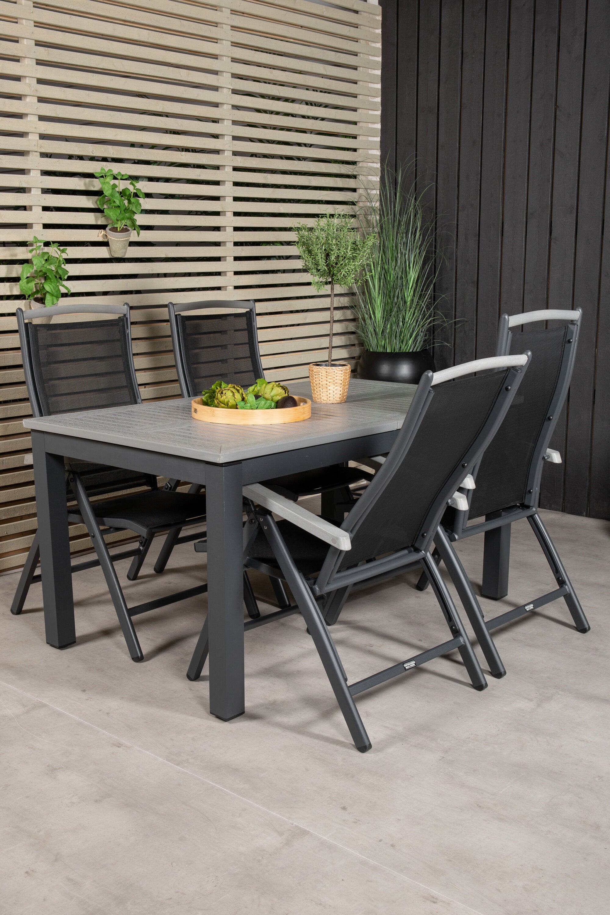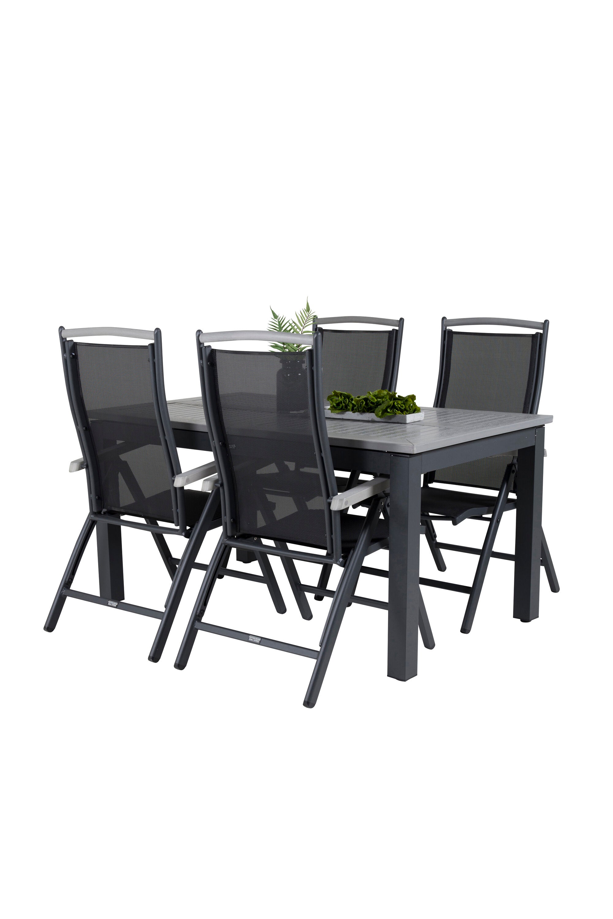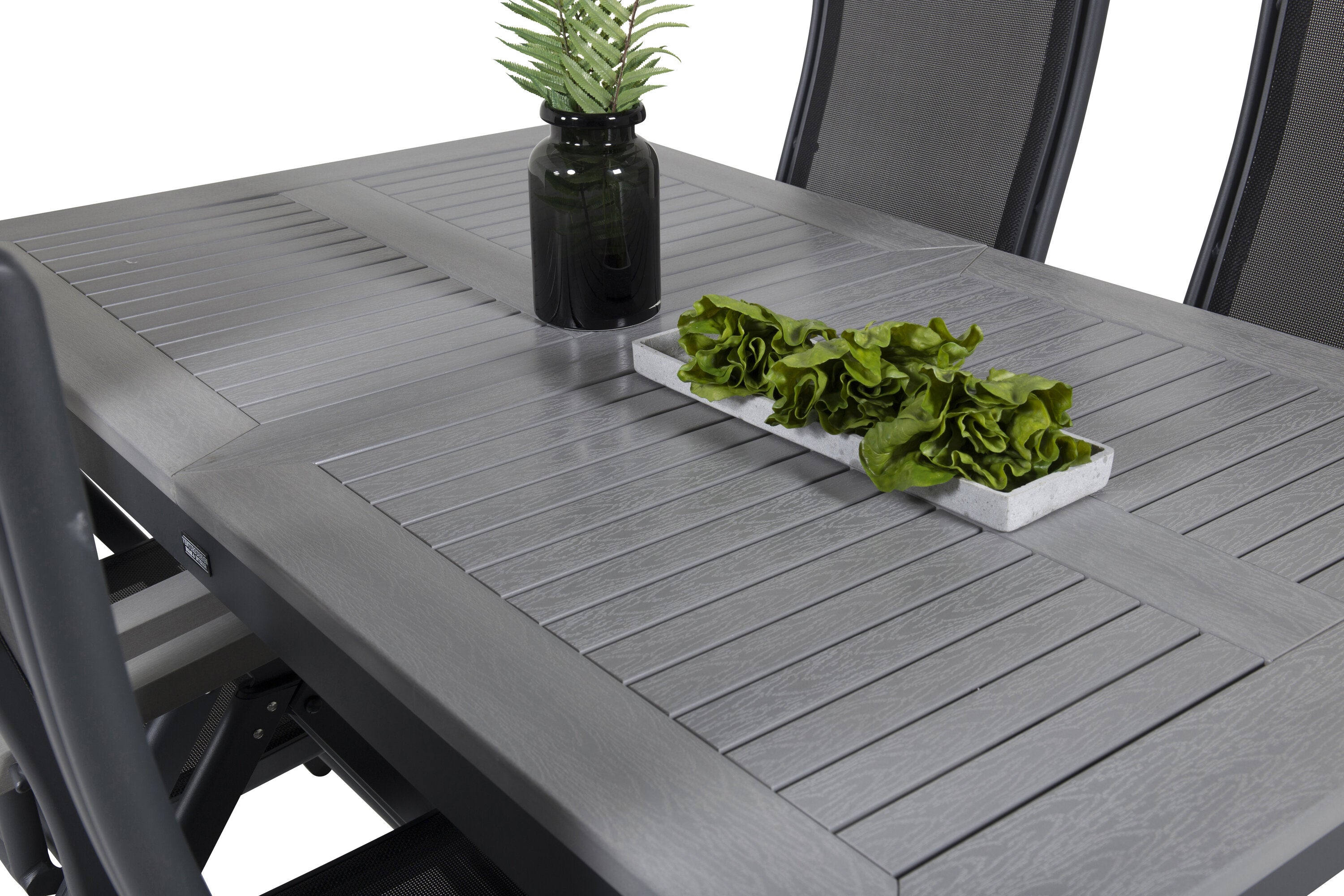 Albany stůl - 160/240 - černá/šedá - Albany 5:pos židle - černá/černá 4