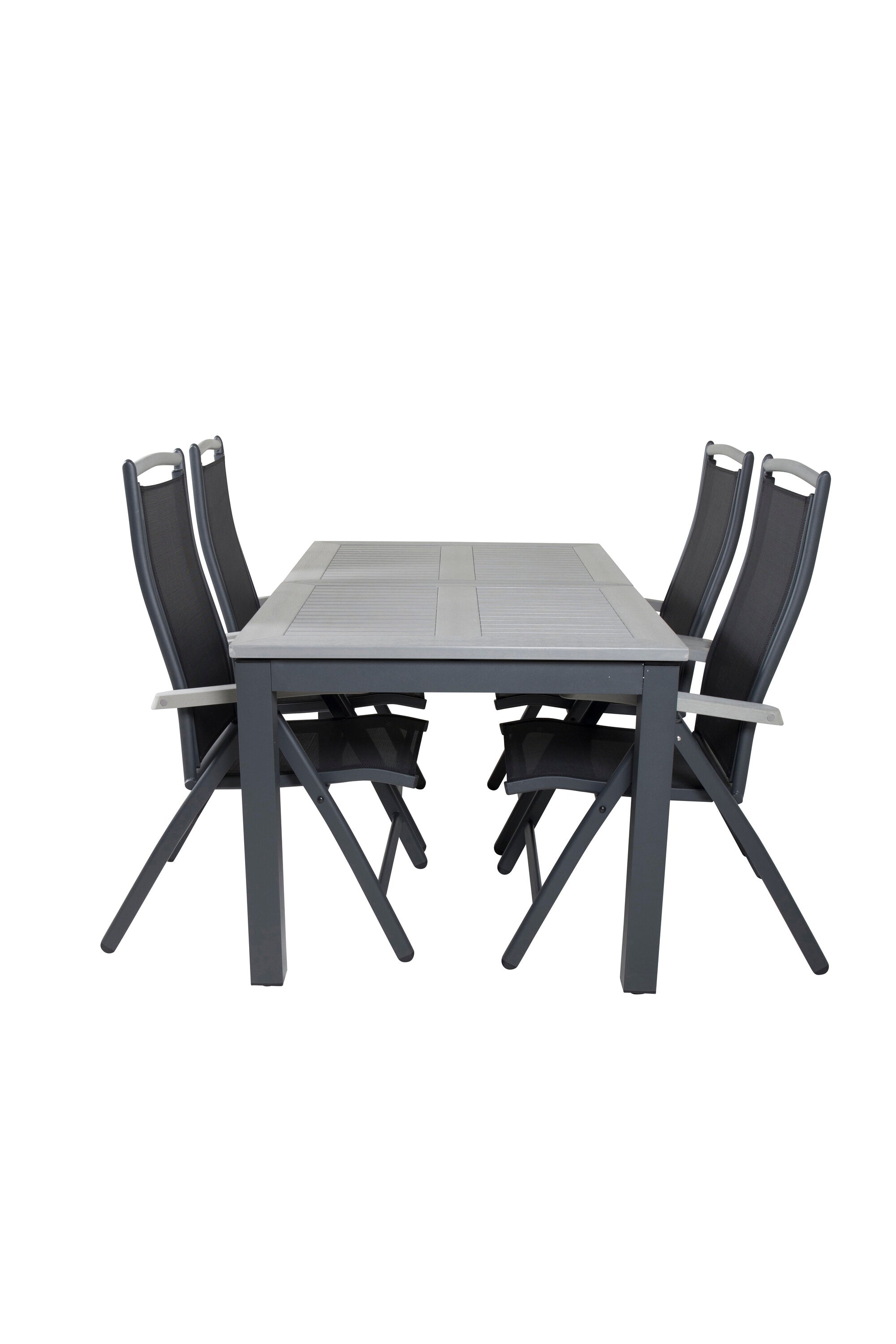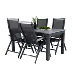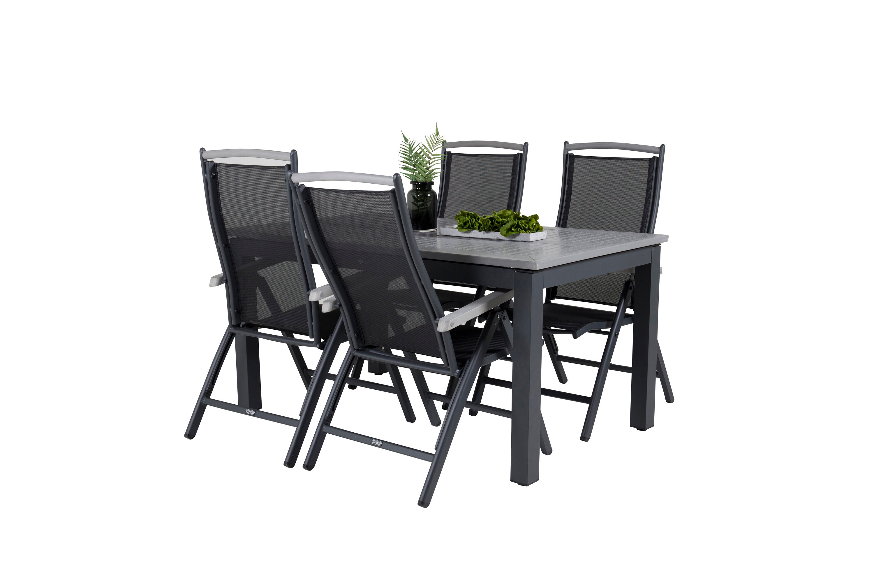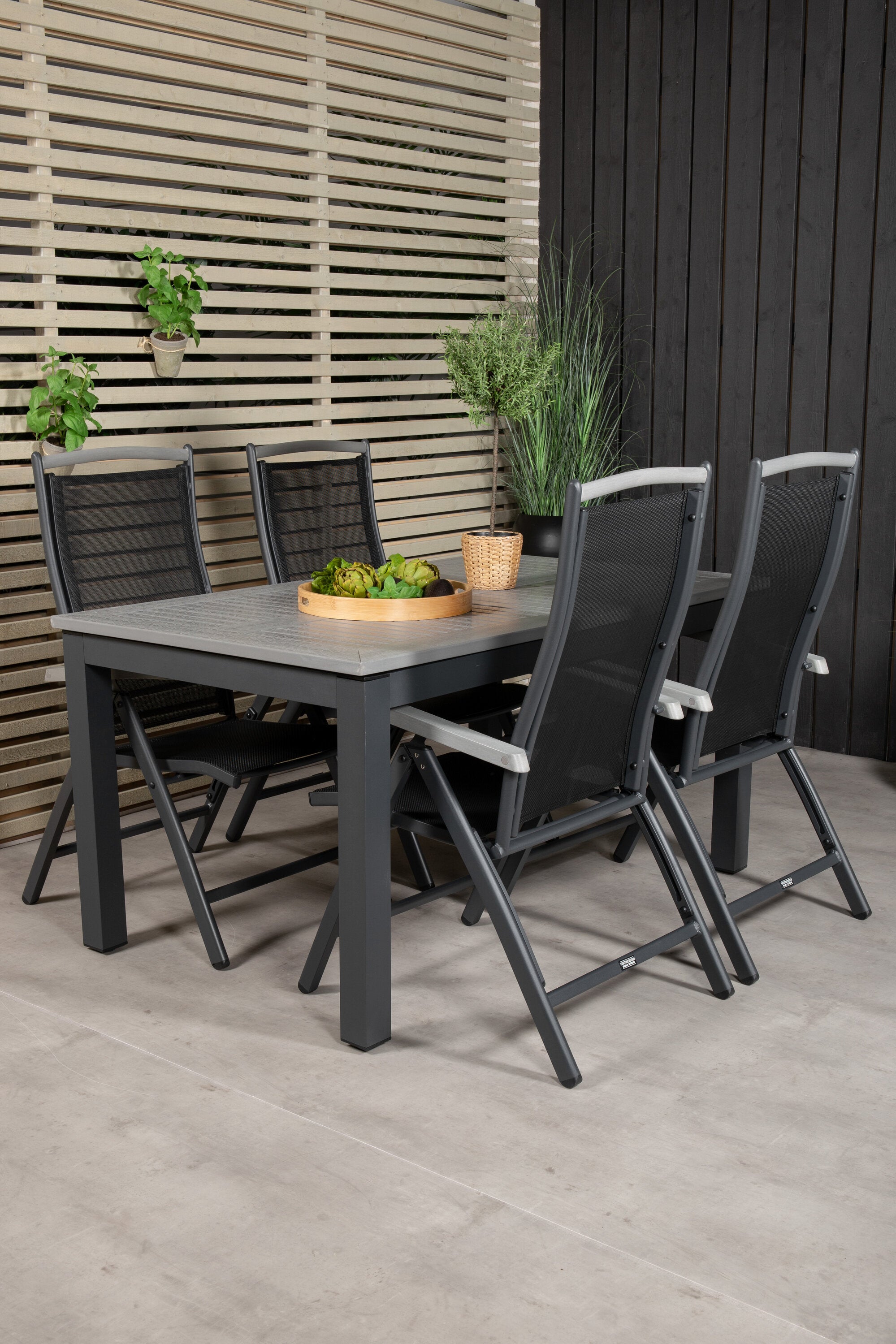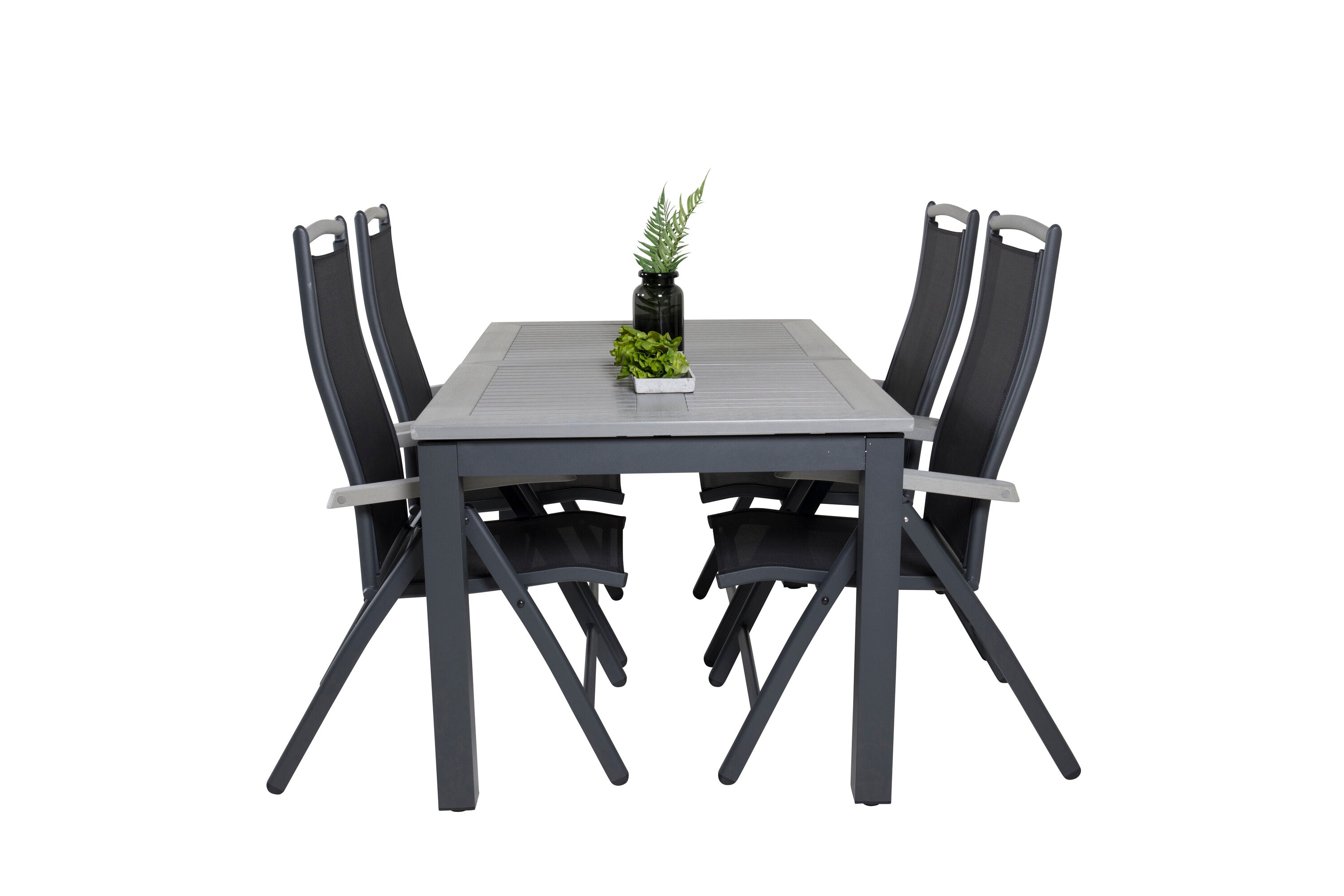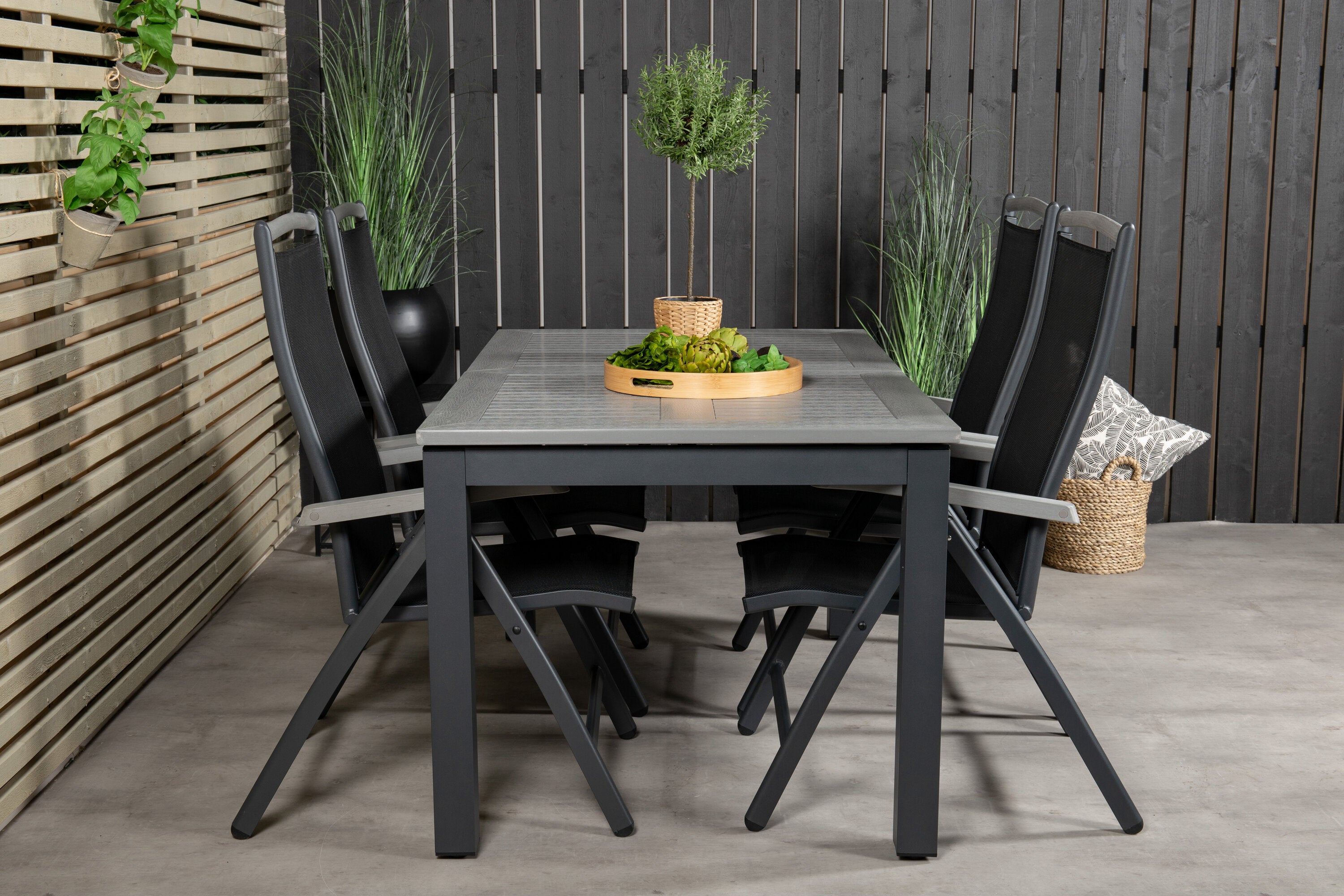 Albany stůl - 160/240 - černá/šedá - Albany 5:pos židle - černá/černá 4