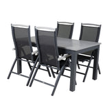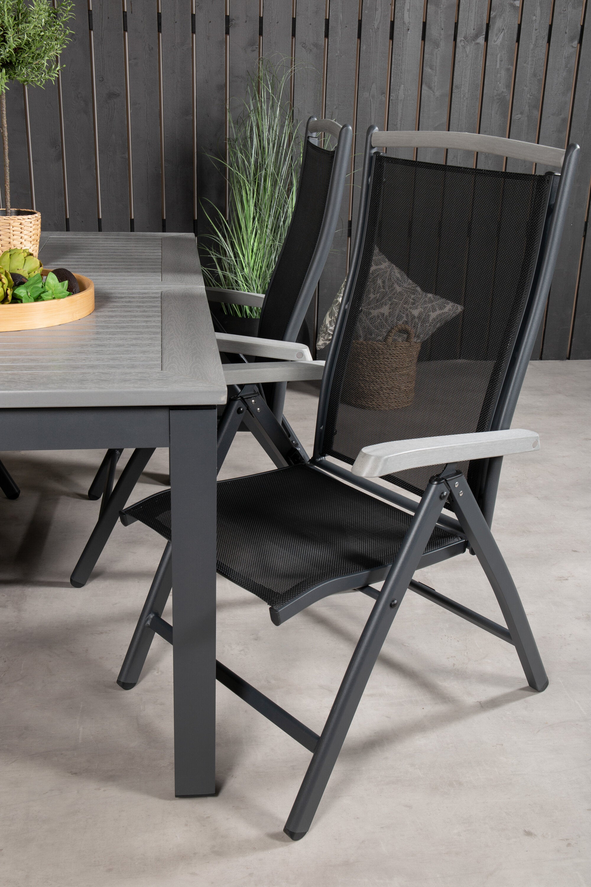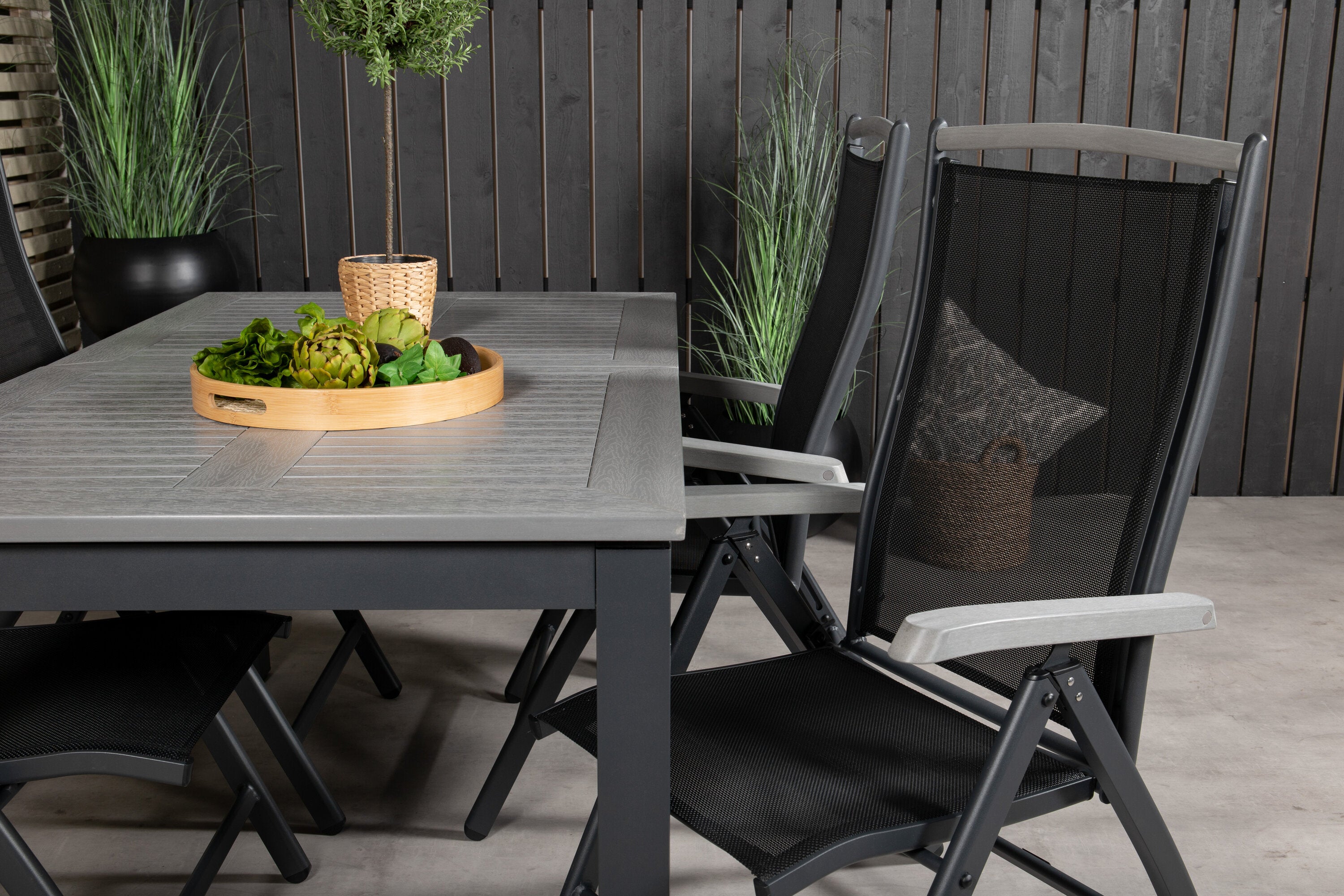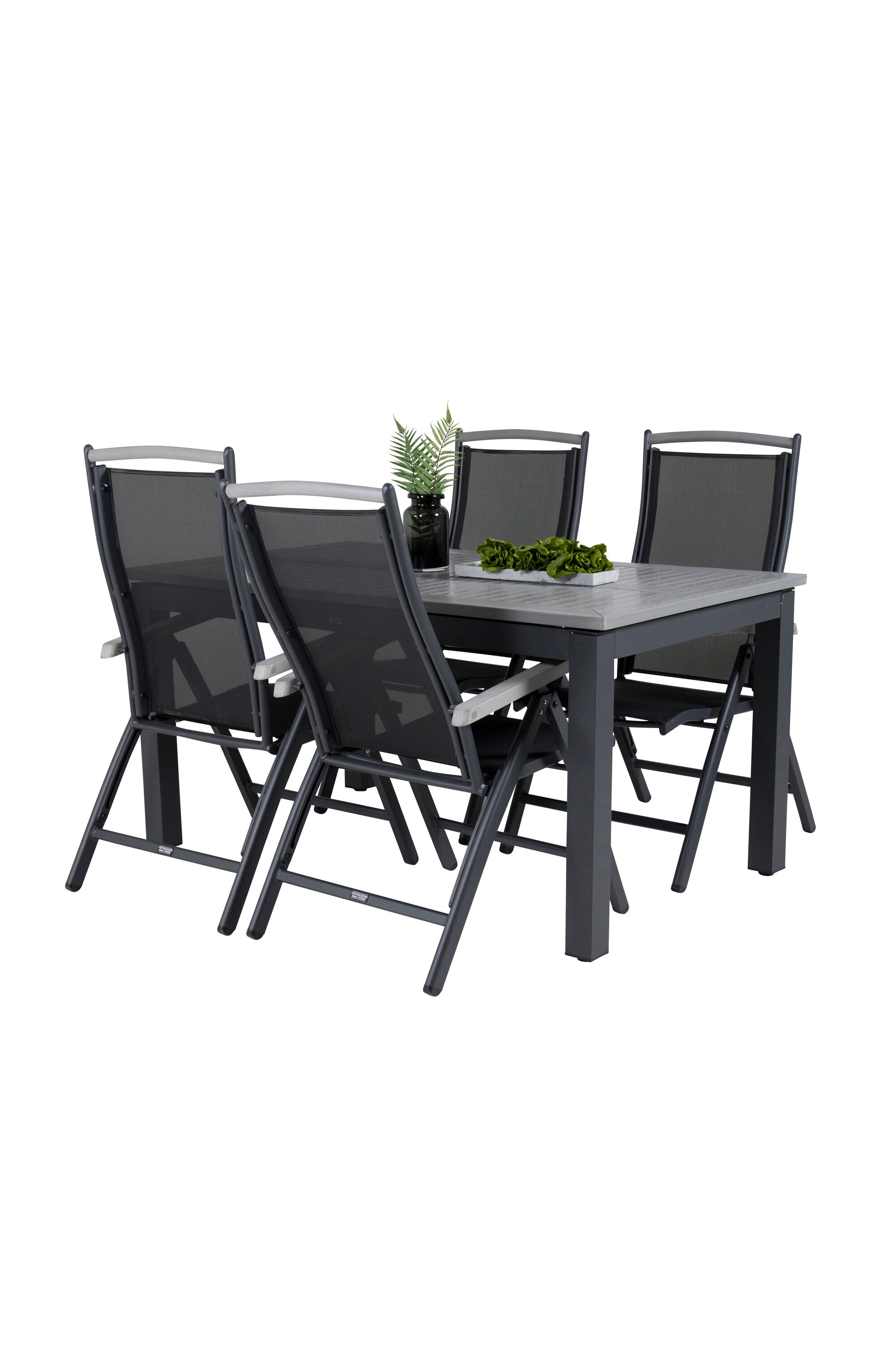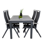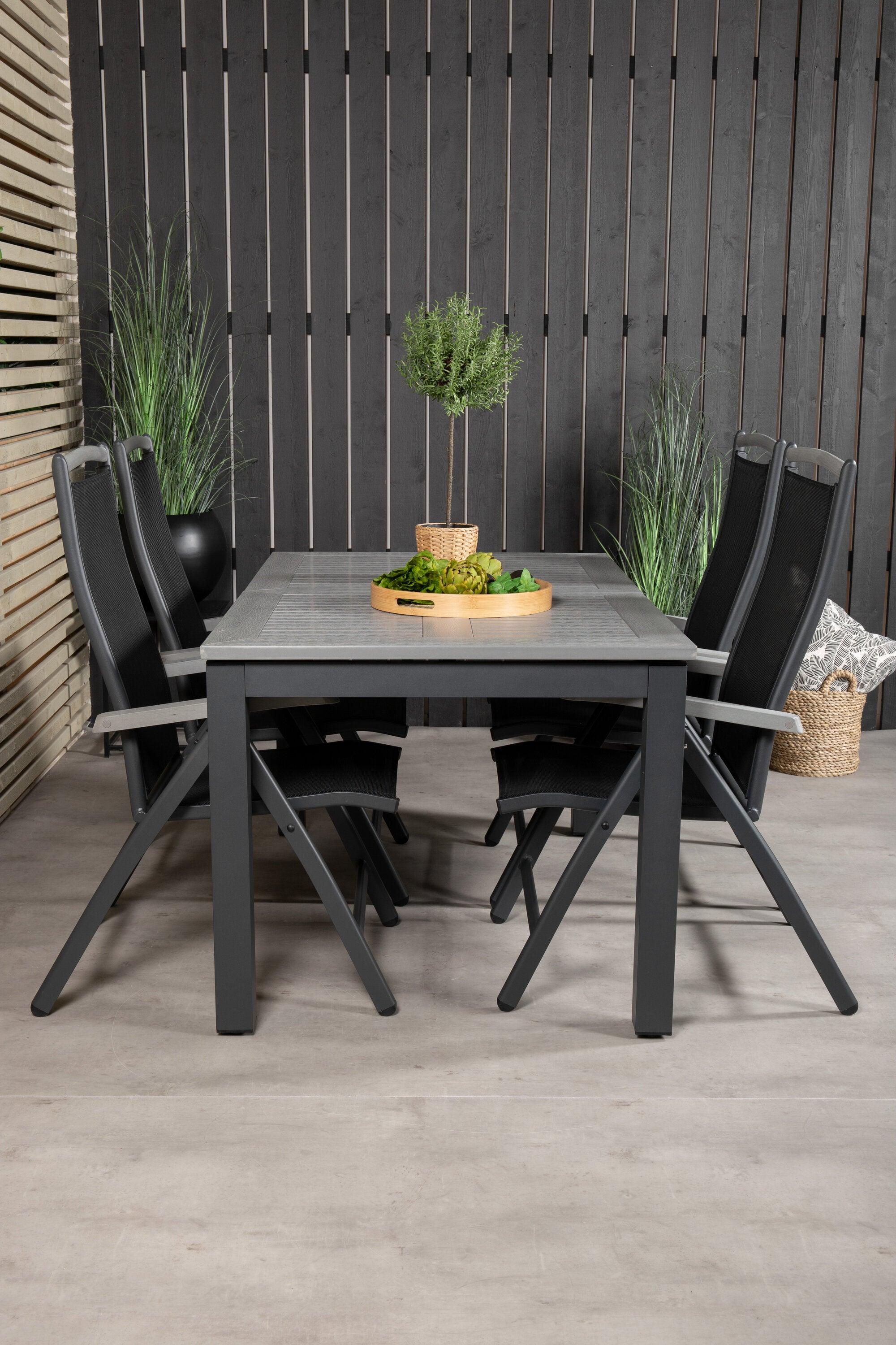 Albany stůl - 160/240 - černá/šedá - Albany 5:pos židle - černá/černá 4