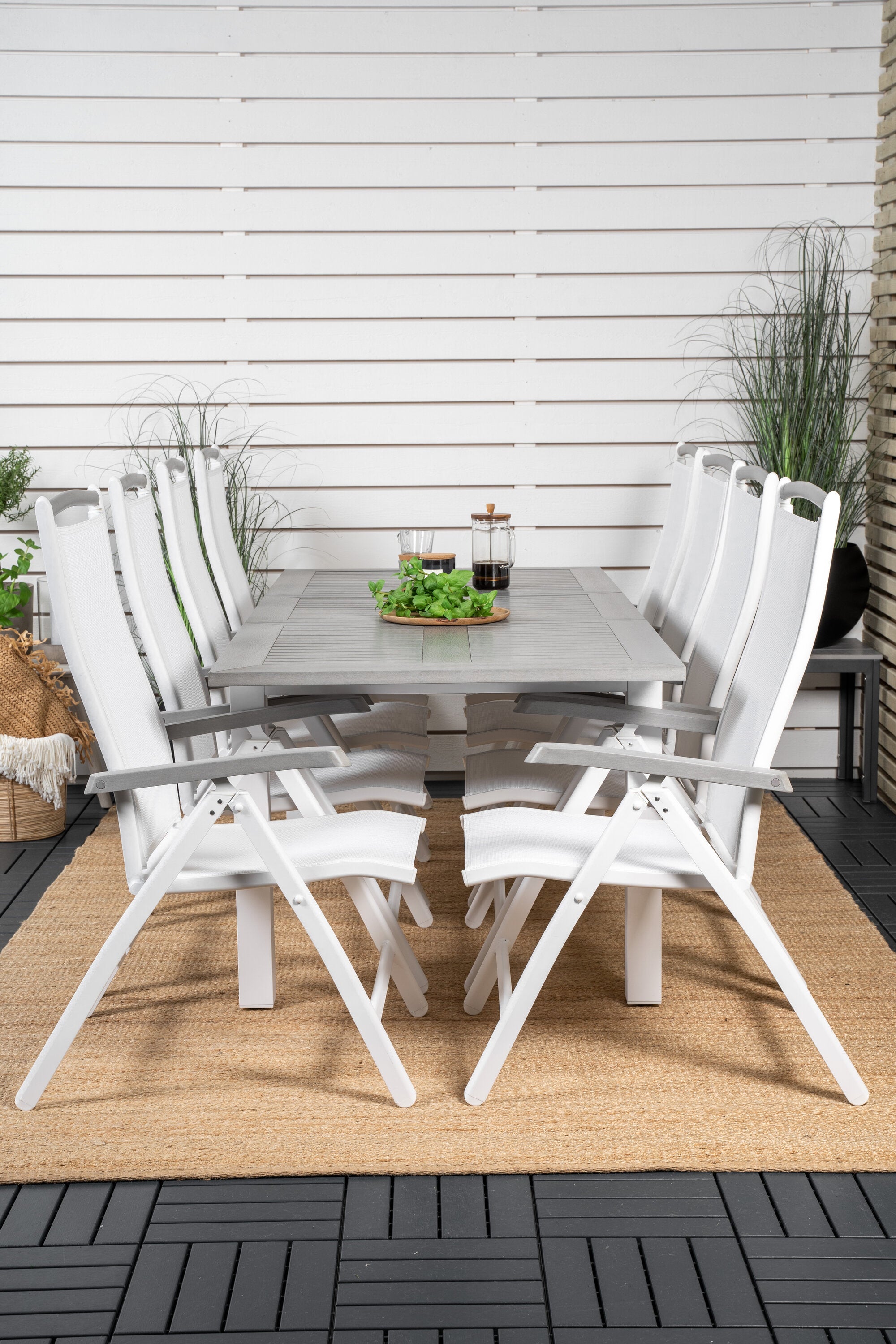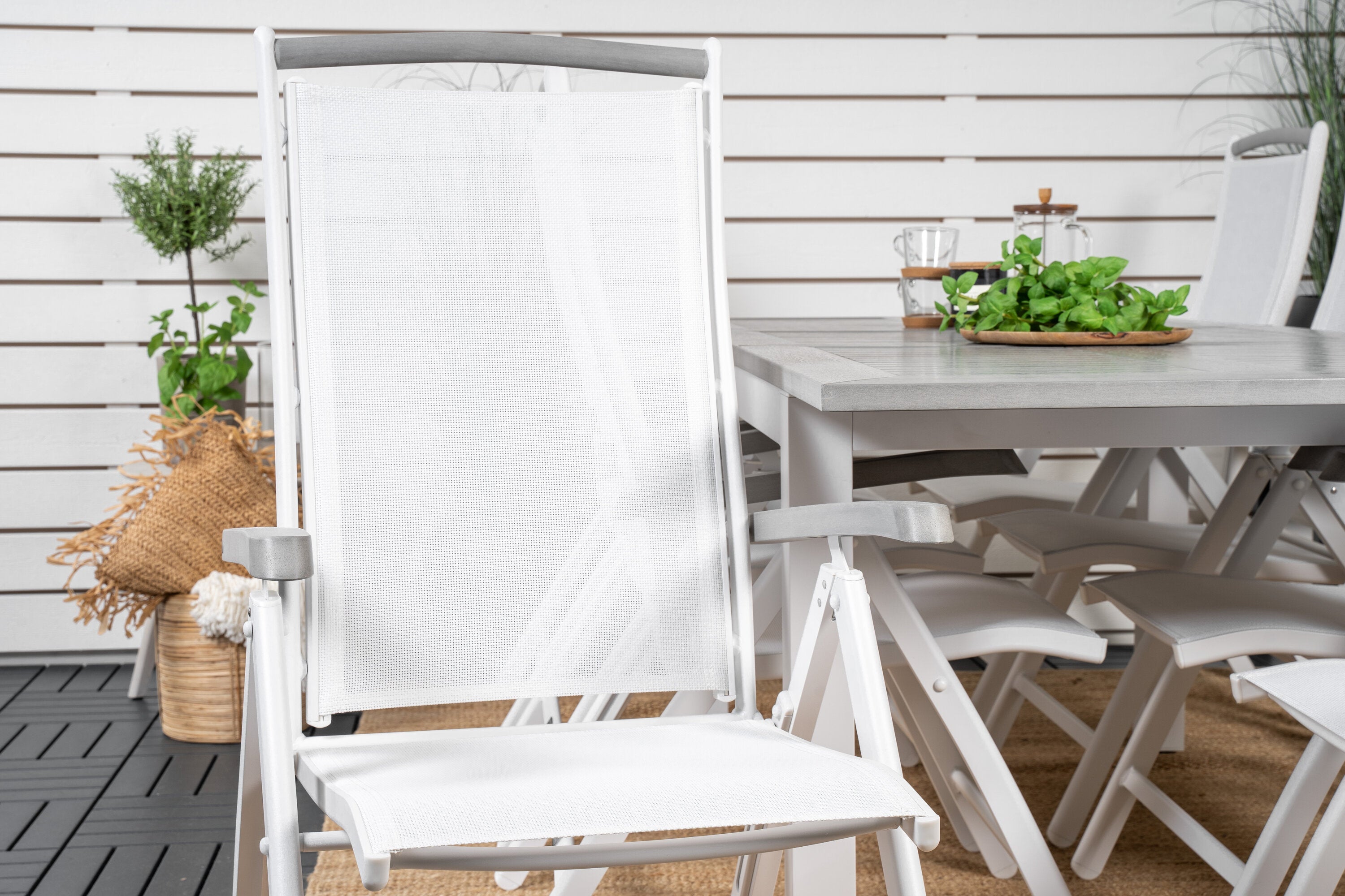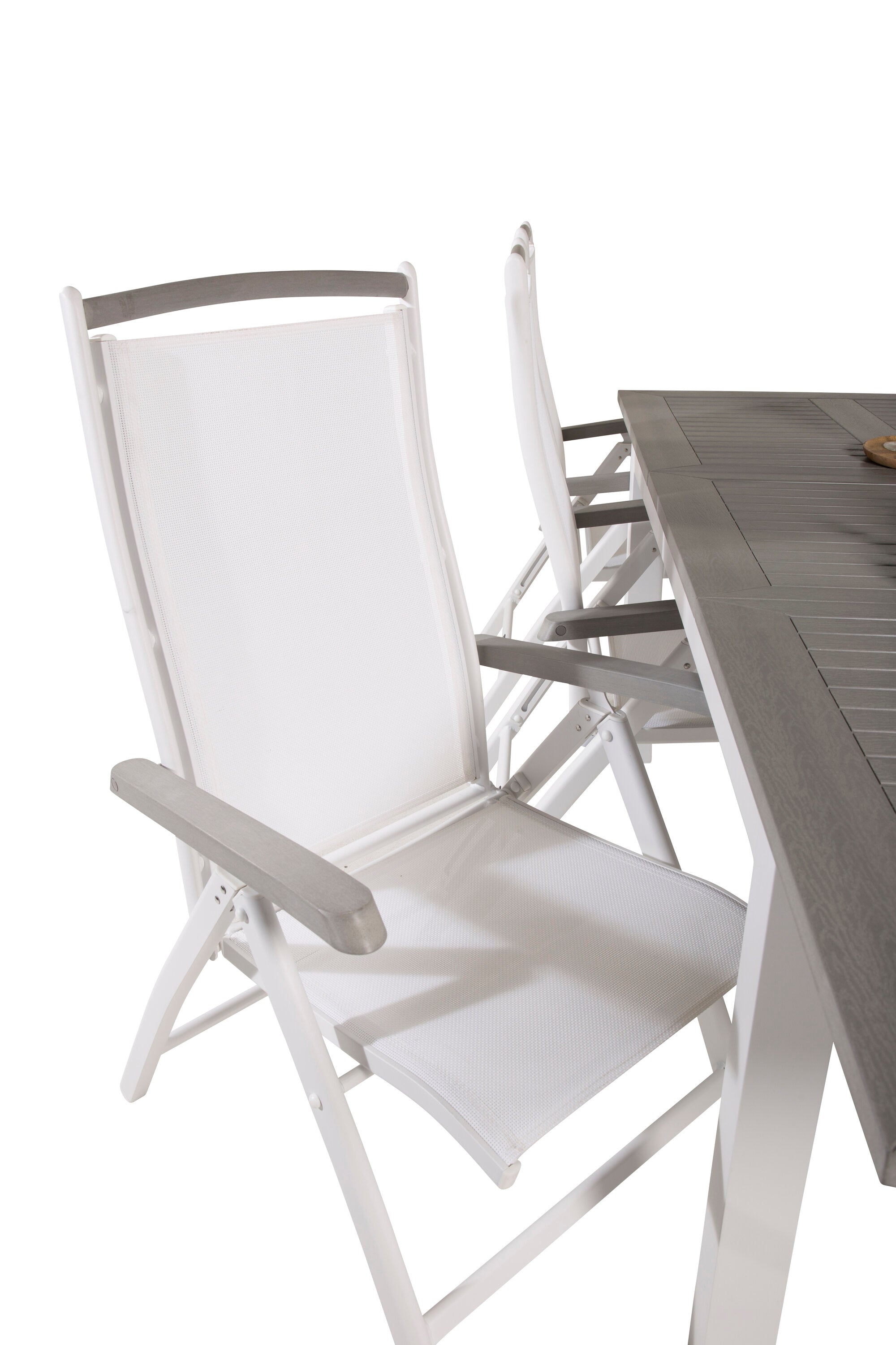 Albany Table - 160/240 - White/Grey - Albany 5:pos Stol - Vit Aluminium/vit textilene/aintwood 8