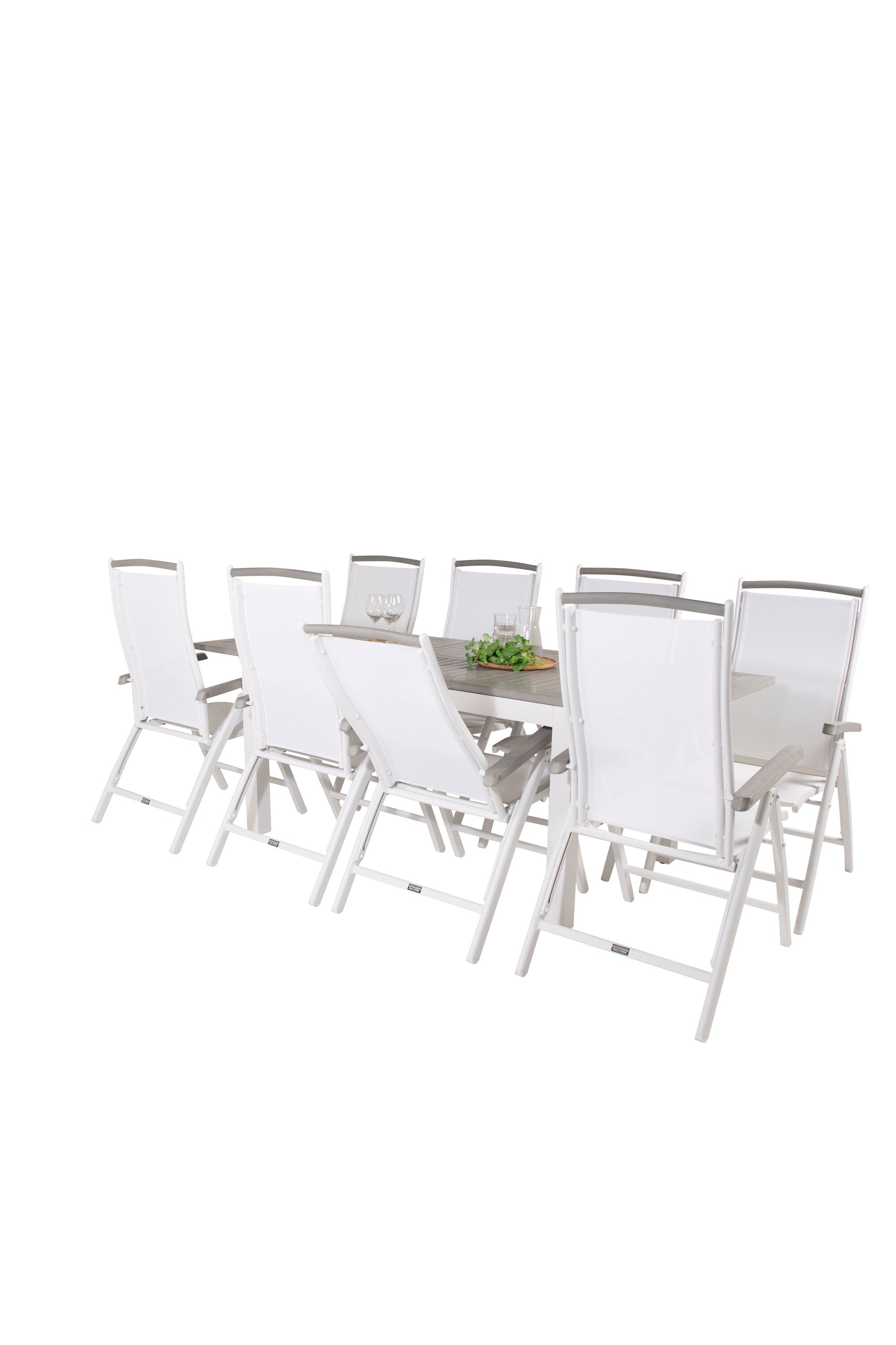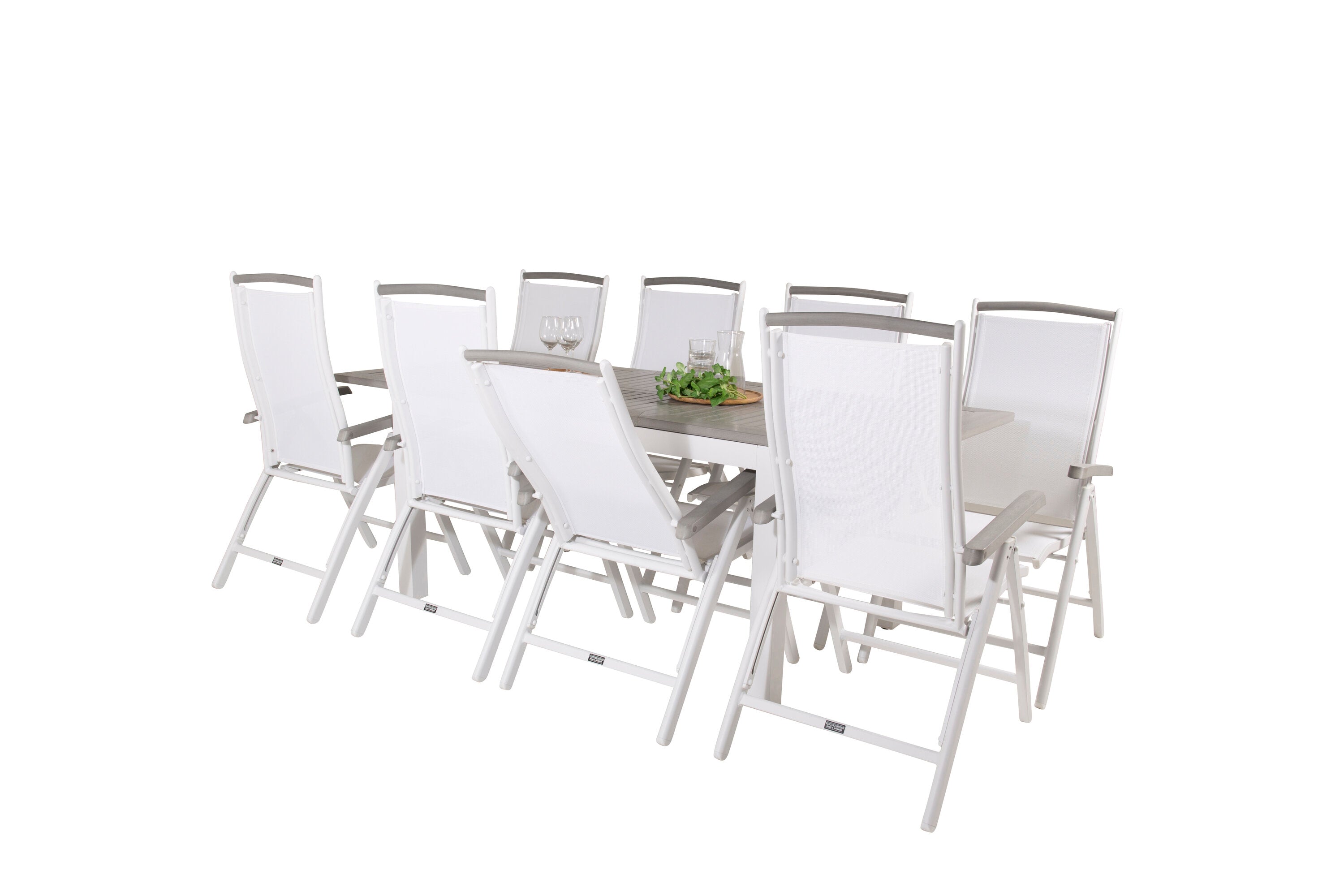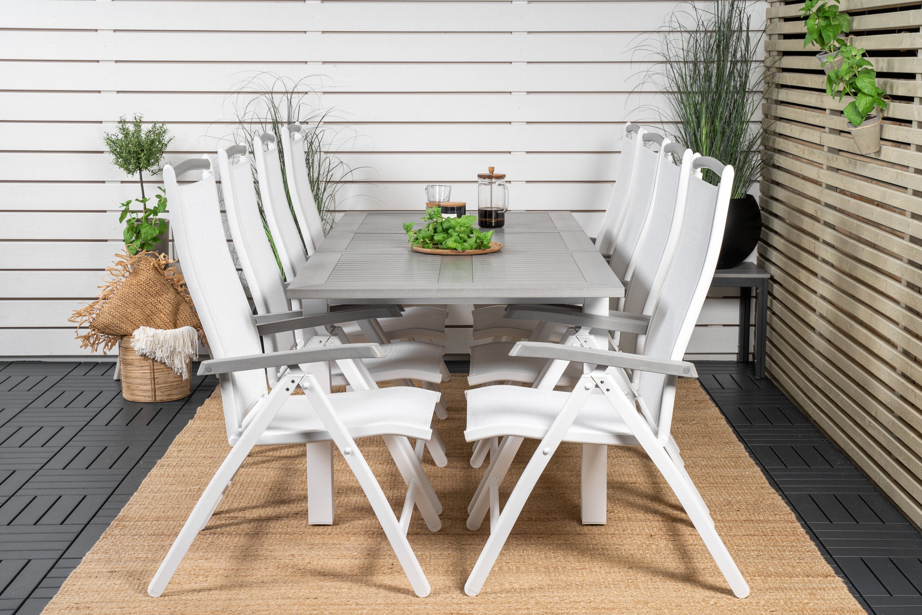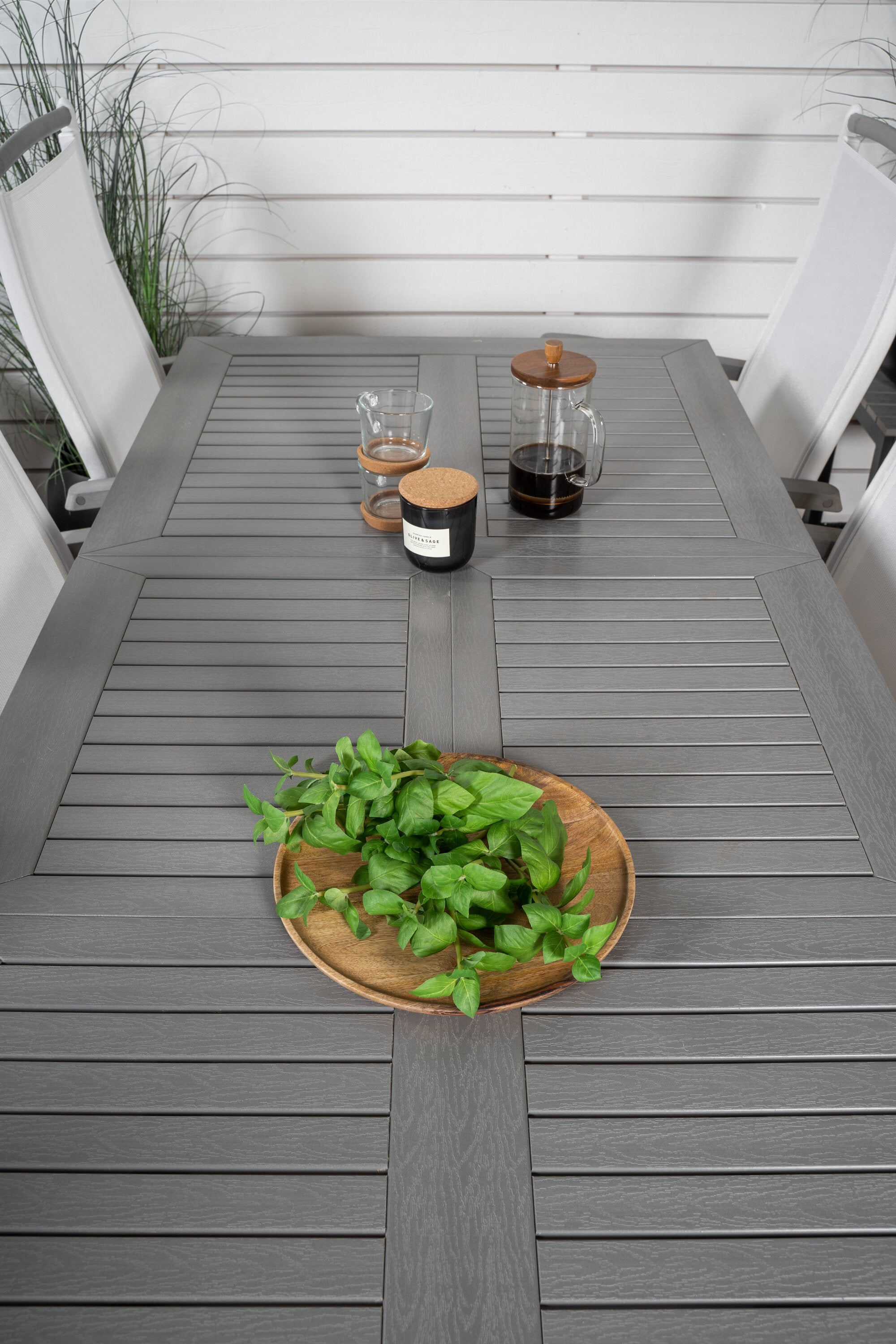 Albany Table - 160/240 - White/Grey - Albany 5:pos Stol - Vit Aluminium/vit textilene/aintwood 8