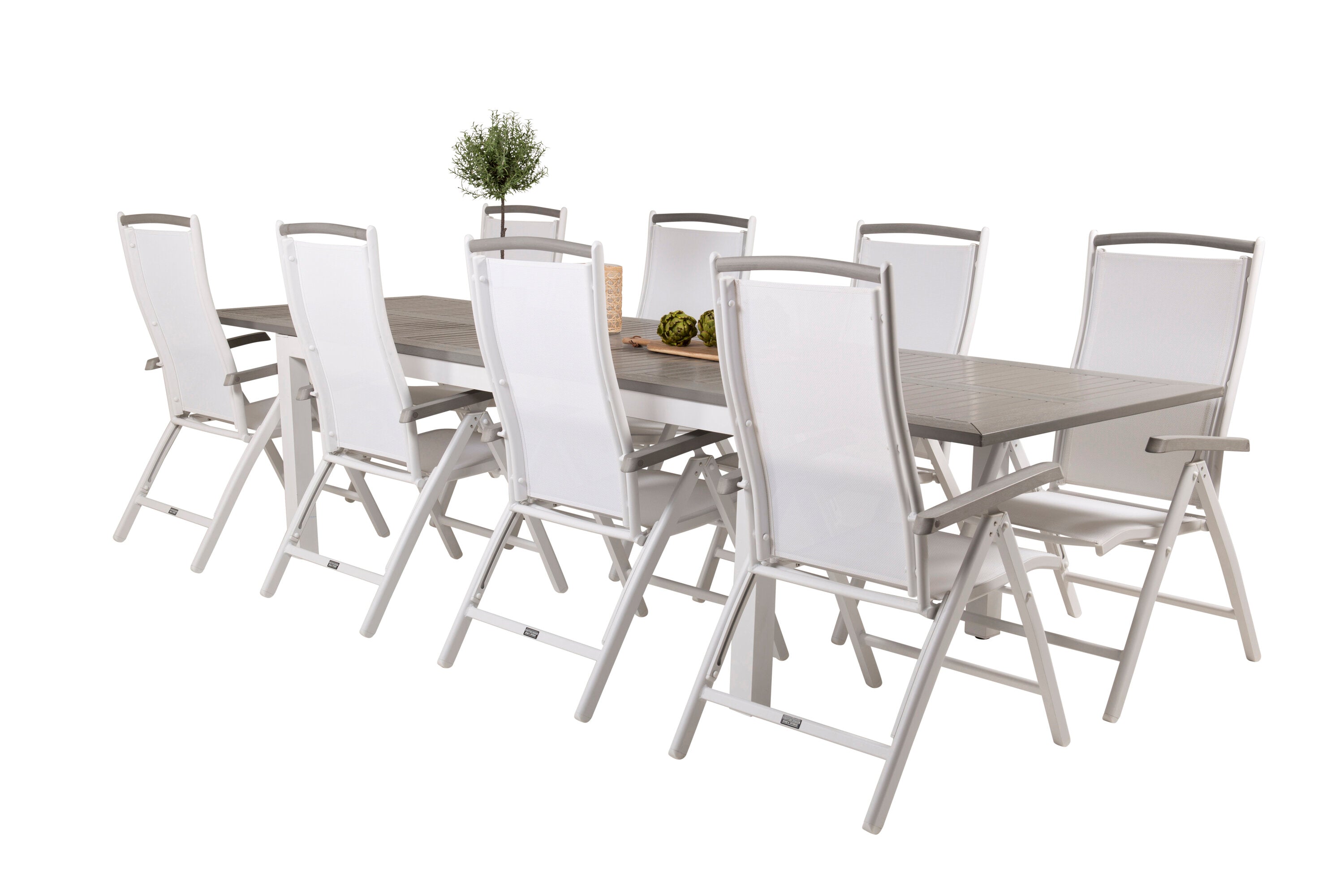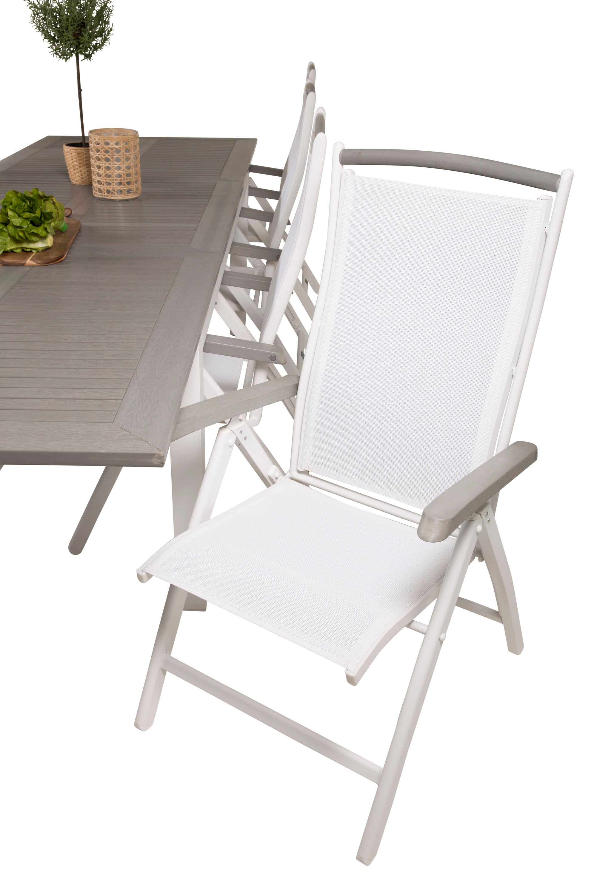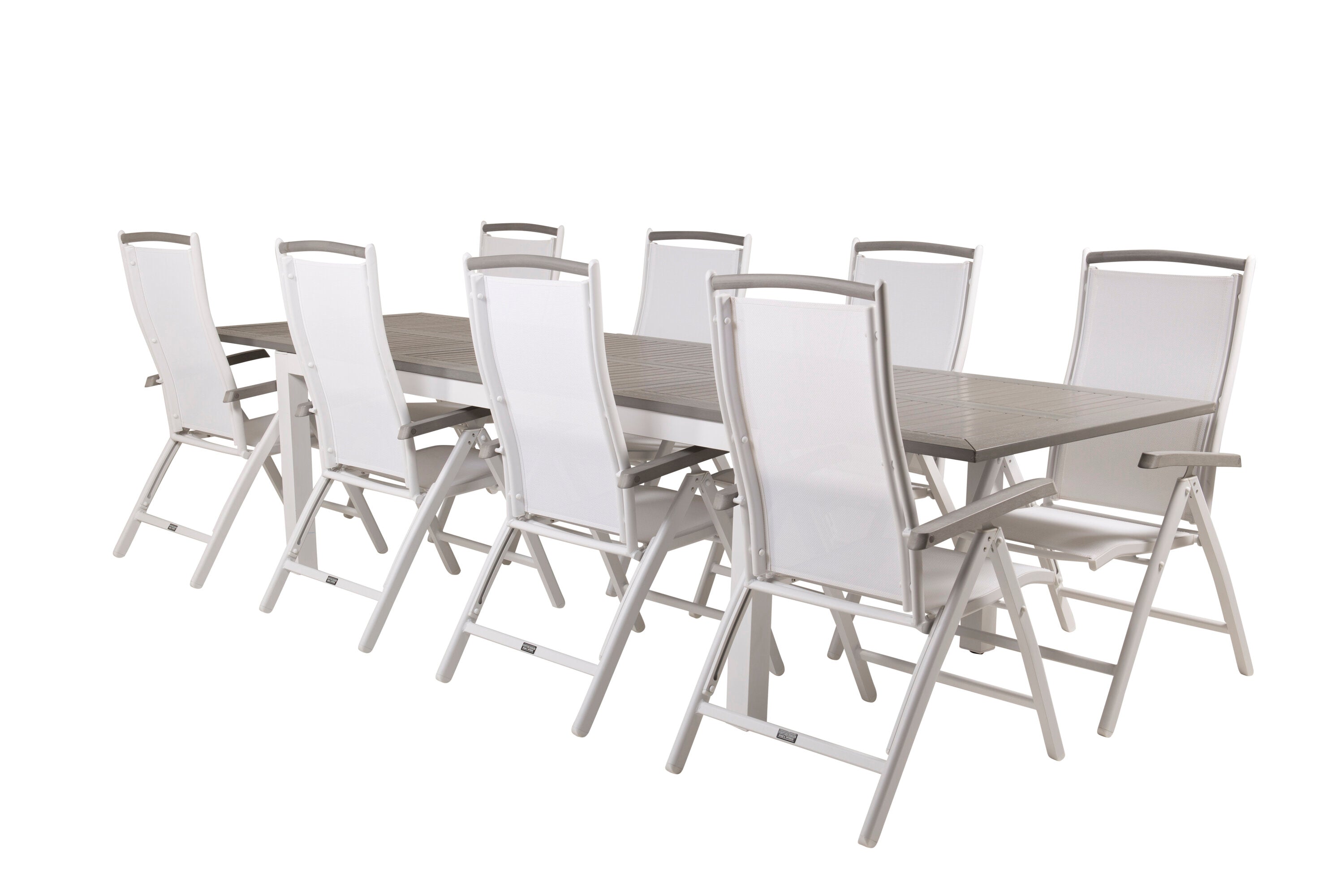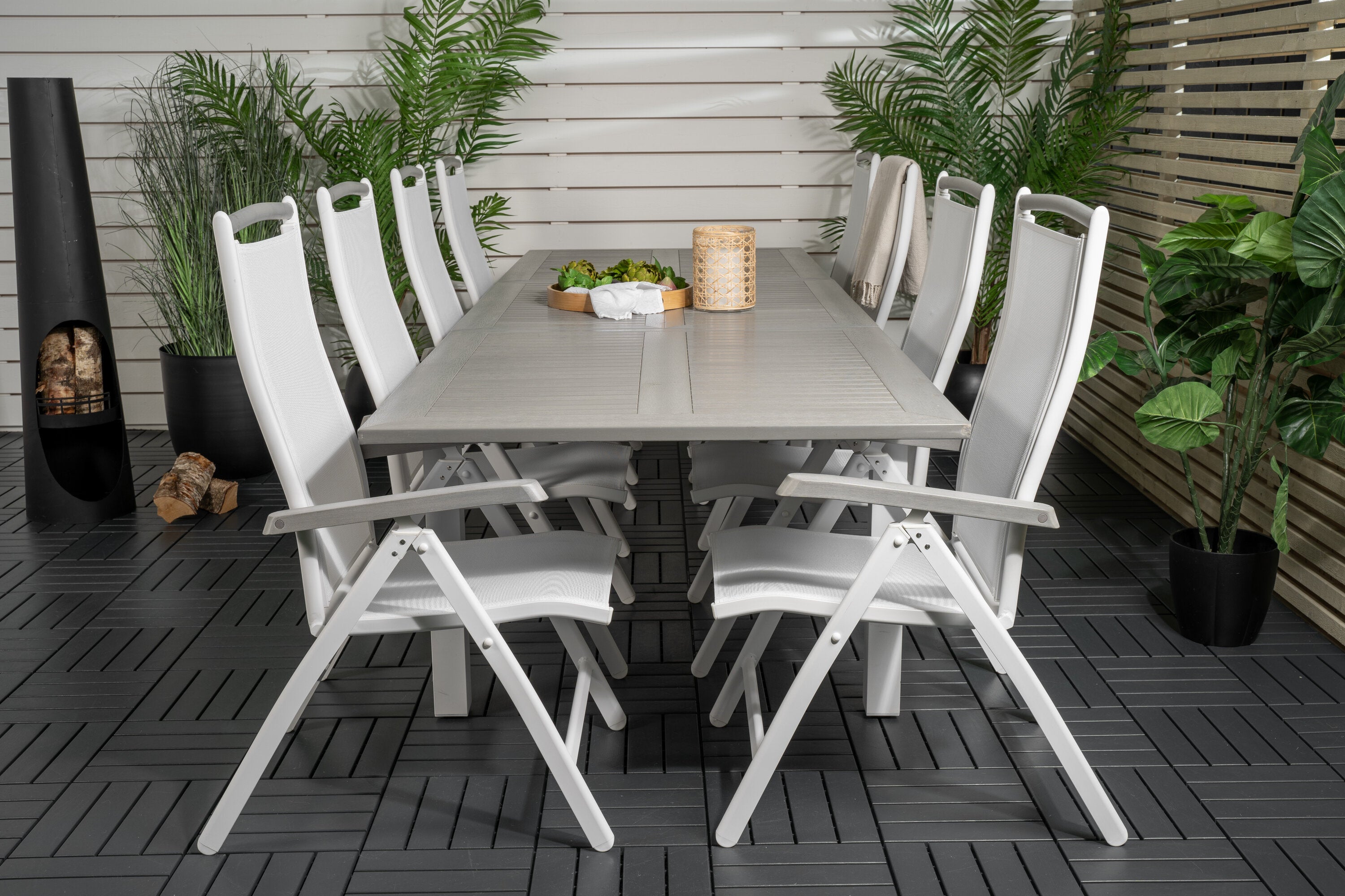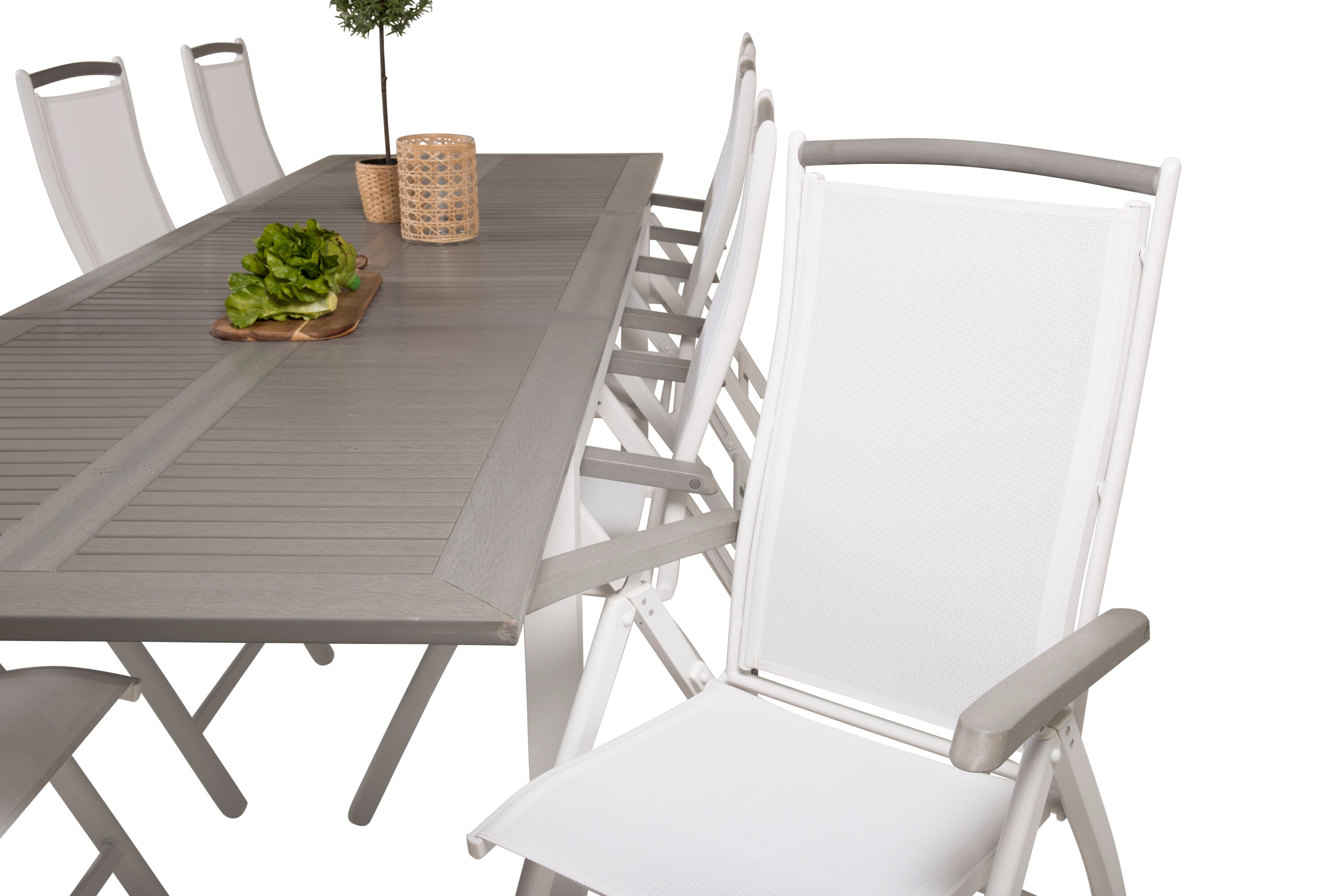 Albany Table - 224/324 - White/Grey - Albany 5:pos Stol - Vit Aluminium/vit textilene/aintwood 8