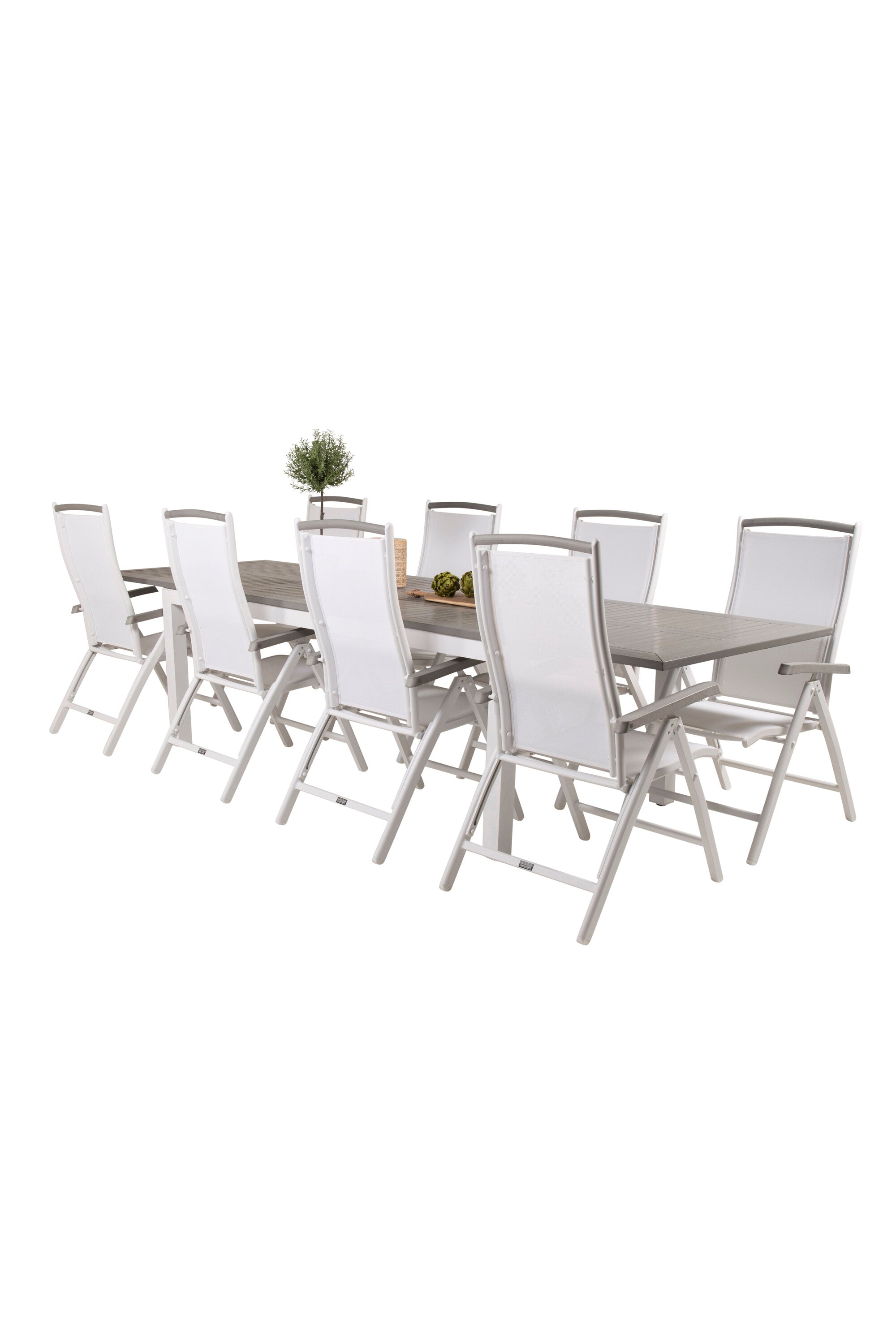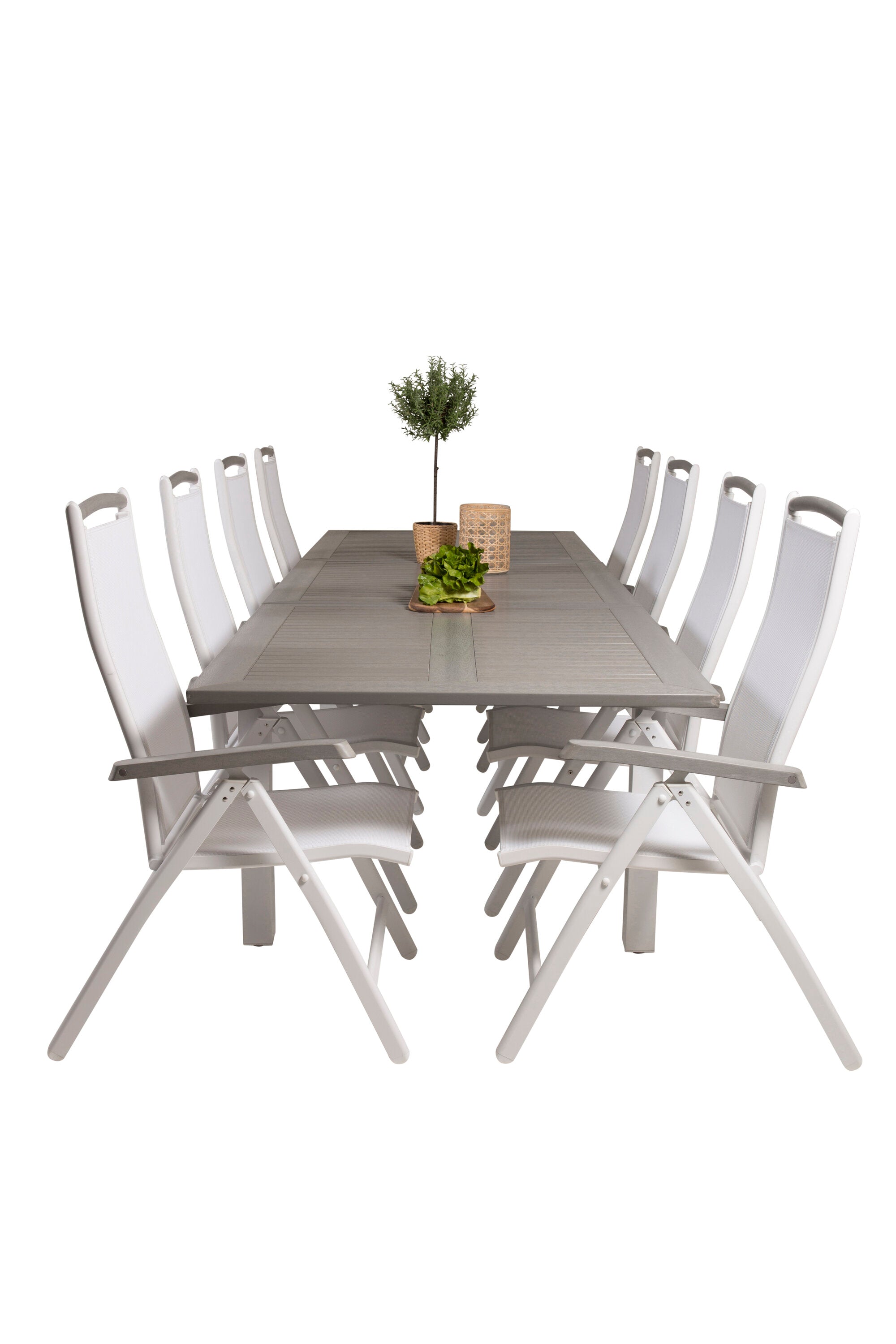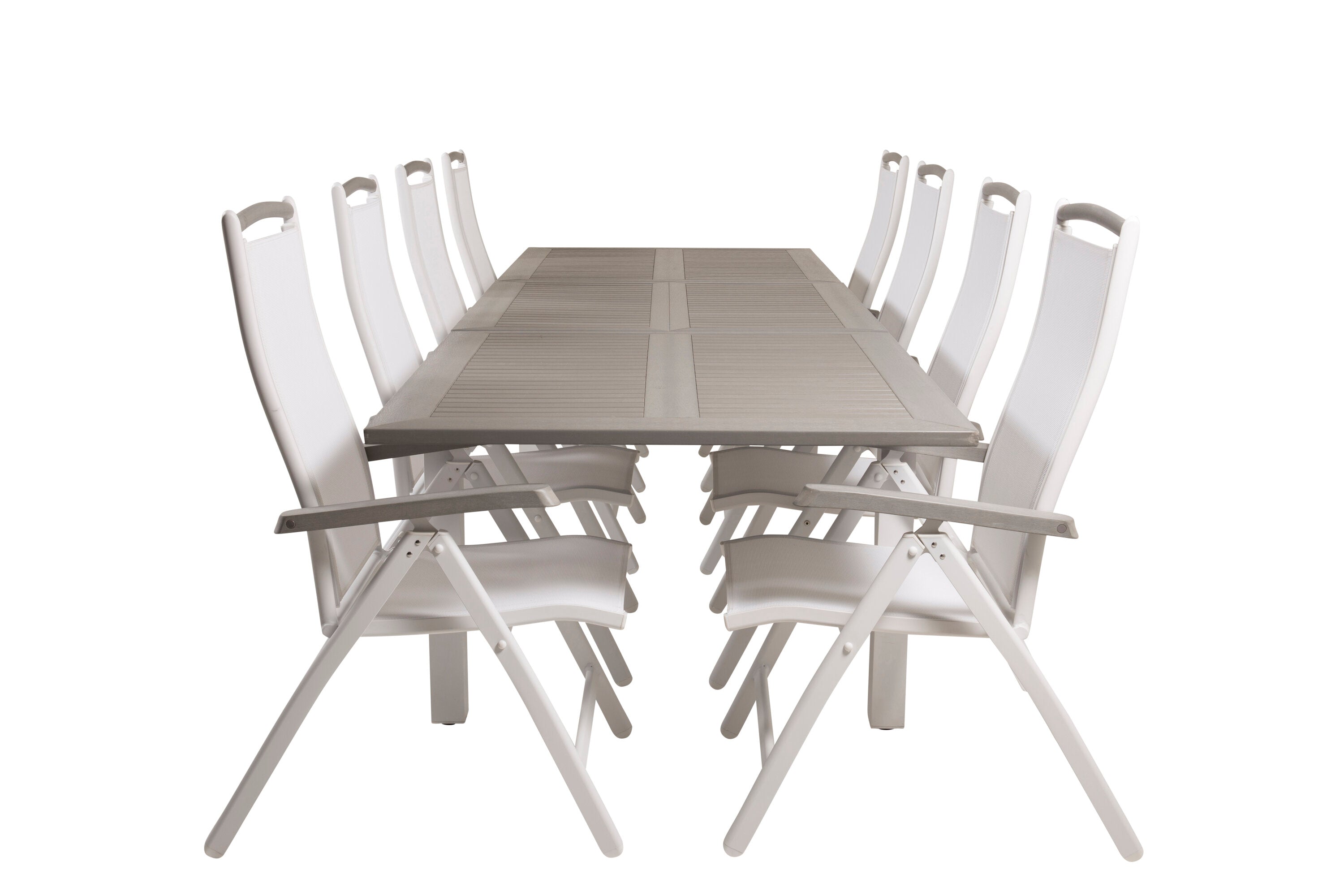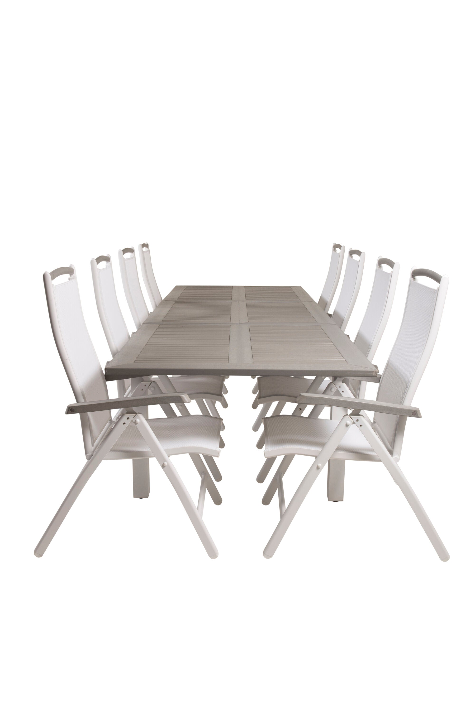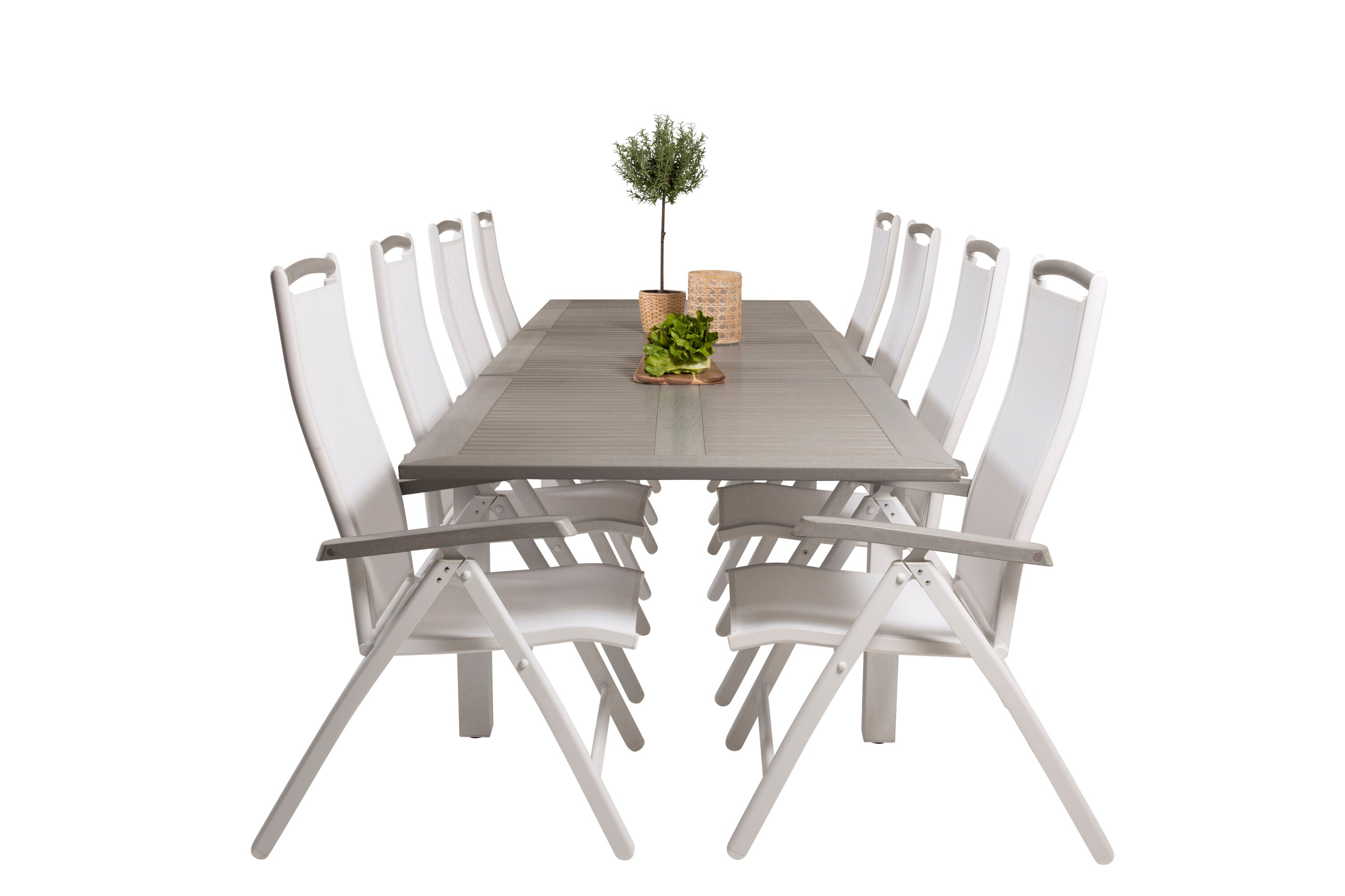 Albany Table - 224/324 - White/Grey - Albany 5:pos Stol - Vit Aluminium/vit textilene/aintwood 8