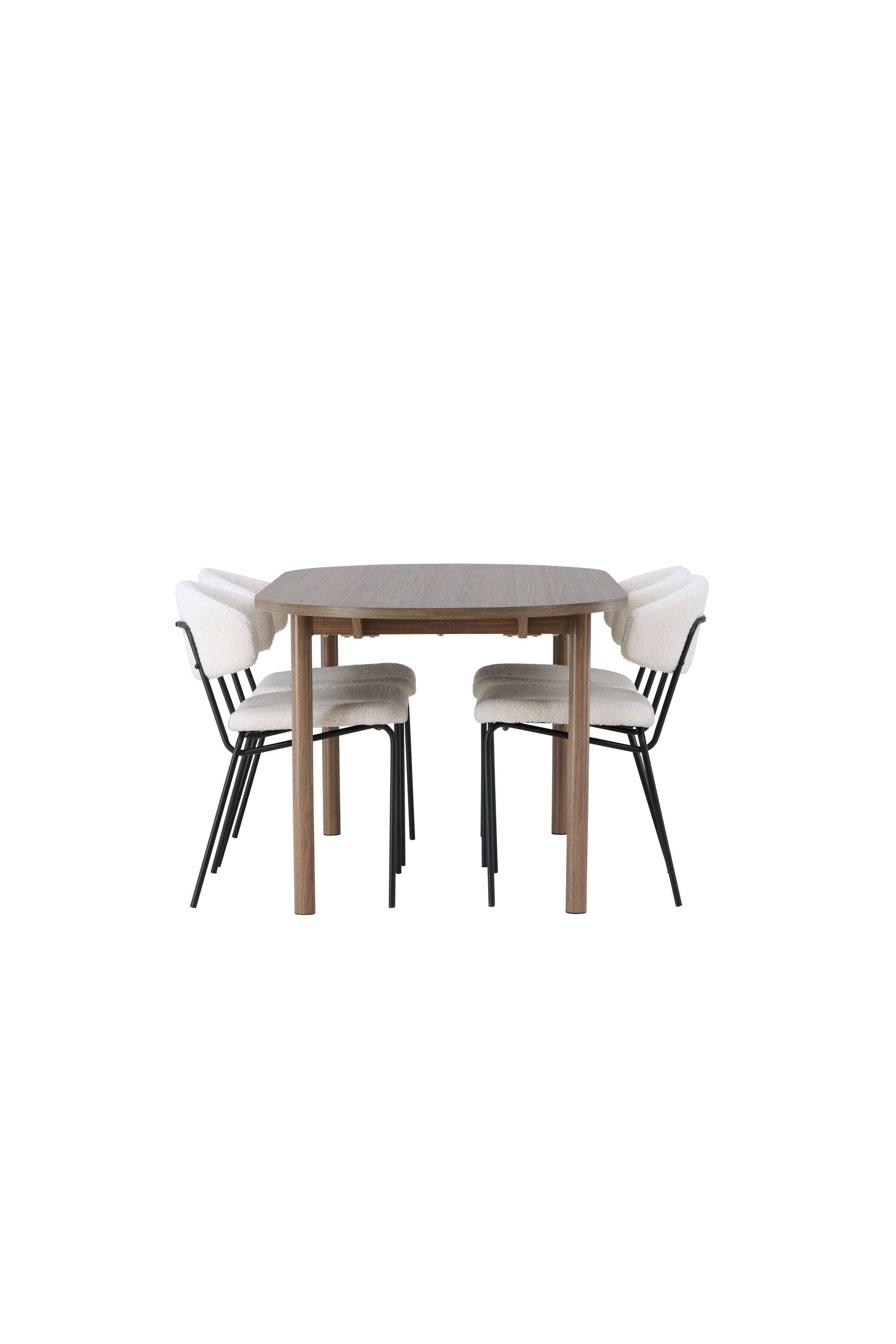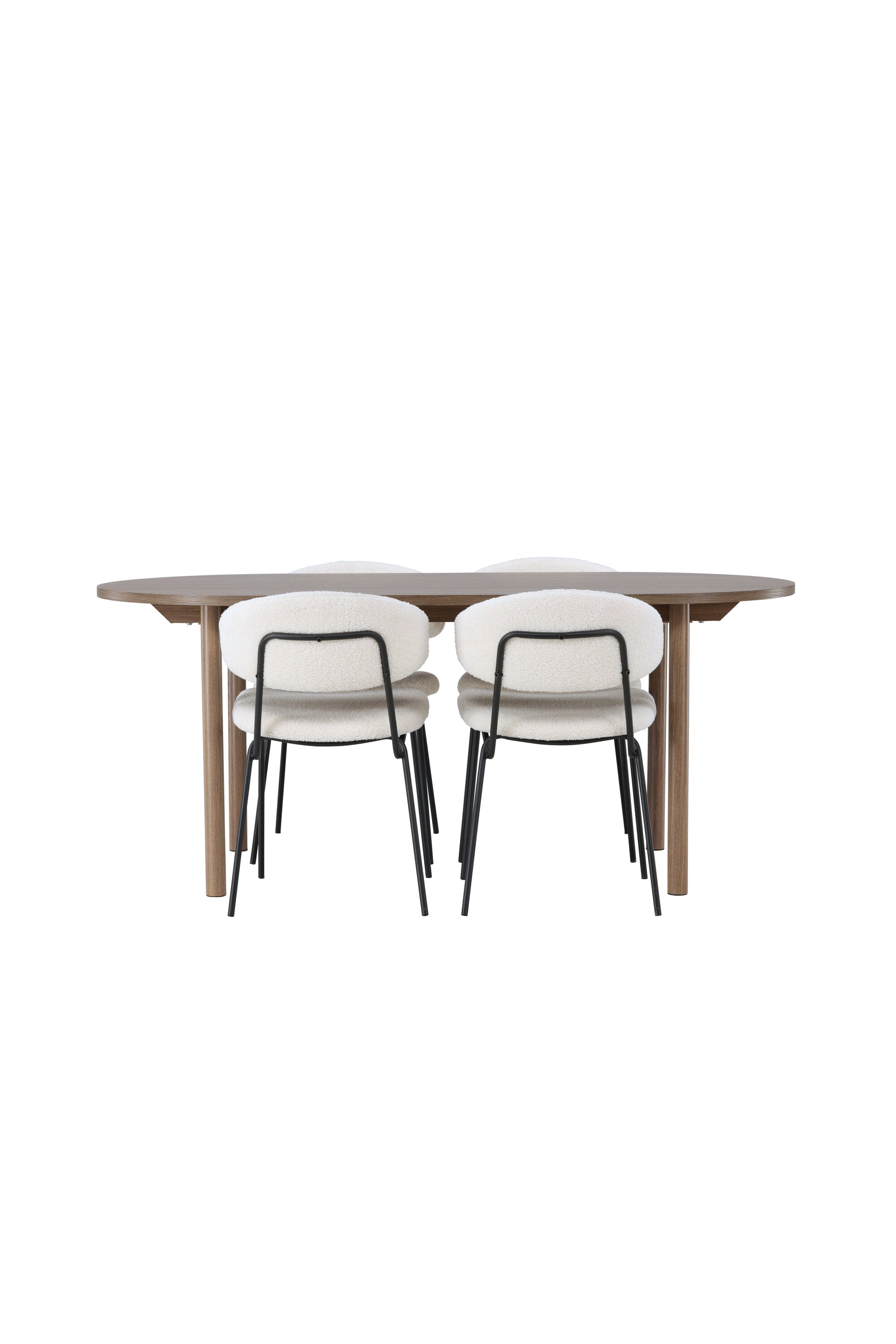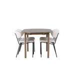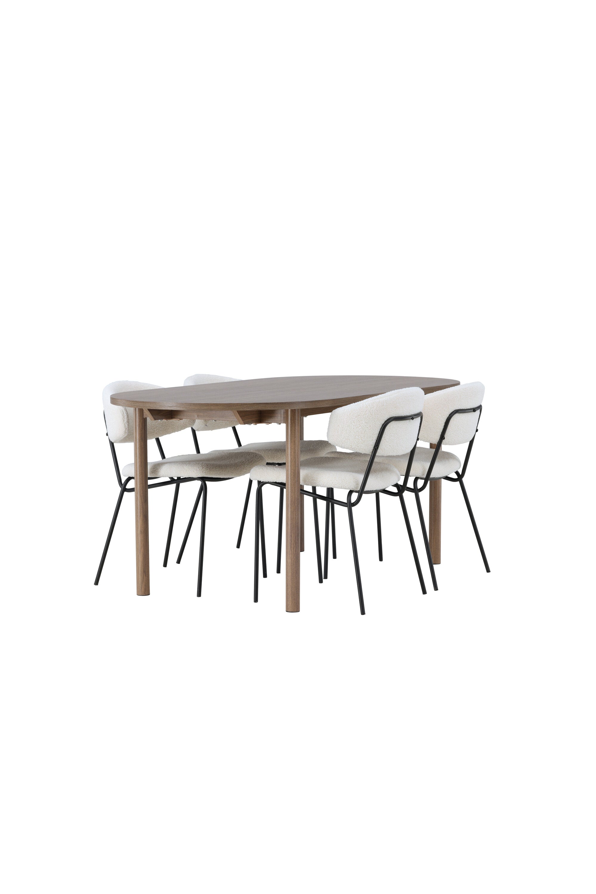 Zde jsme tento oválný jídelní stůl doplnili o bílé židle ze série Chico, abychom vytvořili dokonalou harmonii. Židle Chico zaujmou svým elegantním minimalismem a zaobleným designem, který umocňuje celkový vzhled. Tenká boucle látka v krásné béžové barvě dodá vašemu obývacímu pokoji punc elegance.