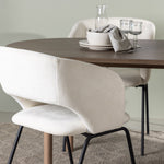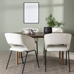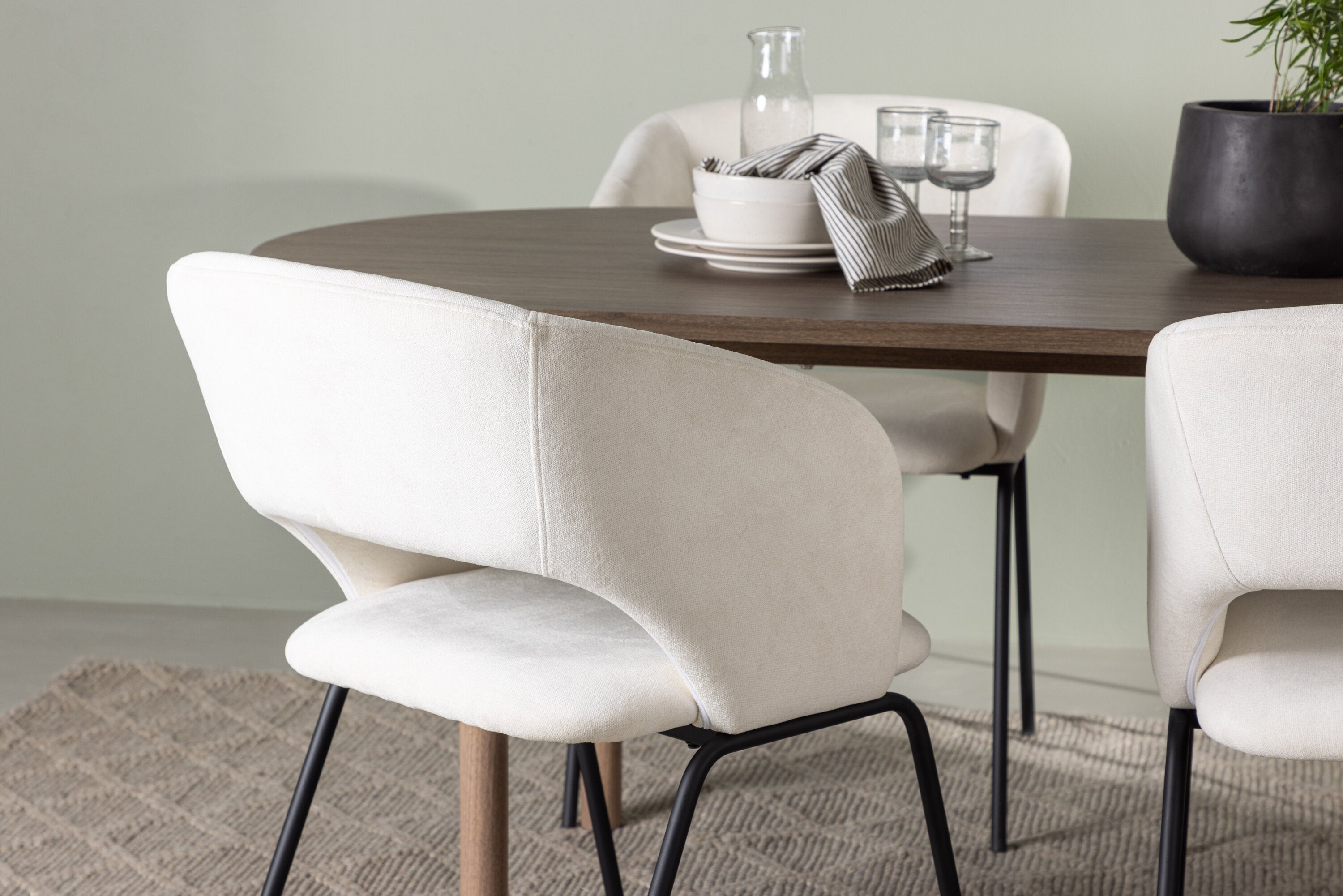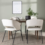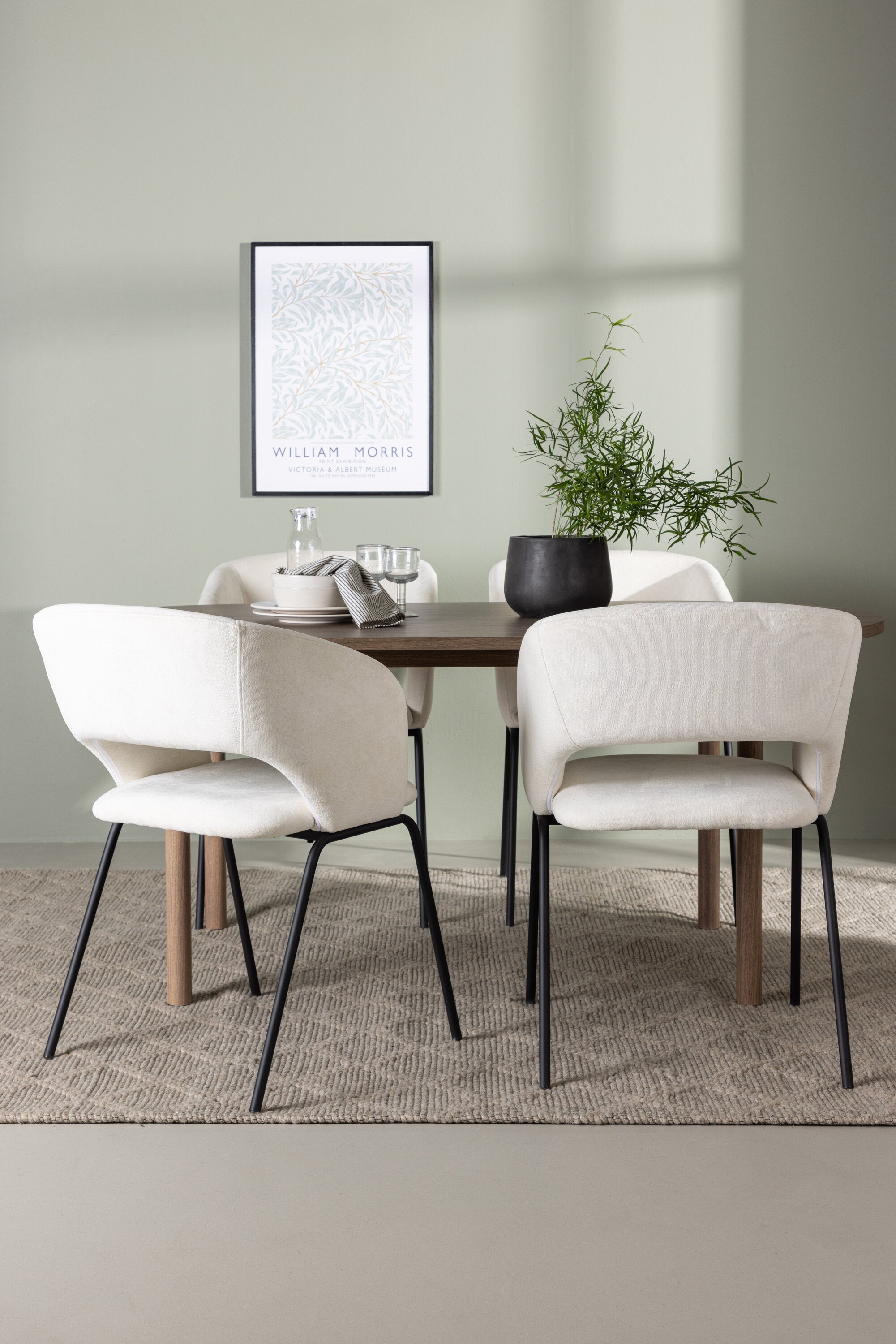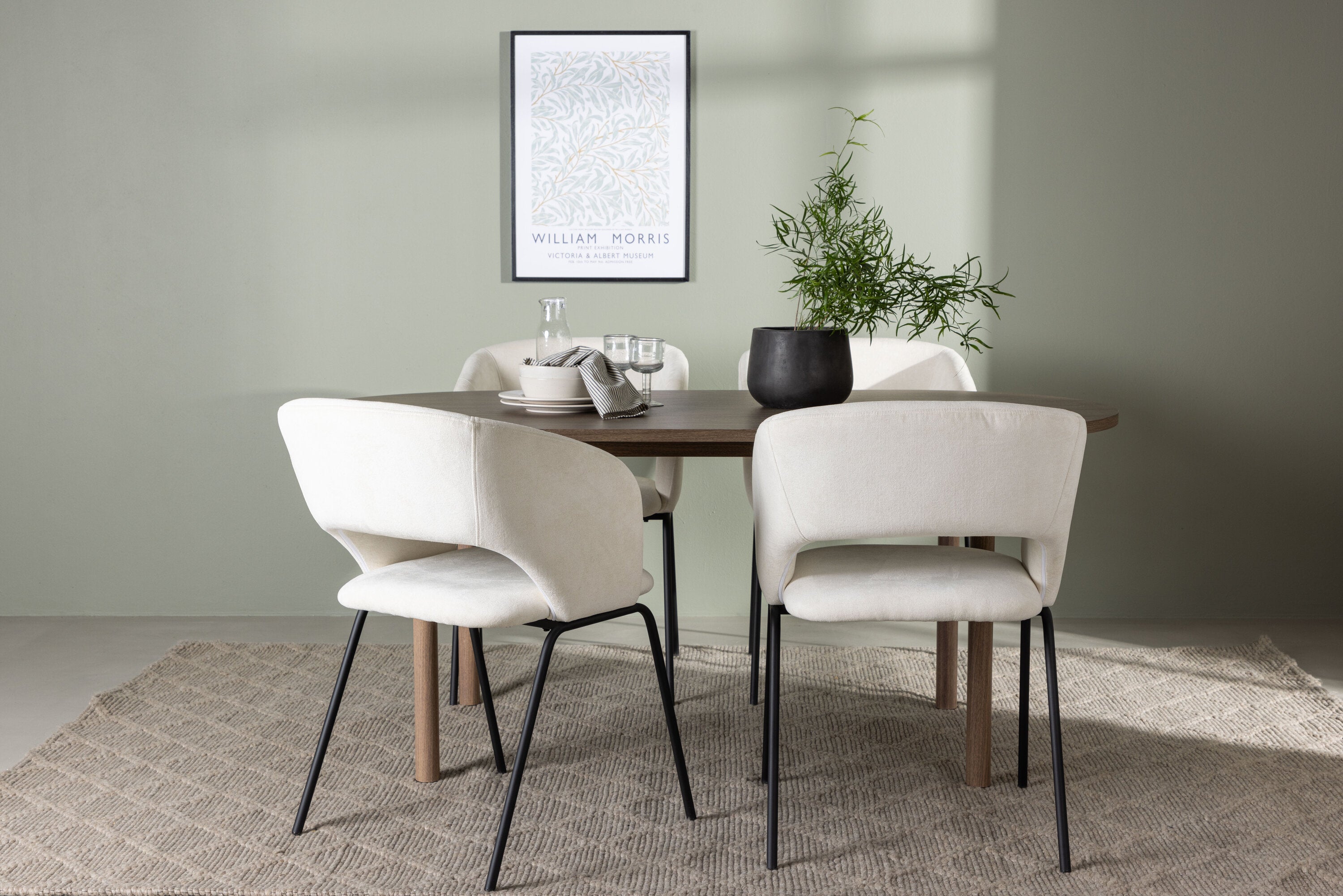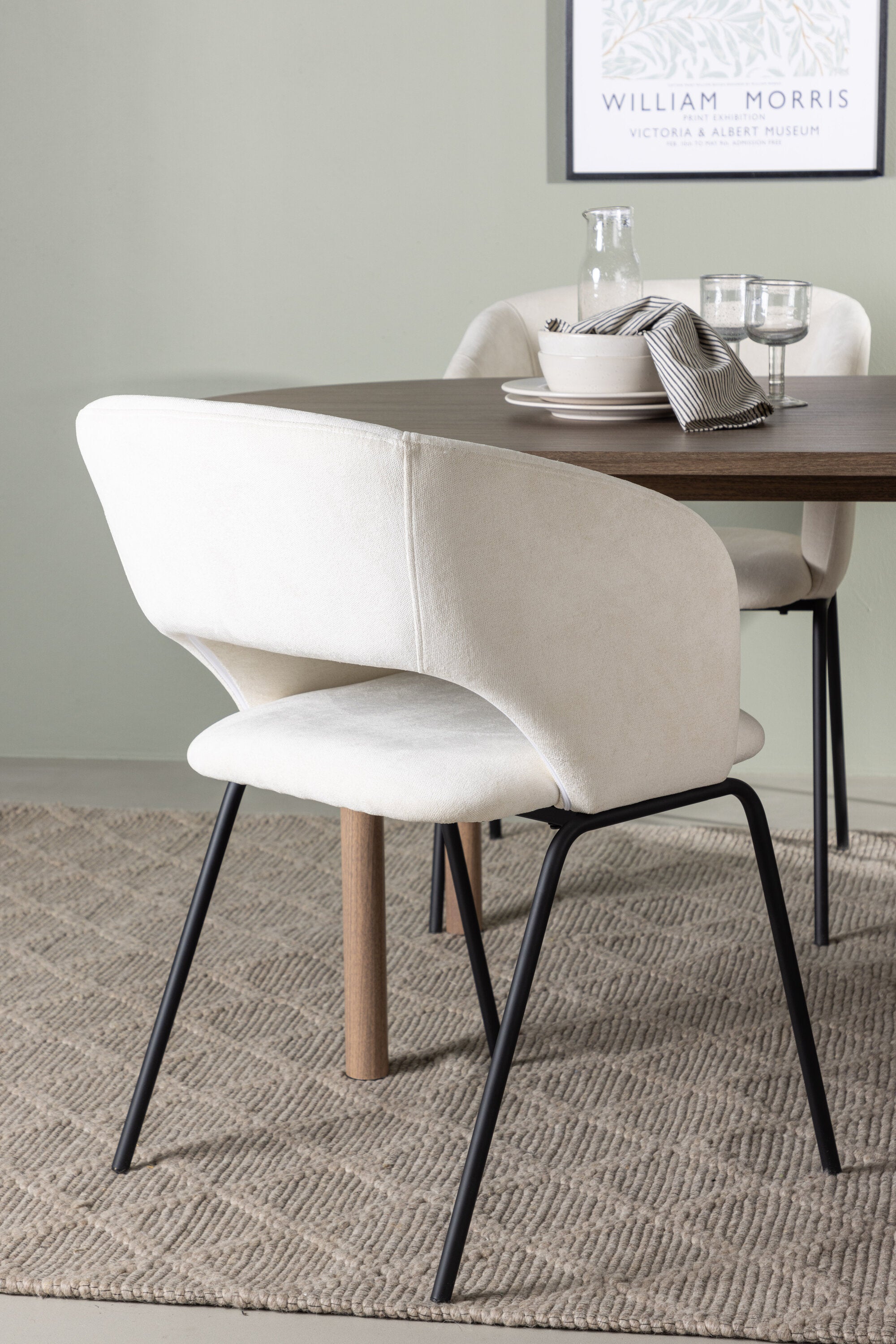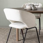 Společně s moderními jídelními židlemi ze série Day je jídelní set kompletní. Tyto židle jsou navrženy tak, aby upoutaly pozornost svými promyšlenými detaily, měkkými tvary a minimalistickou strukturou. Celočalouněný sedák bílou lněnou látkou s otevřeným opěradlem poskytuje pocit pohodlí a elegance. Nohy židle, dovedně vyrobené z černé oceli, dodávají jídelní soupravě moderní nádech.