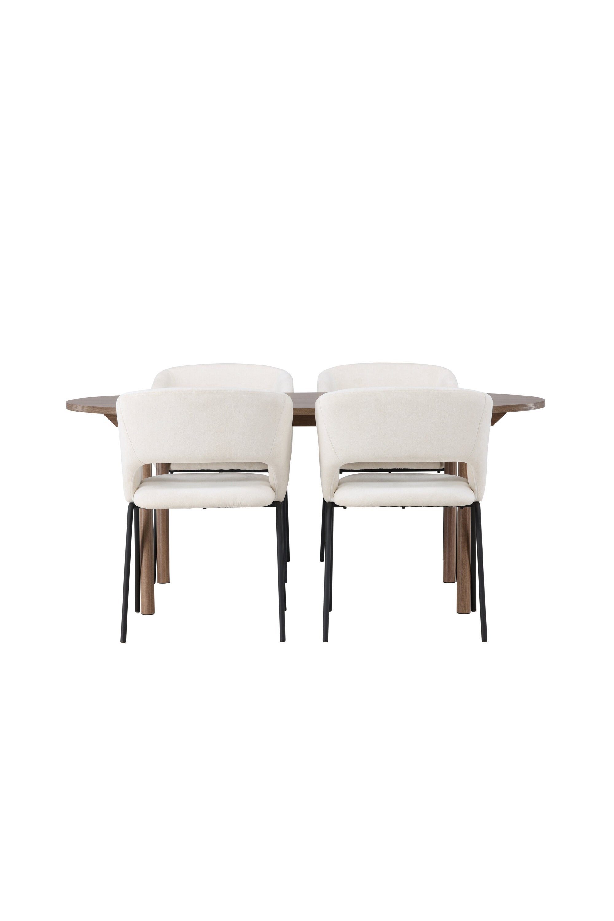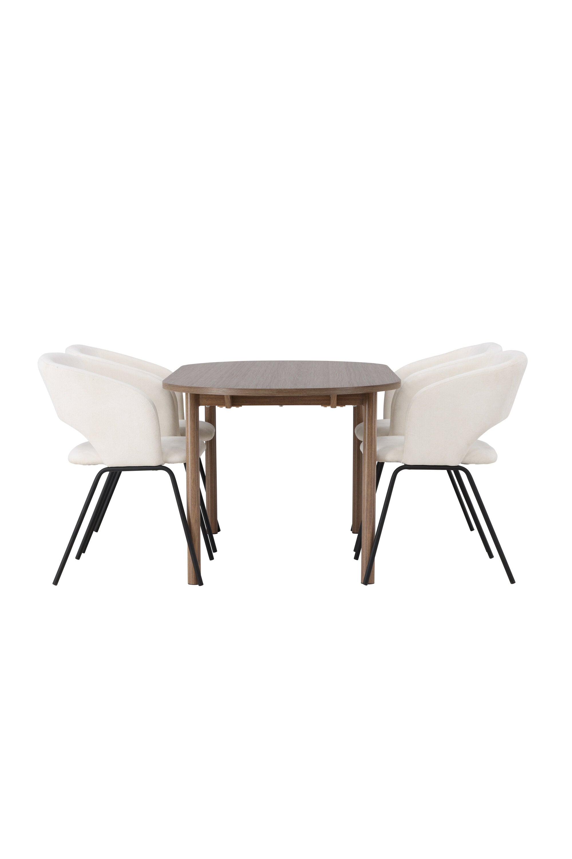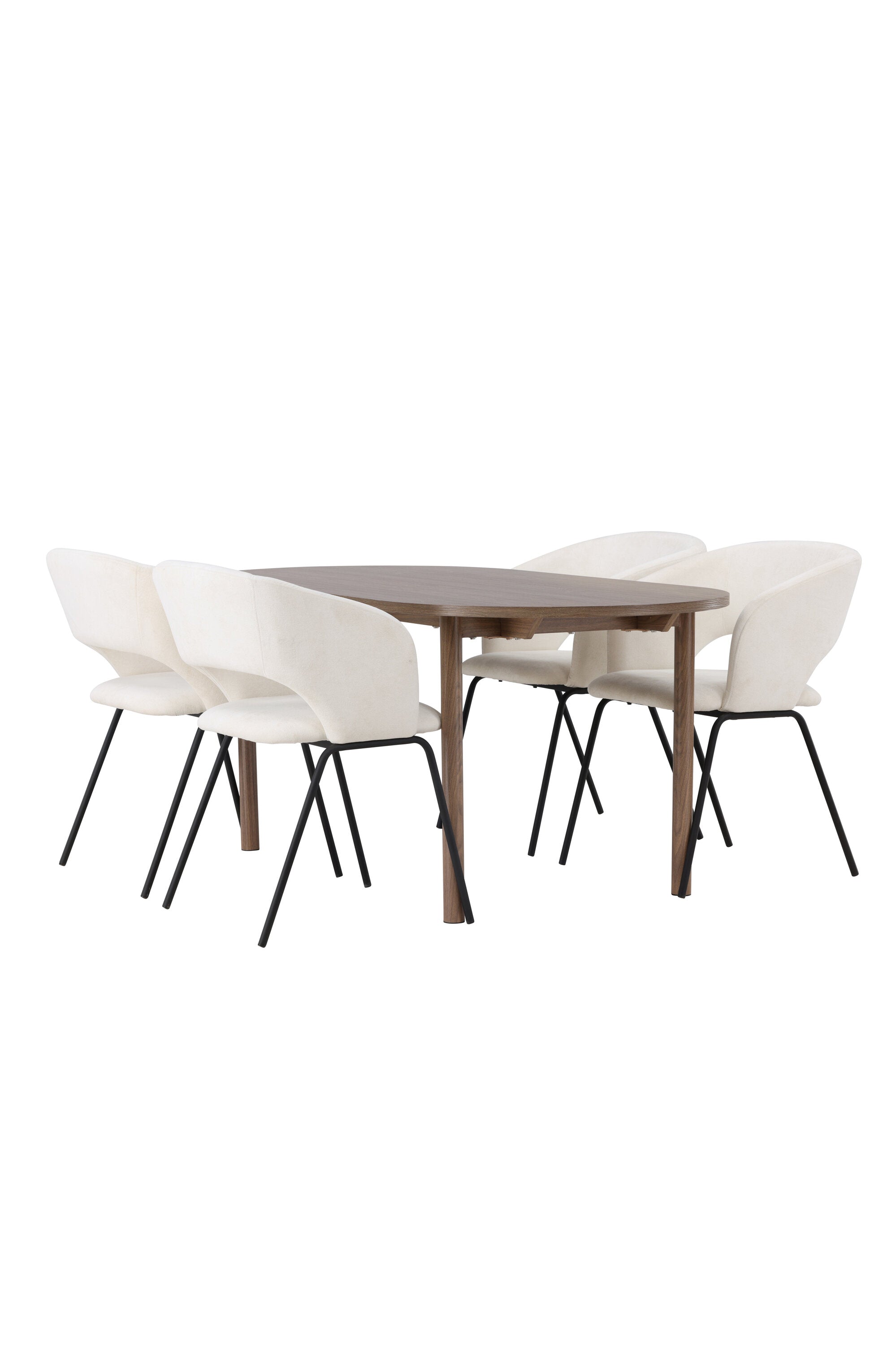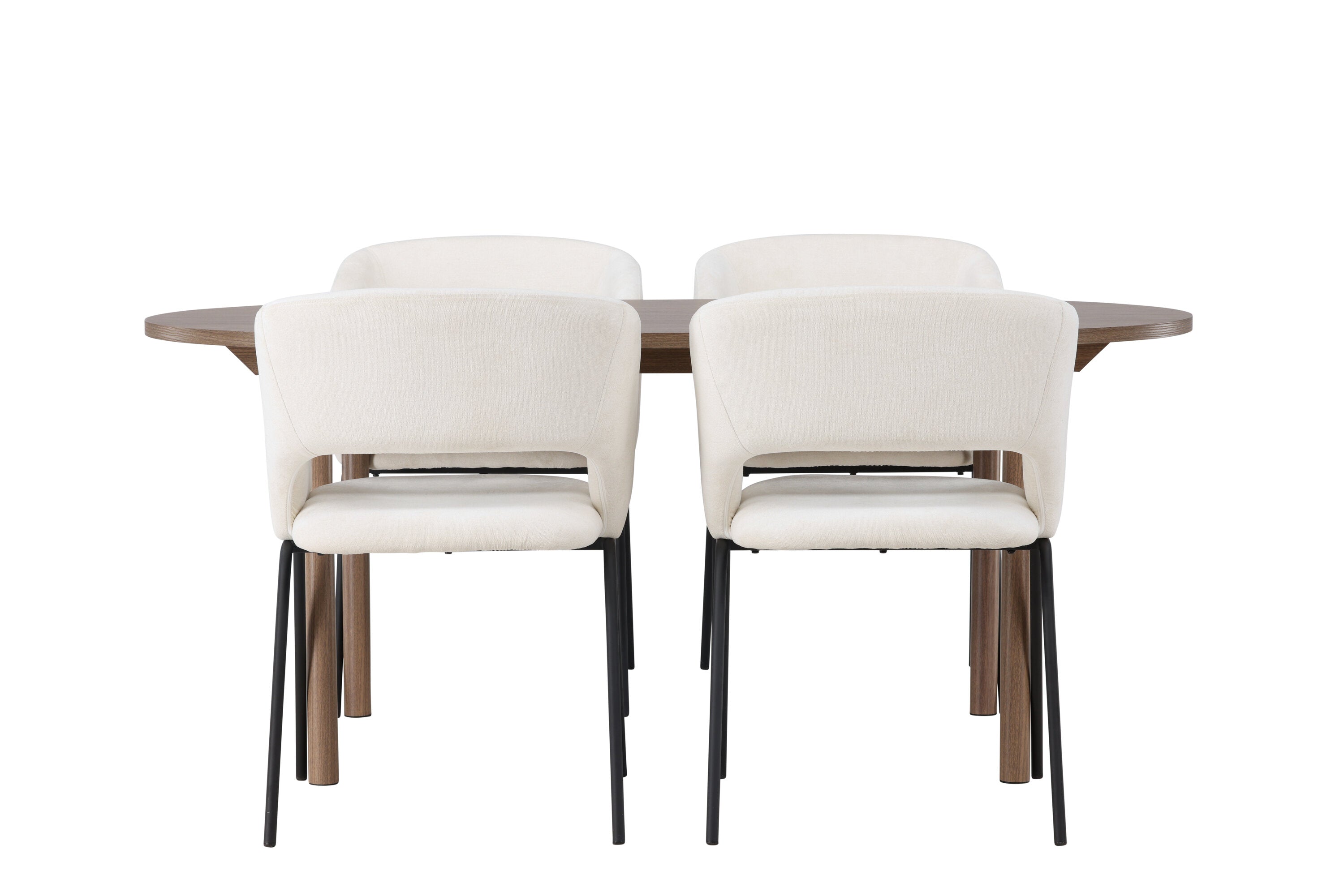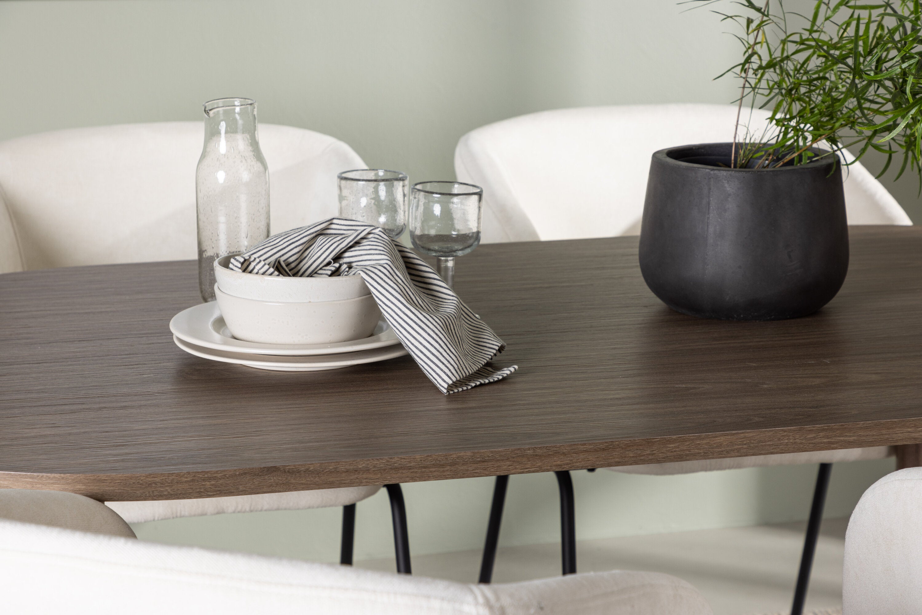 Andy jídelní stůl 180*75 – přírodní / přírodní MDF + denní jídelní židle – matná černá / bílé prádlo _4