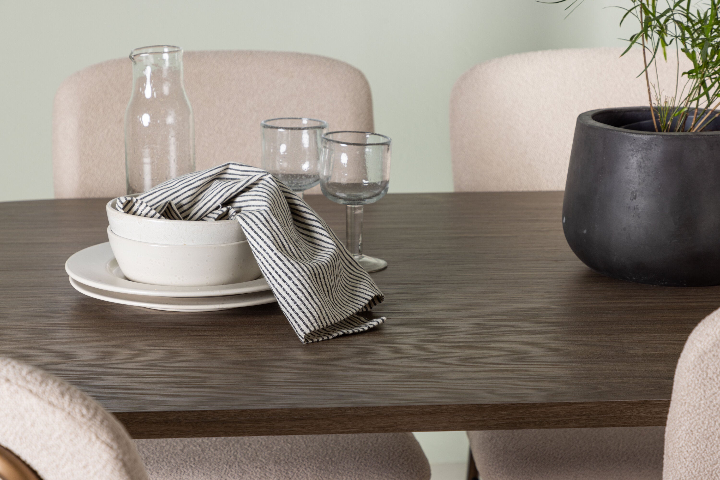 Jídelní set, který vyzařuje minimalistické kouzlo! Zařiďte srdce svého domova v zemitých tónech, měkkých materiálech a jemných tvarech.