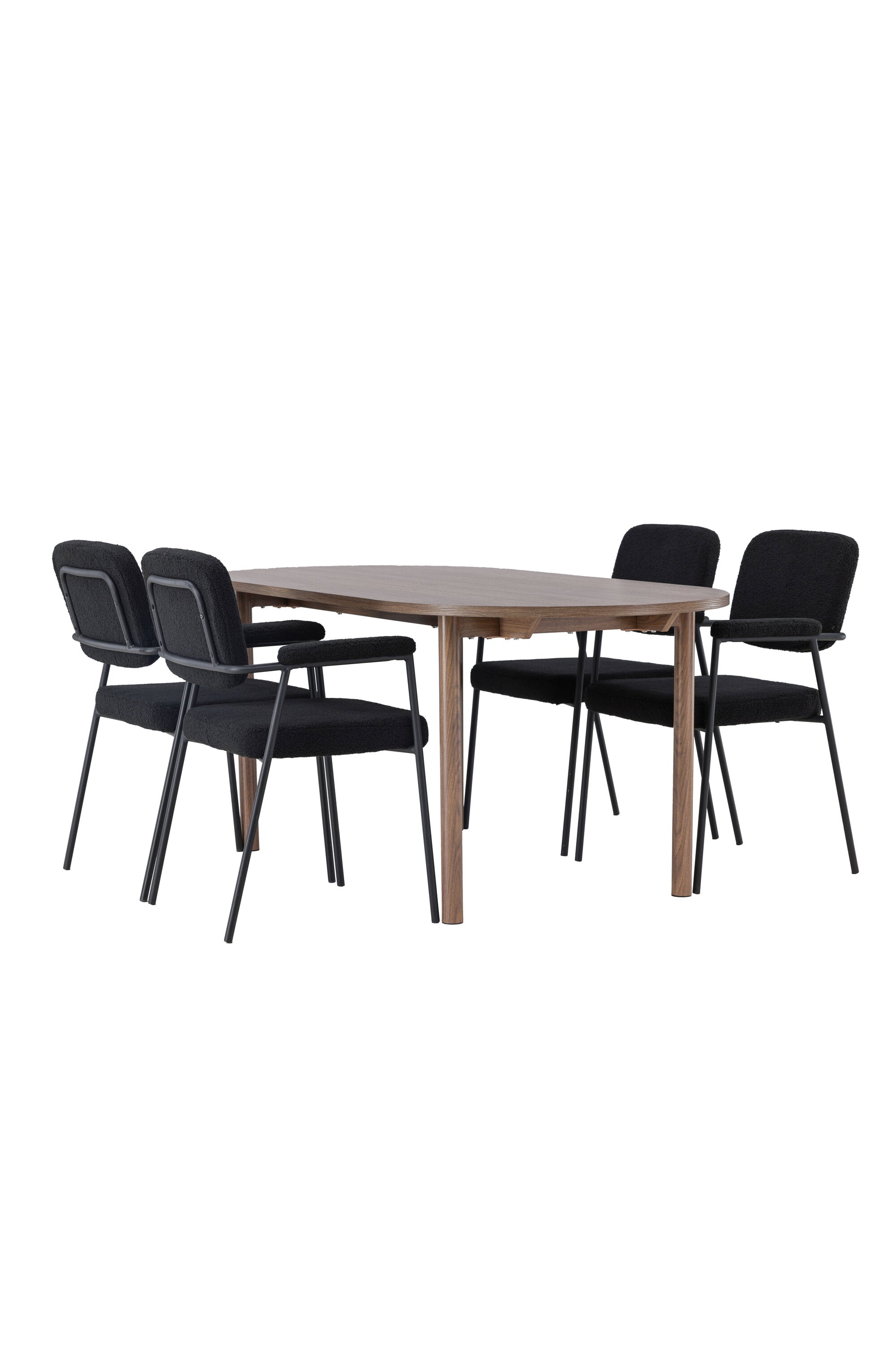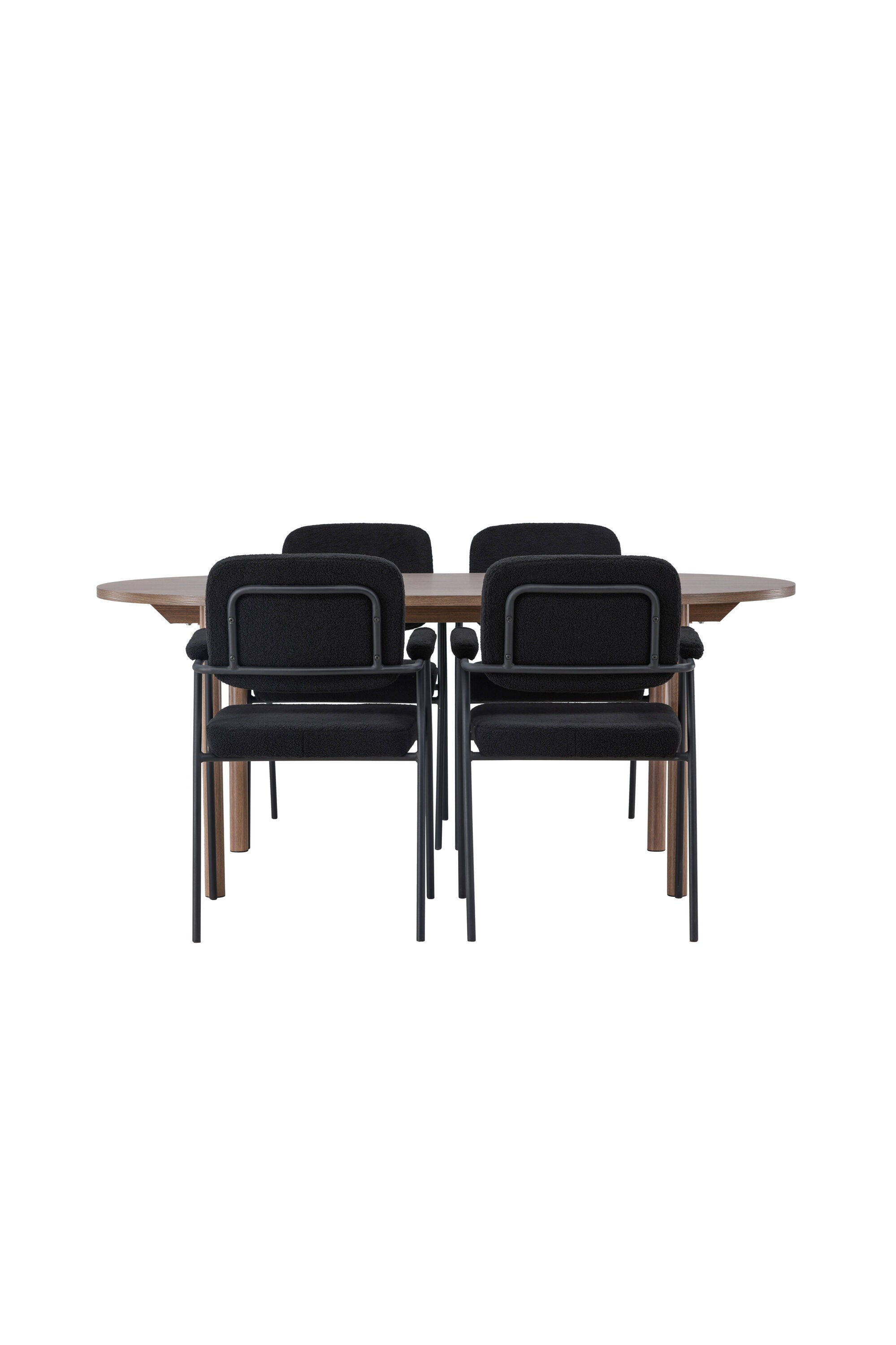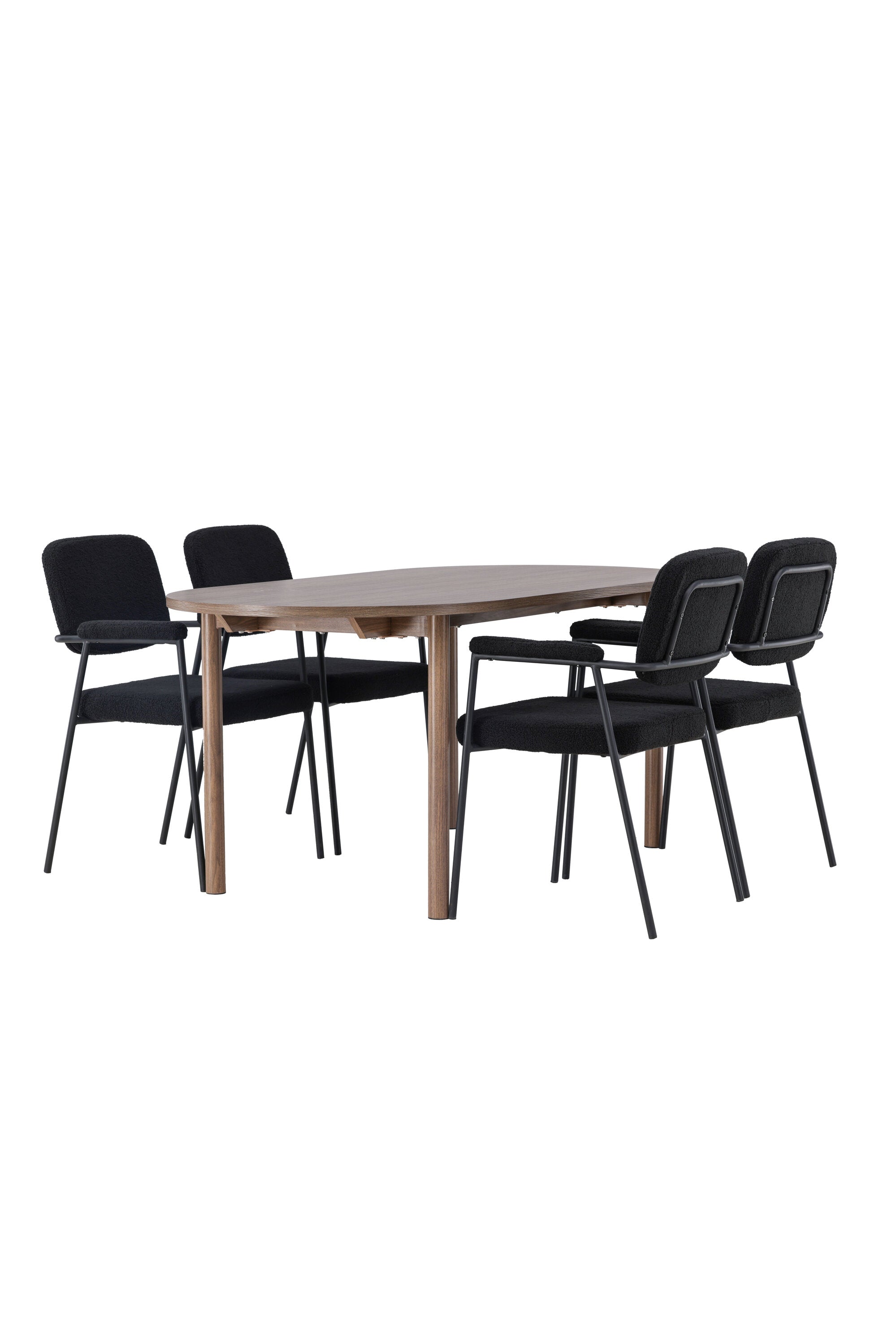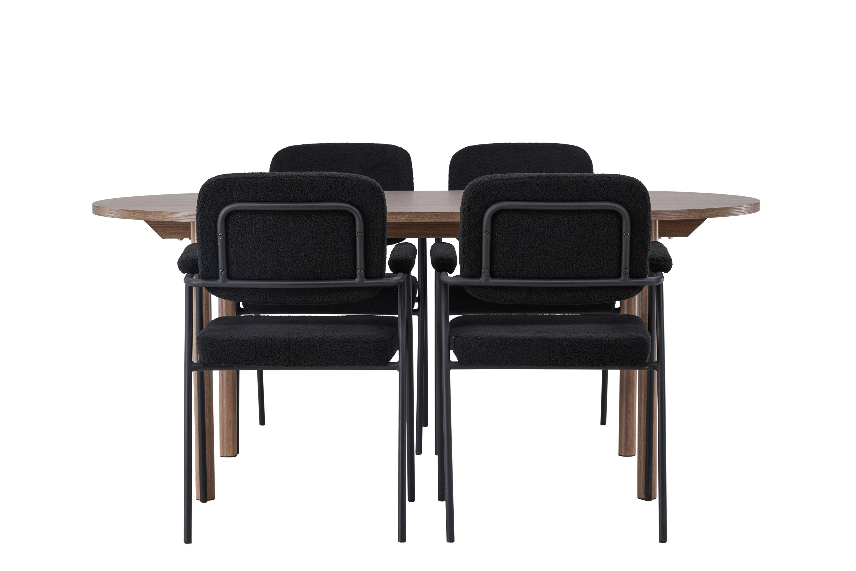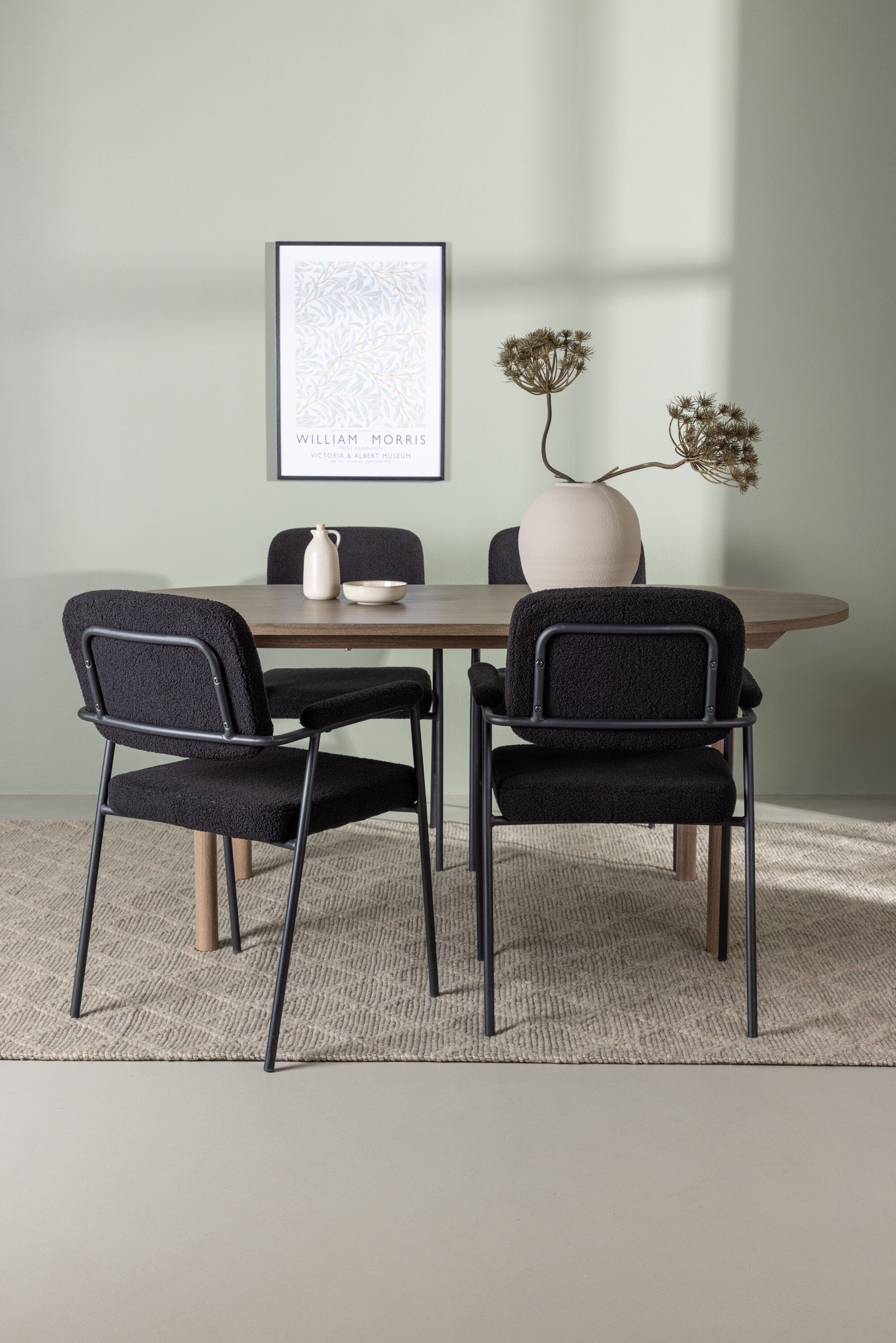 Andy jídelní stůl 180*75 – přírodní / přírodní MDF + jídelní židle Yesterday – černá / černá Boucle _4