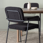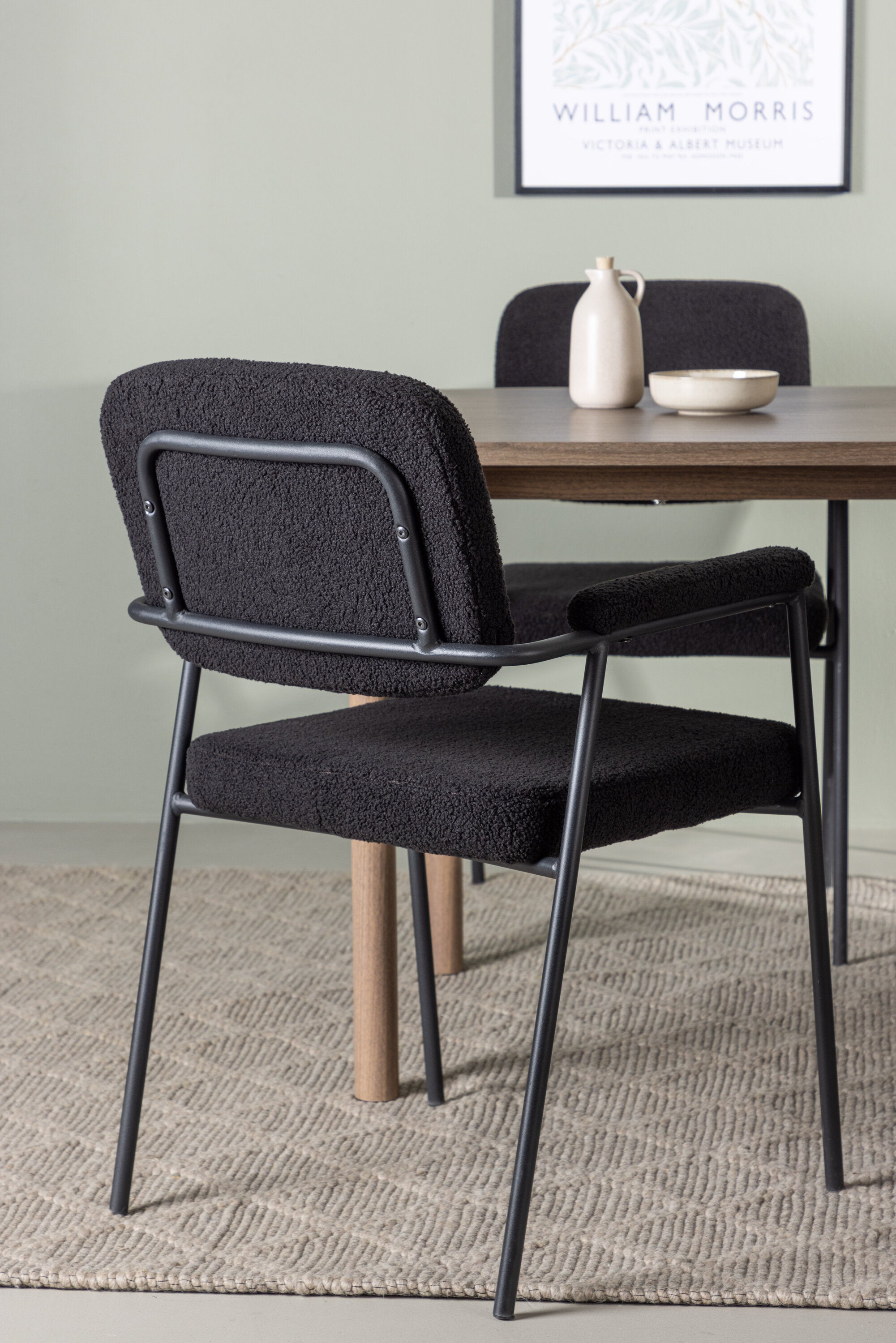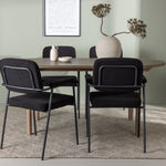 Spolu s kulatým jídelním stolem nabízíme naše černé jídelní židle ze série Yesterday. Celočalouněný sedák v černé bouclé tkanině nabízí nejen elegantní a moderní vzhled, ale také výjimečný komfort. Tenké černé kovové nohy židle dodávají jemný a stylový nádech. Navíc jsou vybaveny integrovanými područkami pro větší pohodlí a relaxaci.