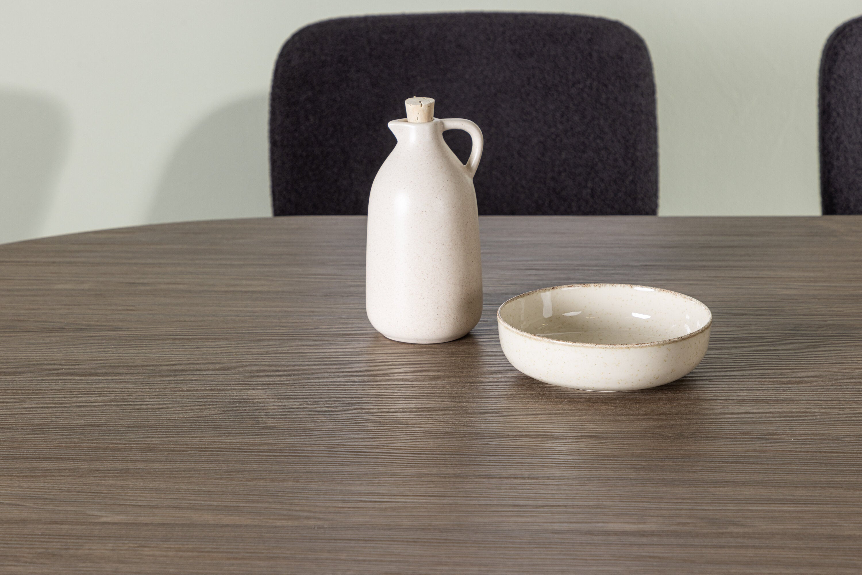 S naším oválným jídelním stolem Andy získáte dokonalou kombinaci stylu a funkčnosti. Oválný stůl je navržen s tenkým a klasickým designem, který vylepší dekoraci vašeho domova. S tenkým topem z MDF v teplé, tmavě hnědé barvě a čtyřmi klasickými nohami ve tvaru válce vyzařuje Andy smysl pro rafinovanou jednoduchost. Rozměry stolu: 180x75cm.