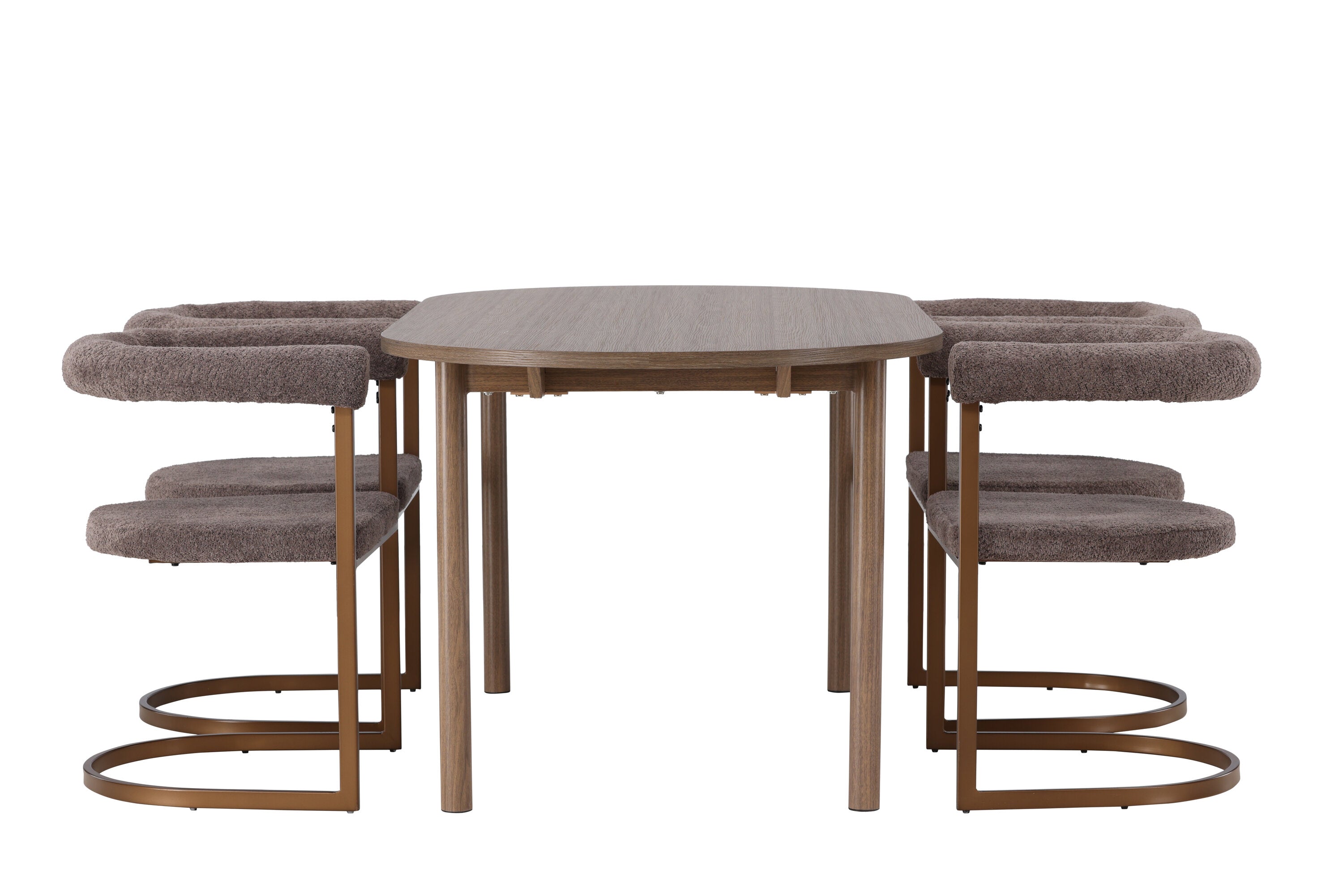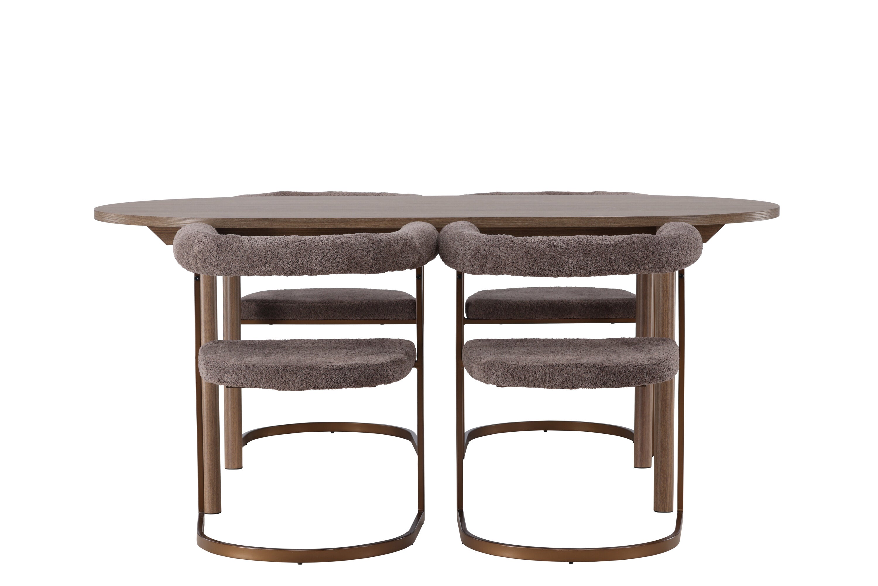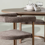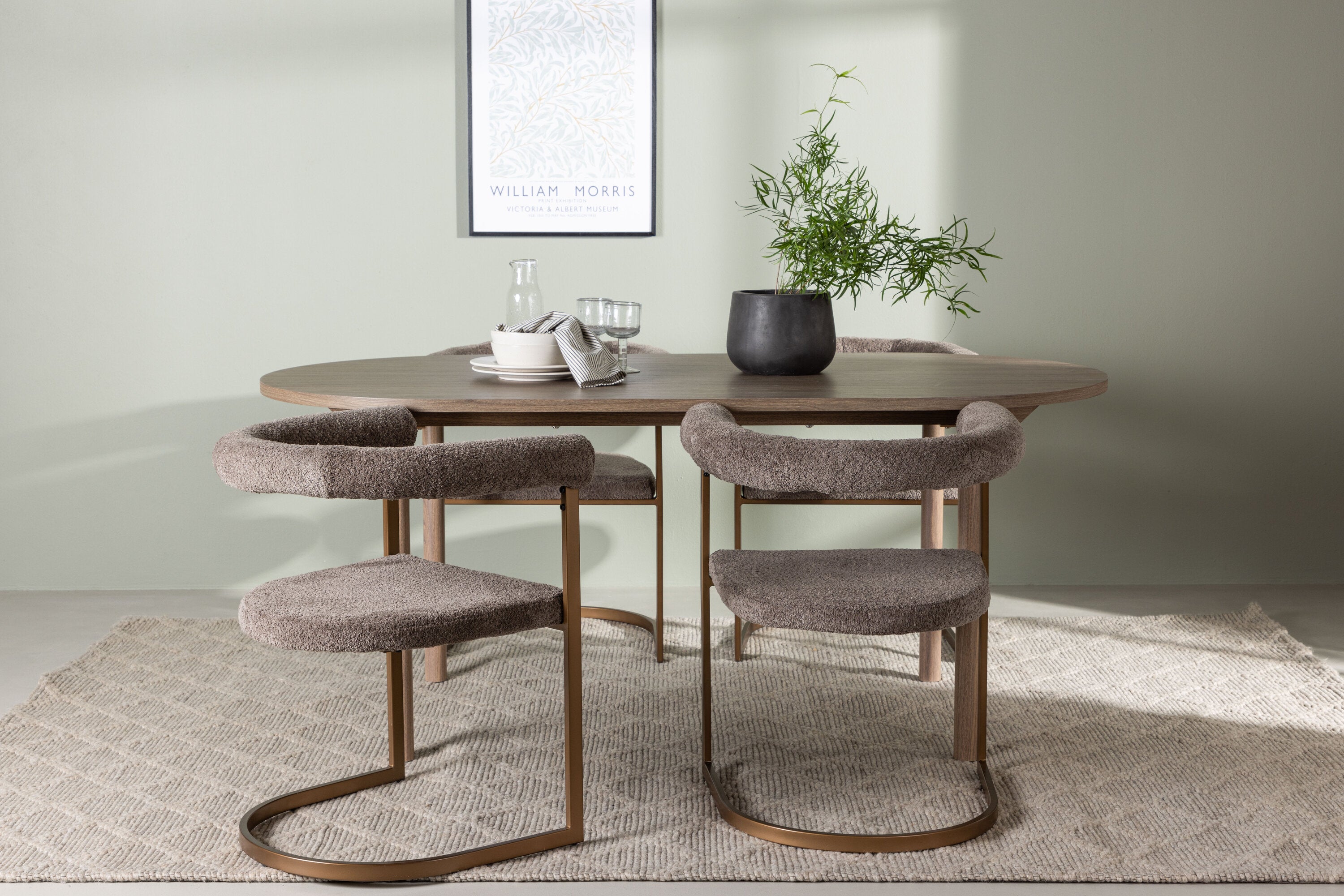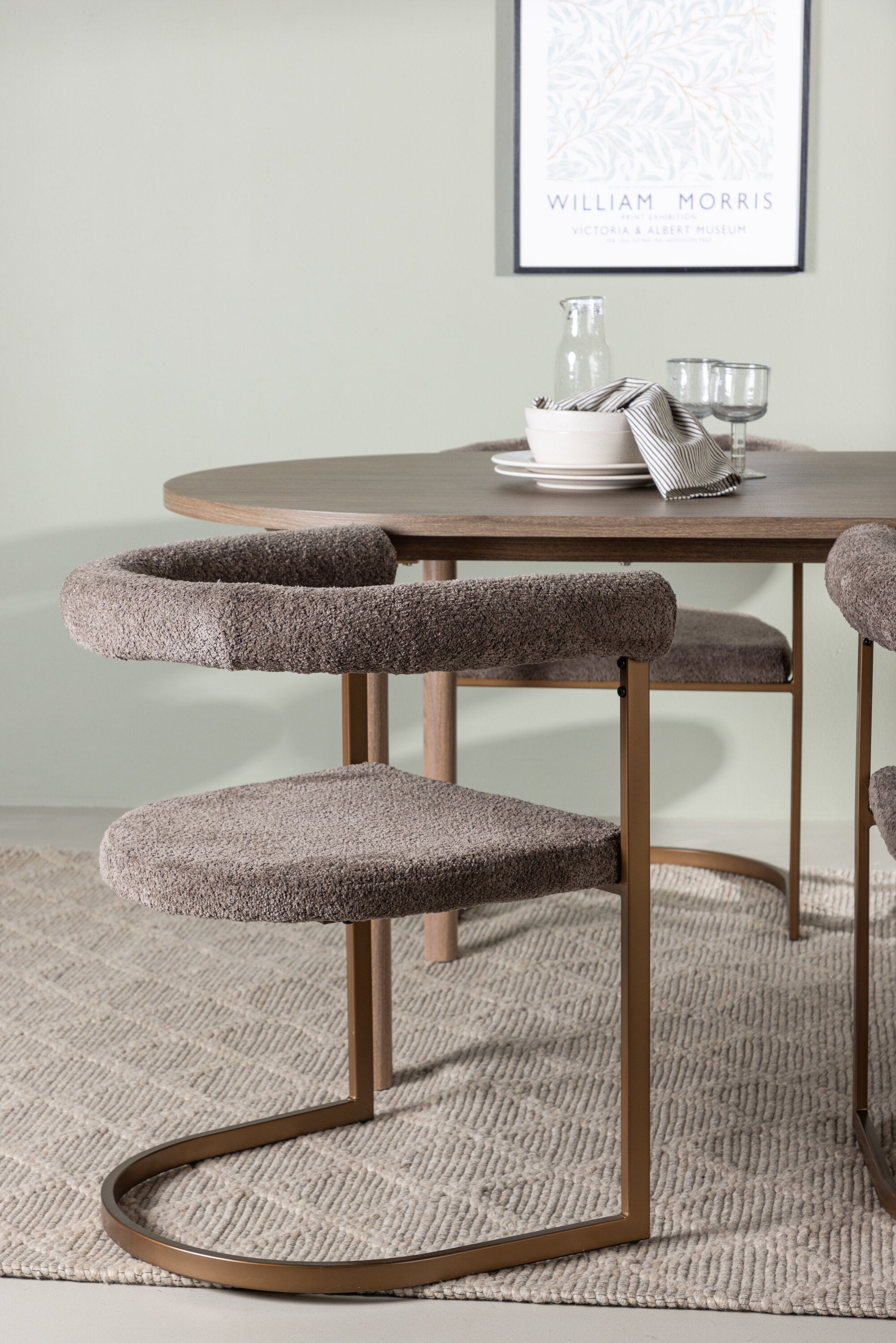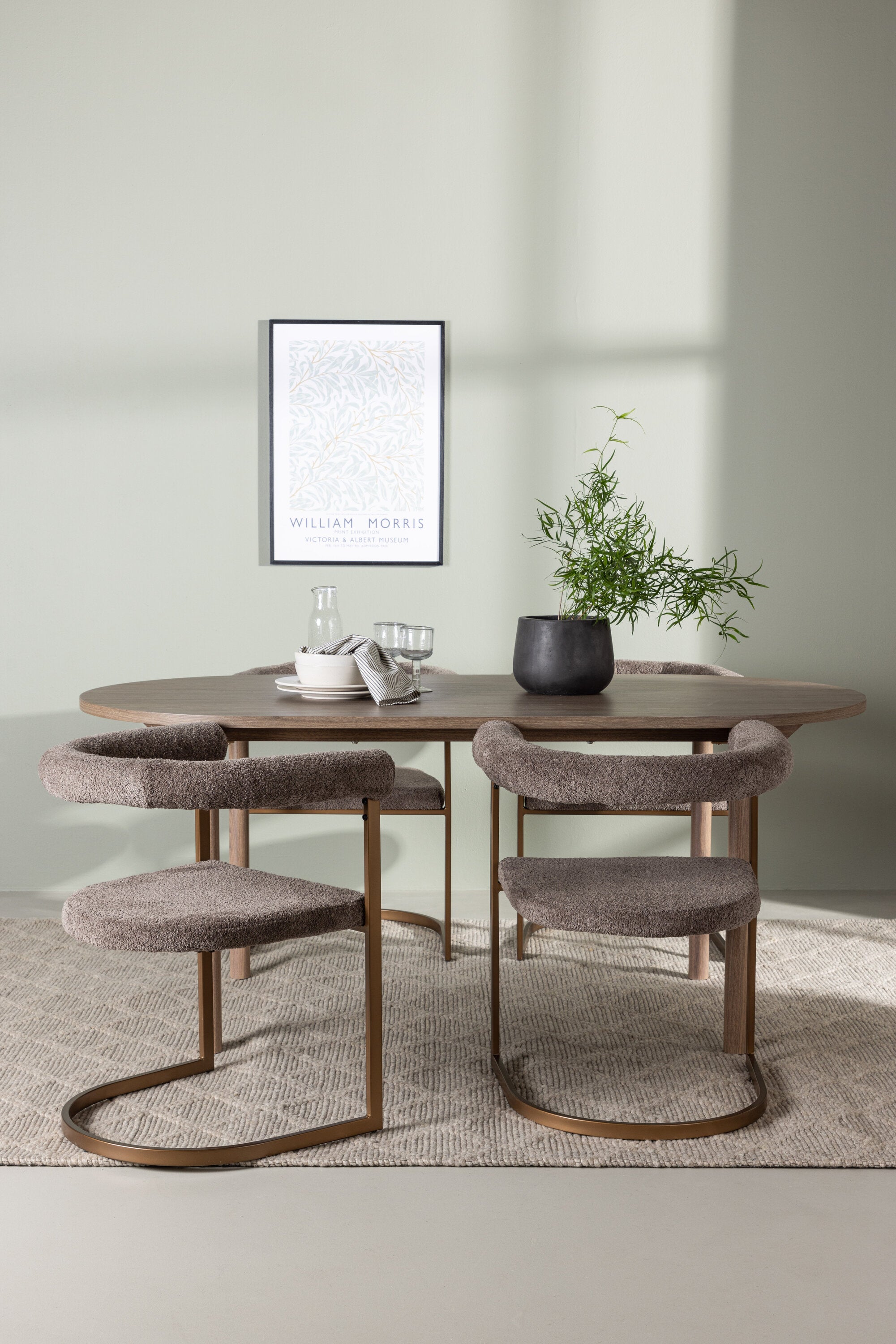 Ranní židle doplňují stůl svým moderním designem a pohodlným sezením v šedé barvě Polyester Boucle. Ocelové rámy židlí v hnědé barvě dodávají místnosti zemitý nádech a zároveň nabízejí stabilitu.