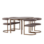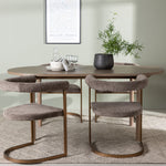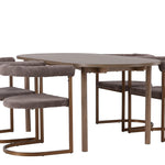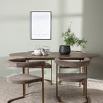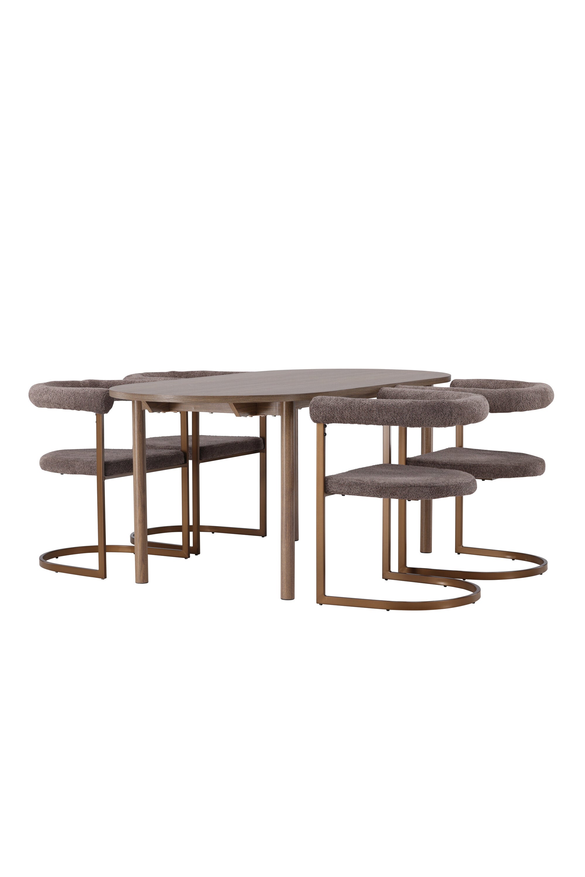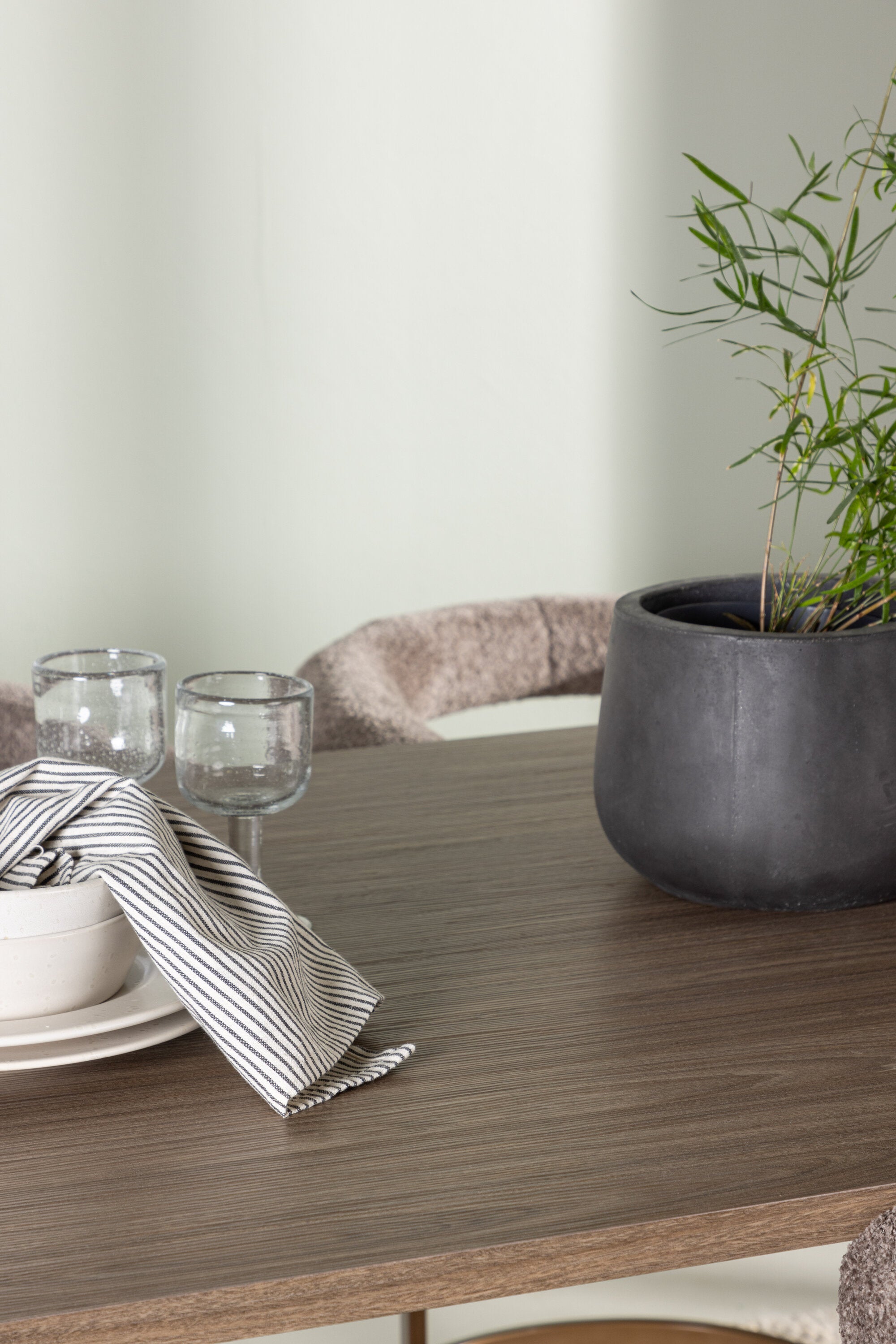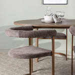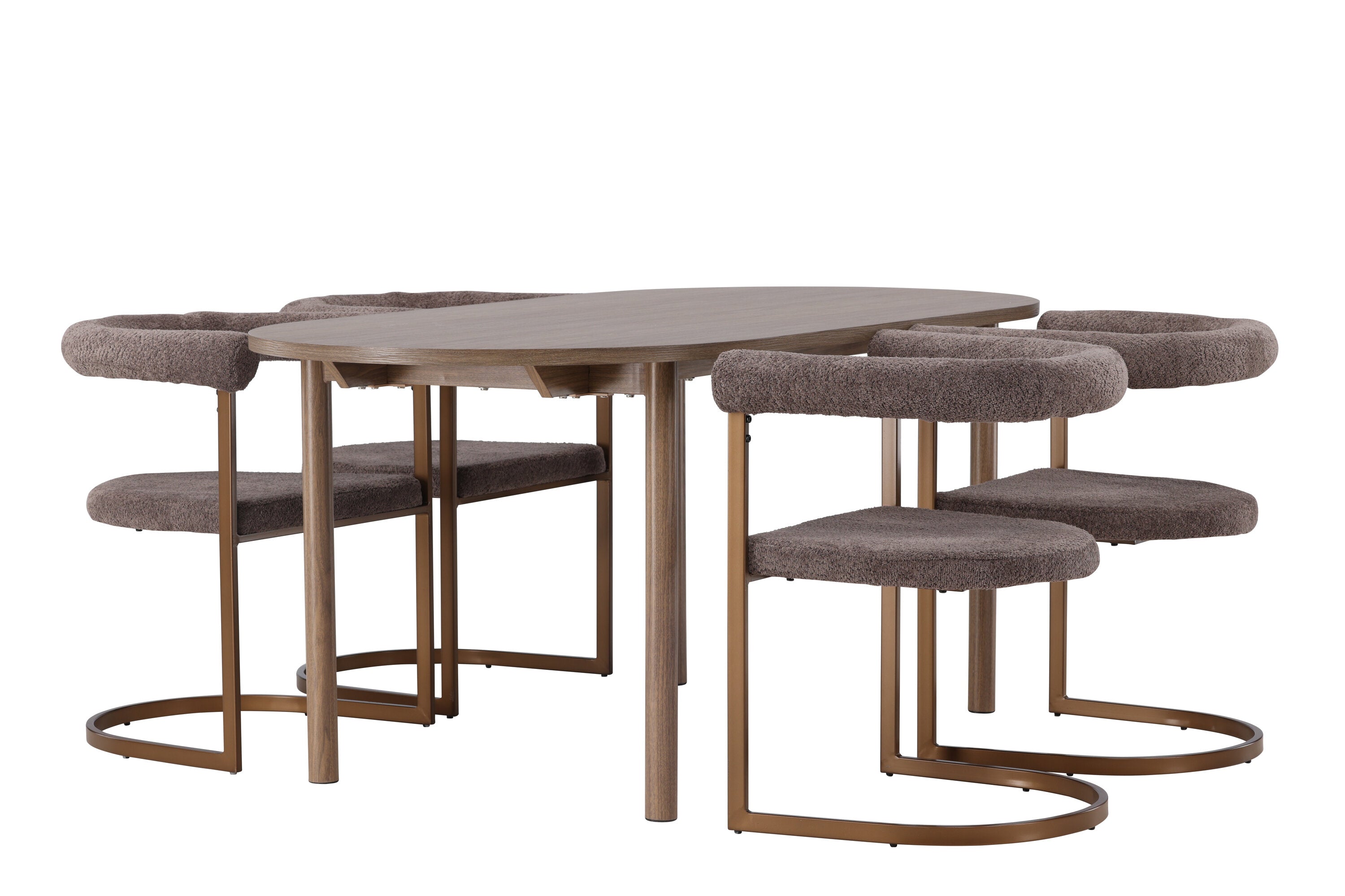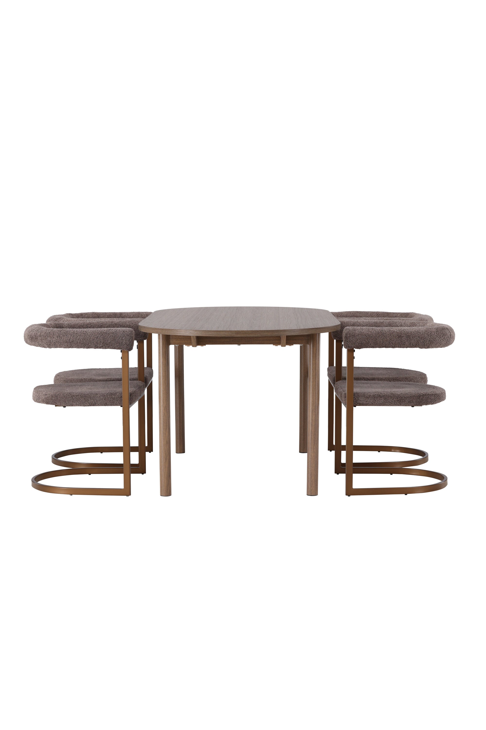 Ranní židle doplňují stůl svým moderním designem a pohodlným sezením v šedé barvě Polyester Boucle. Ocelové rámy židlí v hnědé barvě dodávají místnosti zemitý nádech a zároveň nabízejí stabilitu.