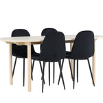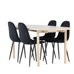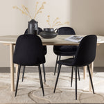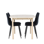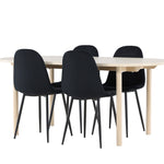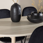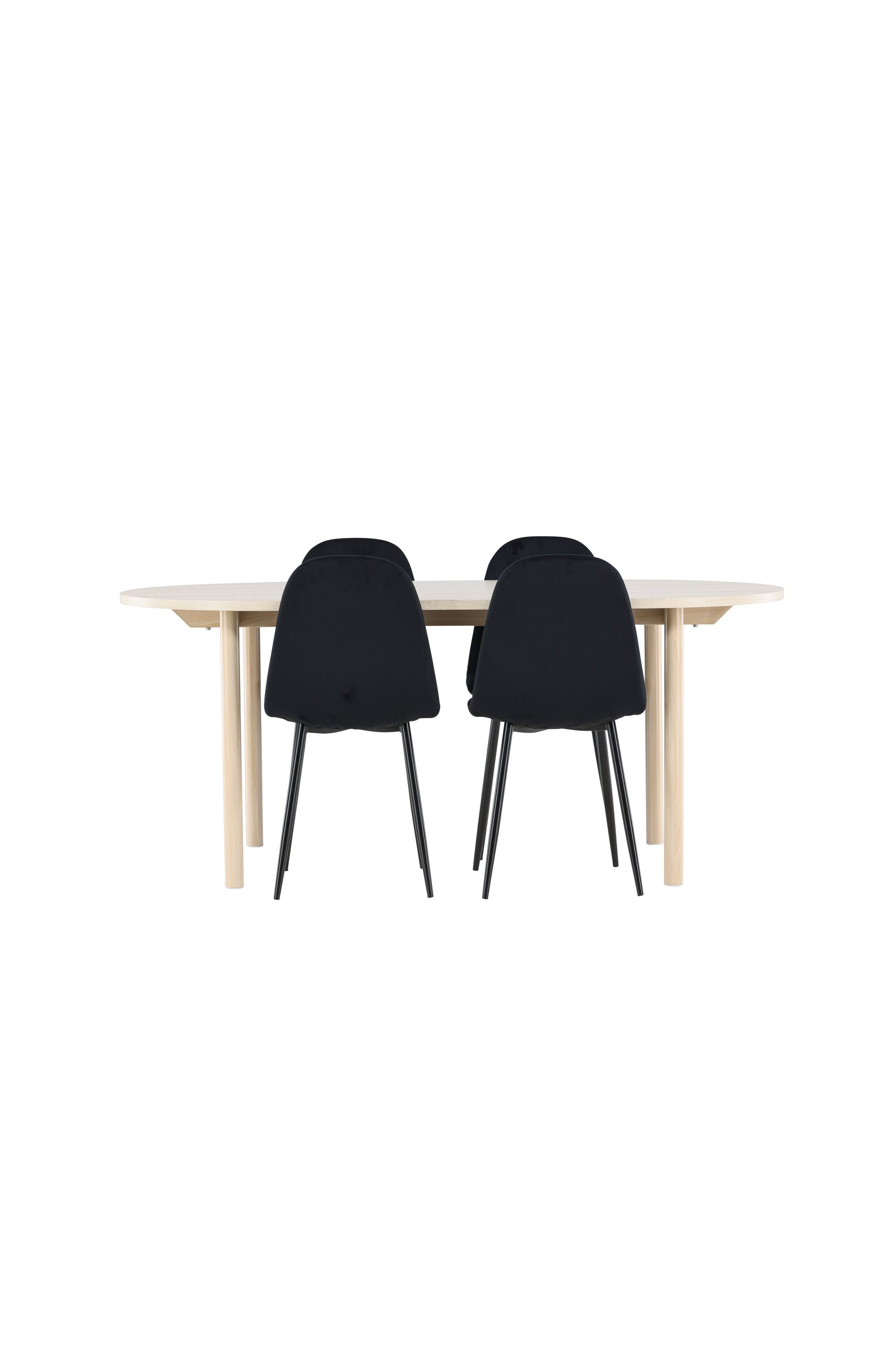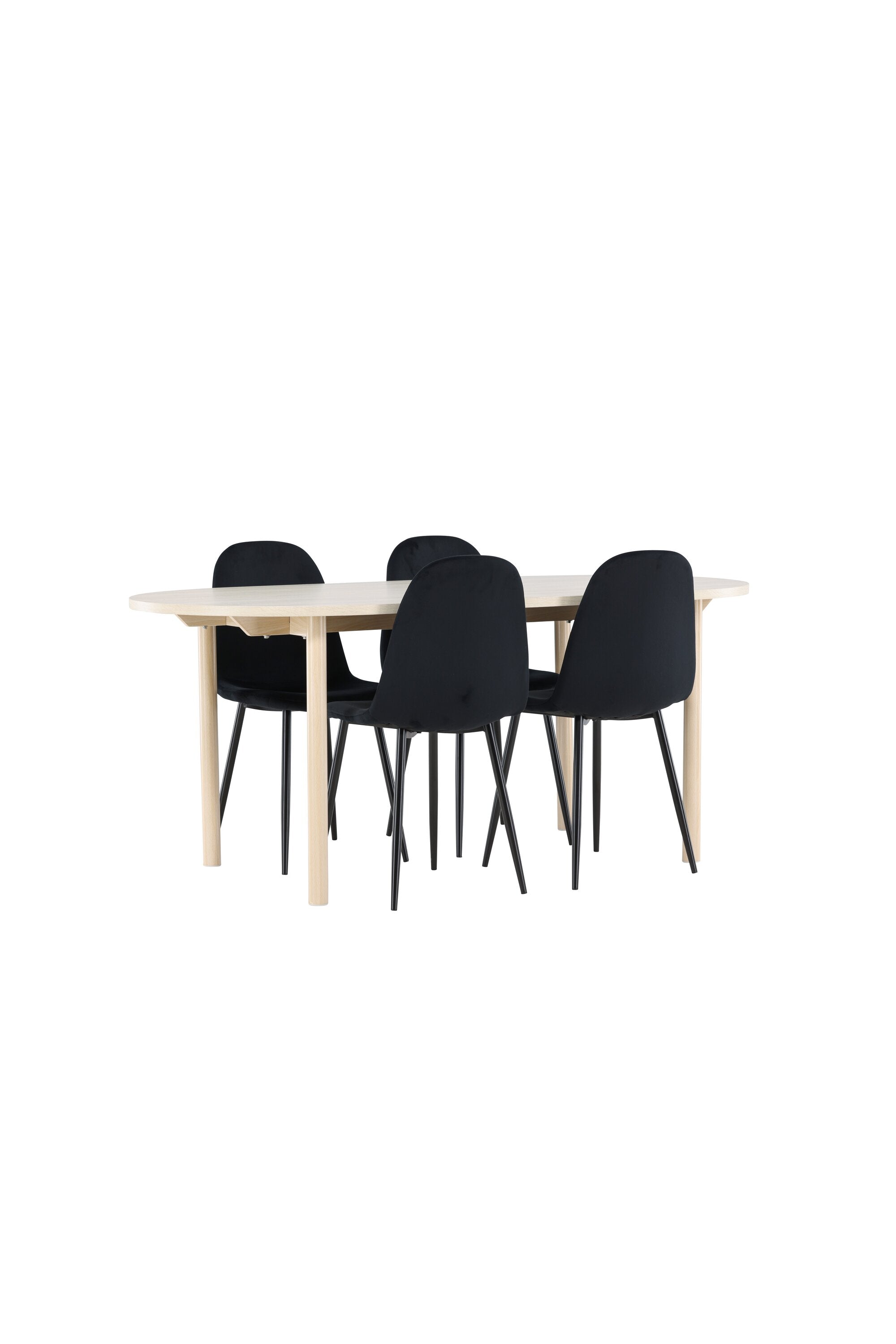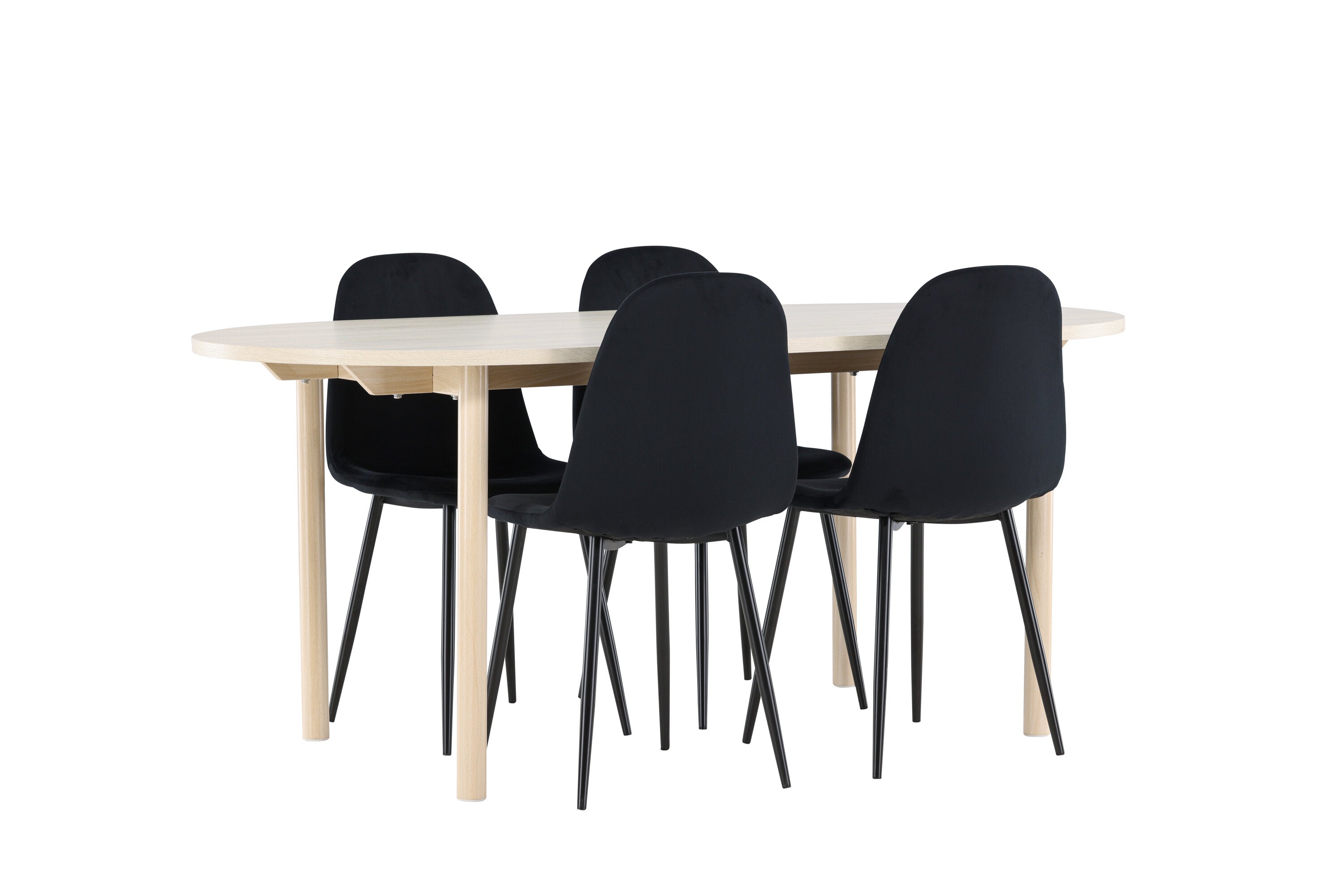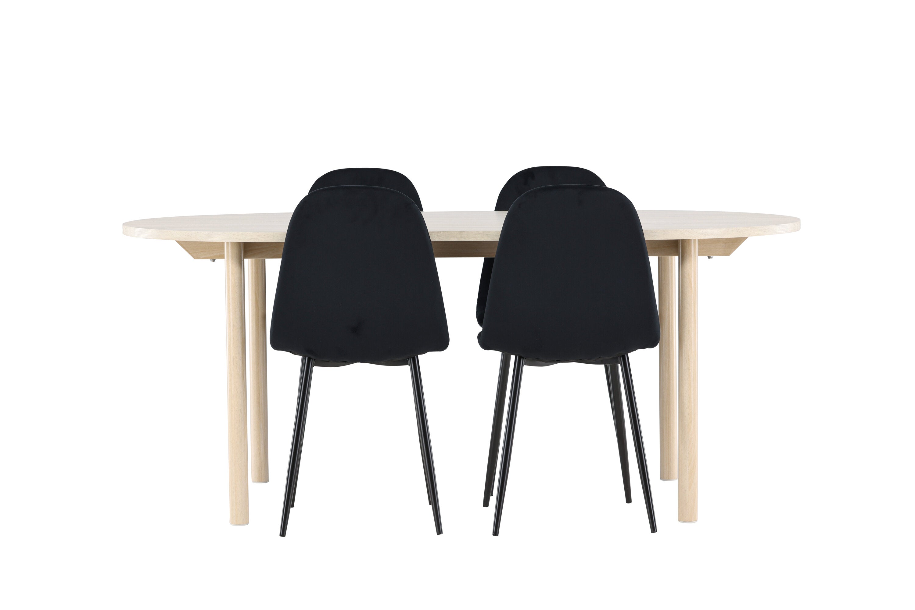 Objevte perfektní jídelní set pro váš domov s jídelním stolem Andy a jídelními židlemi Polar. Jídelní stůl Andy je nadčasový kousek, který se stává dokonalým místem pro společenské stolování. Díky své bílé barvě dodává Andy vaší jídelně nebo kuchyni zemitý a neutrální nádech. Ocelové nohy stolu a deska stolu z MDF kombinují štíhlost s robustností, což z něj dělá spolehlivý kus nábytku na mnoho let. Díky velkorysým rozměrům 180x90 cm je spousta místa pro rodinu a přátele, aby se sešli u stolu a vychutnali si dobré jídlo a dobrou společnost. Andy vytváří klidnou a uvolněnou atmosféru, která se perfektně hodí do různých stylů interiéru. Doplňte svůj jídelní stůl jídelními židlemi Polar, které nabízejí elegantní design v celočerné barvě. Polar má celočalouněný design s nohami z černého kovu s práškovým nástřikem a zaobleným opěradlem a sedákem z černé sametové látky s měkkým polstrováním. Tyto židle vám umožní vyhnout se kompromisům mezi pohodlím a designem. S jídelními židlemi Polar vytvoříte ve své jídelně moderní a elegantní atmosféru. Všimněte si, že samet má tendenci vytvářet otlaky, když se zdřímne položí, což může způsobit, že látka bude vypadat opotřebovaně. To je u tohoto typu materiálu zcela běžné a podle toho, jak dopadá světlo, se látka může posouvat v různých odstínech. Dodejte svému domovu nádech jednoduché elegance s jídelním stolem Andy a jídelními židlemi Polar – dokonalá kombinace pro vytvoření útulné atmosféry a příjemného prostředí pro všechna vaše jídla, ať už jde o každodenní jídlo nebo slavnostní příležitosti.