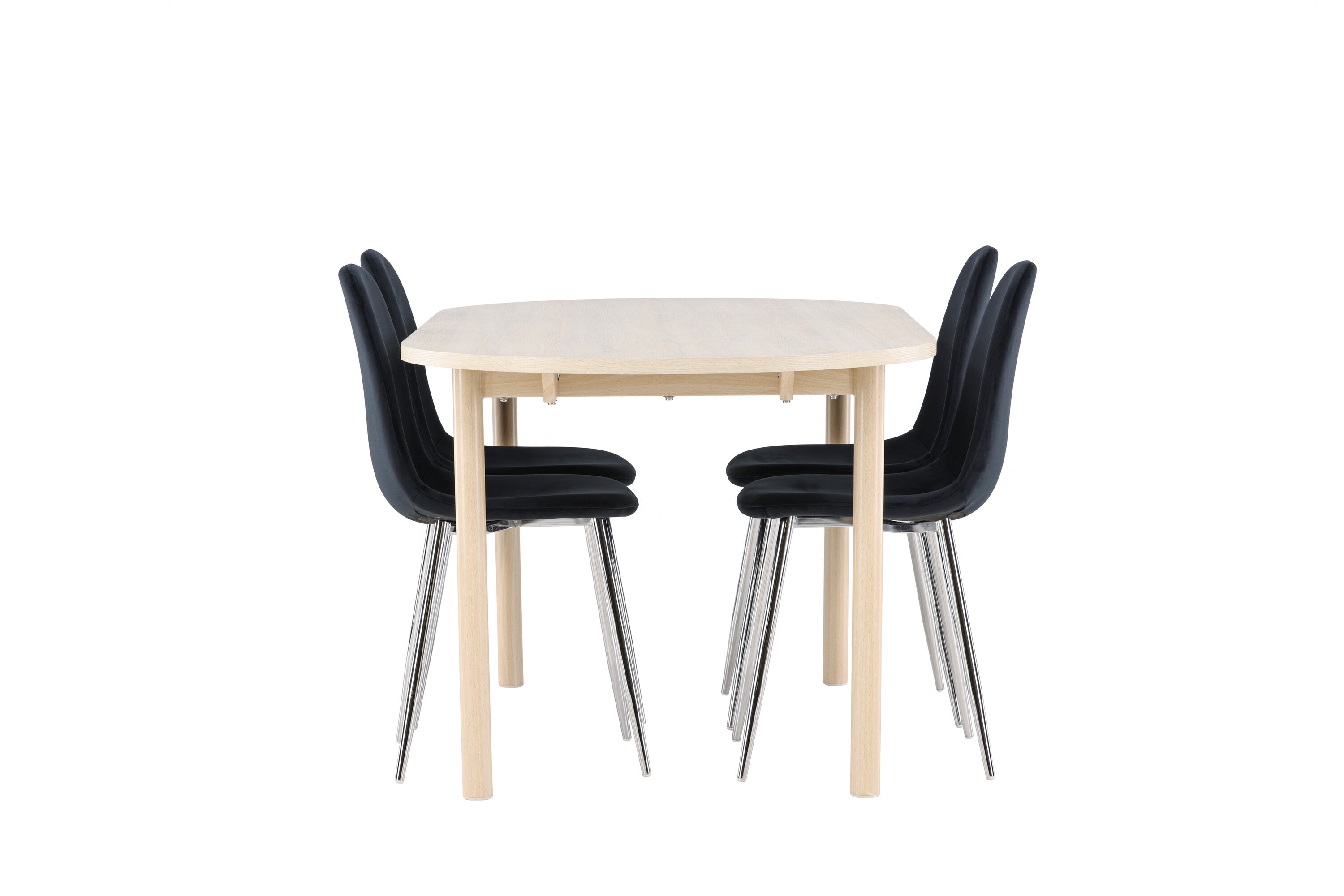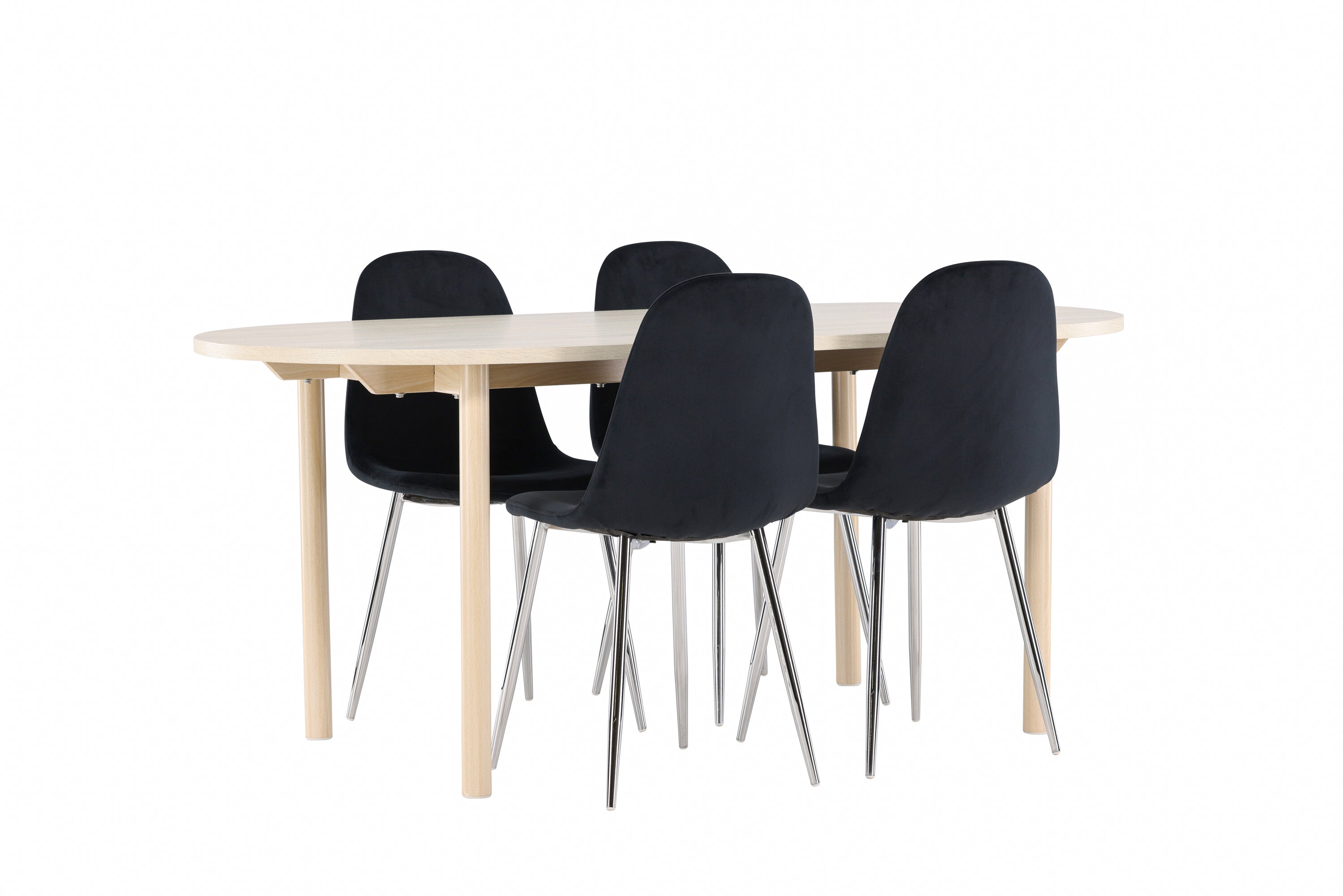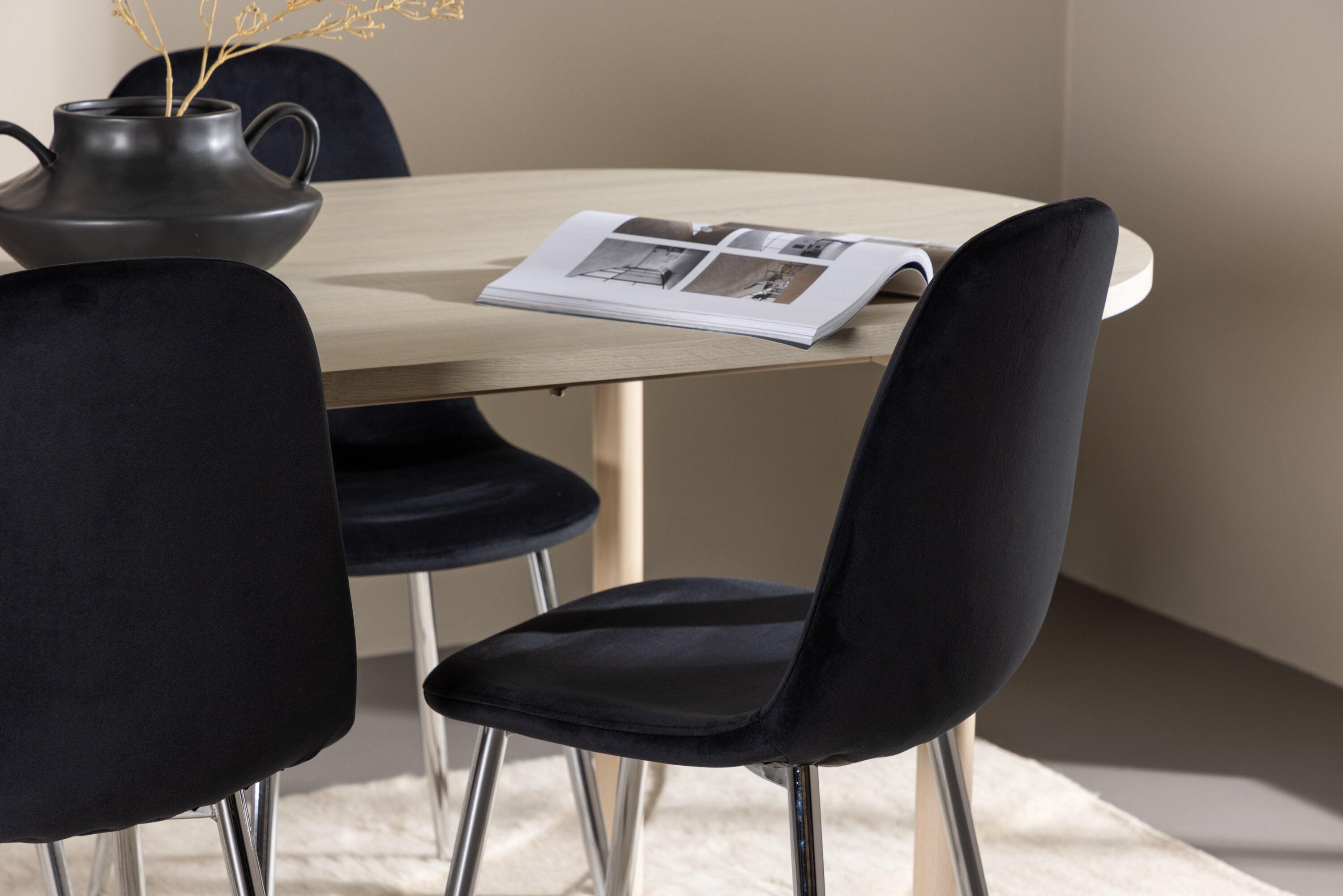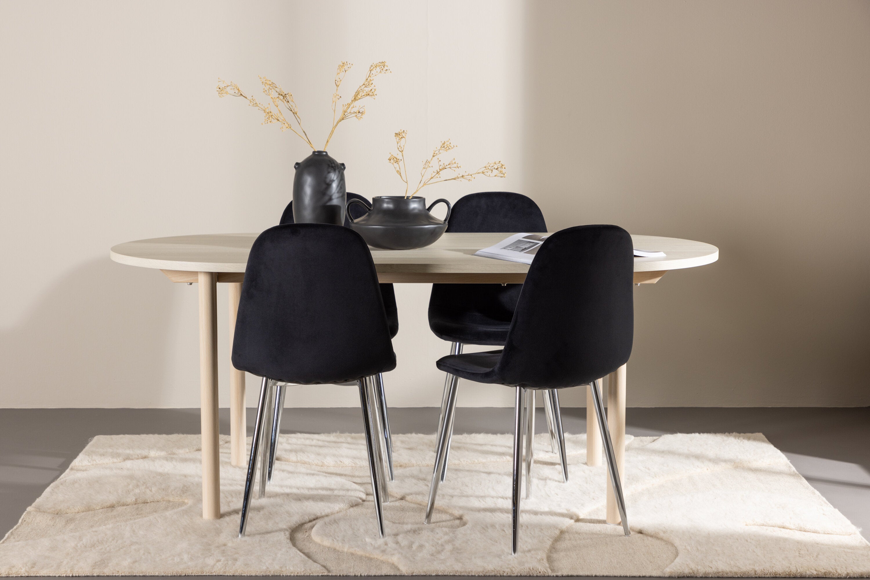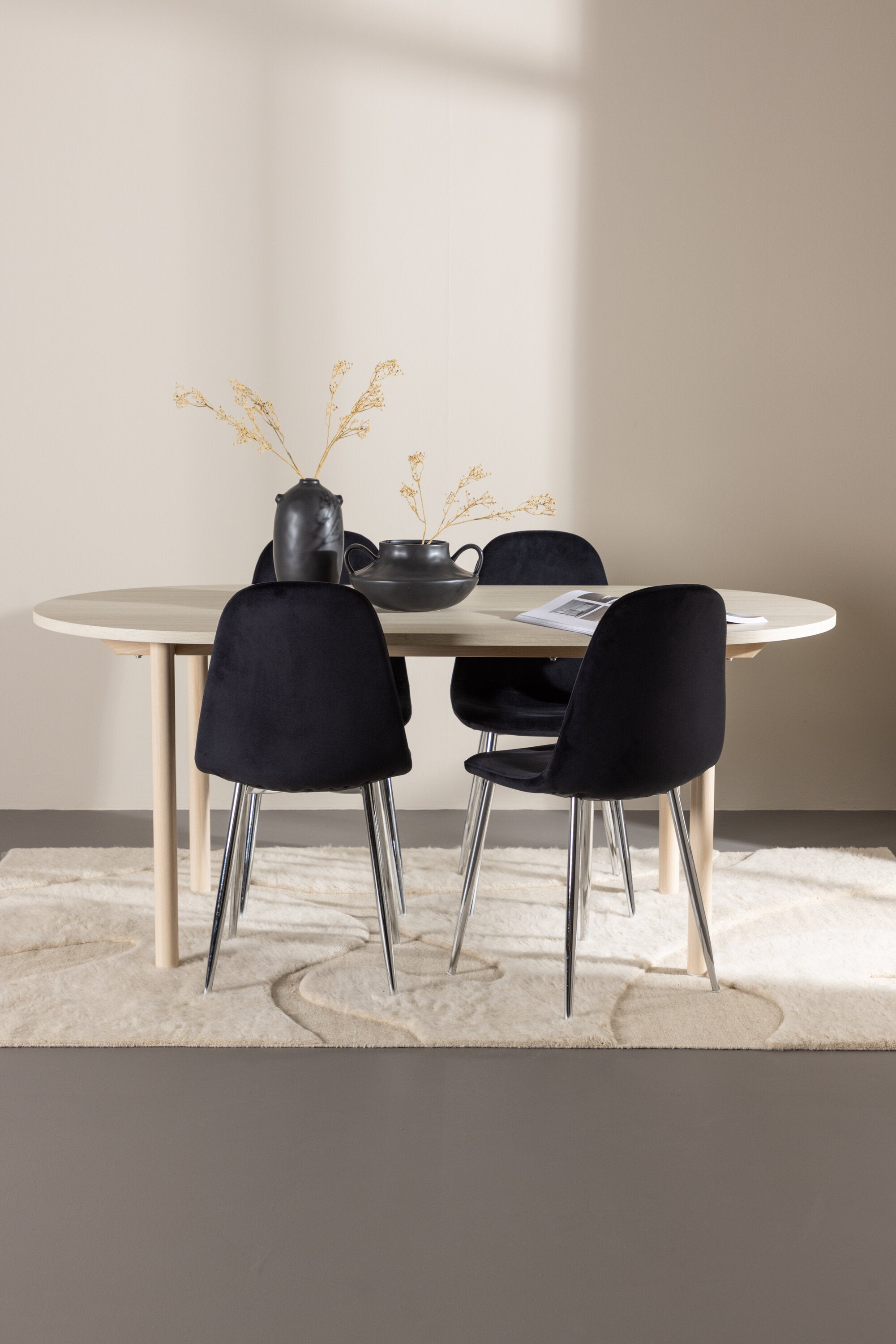 Elegantní jídelní židle v luxusním stylu! Polar má celočalouněný design s chromovanými kovovými nohami, lehce zaobleným opěradlem a sedákem z elegantního černého sametu s měkkým polstrováním pro extra pohodlí. Zde nemusíte dělat kompromisy mezi pohodlím a designem. Slaďte s jedním z našich stylových jídelních stolů a máte kompletní jídelní sestavu pro srdce vašeho domova! Prozkoumejte Andy – nadčasový jídelní stůl, který se stane dokonalým místem pro společenské stolování. Díky své bílé barvě dodává Andy vaší jídelně nebo kuchyni zemitý a neutrální nádech. Ocelové nohy a deska stolu z MDF spojují eleganci s robustností, díky čemuž je spolehlivým kusem nábytku na mnoho let. Díky velkorysým rozměrům 180x90 cm je spousta místa pro rodinu a přátele, aby se sešli u stolu a vychutnali si dobré jídlo a dobrou společnost. Andy má elegantní design, který se perfektně hodí do různých stylů interiéru a vytváří v místnosti klidnou a uvolněnou atmosféru. Ať už jej využijete pro každodenní jídlo nebo slavnostní příležitosti, Andy bude nadčasovým a stylovým doplňkem vašeho domova. Dodejte svému dekoru nádech jednoduché elegance s jídelním stolem Andy.